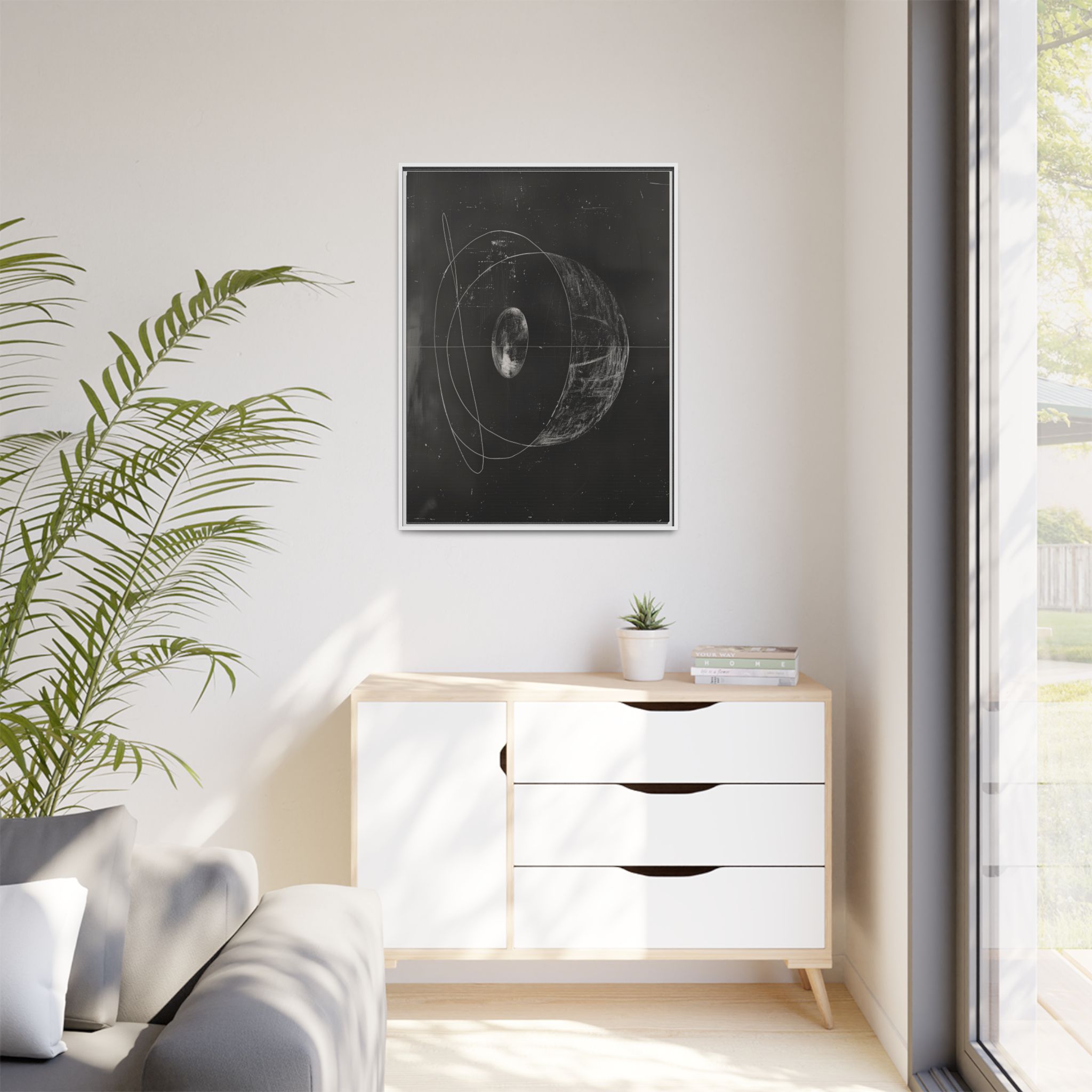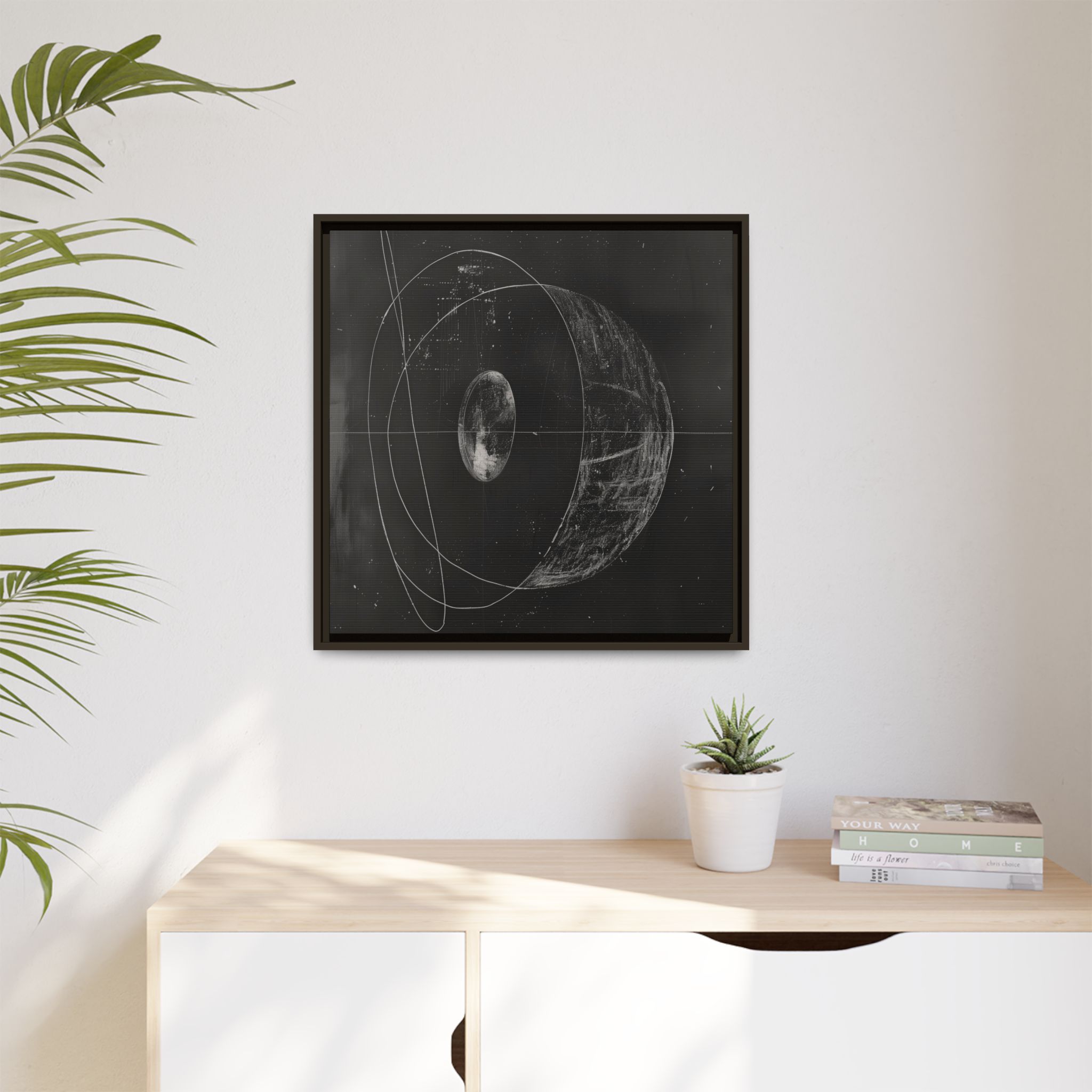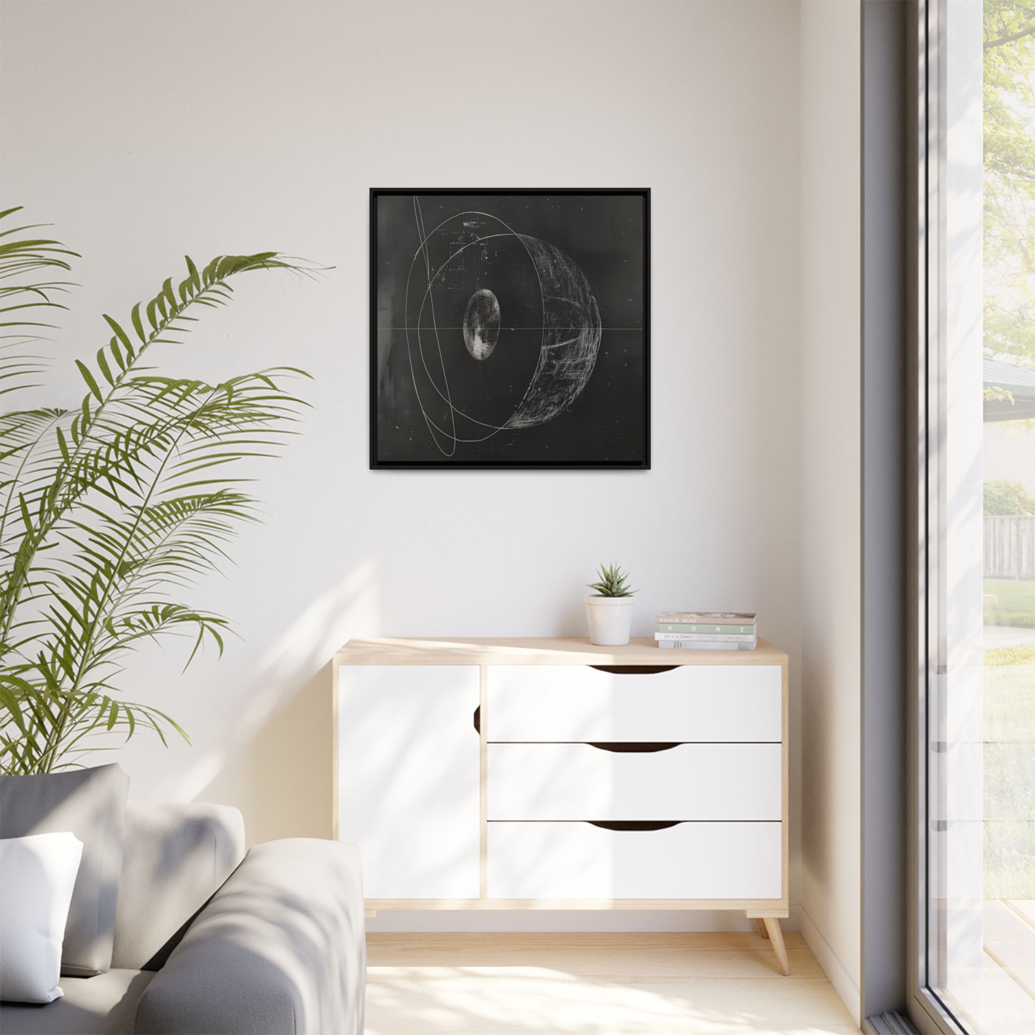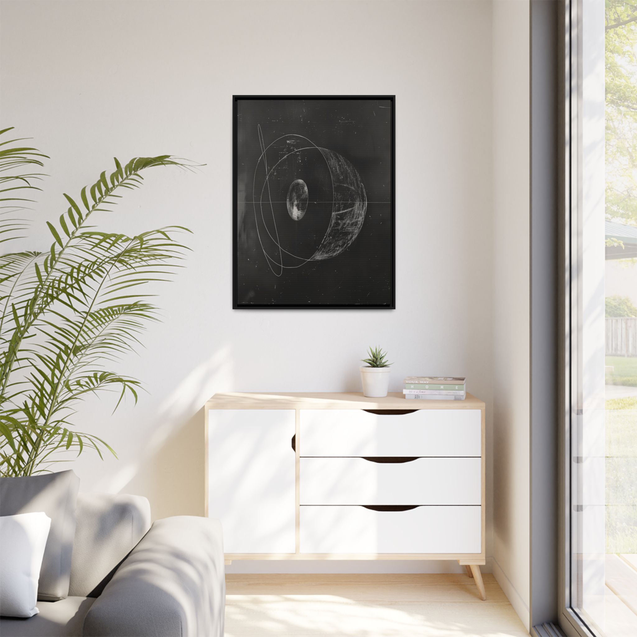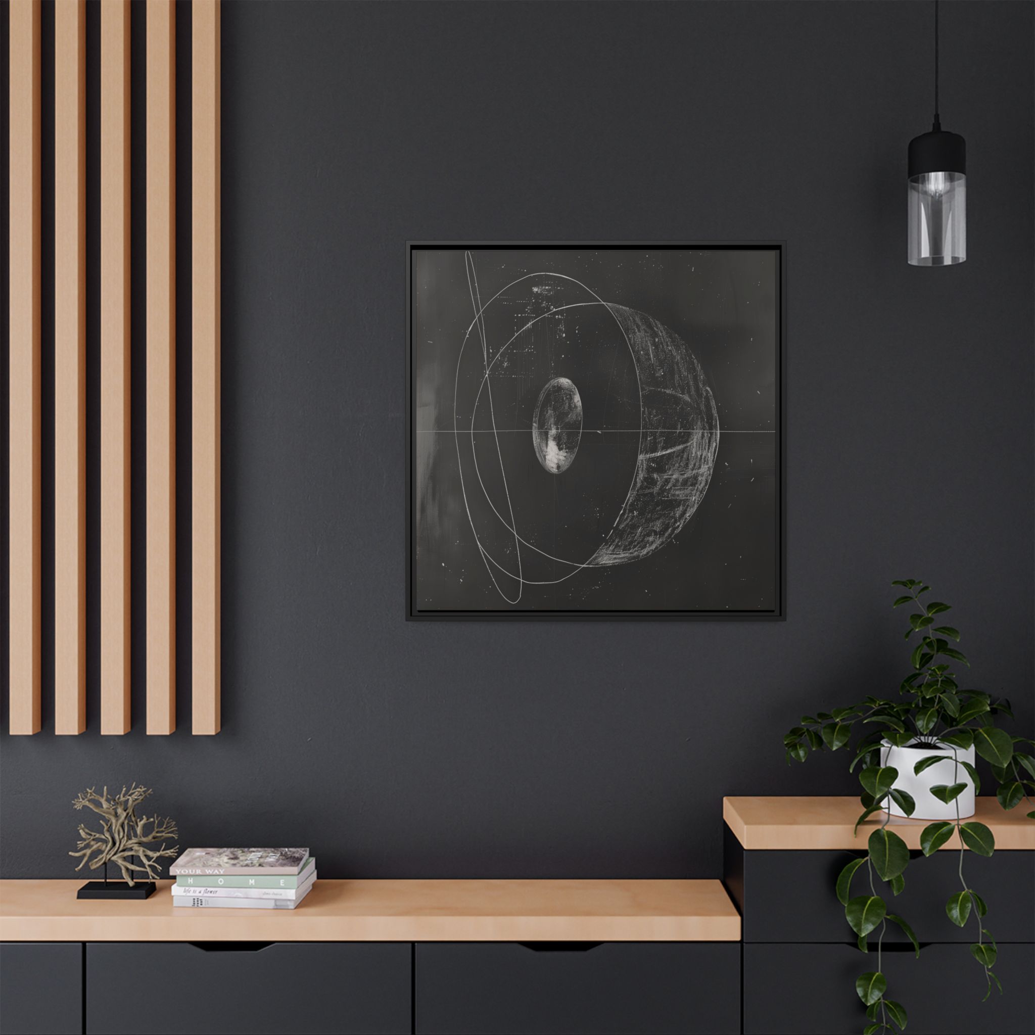 Custom digitally printed artwork on a quality canvas. .Every print in a black pinewood frame will look sleek and beautiful in any interior. The artwork will be printed on the cotton-polyester canvas with a special proprietary coating to make sure it stays vibrant for ages. Environmentally-conscious – it’s made from sustainably sourced materials (Forest Stewardship Council certified) and custom printed on demand no warehouse stocks and no waste. Choose between the designer specified sizes. The sawtooth hanging hardware is already attached.