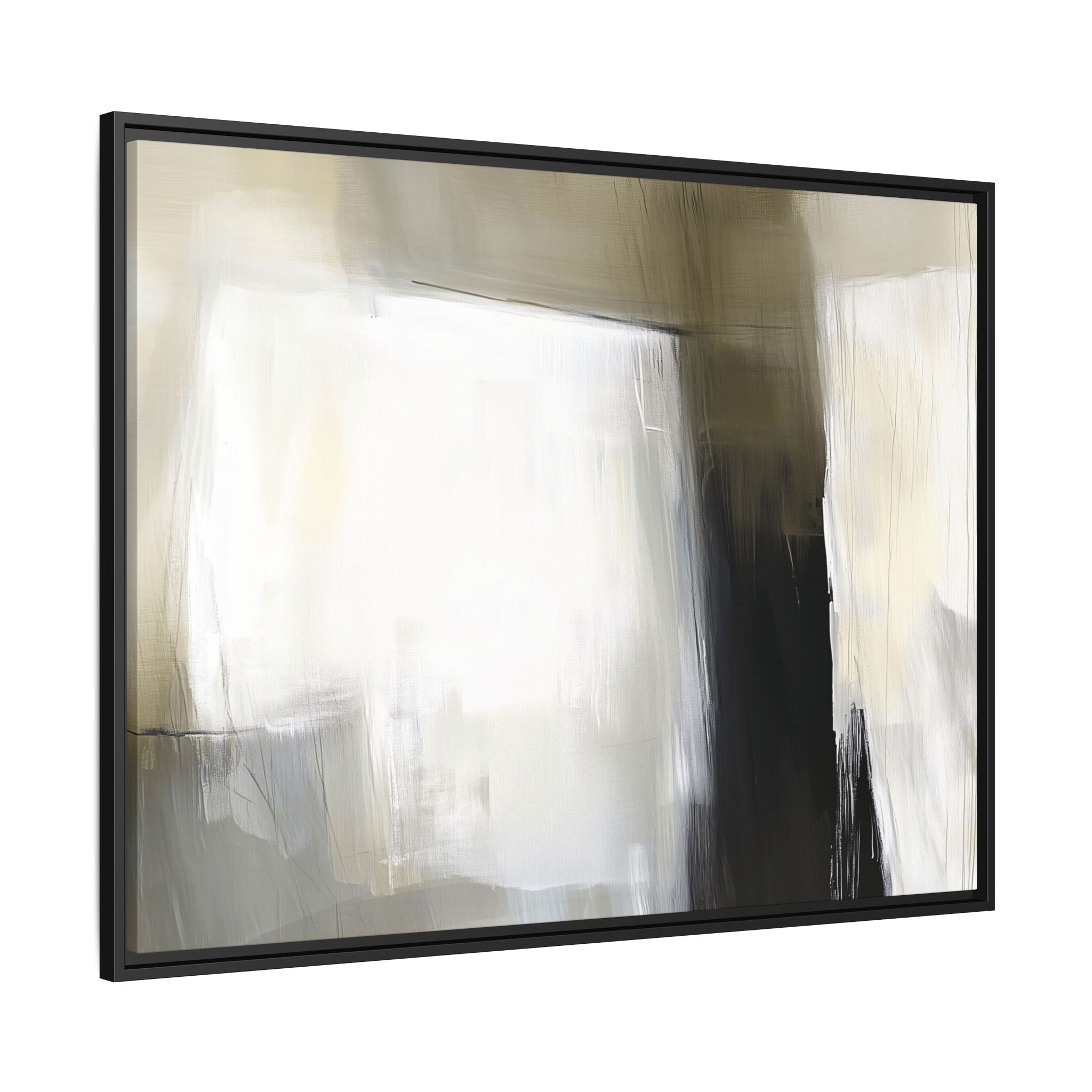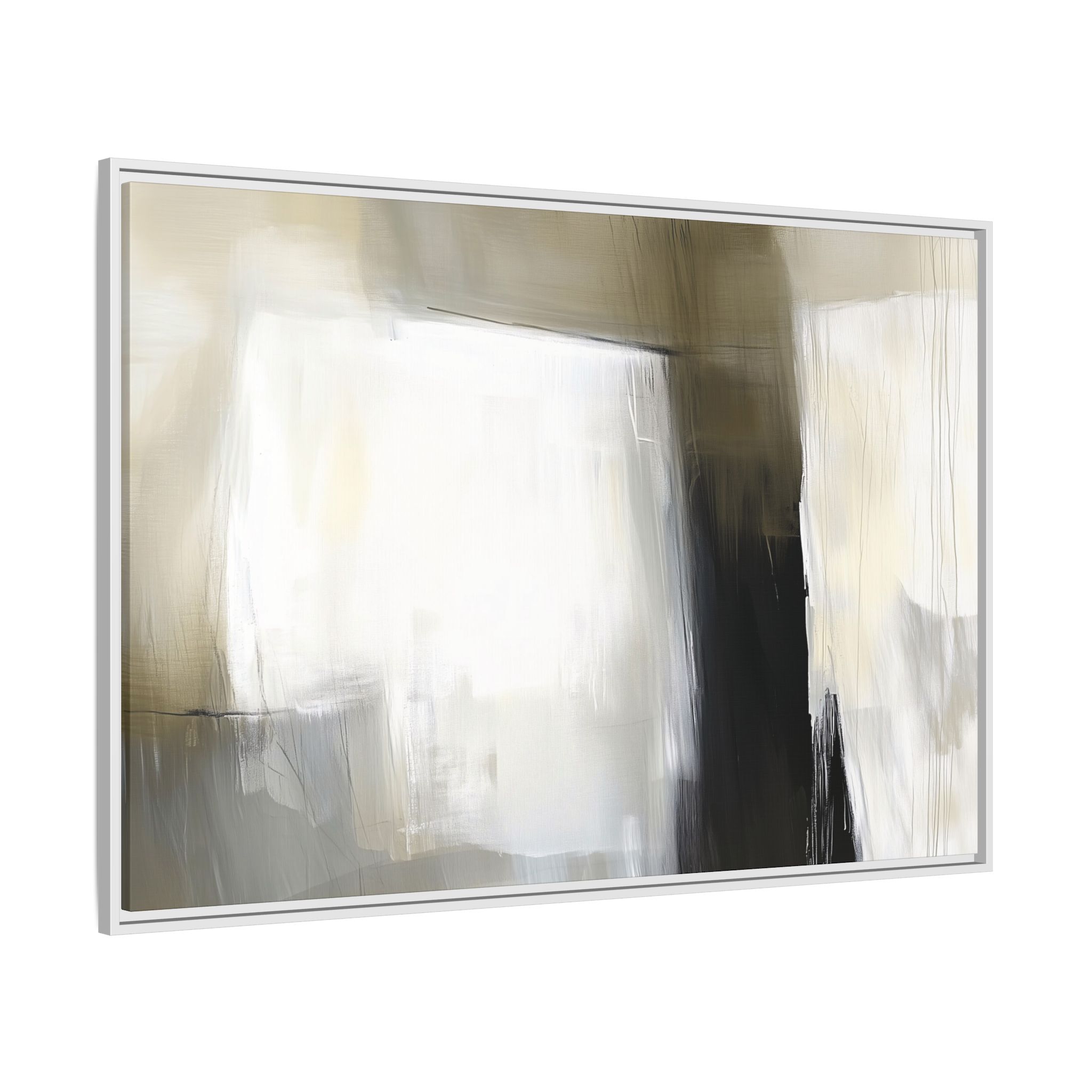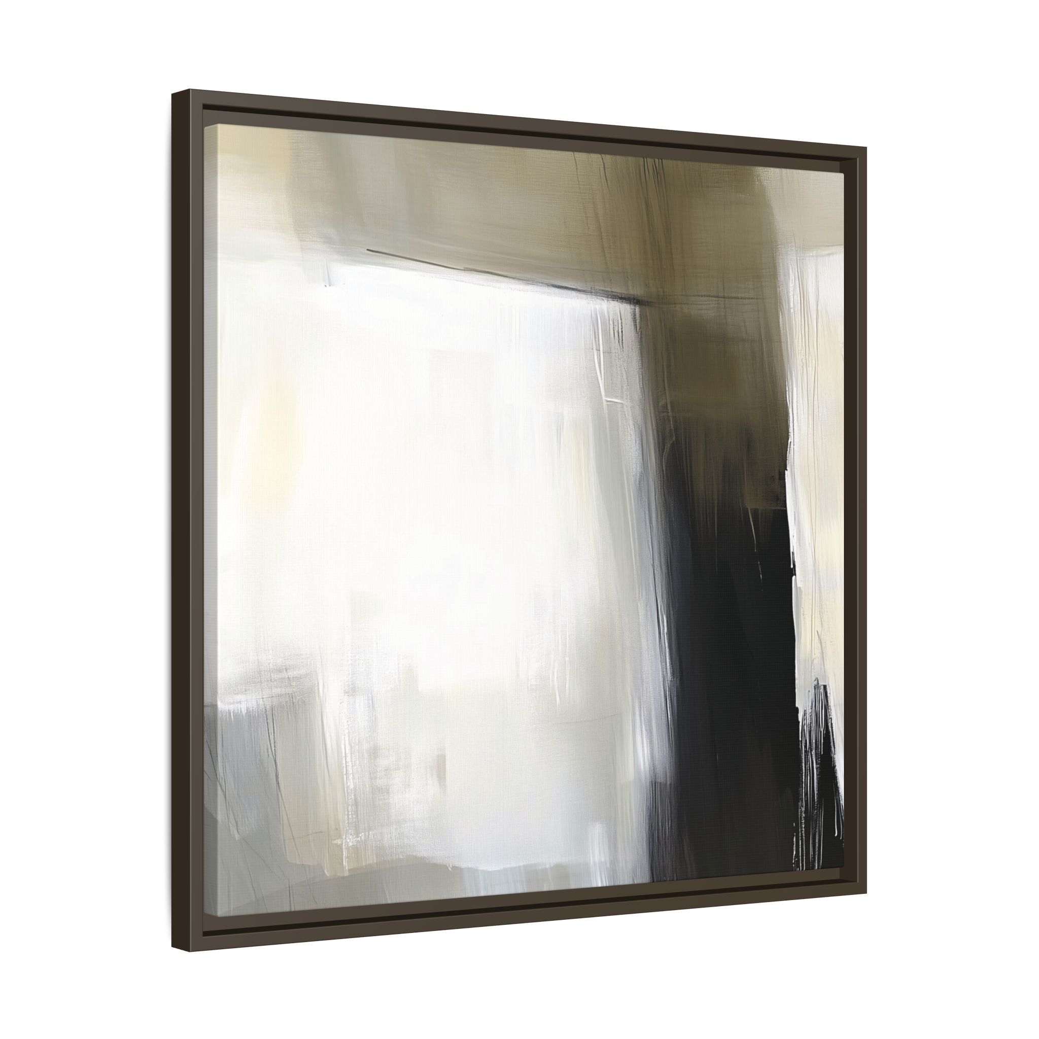 A minimalist abstract canvas print featuring brushed brown, olive and cream shapes, thin lines, flat lighting, brush strokes, and subtle color transitions. This artwork gives a modern and sophisticated vibe, perfect for contemporary home decor enthusiasts and art lovers. Ideal for adding a touch of elegance to living rooms, bedrooms, or home offices. Relevant for gift-giving occasions like housewarming parties, birthdays, and holidays.