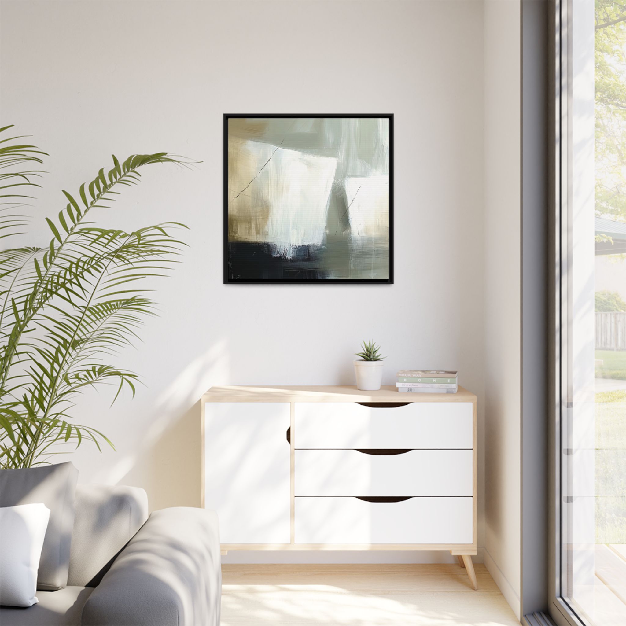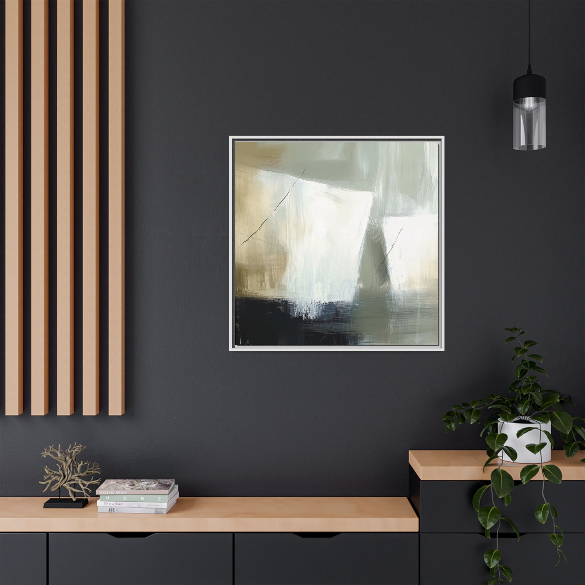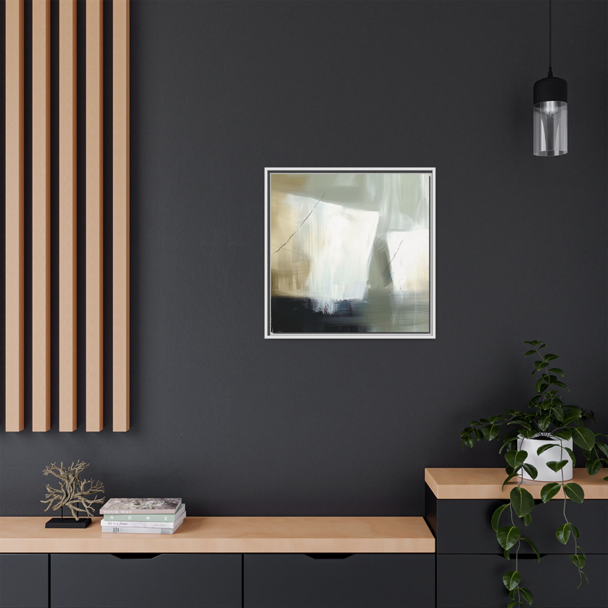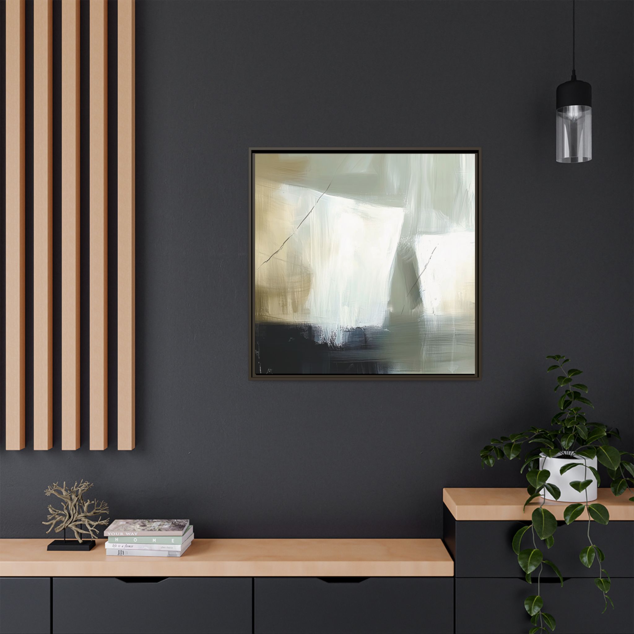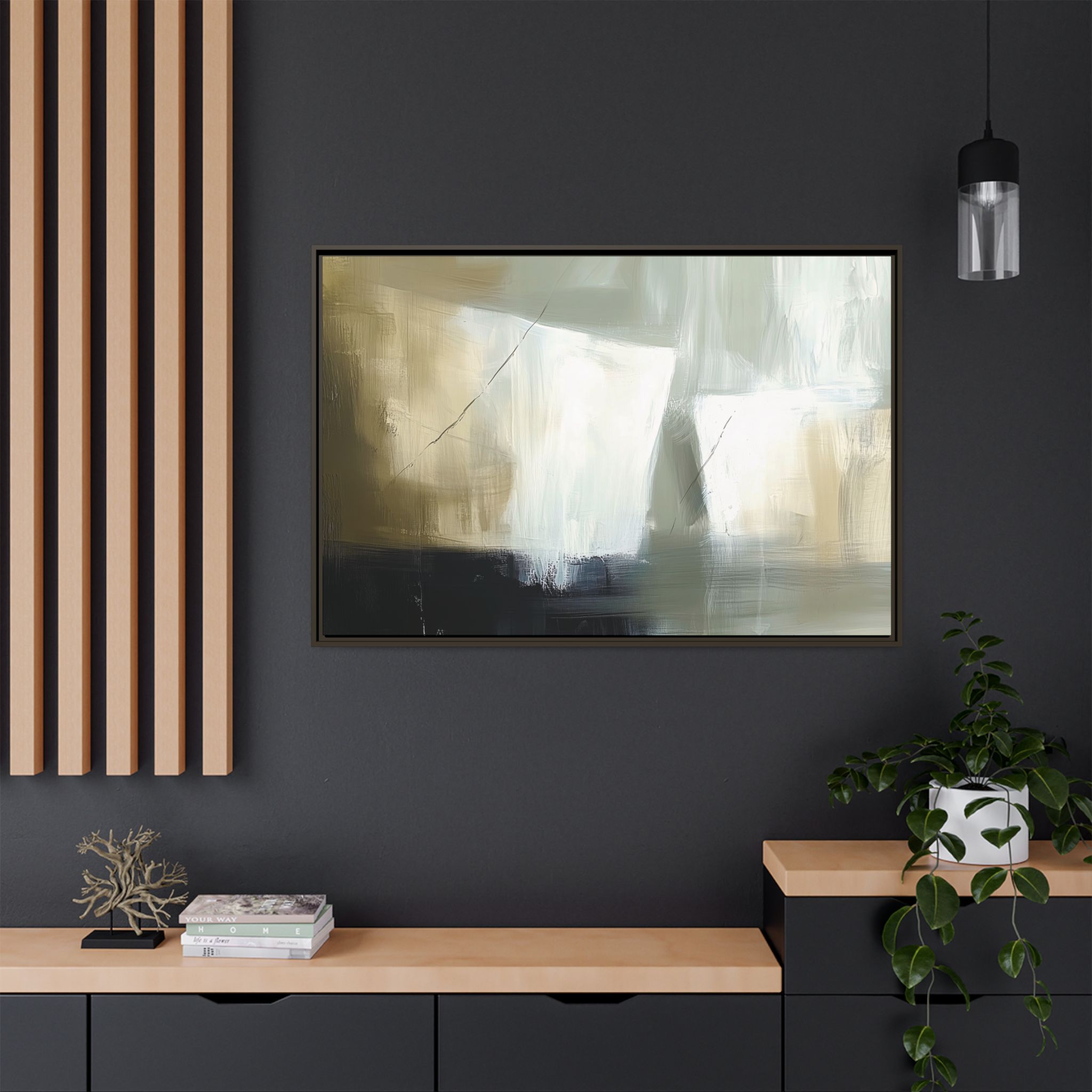 Custom digitally printed artwork on a quality canvas. .Every print in a black pinewood frame will look sleek and beautiful in any interior. The artwork will be printed on the cotton-polyester canvas with a special proprietary coating to make sure it stays vibrant for ages. Environmentally-conscious – it’s made from sustainably sourced materials (Forest Stewardship Council certified) and custom printed on demand no warehouse stocks and no waste. Choose between the designer specified sizes. The sawtooth hanging hardware is already attached.