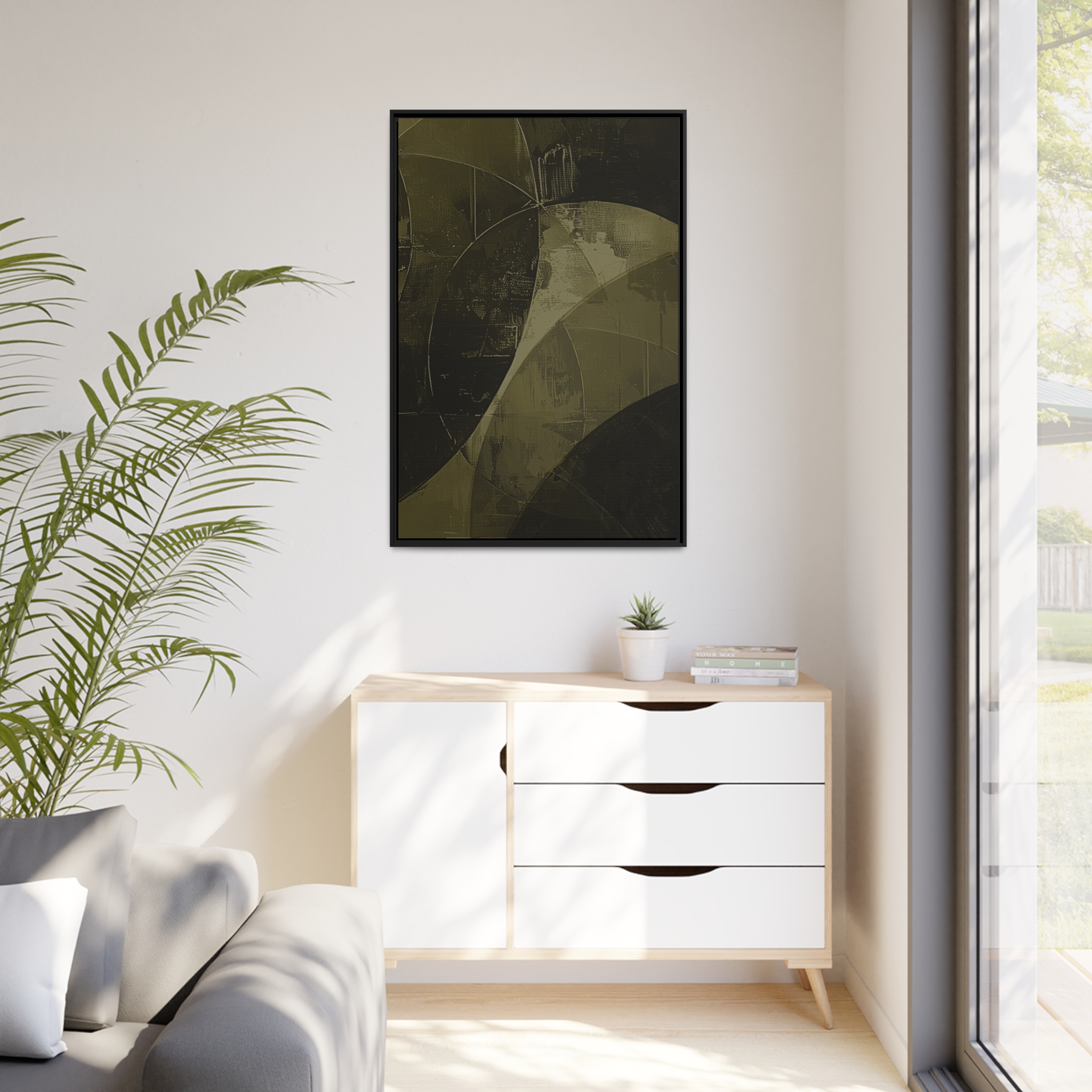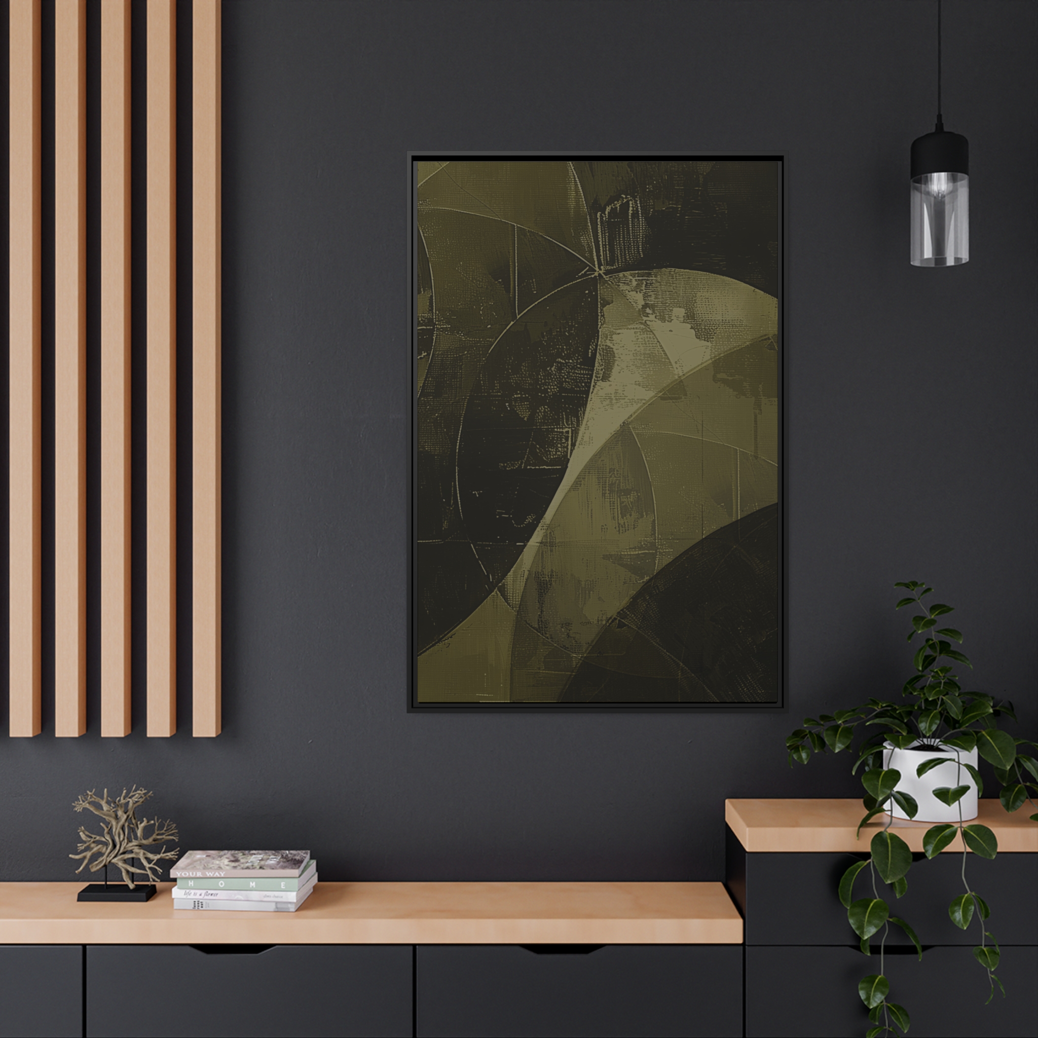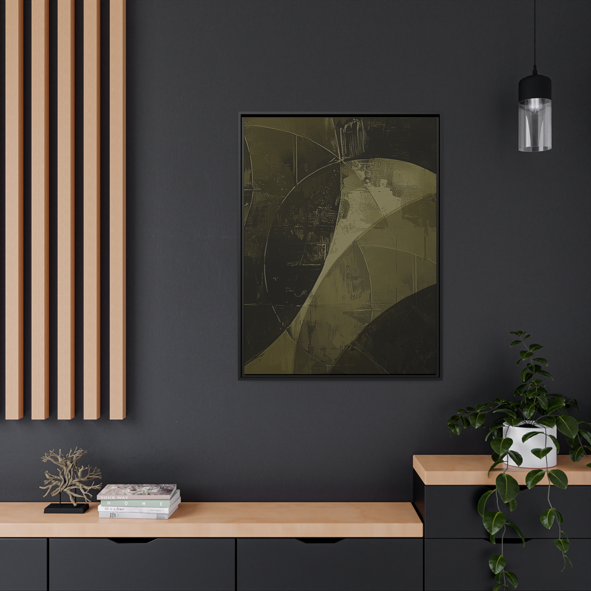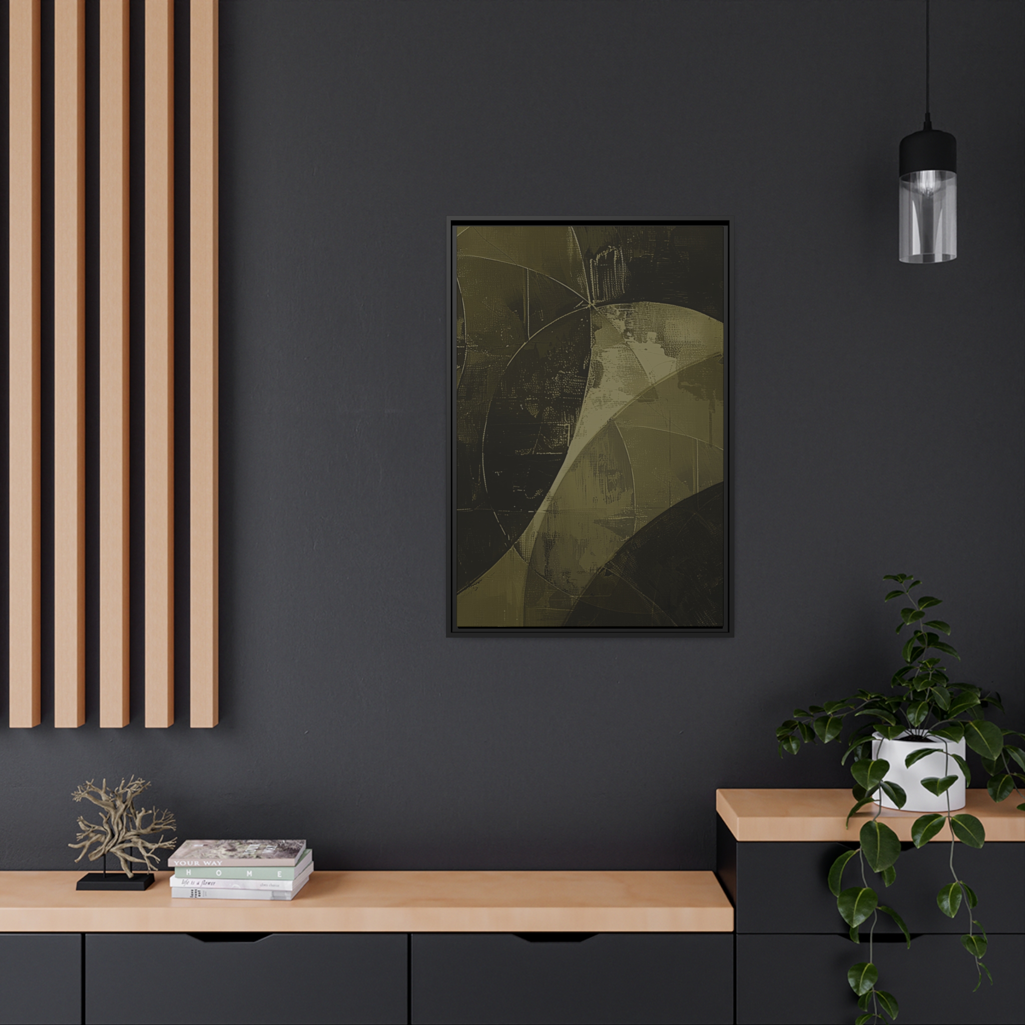 Custom digitally printed artwork on a quality canvas. .Every print in a black pinewood frame will look sleek and beautiful in any interior. The artwork will be printed on the cotton-polyester canvas with a special proprietary coating to make sure it stays vibrant for ages. Environmentally-conscious – it’s made from sustainably sourced materials (Forest Stewardship Council certified) and custom printed on demand no warehouse stocks and no waste. Choose between the designer specified sizes. The sawtooth hanging hardware is already attached.