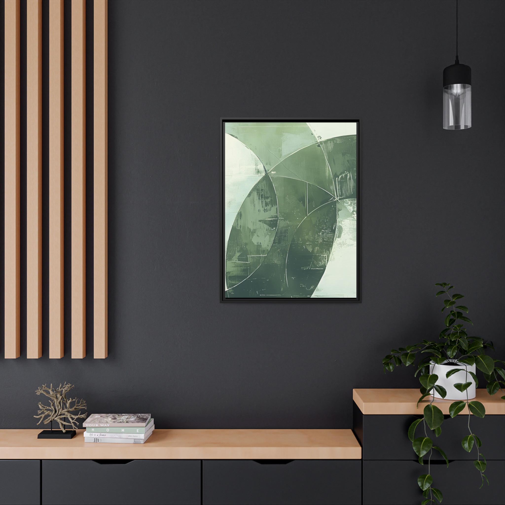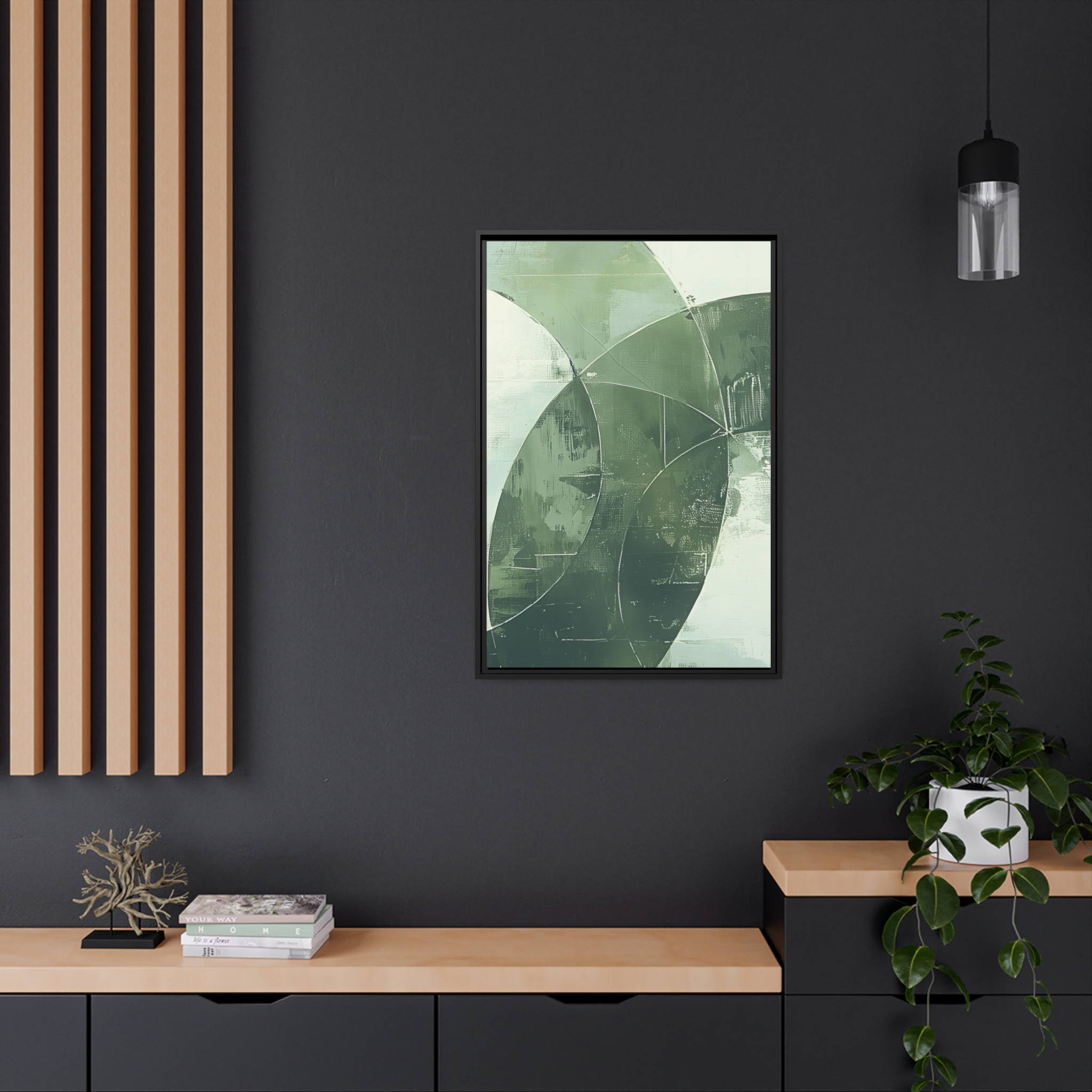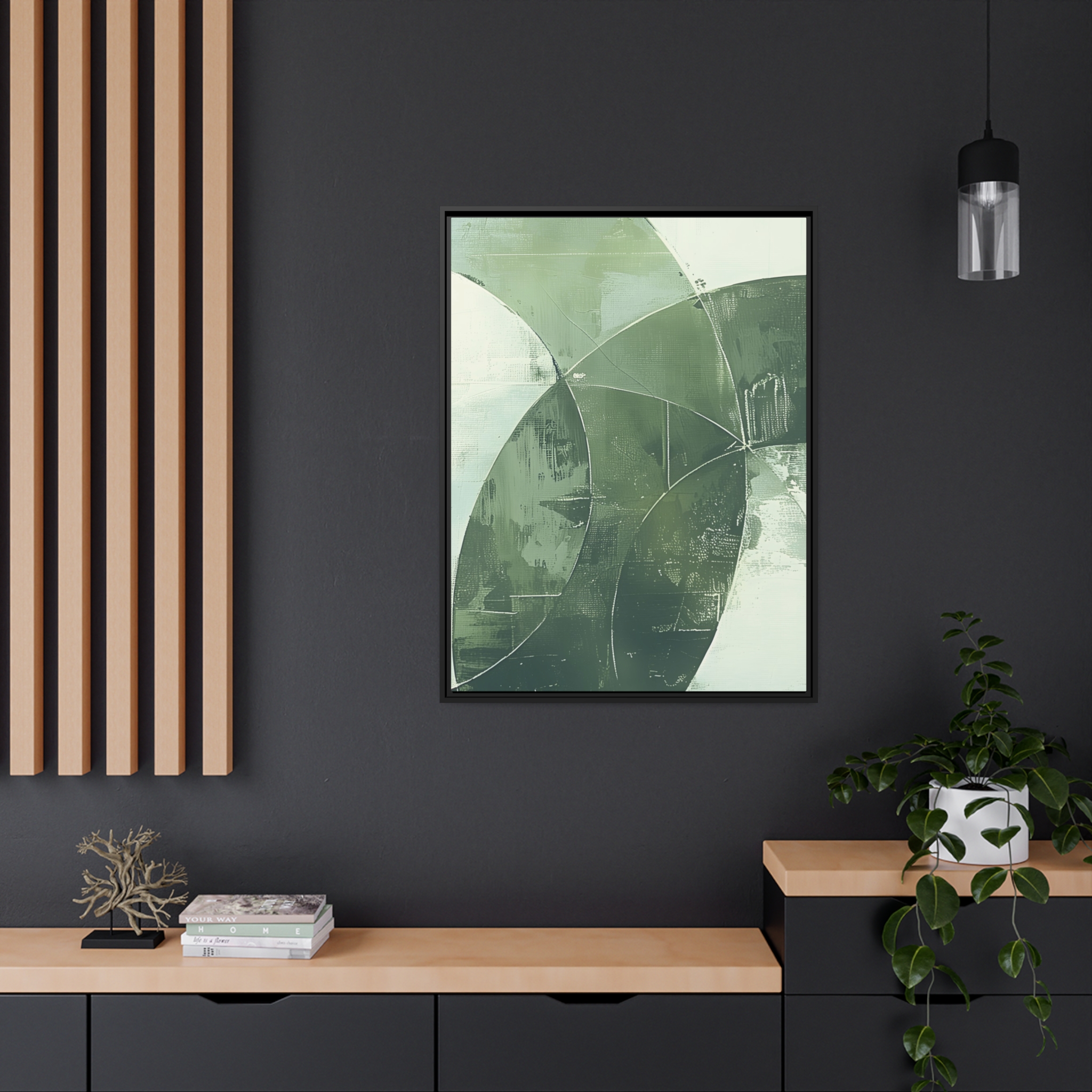 Custom digitally printed artwork on a quality canvas. .Every print in a black pinewood frame will look sleek and beautiful in any interior. The artwork will be printed on the cotton-polyester canvas with a special proprietary coating to make sure it stays vibrant for ages. Environmentally-conscious – it’s made from sustainably sourced materials (Forest Stewardship Council certified) and custom printed on demand no warehouse stocks and no waste. Choose between the designer specified sizes. The sawtooth hanging hardware is already attached.