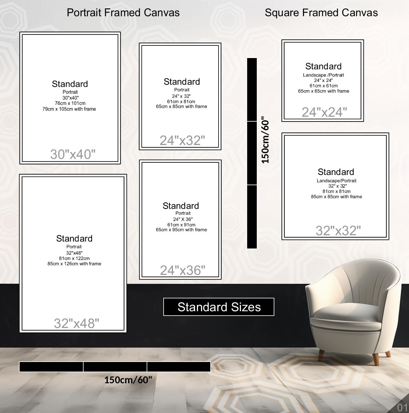 | 32″ x 24″ (Horizontal) | 36″ x 24″ (Horizontal) | 40″ x 30″ (Horizontal) | 48″ x 32″ (Horizontal) | 24″ x 24″ | 32″ x 32″ | |
