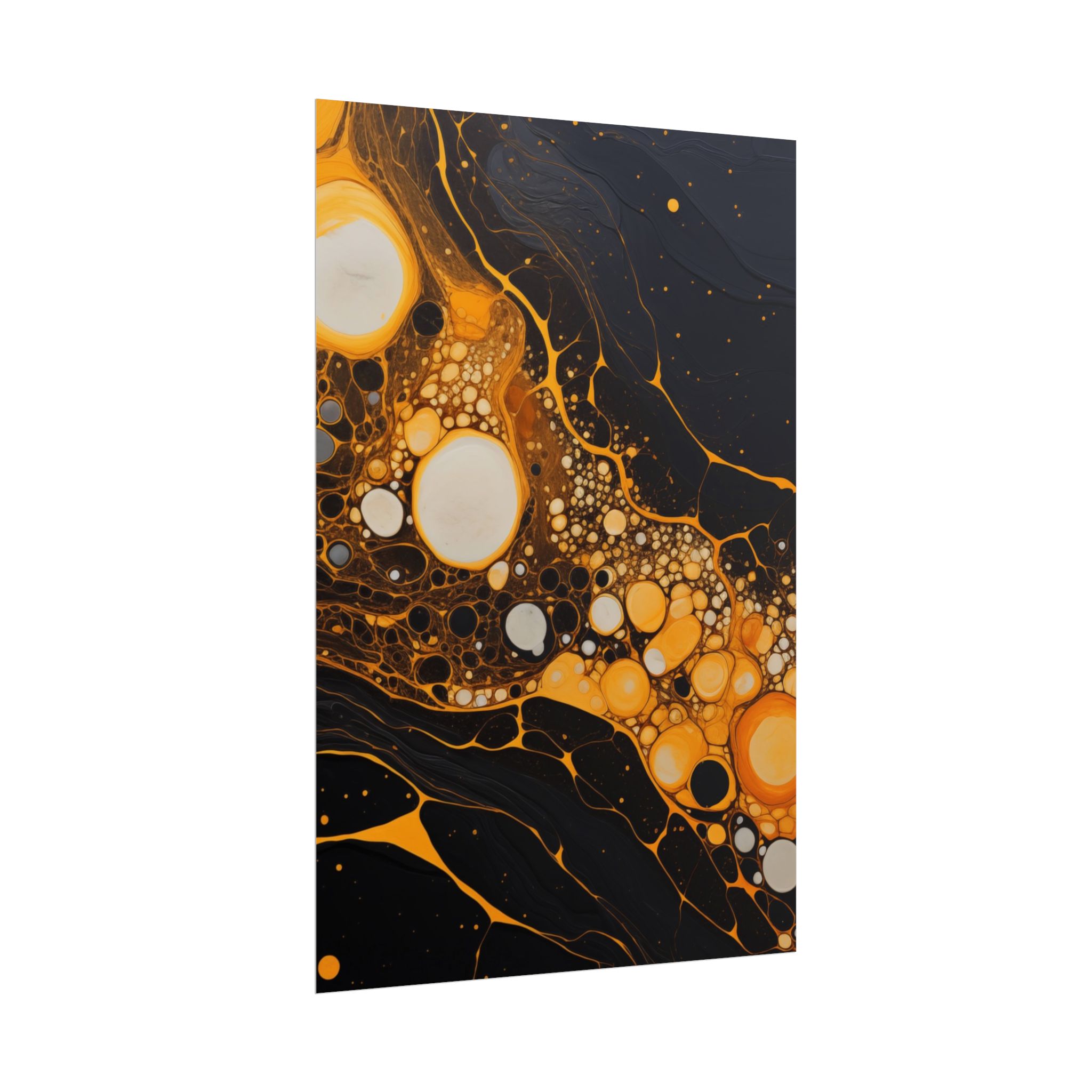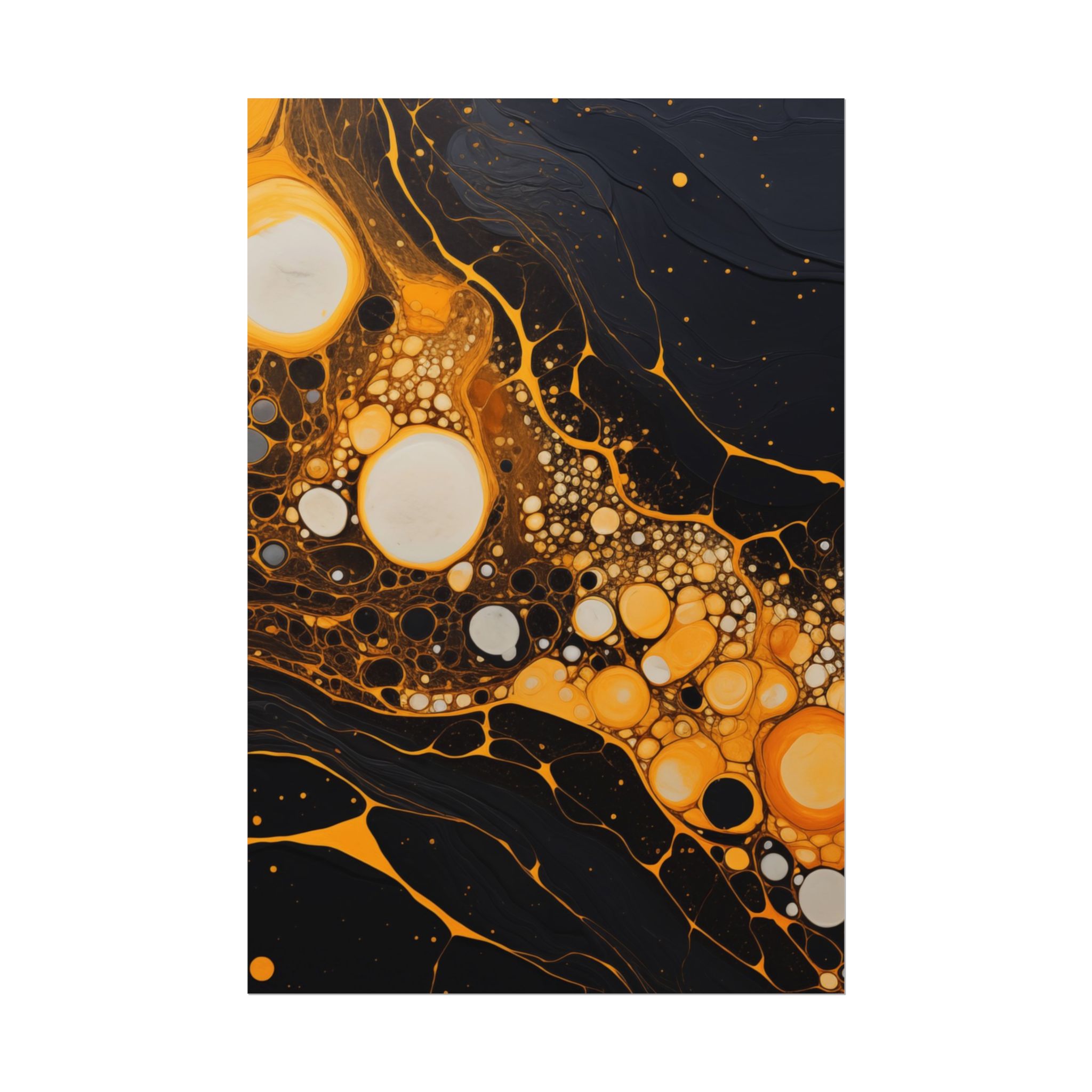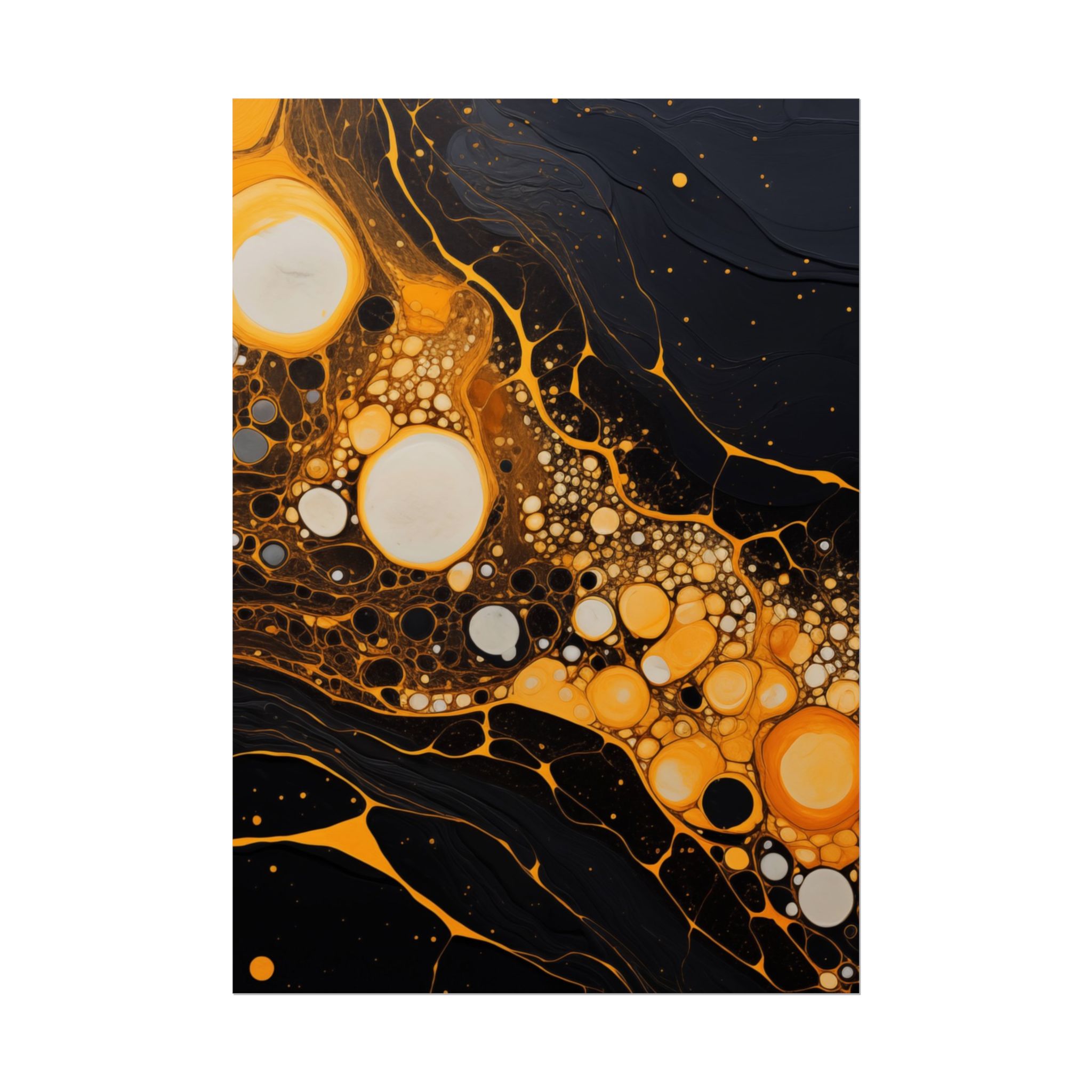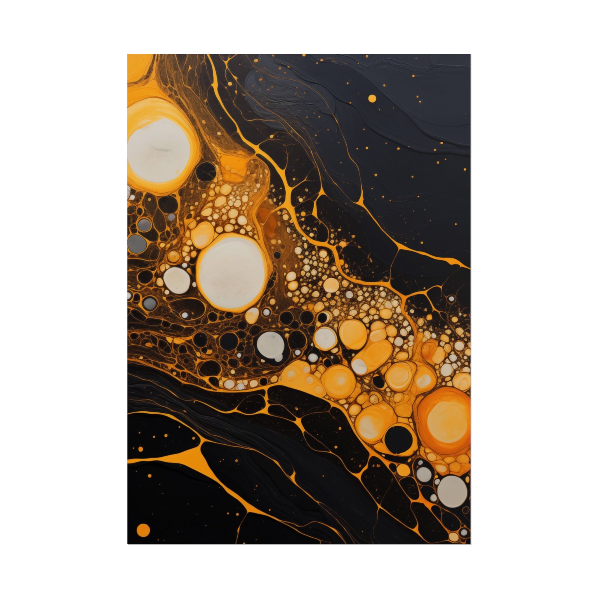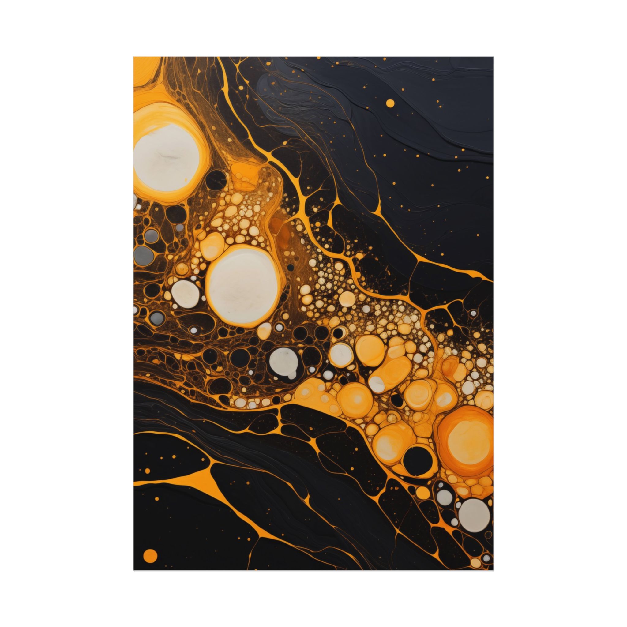 Elevate your space with this black, white, and yellow abstract art print featuring flowing liquid shapes and splashes of color. The intricate patterns and textures give depth and dimension, perfect for adding an artistic touch to any room. Ideal for art enthusiasts and home decor lovers, this canvas is a great addition to celebrations like birthdays, housewarmings, or art appreciation events.