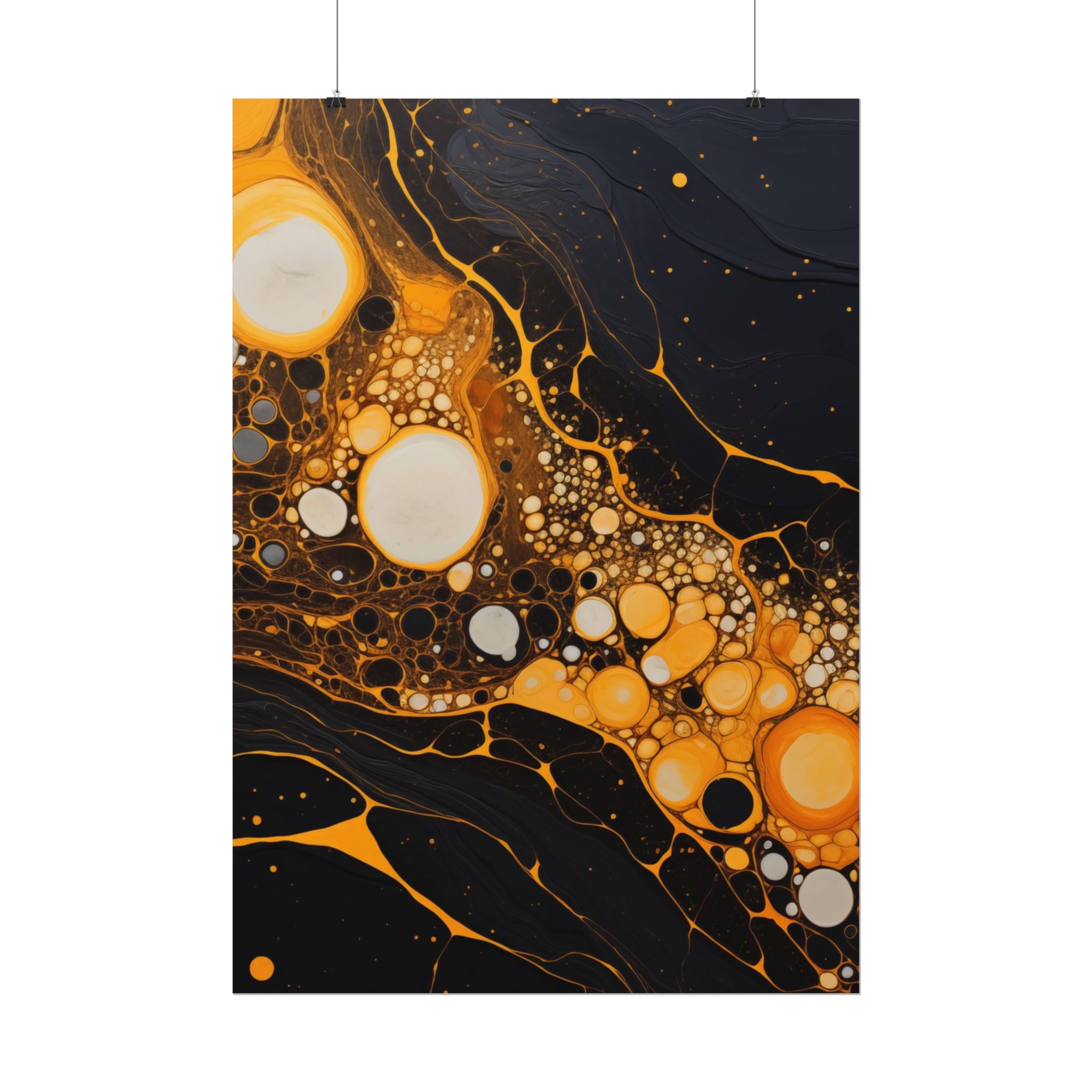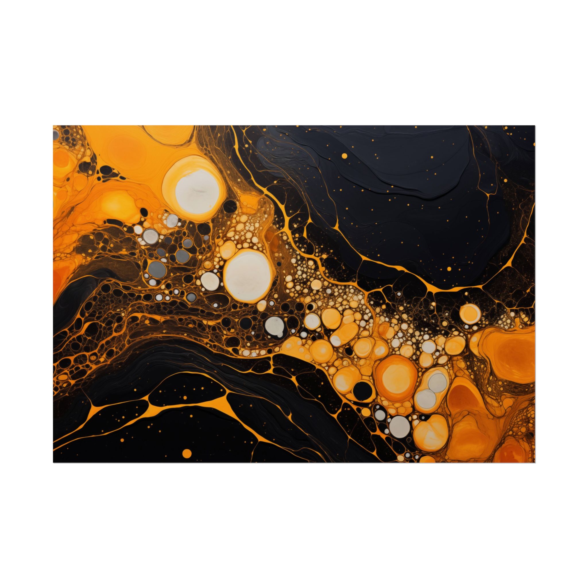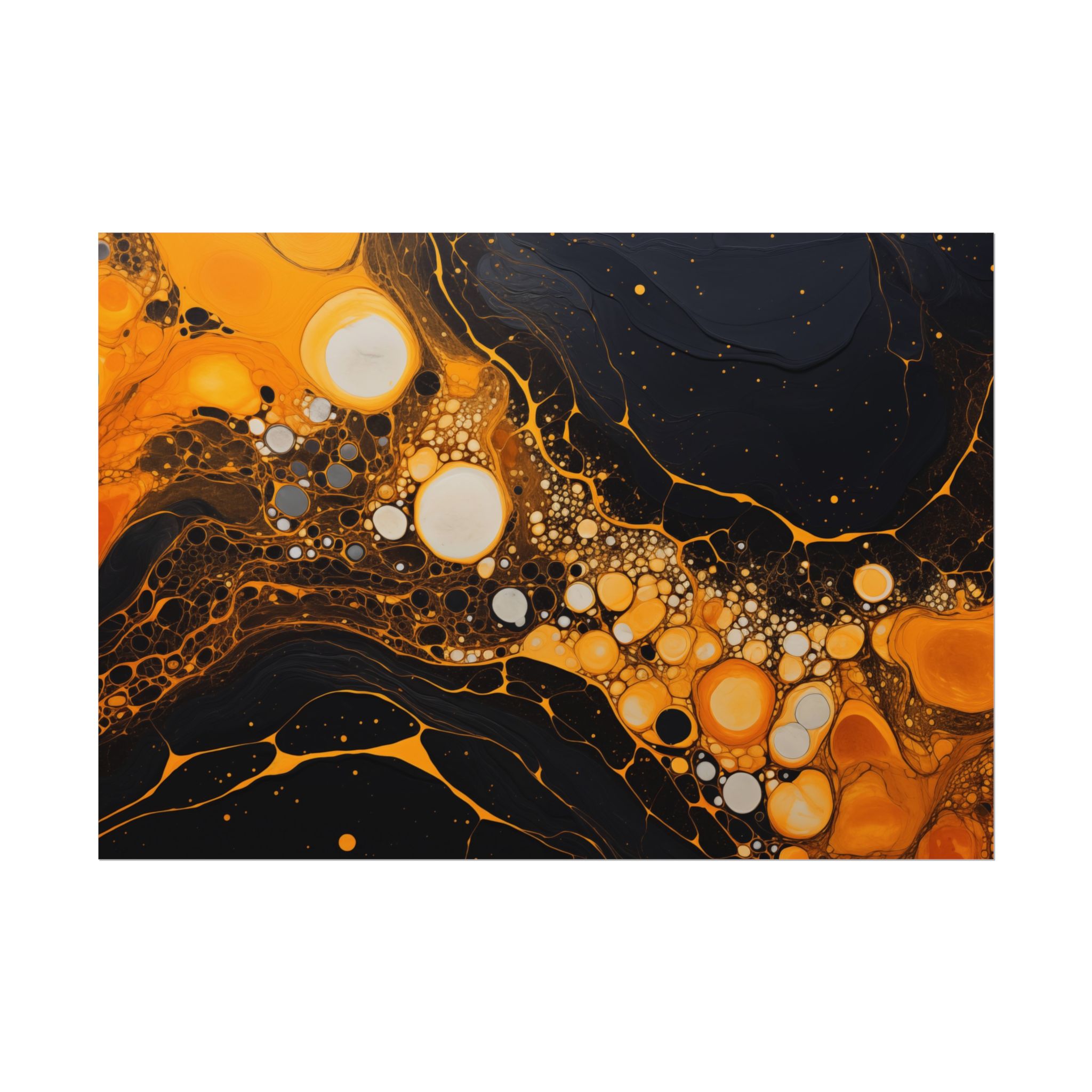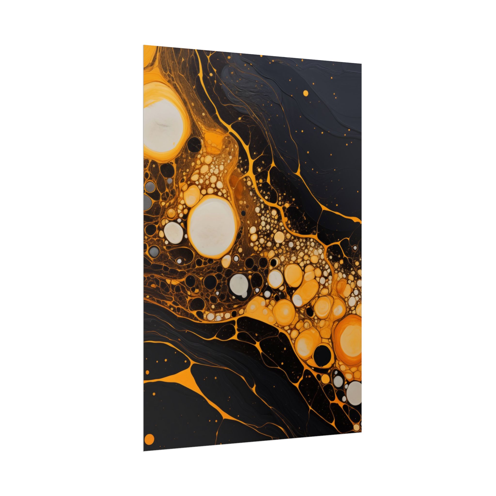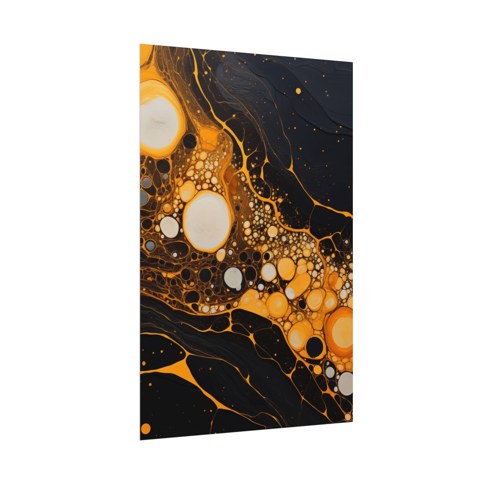 Elevate your space with this black, white, and yellow abstract art print featuring flowing liquid shapes and splashes of color. The intricate patterns and textures give depth and dimension, perfect for adding an artistic touch to any room. Ideal for art enthusiasts and home decor lovers, this canvas is a great addition to celebrations like birthdays, housewarmings, or art appreciation events.