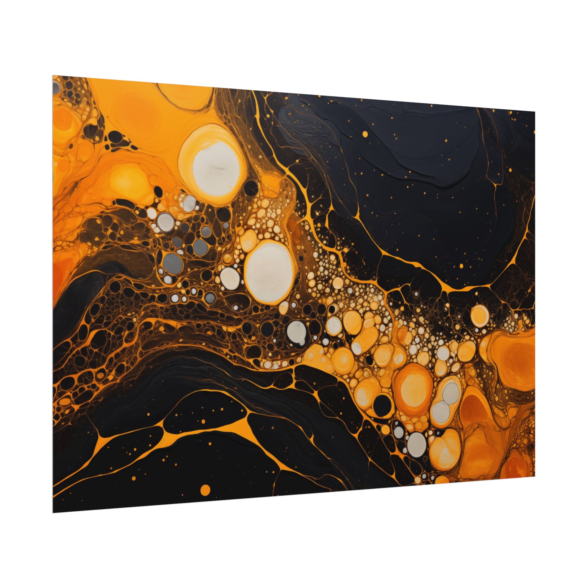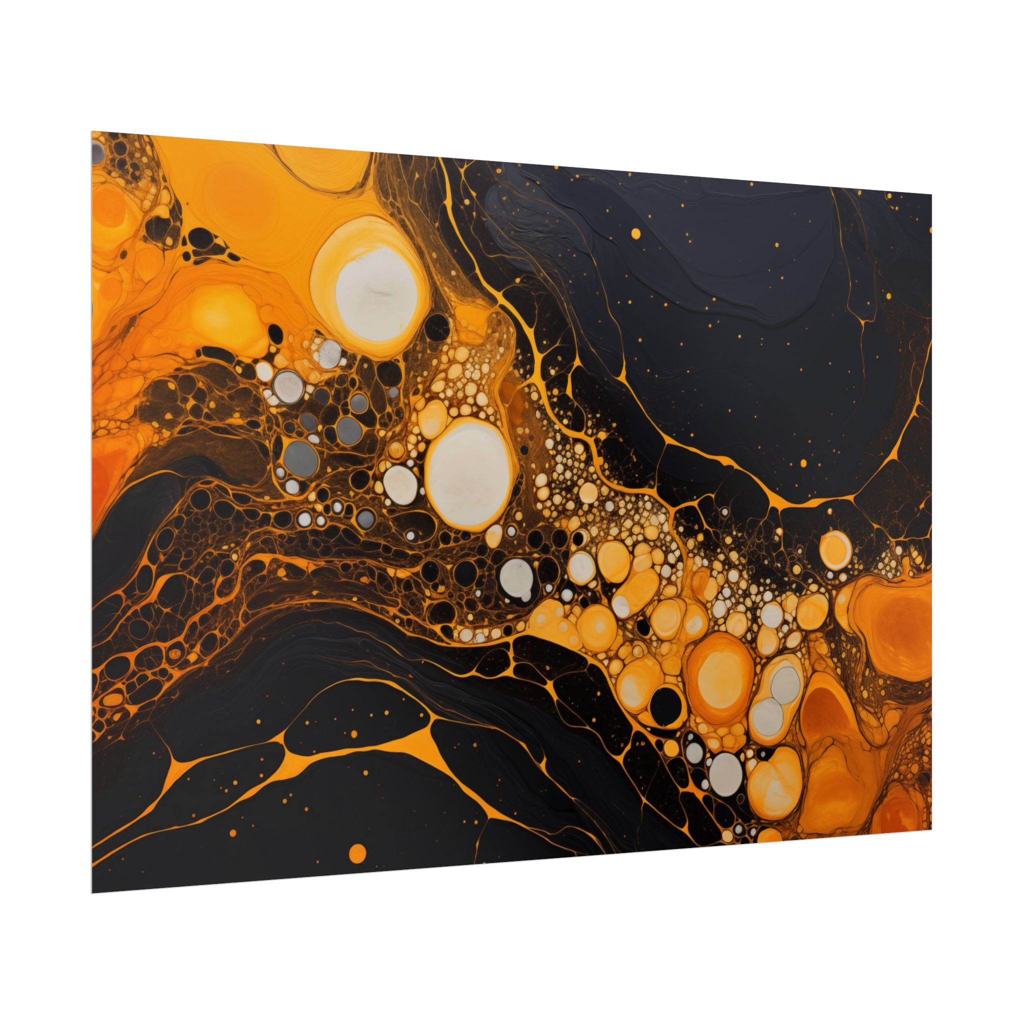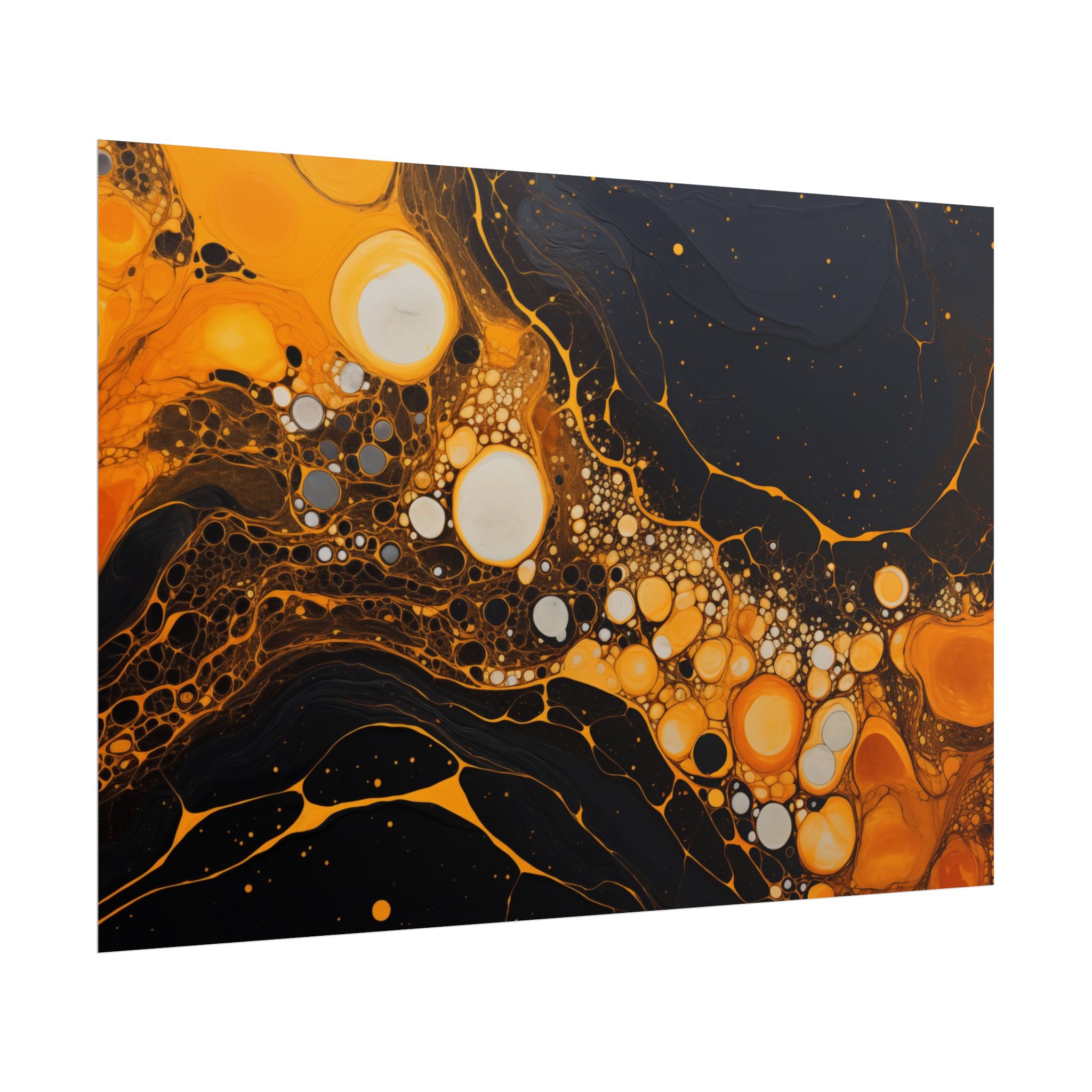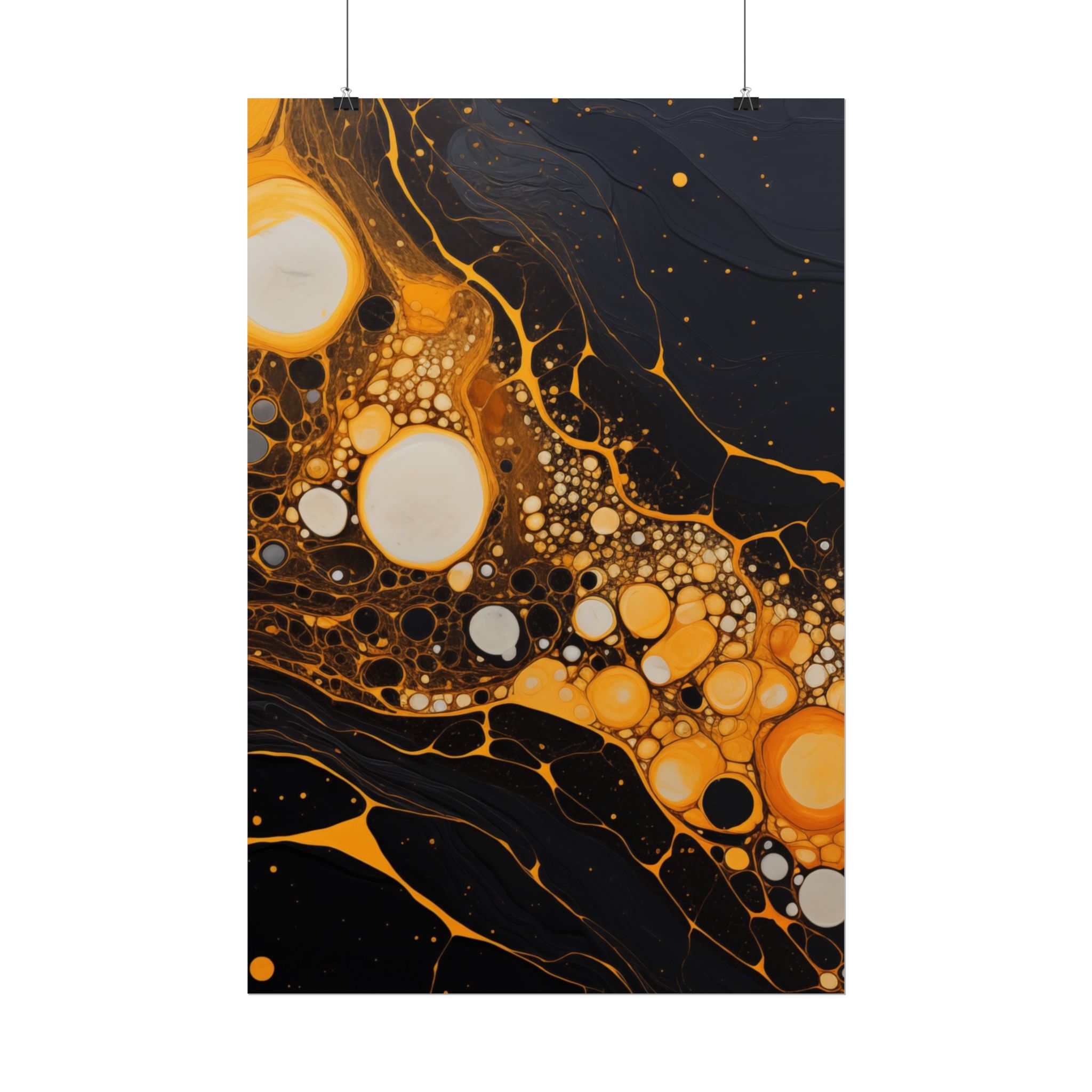 Elevate your space with this black, white, and yellow abstract art print featuring flowing liquid shapes and splashes of color. The intricate patterns and textures give depth and dimension, perfect for adding an artistic touch to any room. Ideal for art enthusiasts and home decor lovers, this canvas is a great addition to celebrations like birthdays, housewarmings, or art appreciation events.