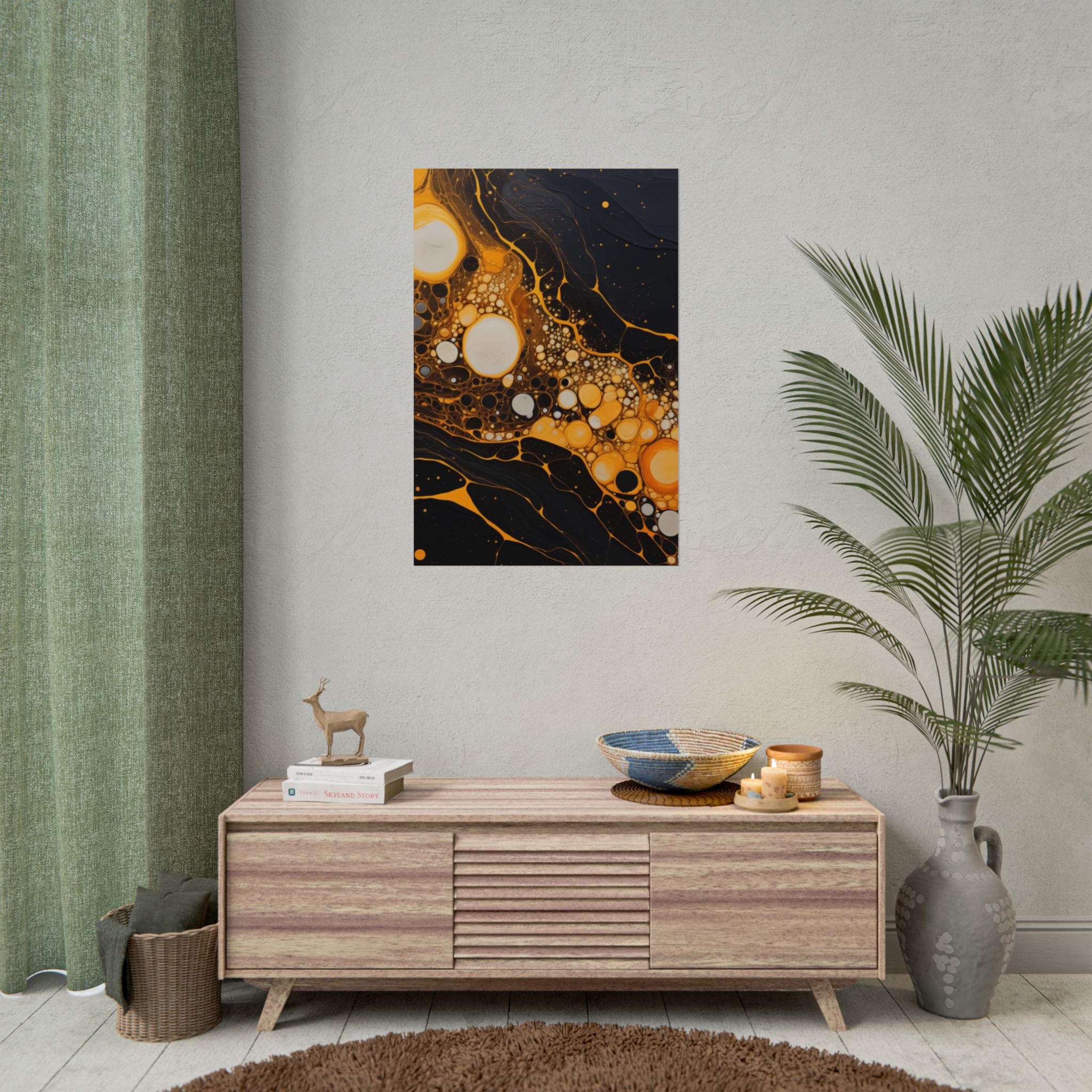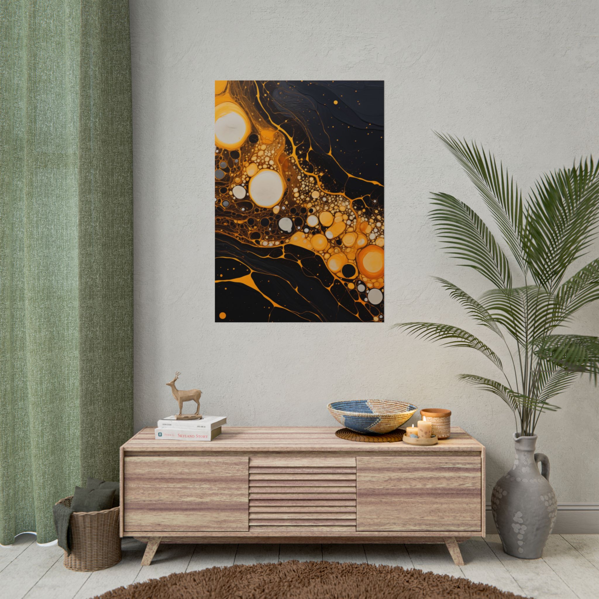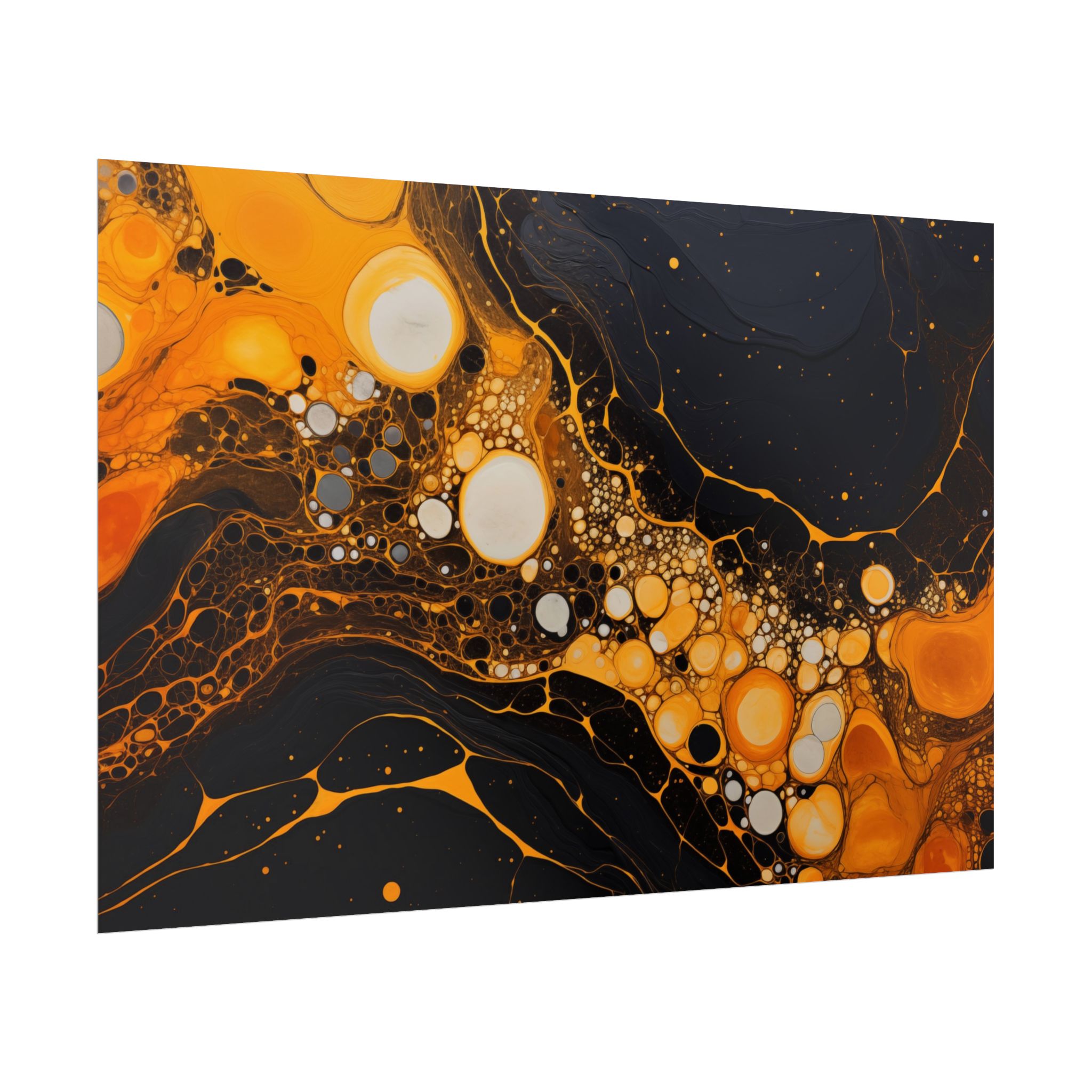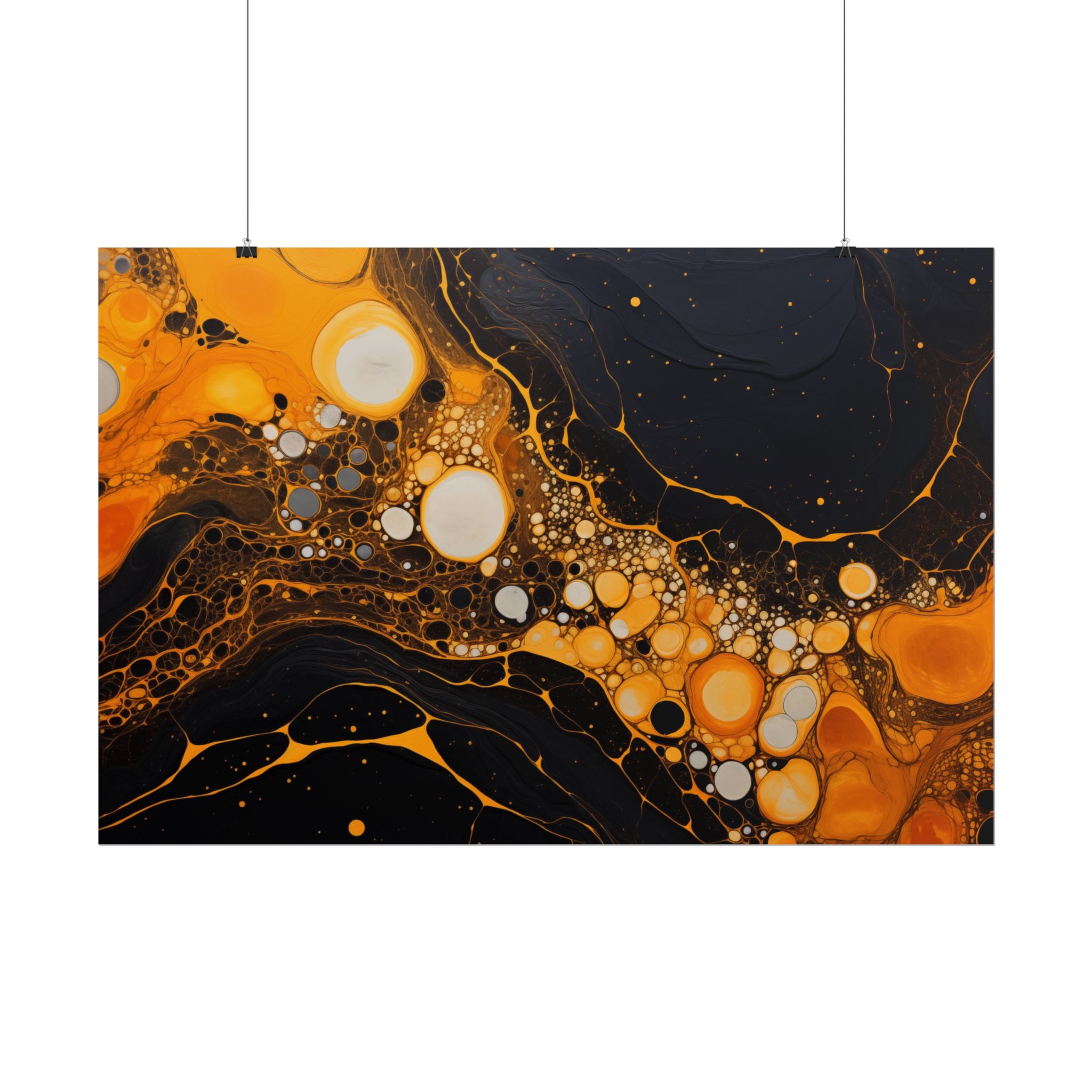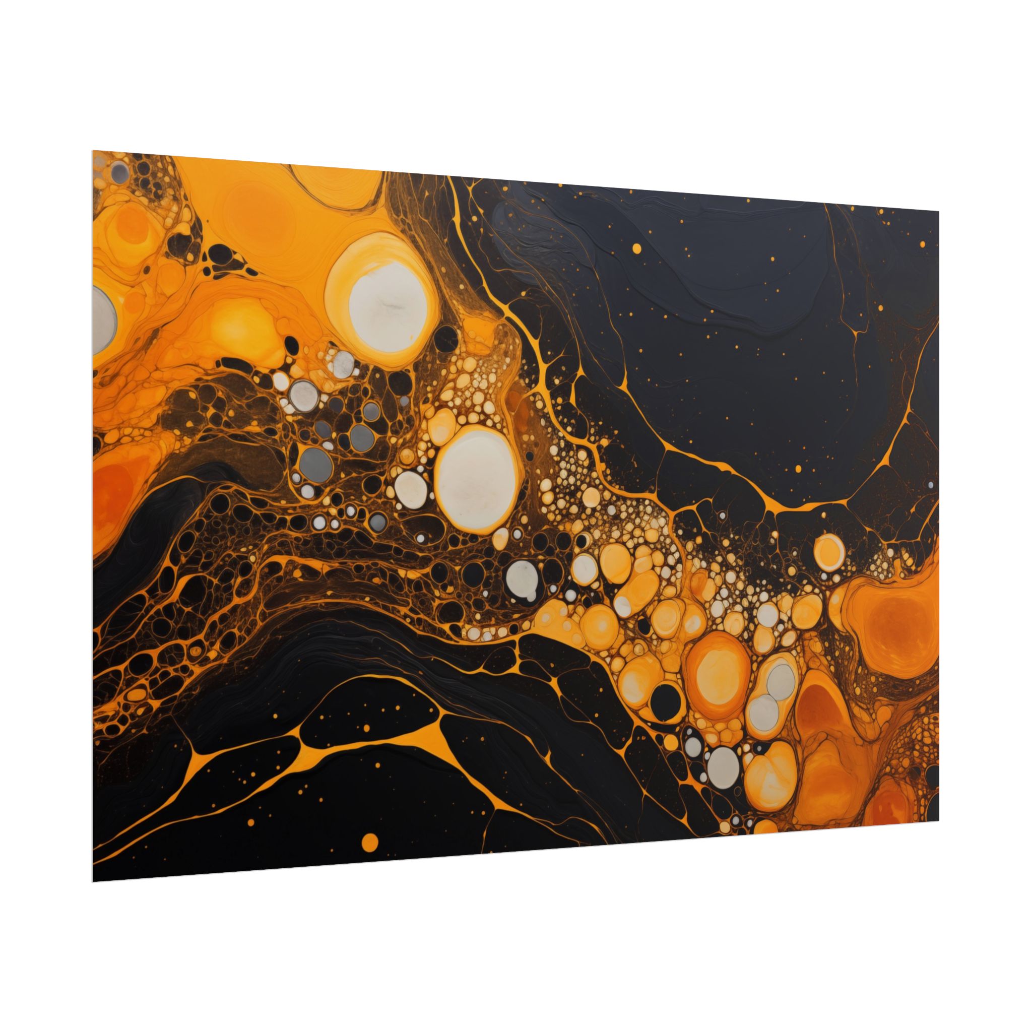 Elevate your space with this black, white, and yellow abstract art print featuring flowing liquid shapes and splashes of color. The intricate patterns and textures give depth and dimension, perfect for adding an artistic touch to any room. Ideal for art enthusiasts and home decor lovers, this canvas is a great addition to celebrations like birthdays, housewarmings, or art appreciation events.