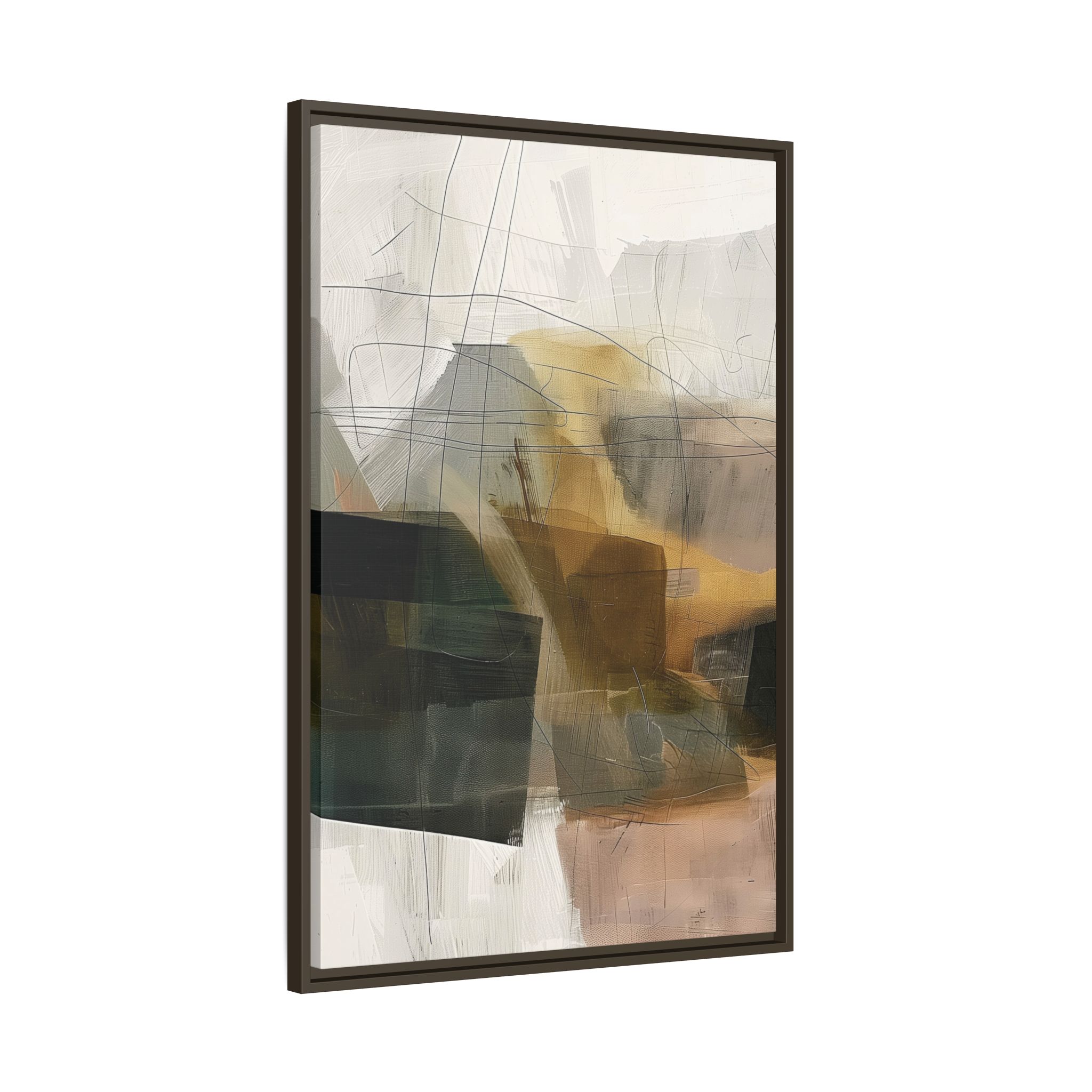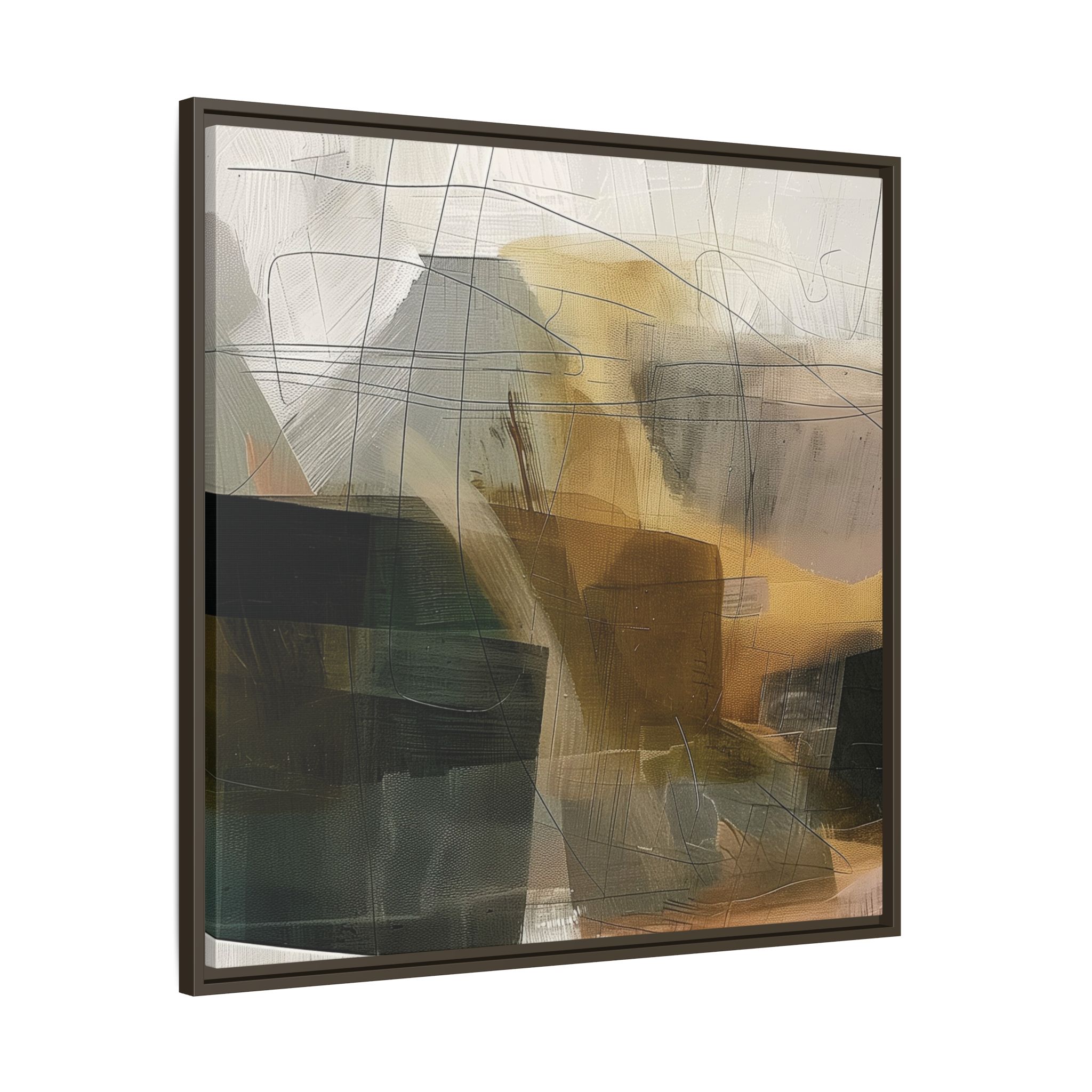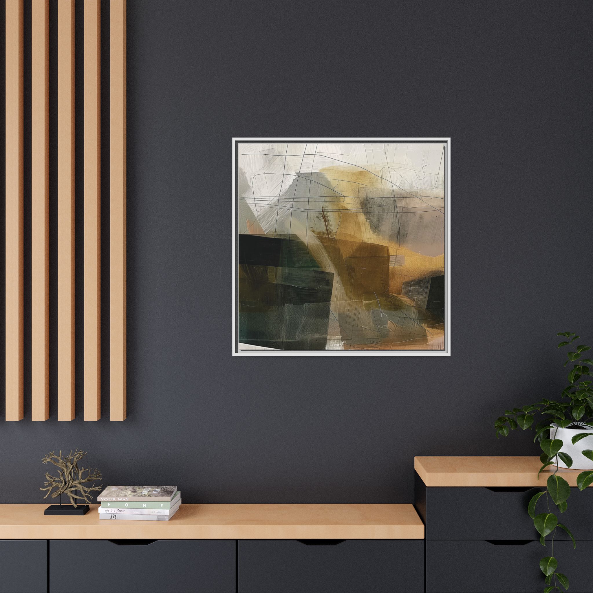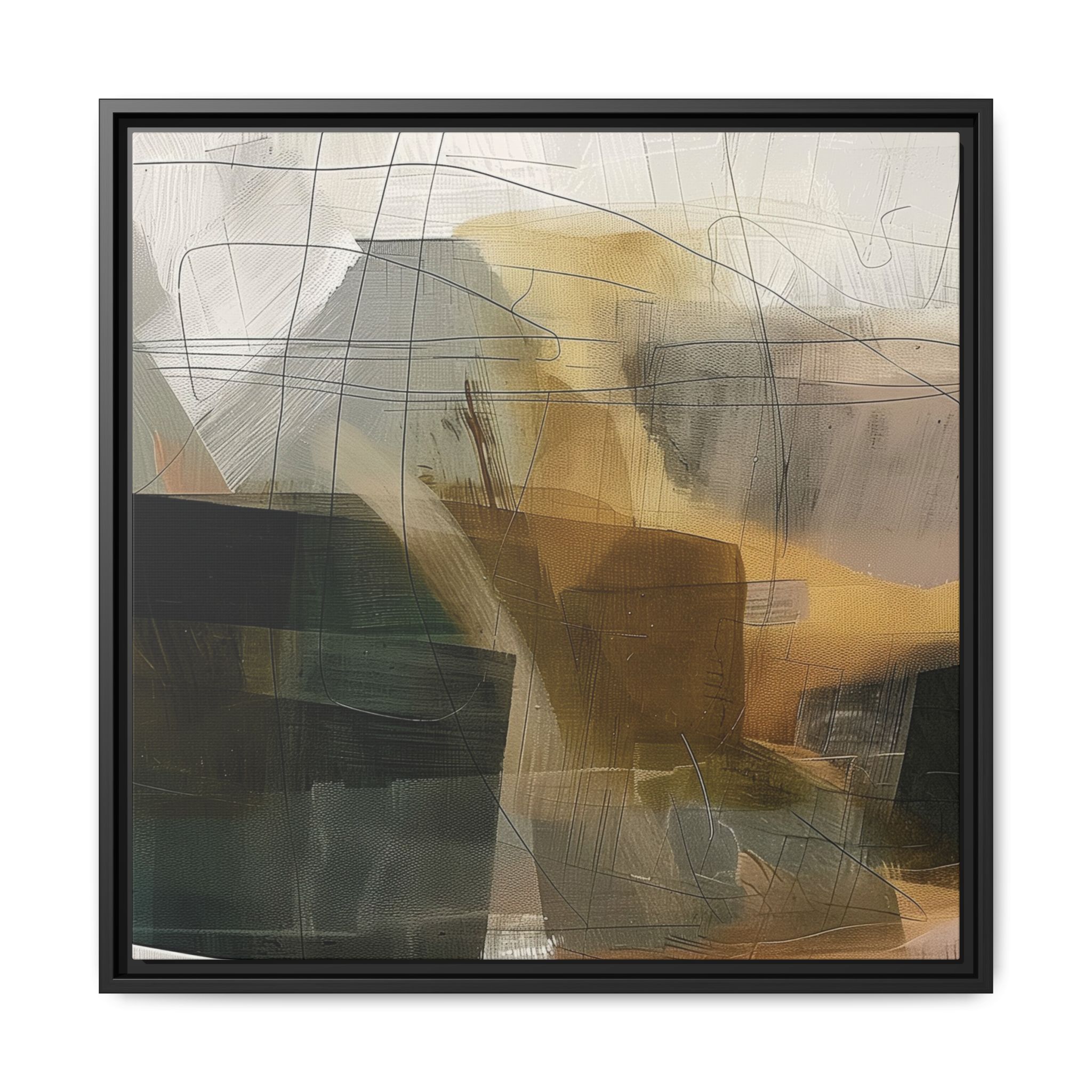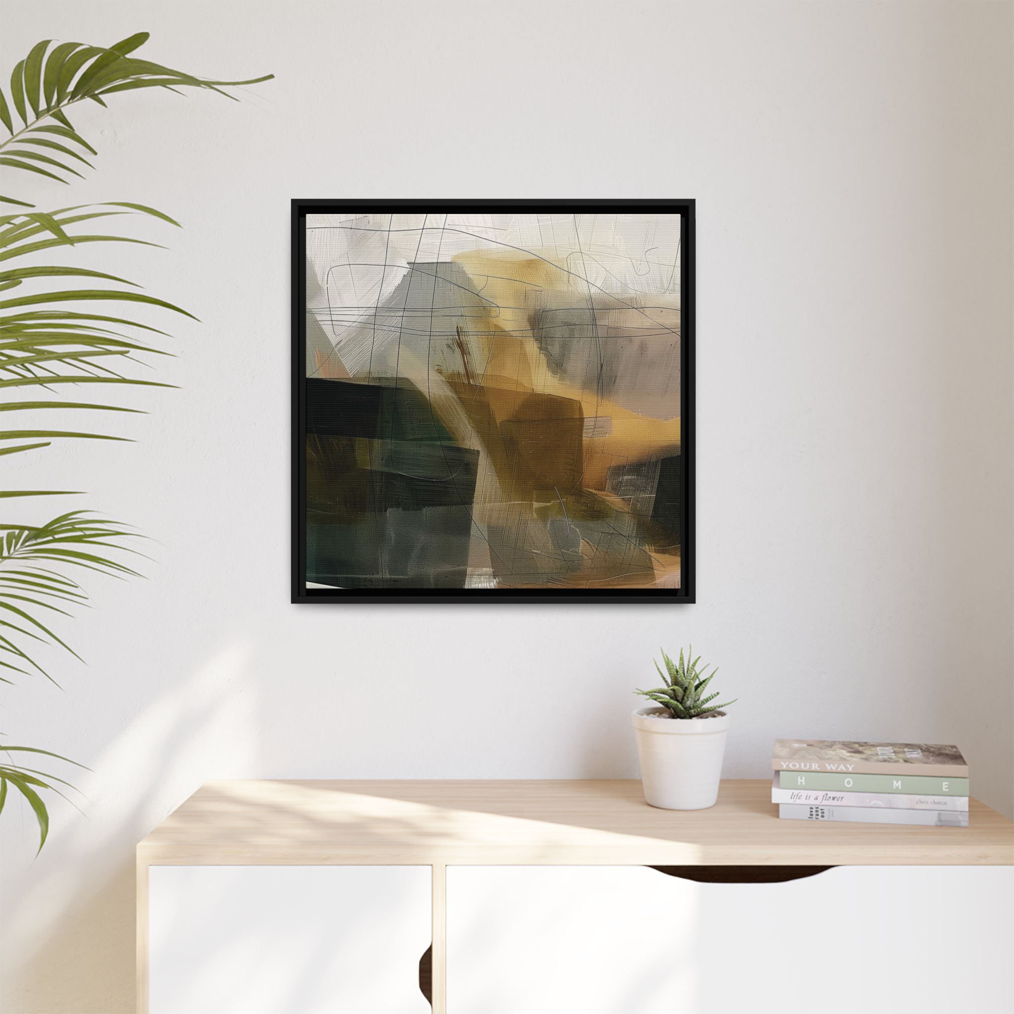 A modern art canvas featuring an abstract composition of shapes and lines, with a soft color palette inspired by nature. This minimalist design with a fresh multilayer feel is perfect for designers looking to add a touch of elegance to their space. The artwork can be rotated and presented in portrait and landscape direction to adapt to your design project. Ideal for home decoration, offices, and as a unique home design gifts.