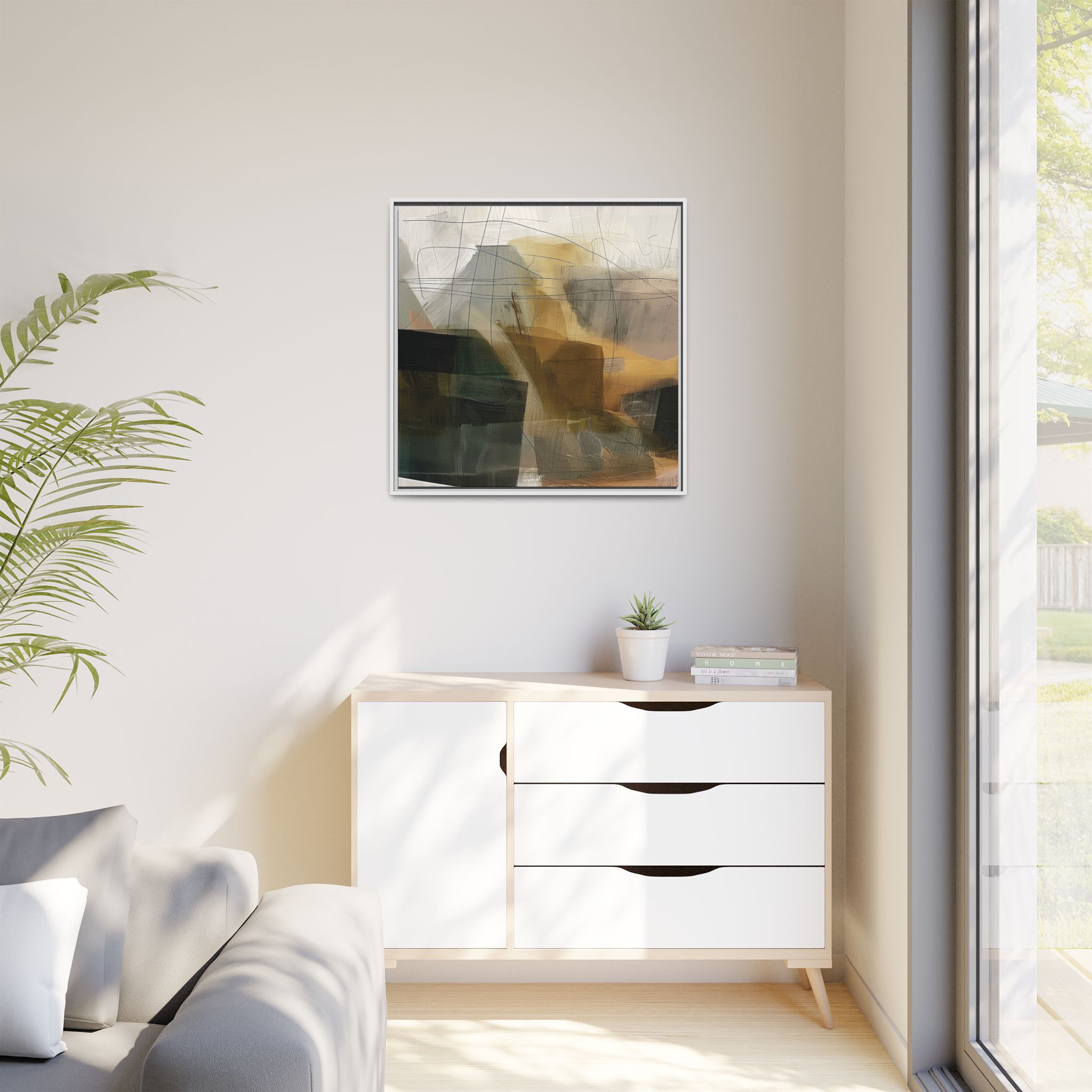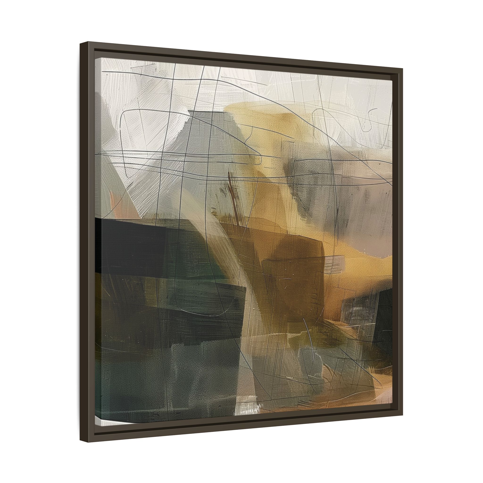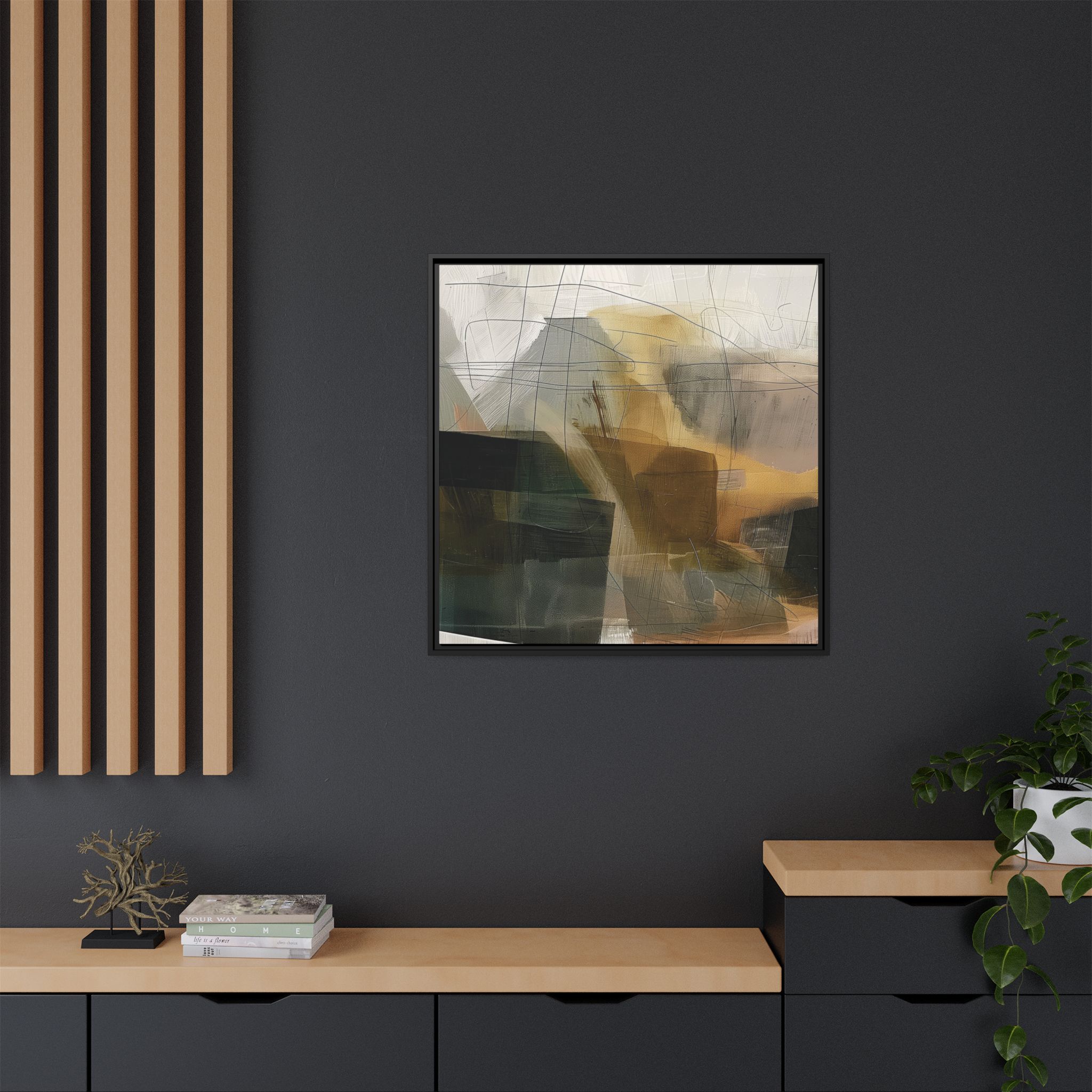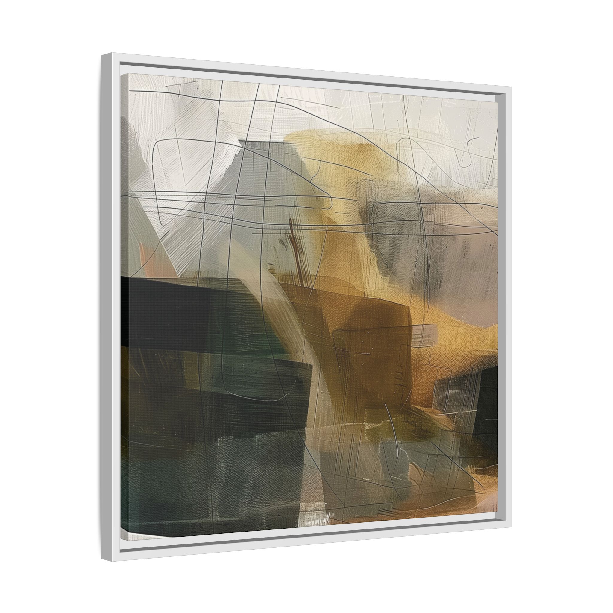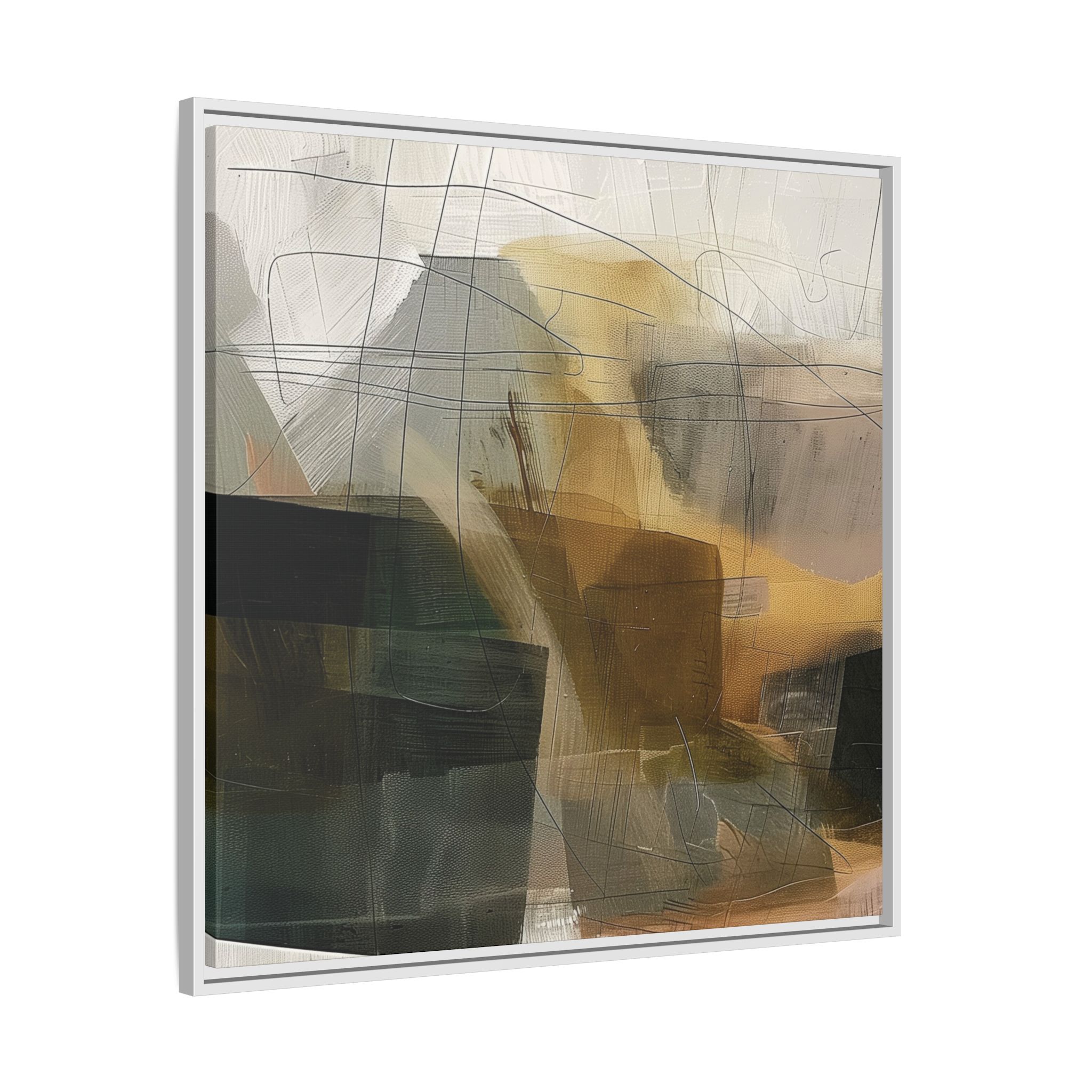 A modern art canvas featuring an abstract composition of shapes and lines, with a soft color palette inspired by nature. This minimalist design with a fresh multilayer feel is perfect for designers looking to add a touch of elegance to their space. The artwork can be rotated and presented in portrait and landscape direction to adapt to your design project. Ideal for home decoration, offices, and as a unique home design gifts.