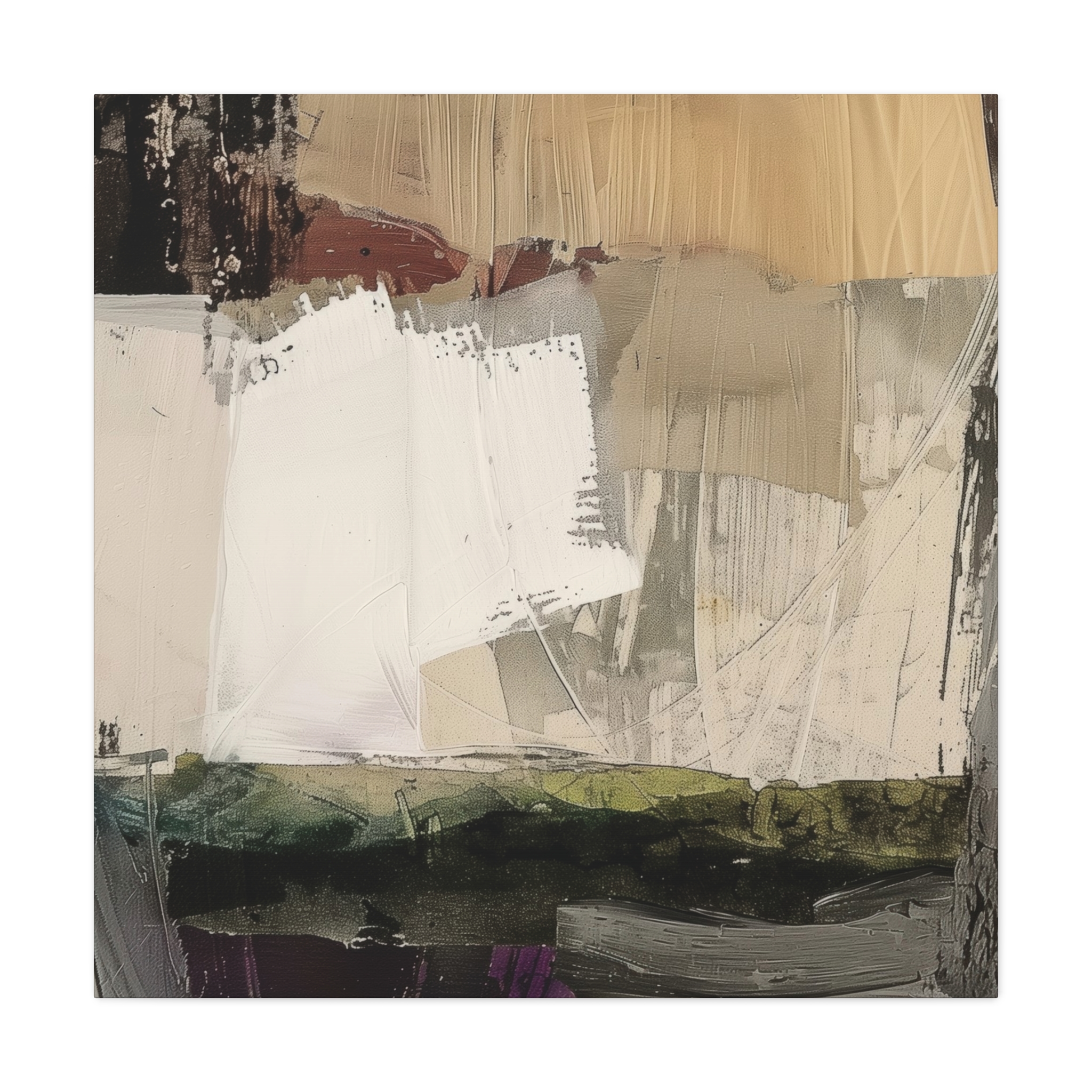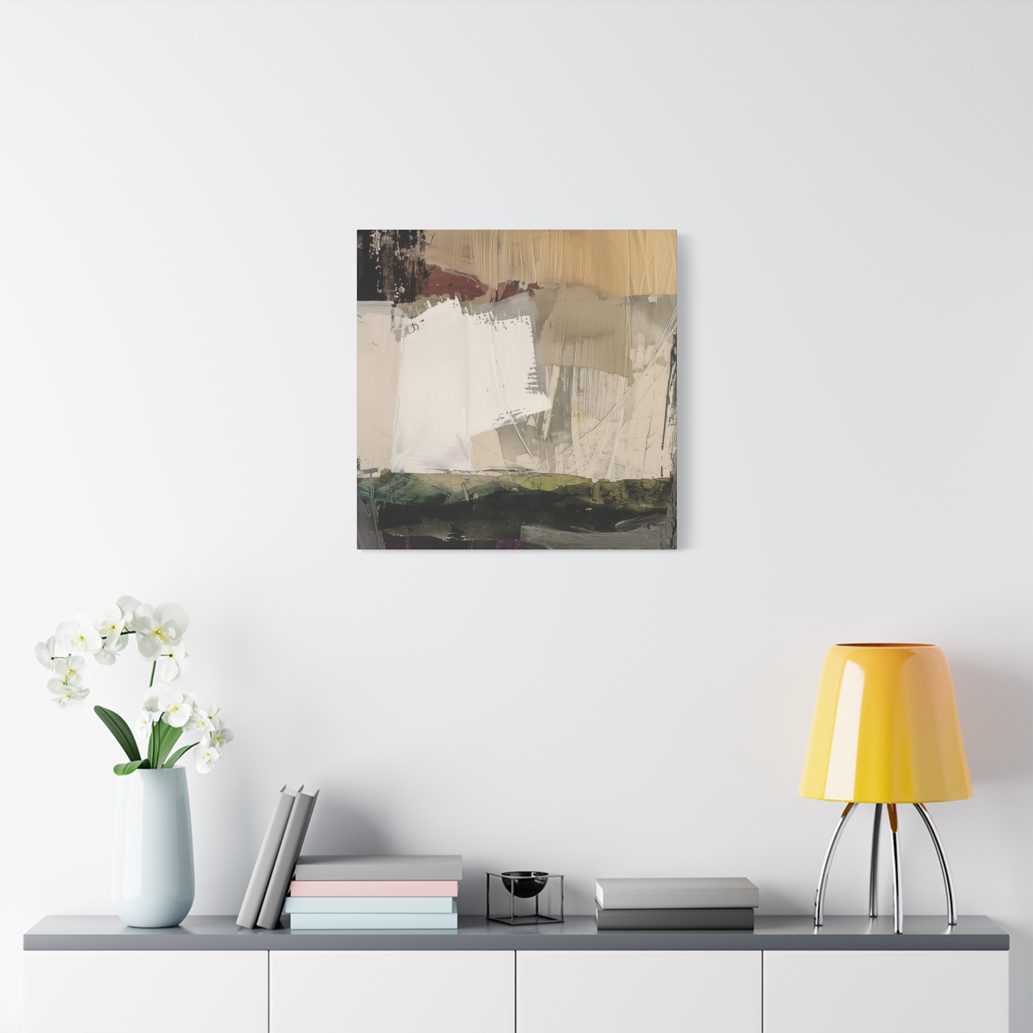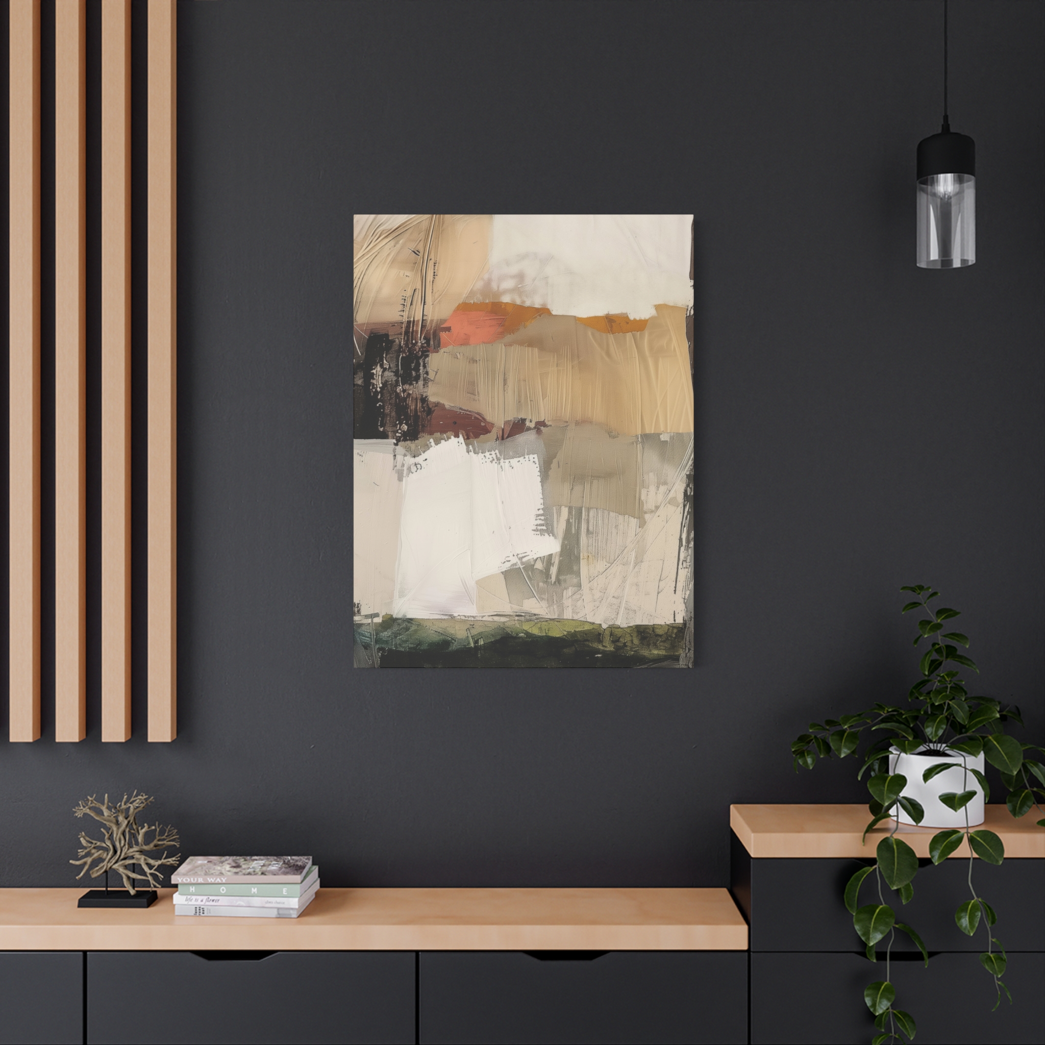 A modern art canvas featuring an abstract composition of shapes and lines, with a soft color palette inspired by nature. This minimalist design with a fresh multilayer feel is perfect for designers looking to add a touch of elegance to their space. The artwork can be rotated and presented in portrait and landscape direction to adapt to your design project. Ideal for home decoration, offices, and as a unique home design gifts.