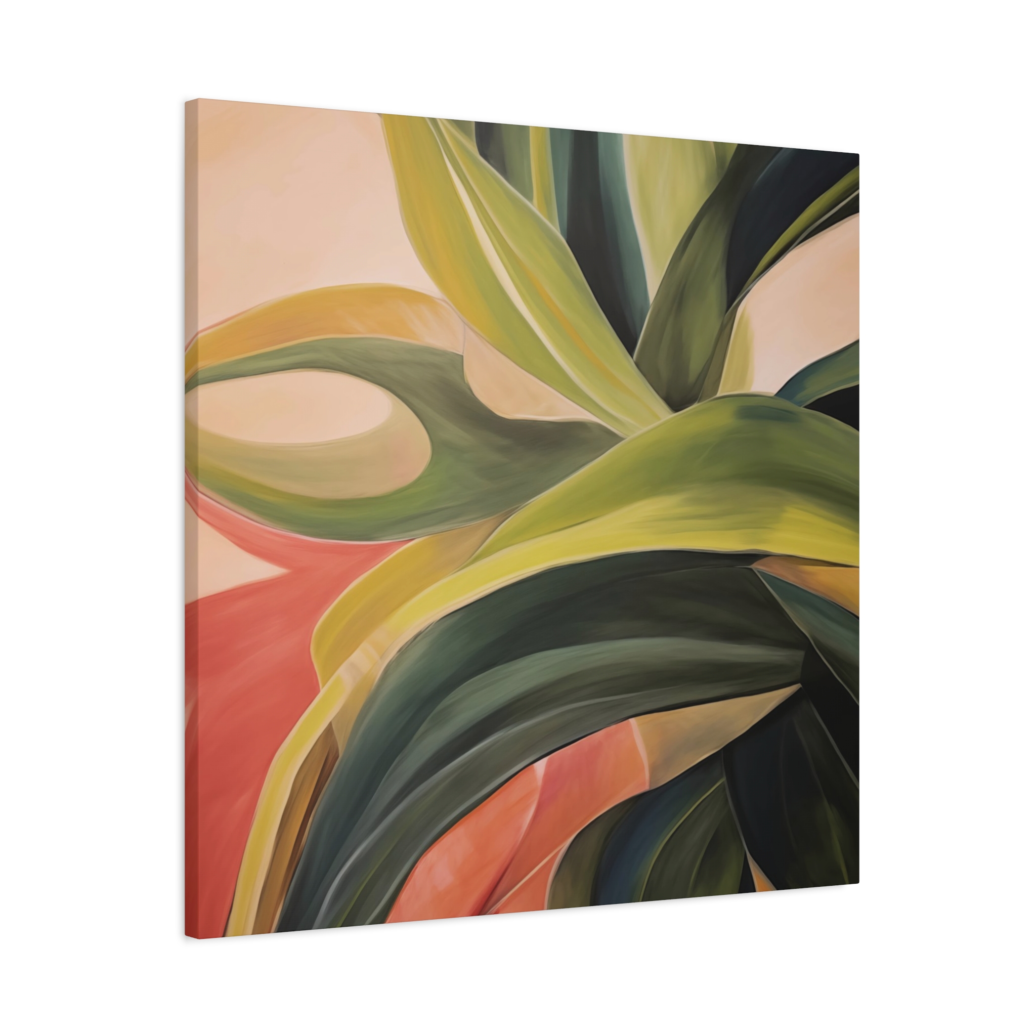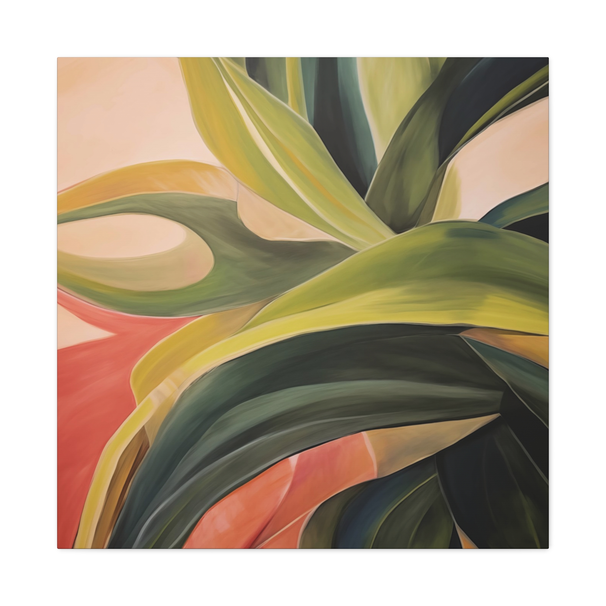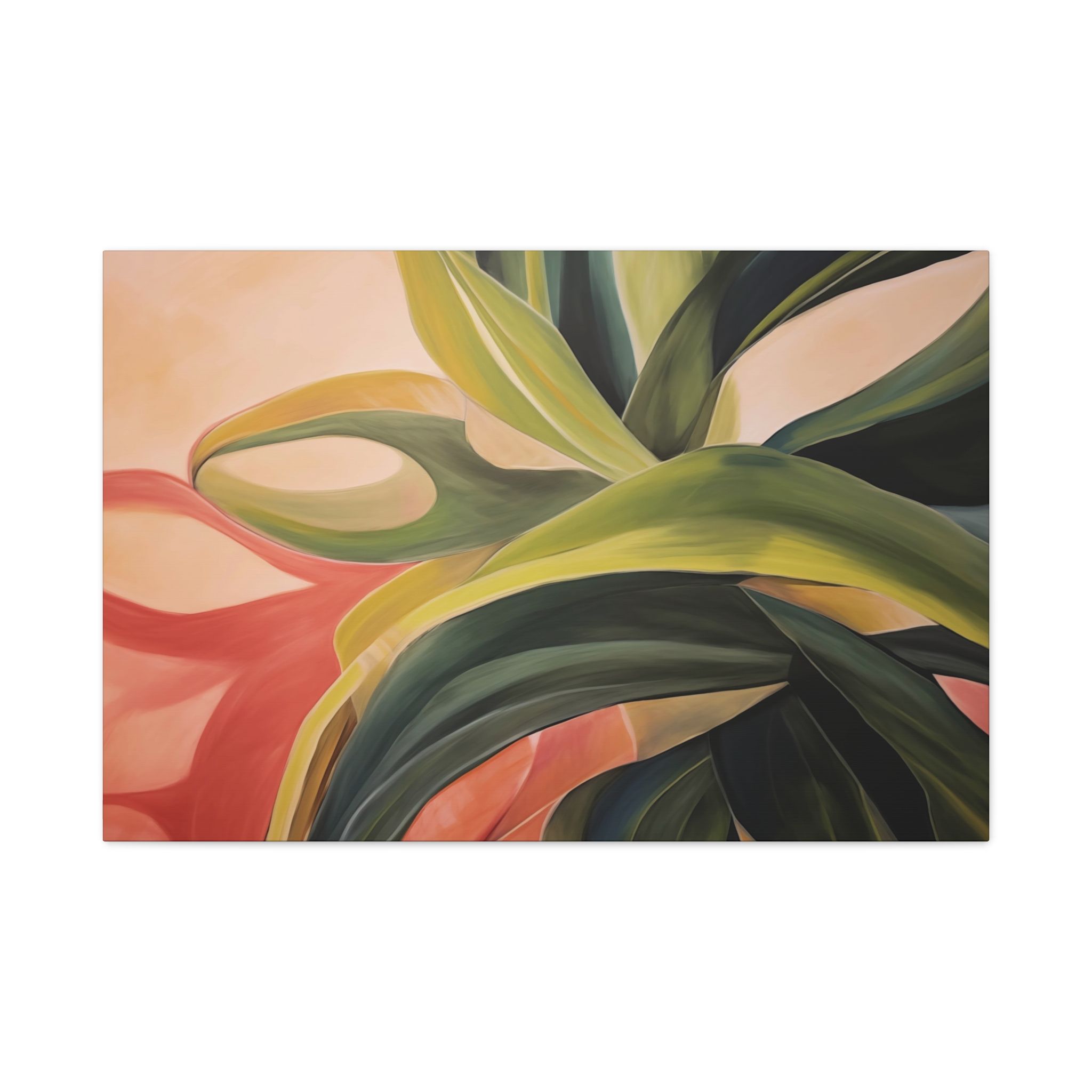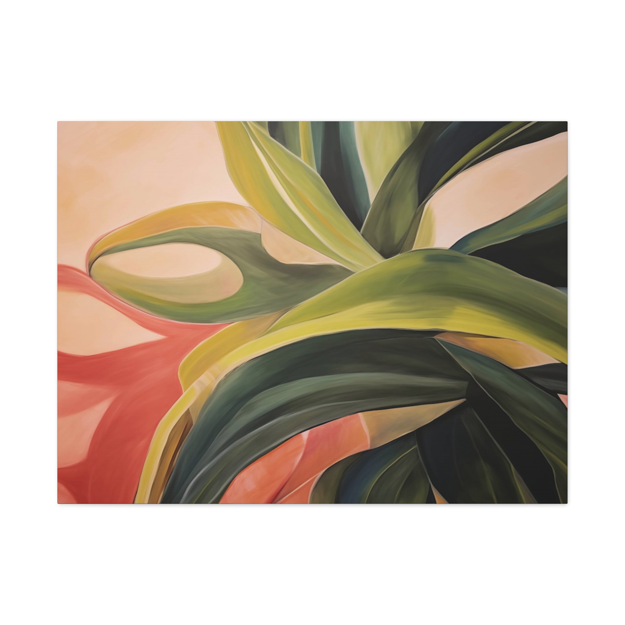 A nature botanical inspired art canvas featuring green shades and a tropical warm background, creating a serene and natural vibe. Perfect for adding a touch of sophistication to any room, this canvas is relevant for home decor enthusiasts, art lovers, and those looking to elevate their space. Ideal for gifting during birthdays, housewarmings, or as a special treat for yourself.