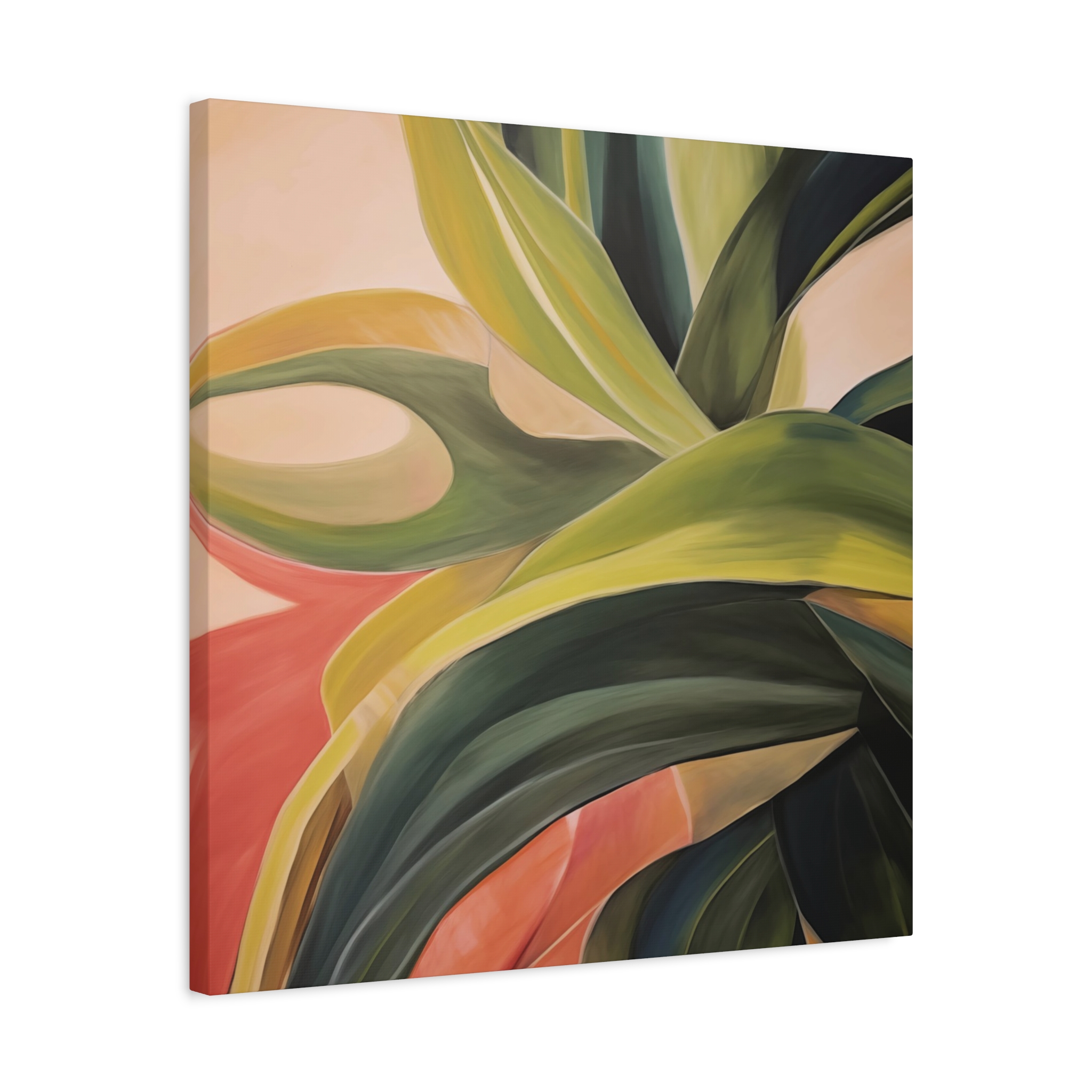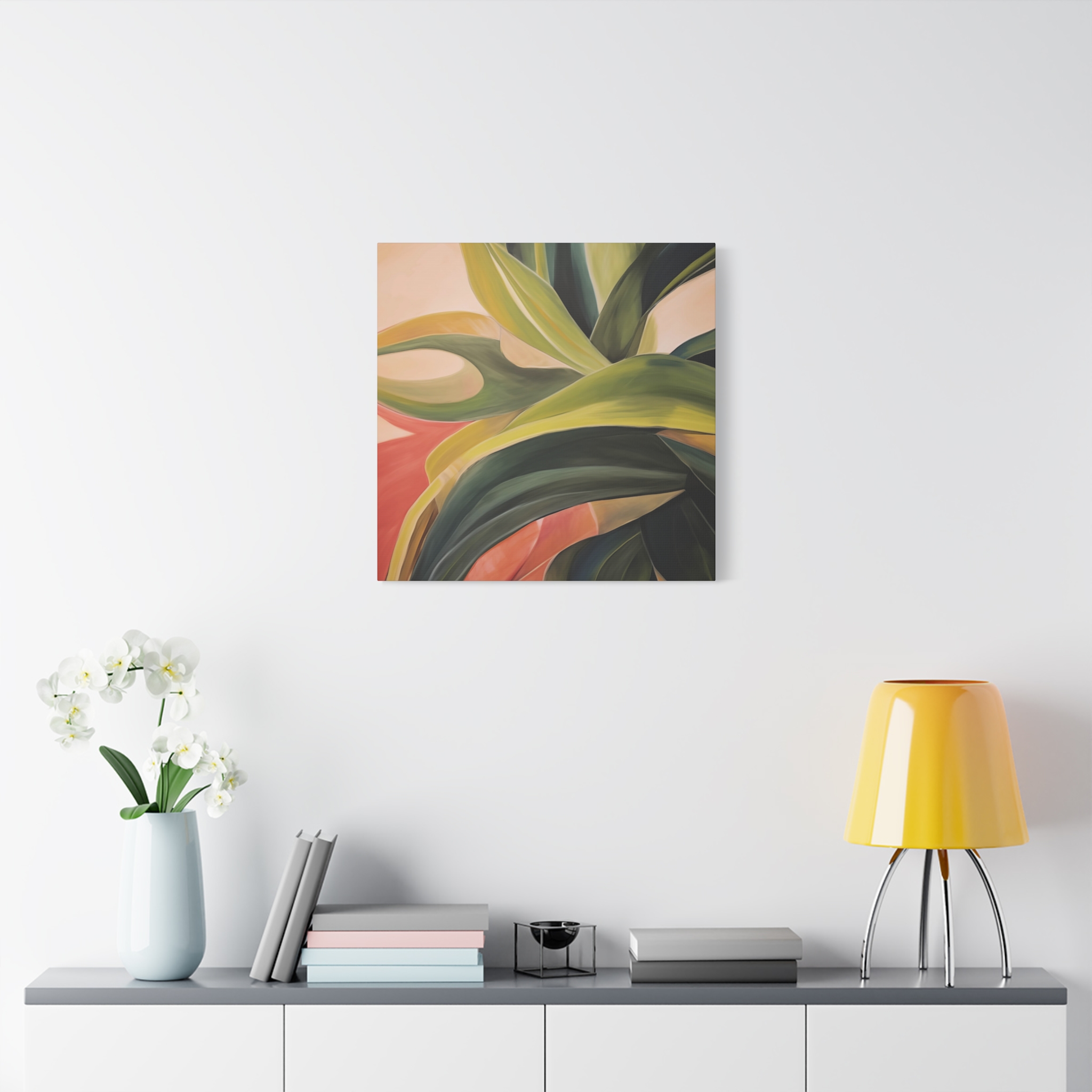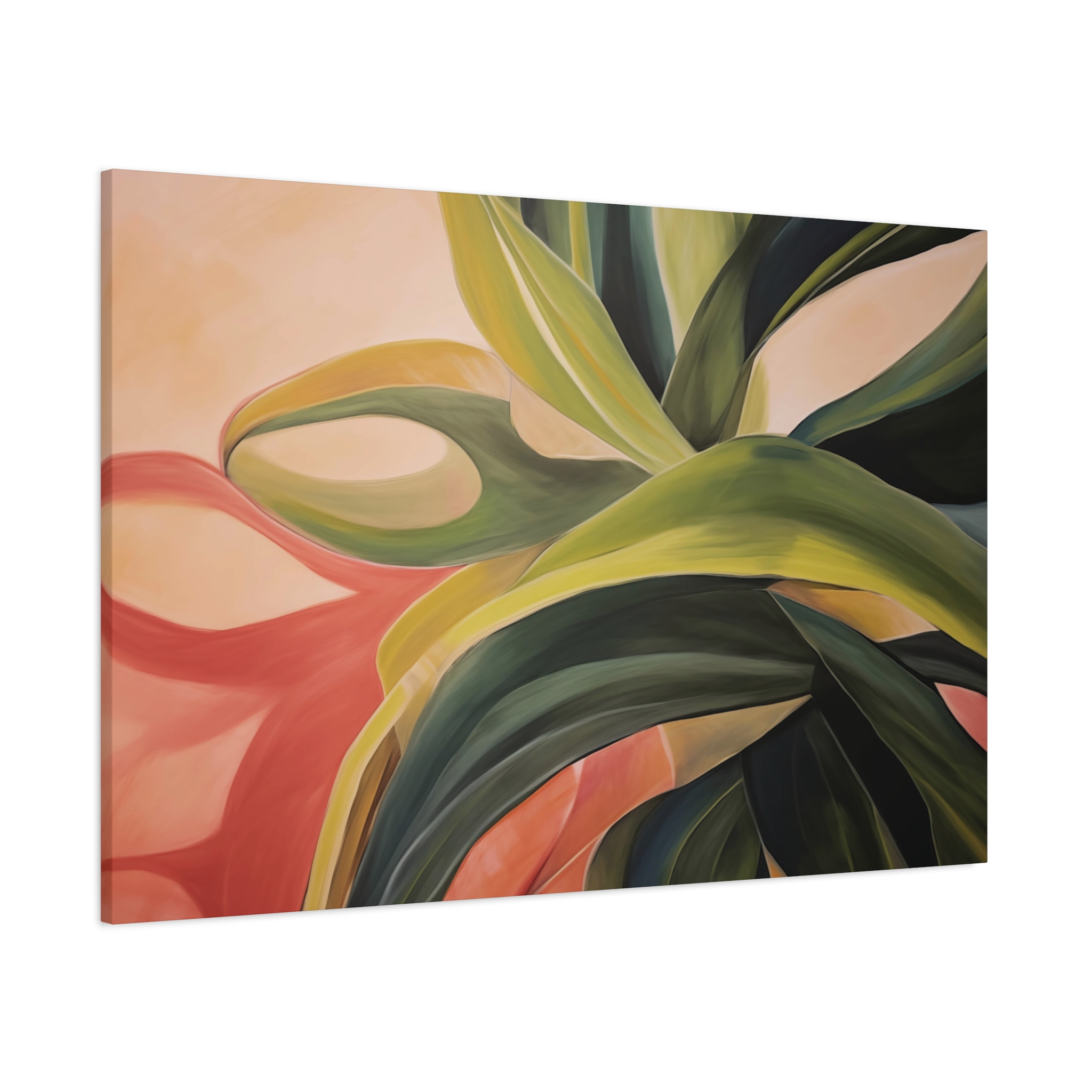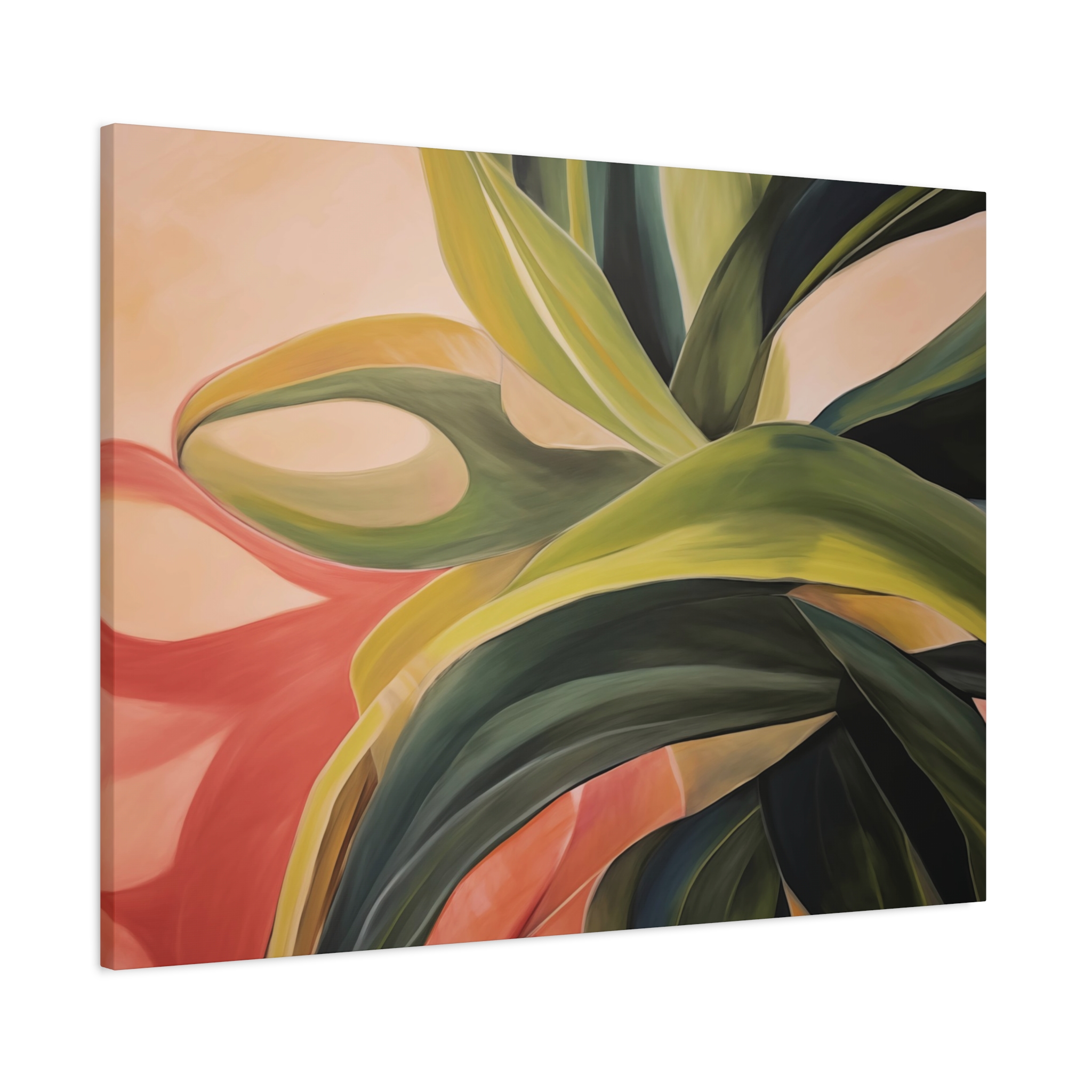 A nature botanical inspired art canvas featuring green shades and a tropical warm background, creating a serene and natural vibe. Perfect for adding a touch of sophistication to any room, this canvas is relevant for home decor enthusiasts, art lovers, and those looking to elevate their space. Ideal for gifting during birthdays, housewarmings, or as a special treat for yourself.