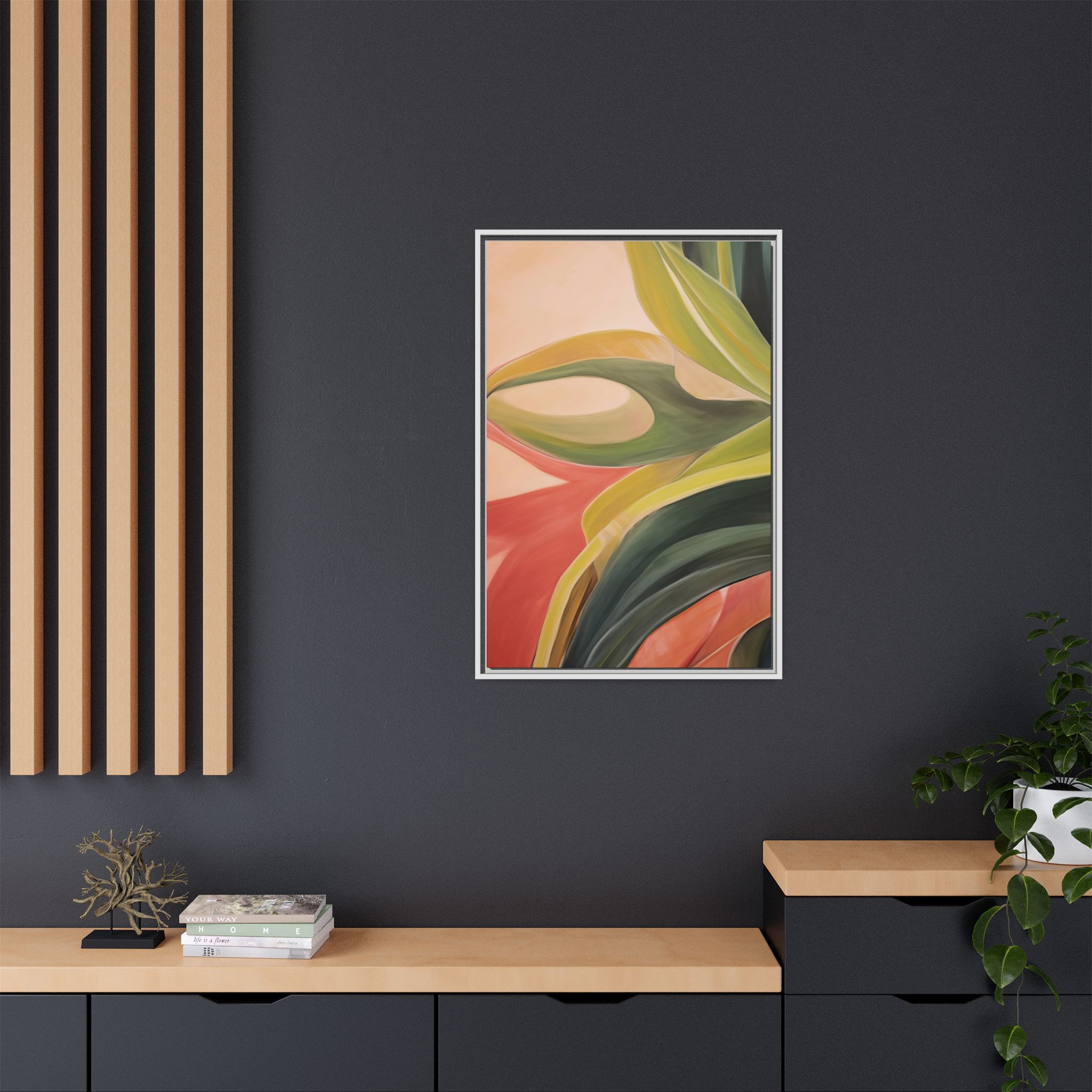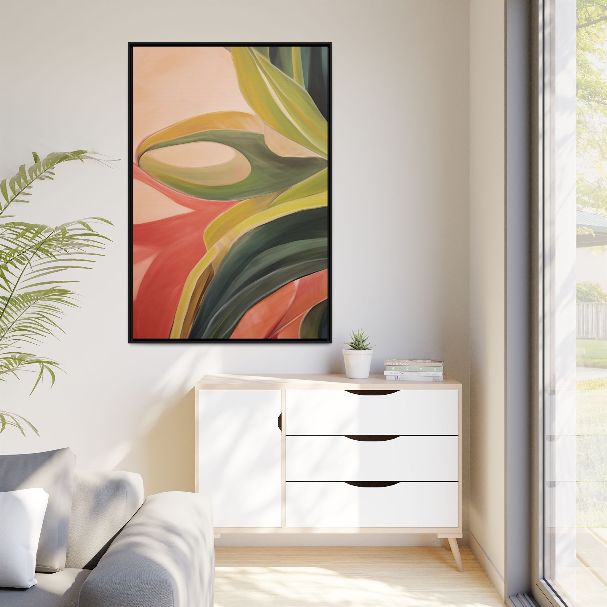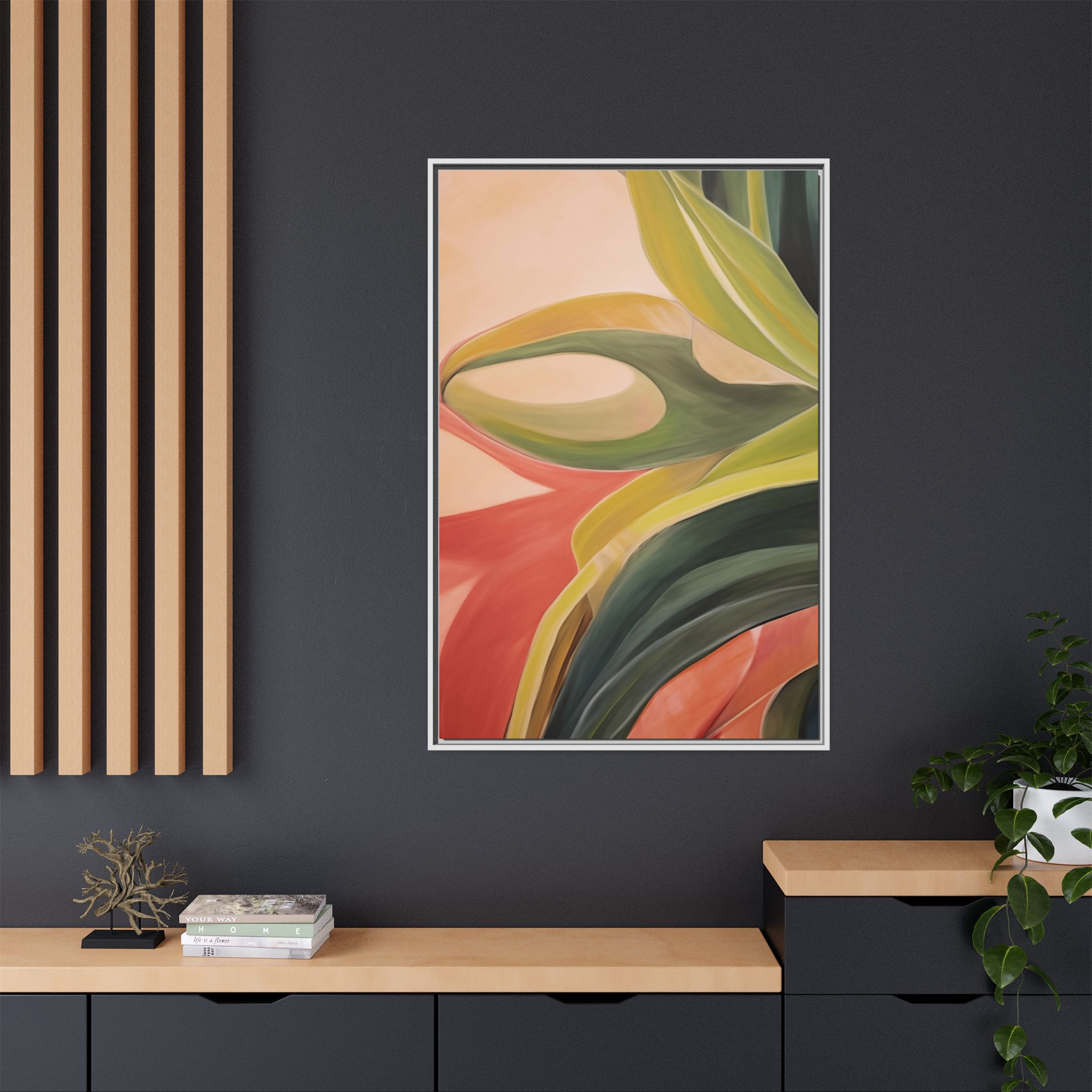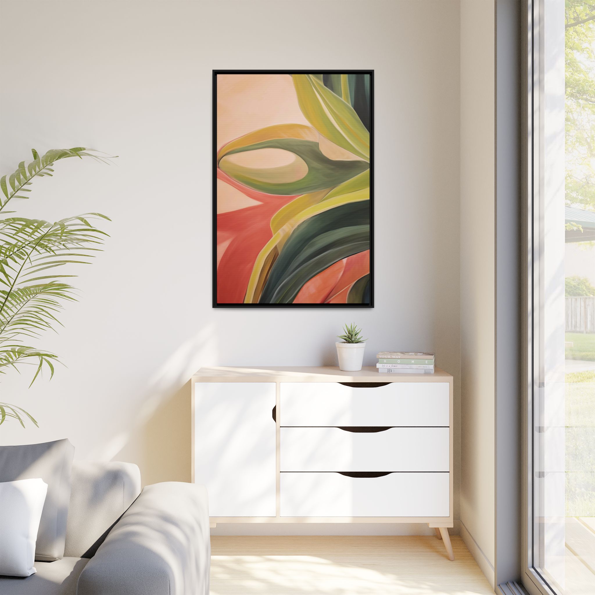 A nature botanical inspired art canvas featuring green shades and a tropical warm background, creating a serene and natural vibe. Perfect for adding a touch of sophistication to any room, this canvas is relevant for home decor enthusiasts, art lovers, and those looking to elevate their space. Ideal for gifting during birthdays, housewarmings, or as a special treat for yourself.