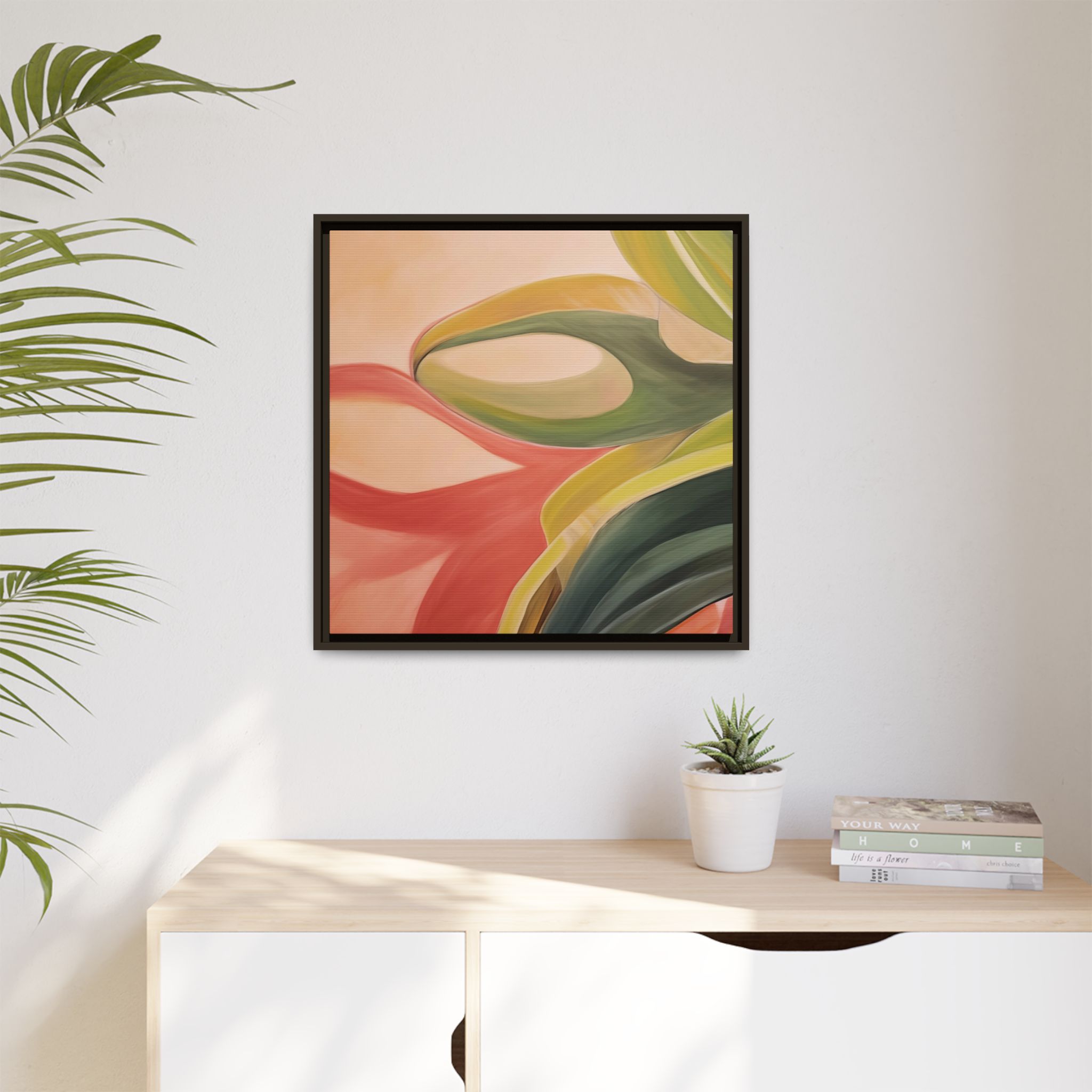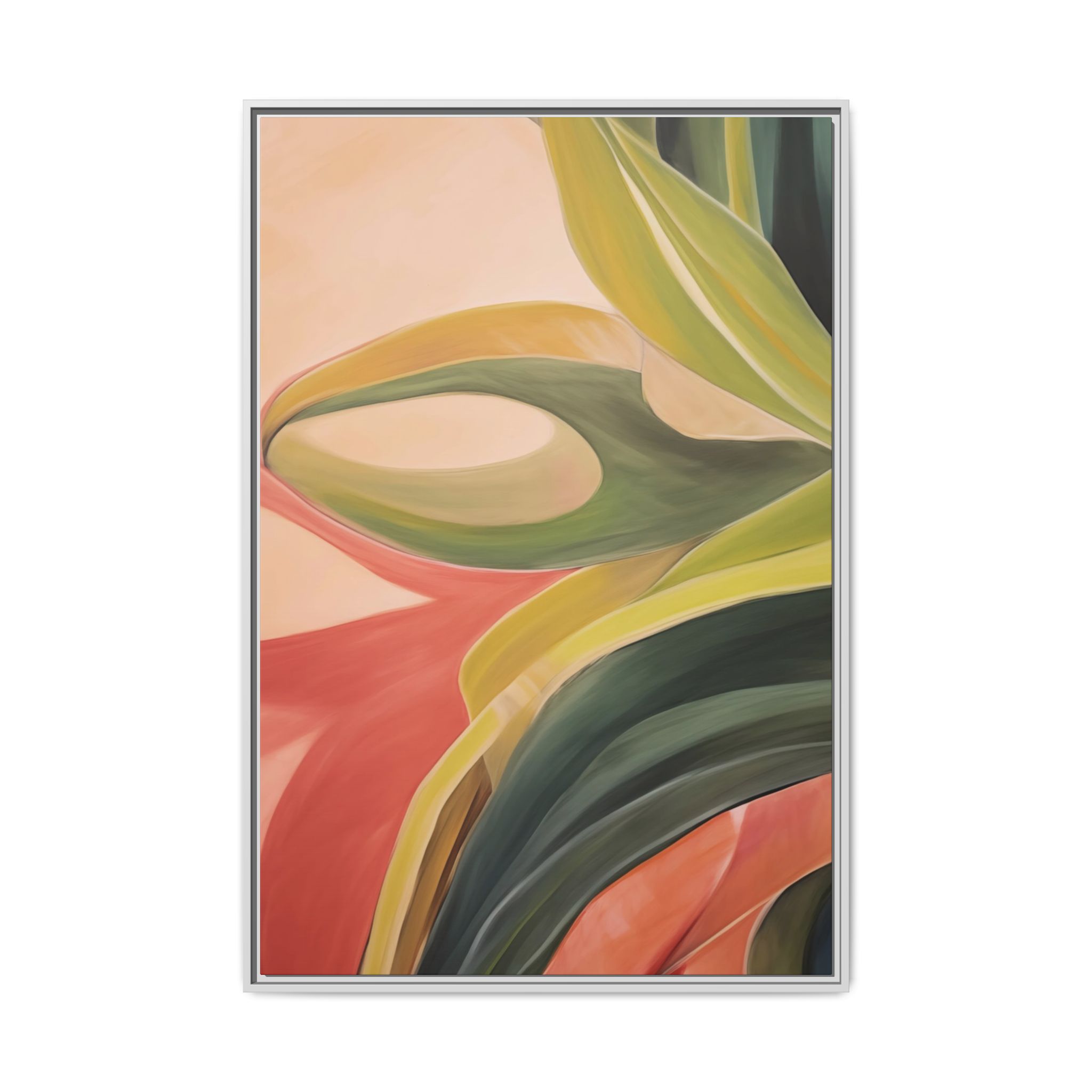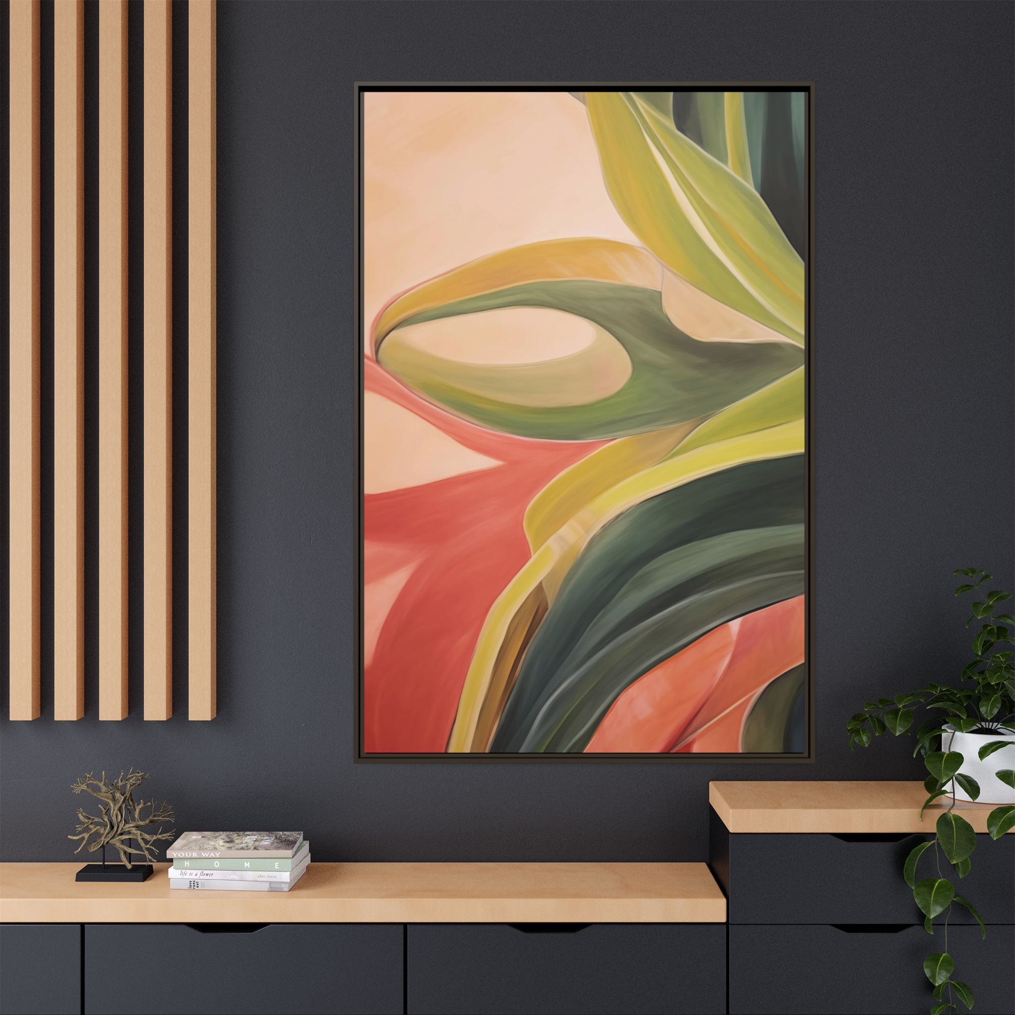 A nature botanical inspired art canvas featuring green shades and a tropical warm background, creating a serene and natural vibe. Perfect for adding a touch of sophistication to any room, this canvas is relevant for home decor enthusiasts, art lovers, and those looking to elevate their space. Ideal for gifting during birthdays, housewarmings, or as a special treat for yourself.