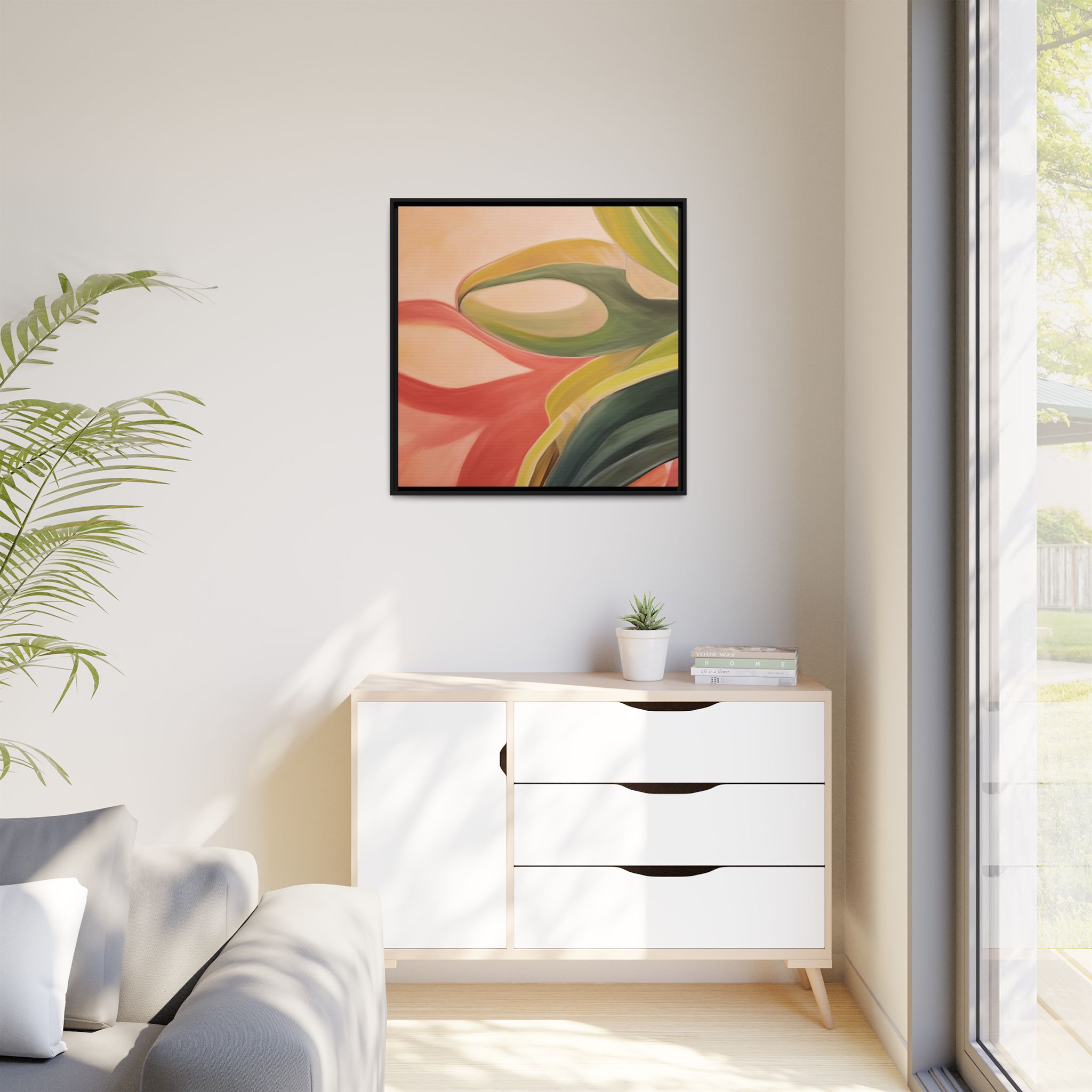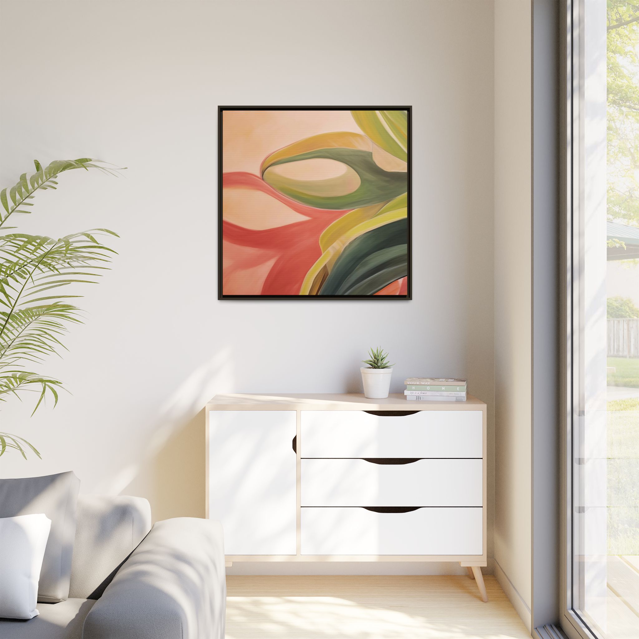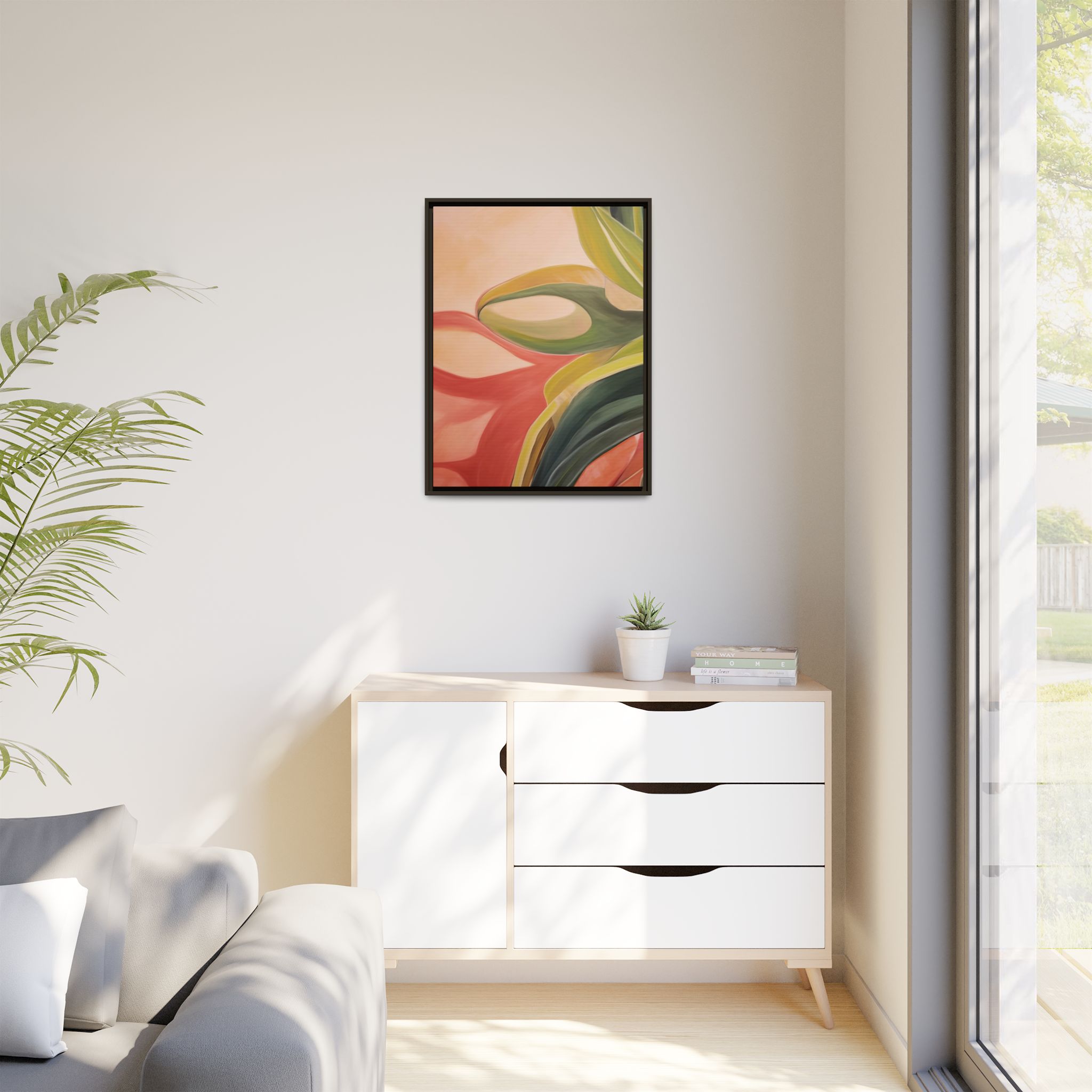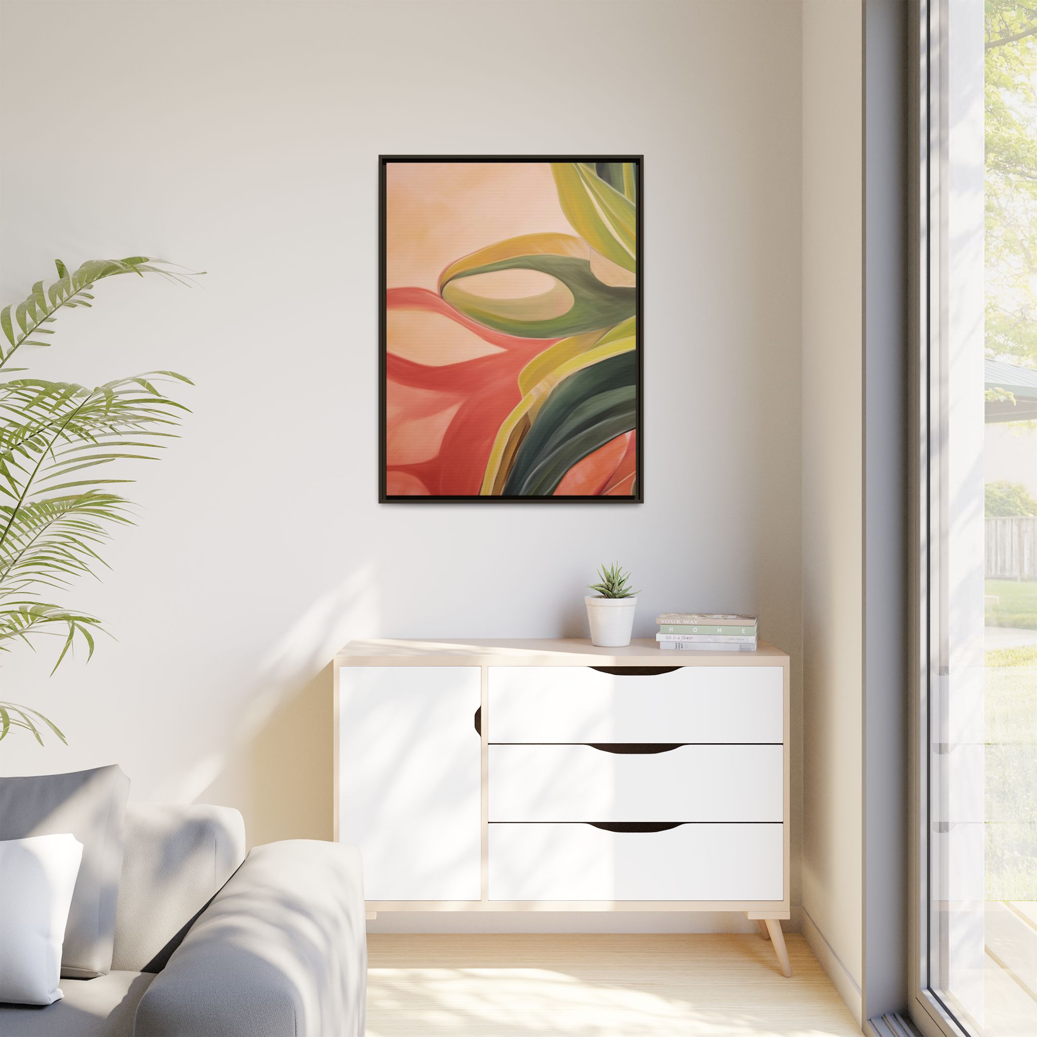 A nature botanical inspired art canvas featuring green shades and a tropical warm background, creating a serene and natural vibe. Perfect for adding a touch of sophistication to any room, this canvas is relevant for home decor enthusiasts, art lovers, and those looking to elevate their space. Ideal for gifting during birthdays, housewarmings, or as a special treat for yourself.