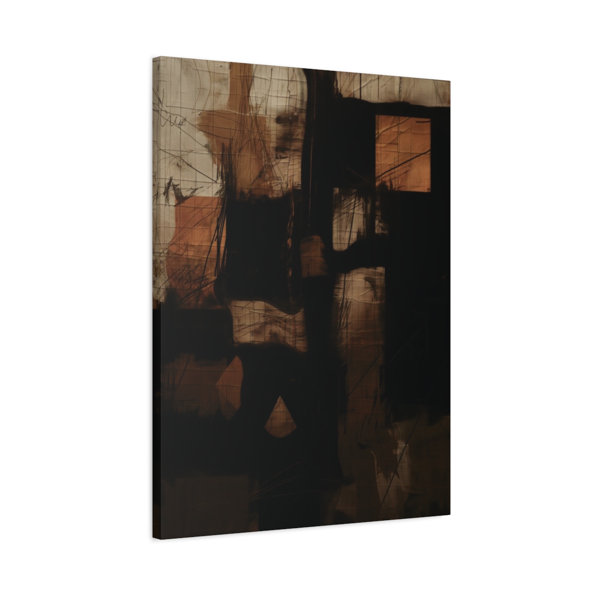 As part of the painted Abstracts collection, “Loading” in brown is acrylic paint inspired with sketch details and acrylic paint style. It is given depth, body and rigor thanks to a graphically simulated papyrus texture that is worked into the design. The agressive lineworks that scrawl the work alude to a a rapid expression of ideas and bring life and drama into the work which is balanced by the muted colours and forms.