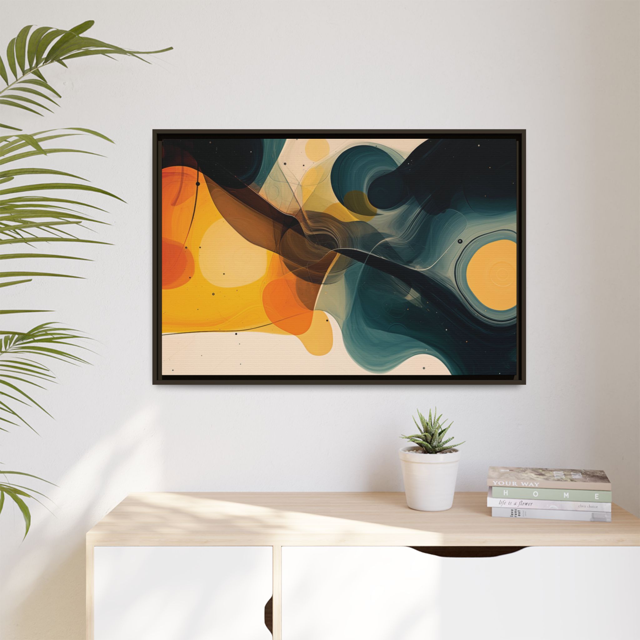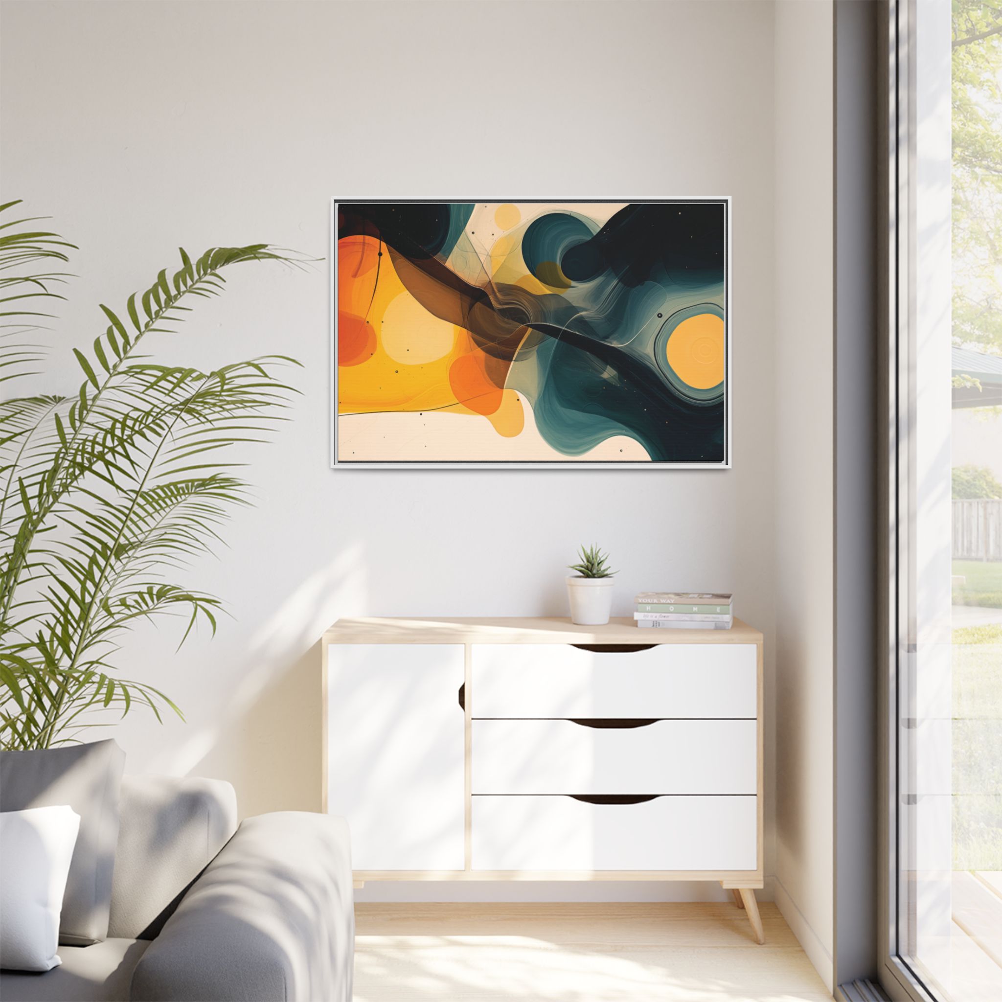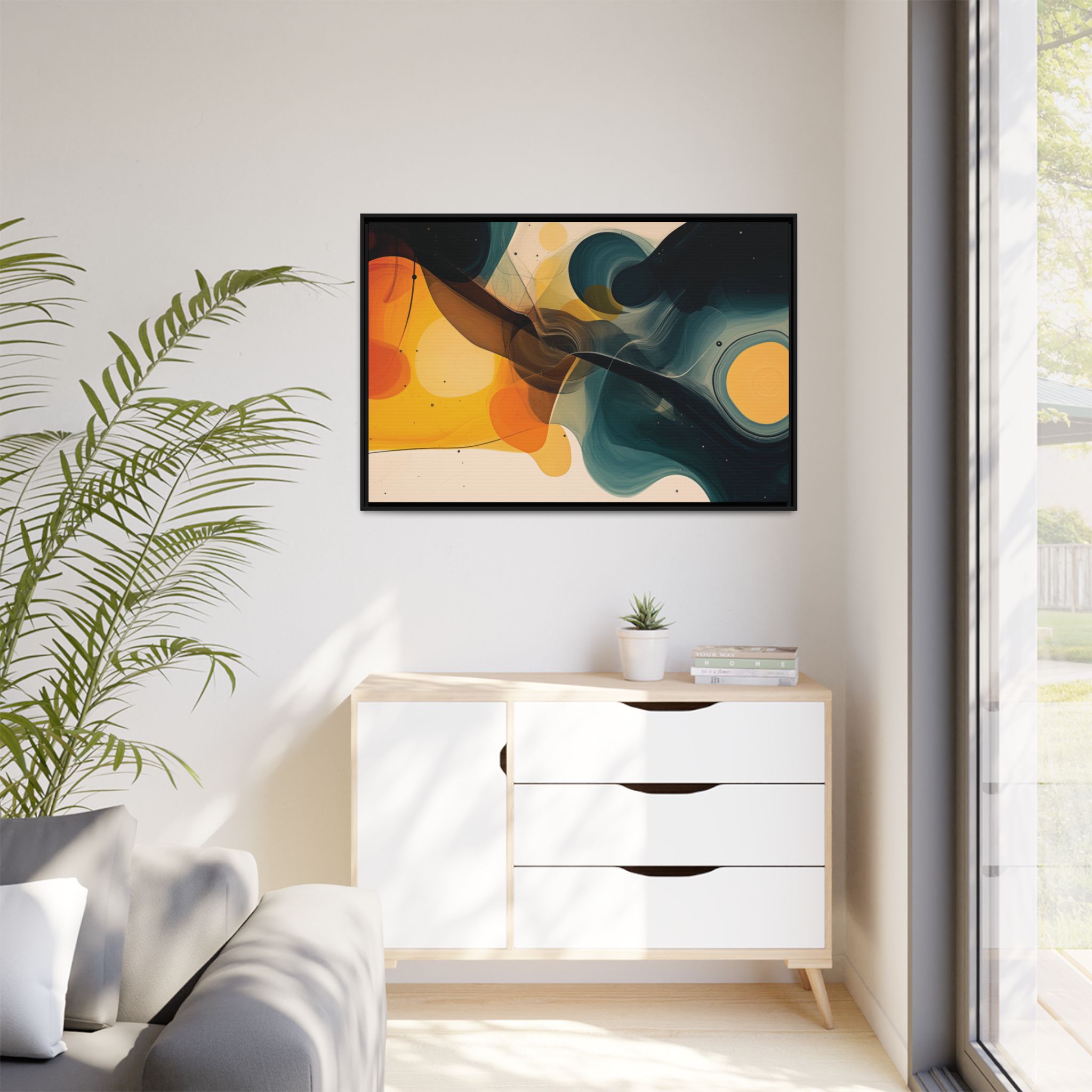 Enhance any interior space with beautiful art framed in a pinewood frame. Printed on a cotton-polyester canvas with a special proprietary coating to ensure long-lasting, vibrant colors and eye-catching detail. Made with sustainably sourced materials (Forest Stewardship Council certified), these frames are an eco-friendly choice. Choose between multiple sizes, and between 3 colors that matches your surroundings. The sawtooth hanging hardware is already attached.