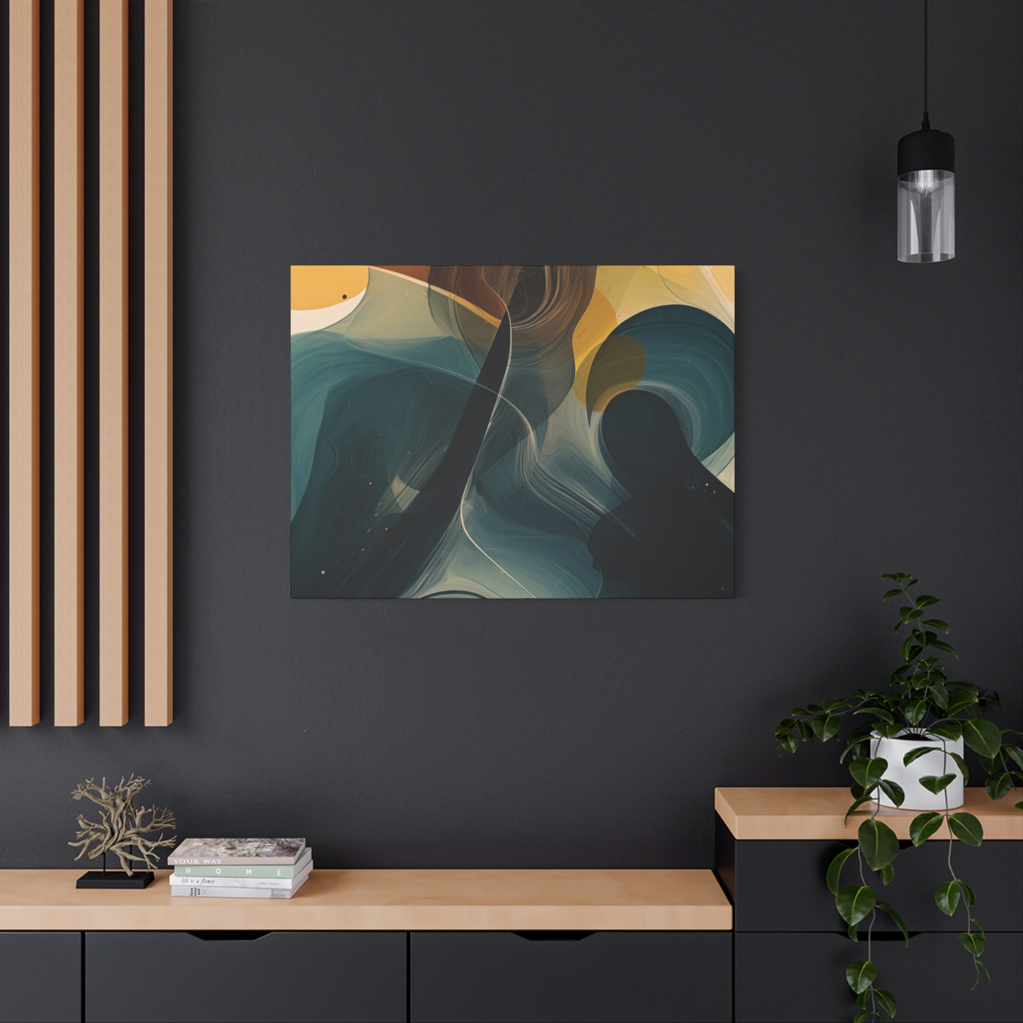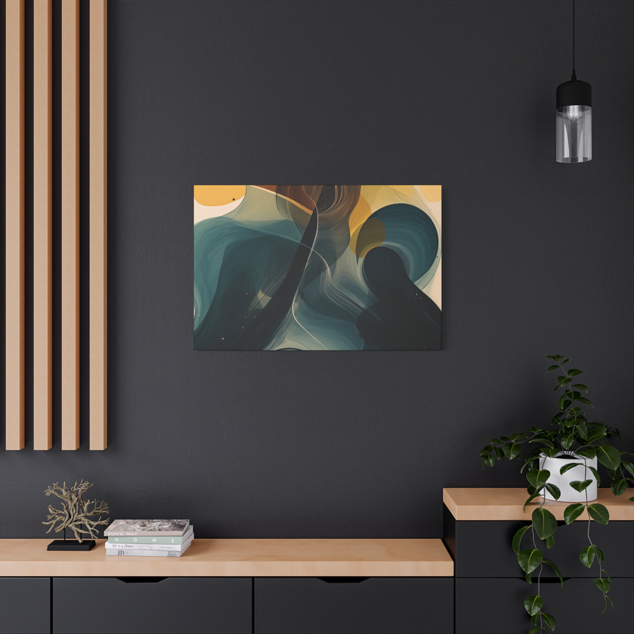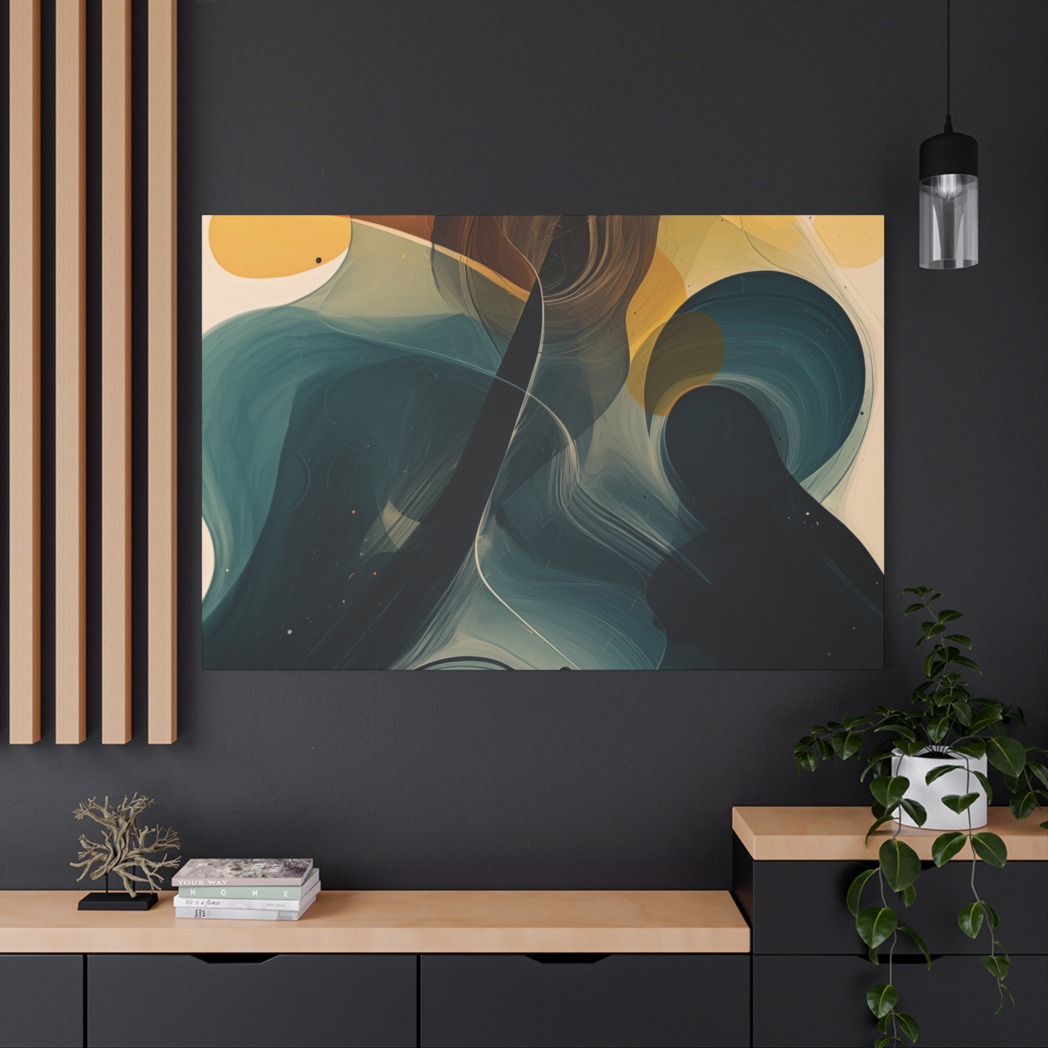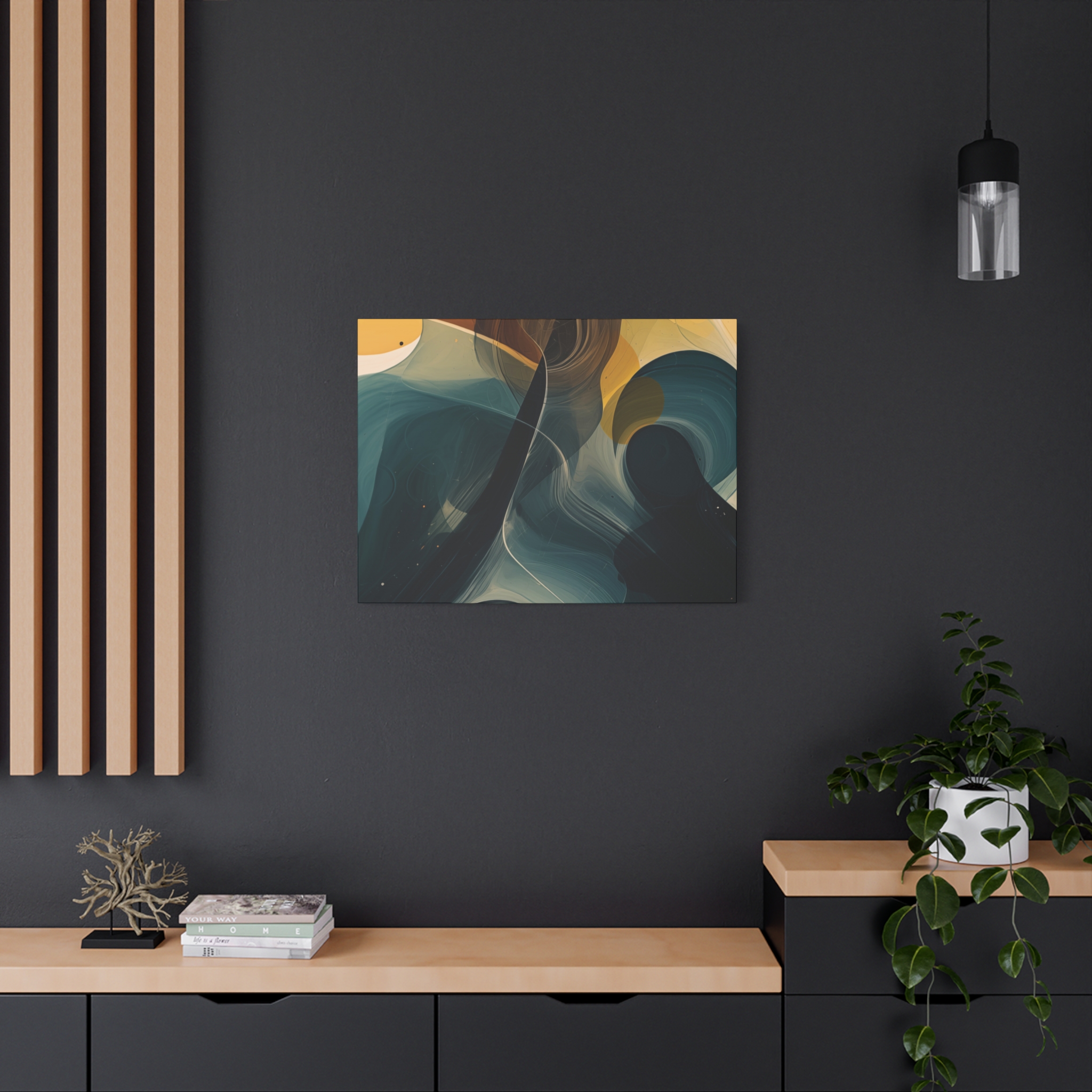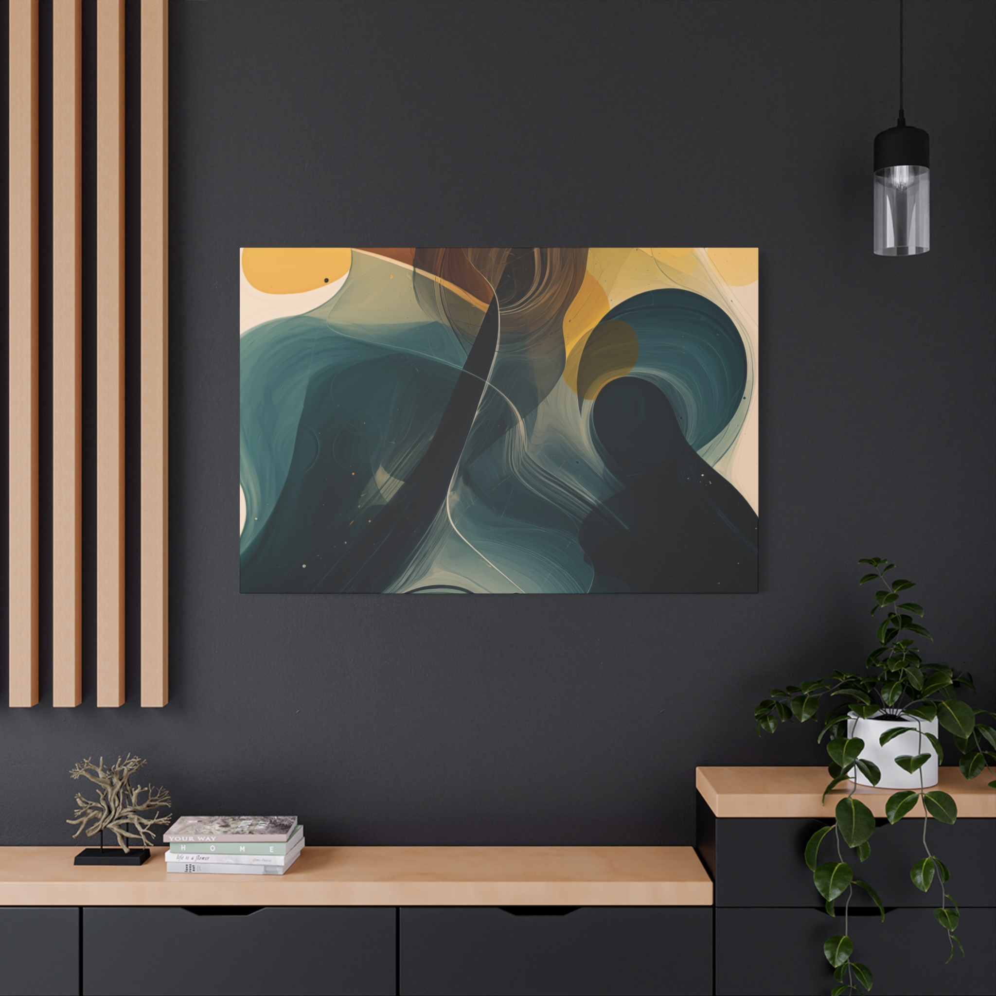 Custom digitally printed artwork on a quality canvas. Every print in a black pinewood frame will look sleek and beautiful in any interior. The artwork will be printed on the cotton-polyester canvas with a special proprietary coating to make sure it stays vibrant for ages.