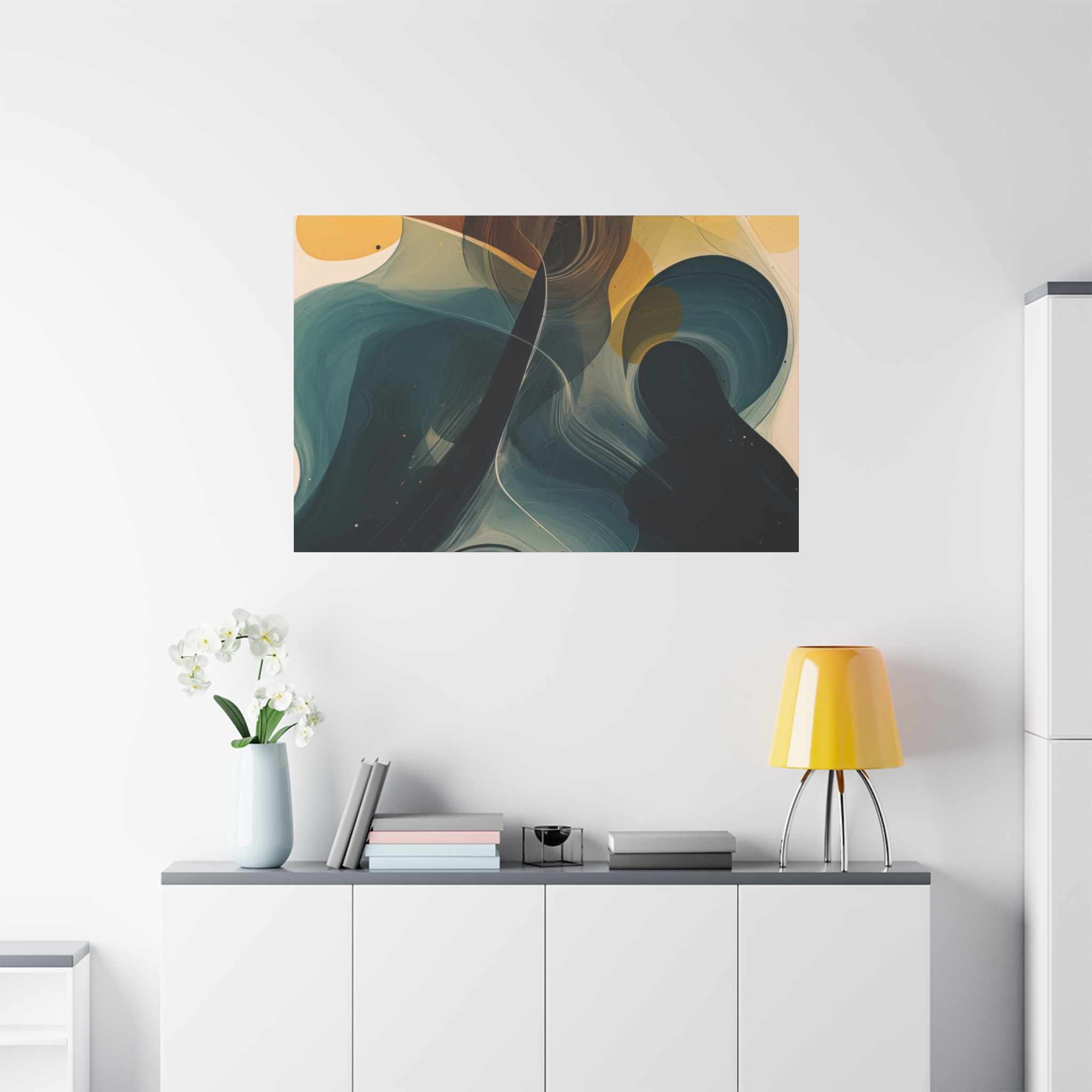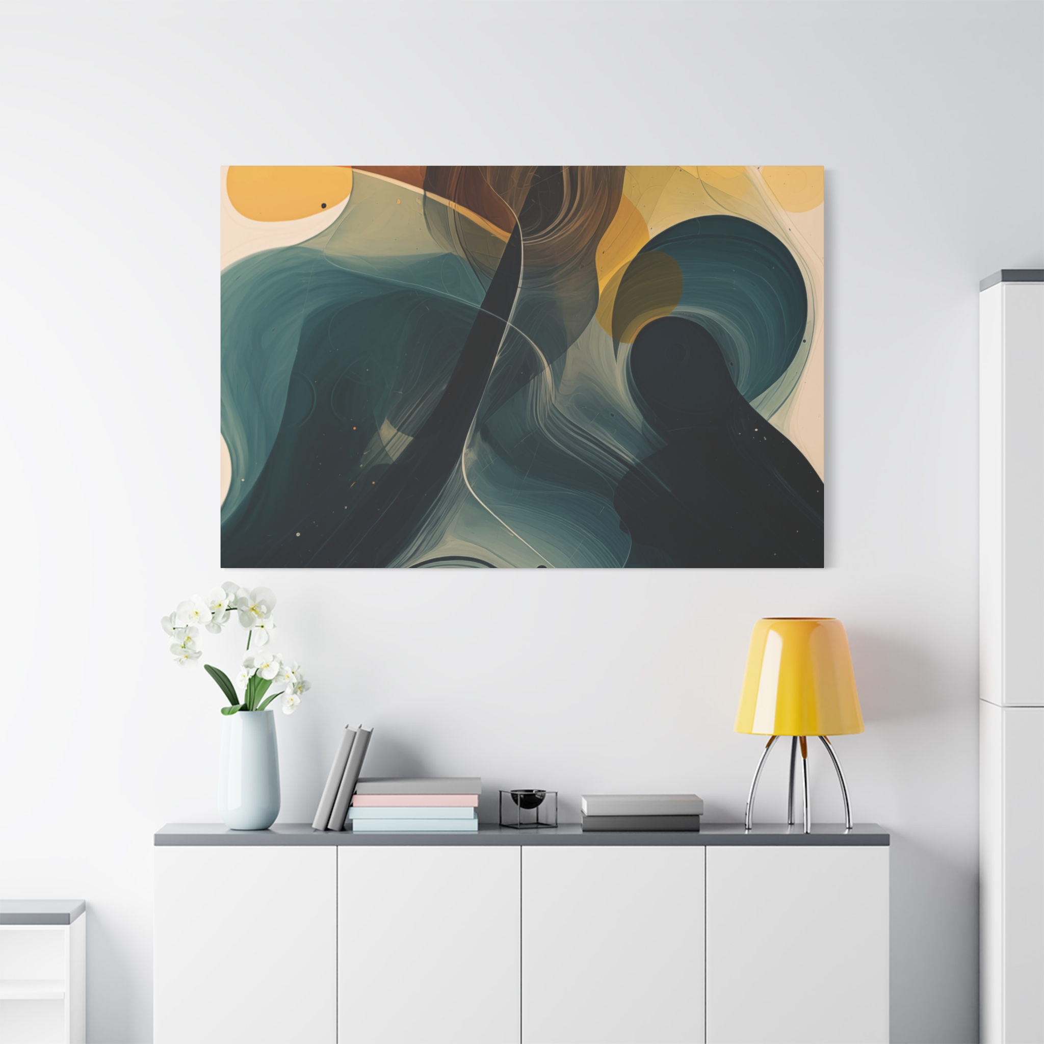 Beautiful flowing washes, with relaxed details and soft edges. Available in different colour tones and formats to suit your interior project. The canvas can be rotated to suit portrait or landscape application.