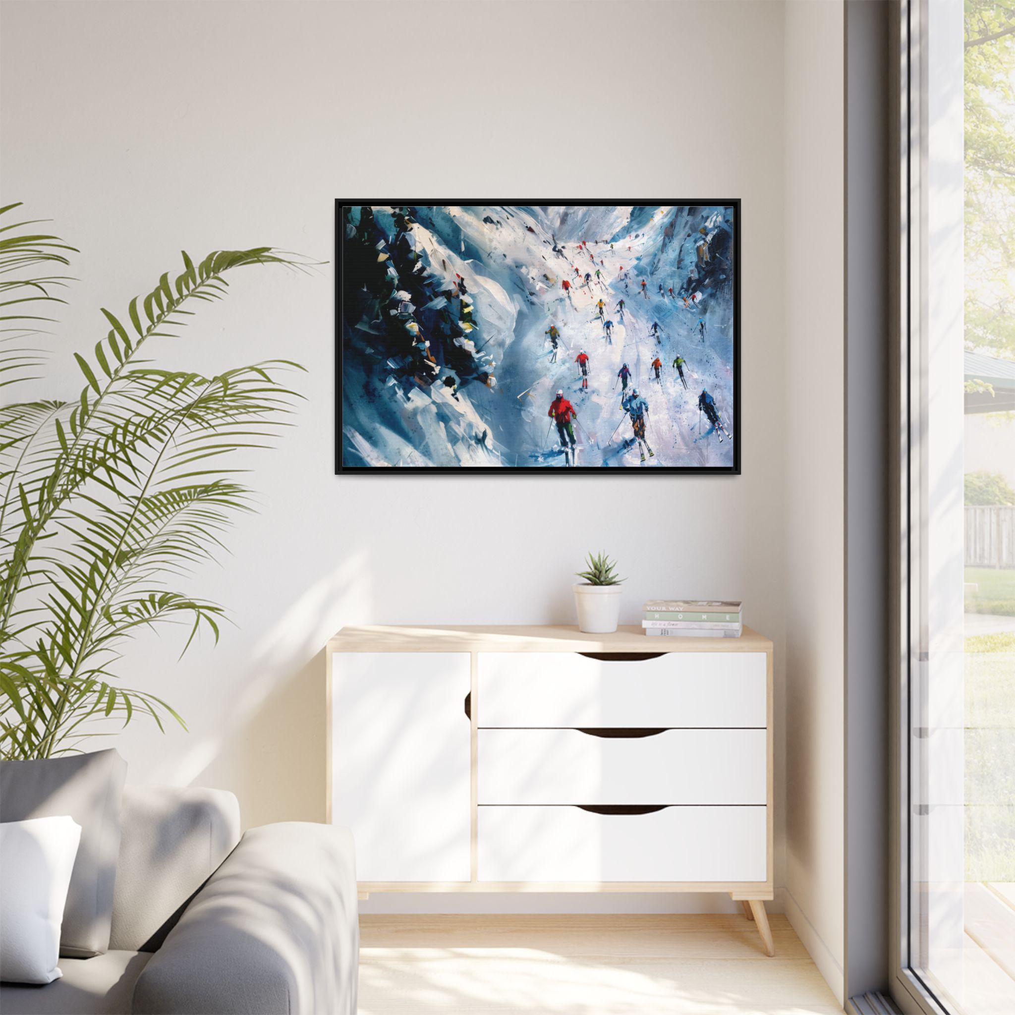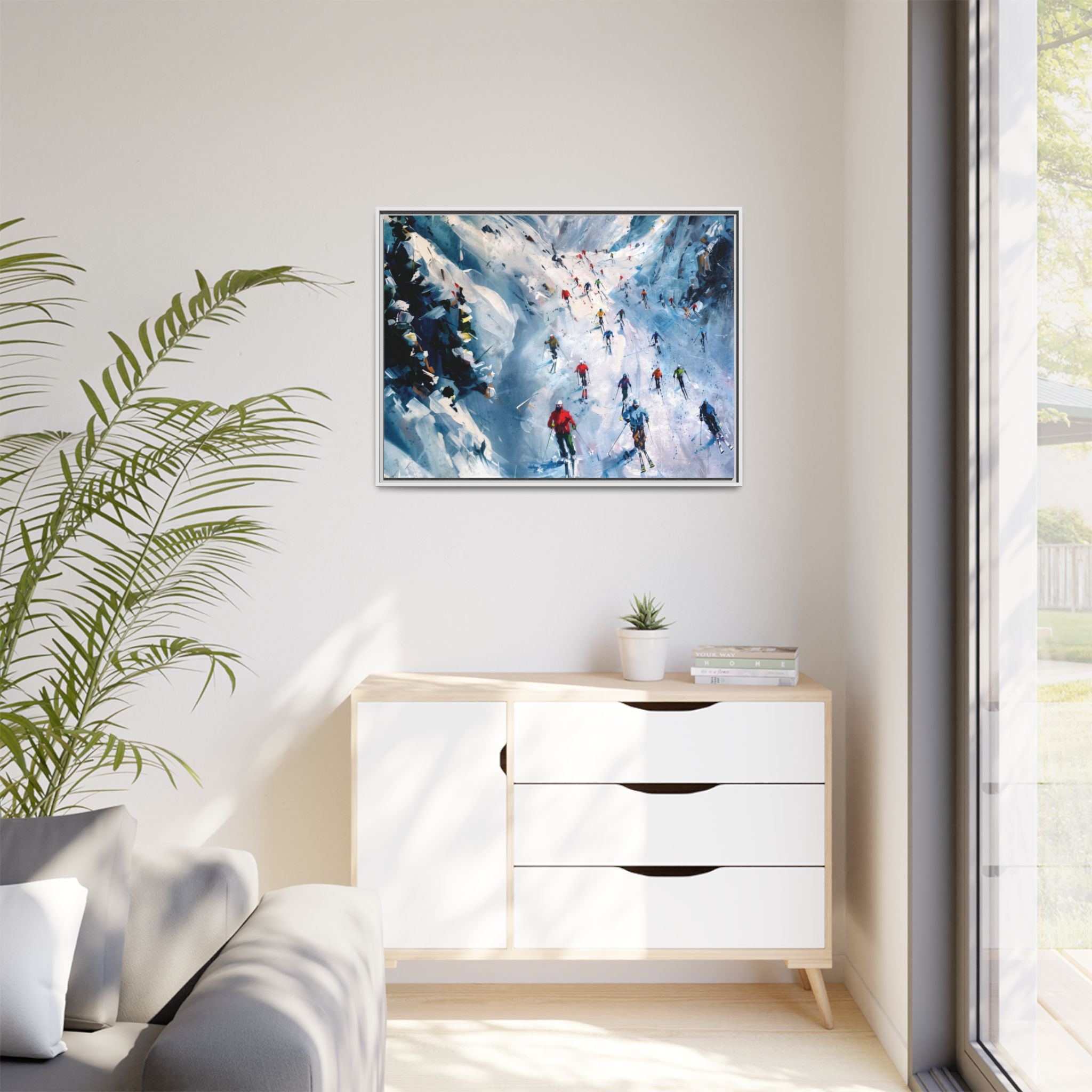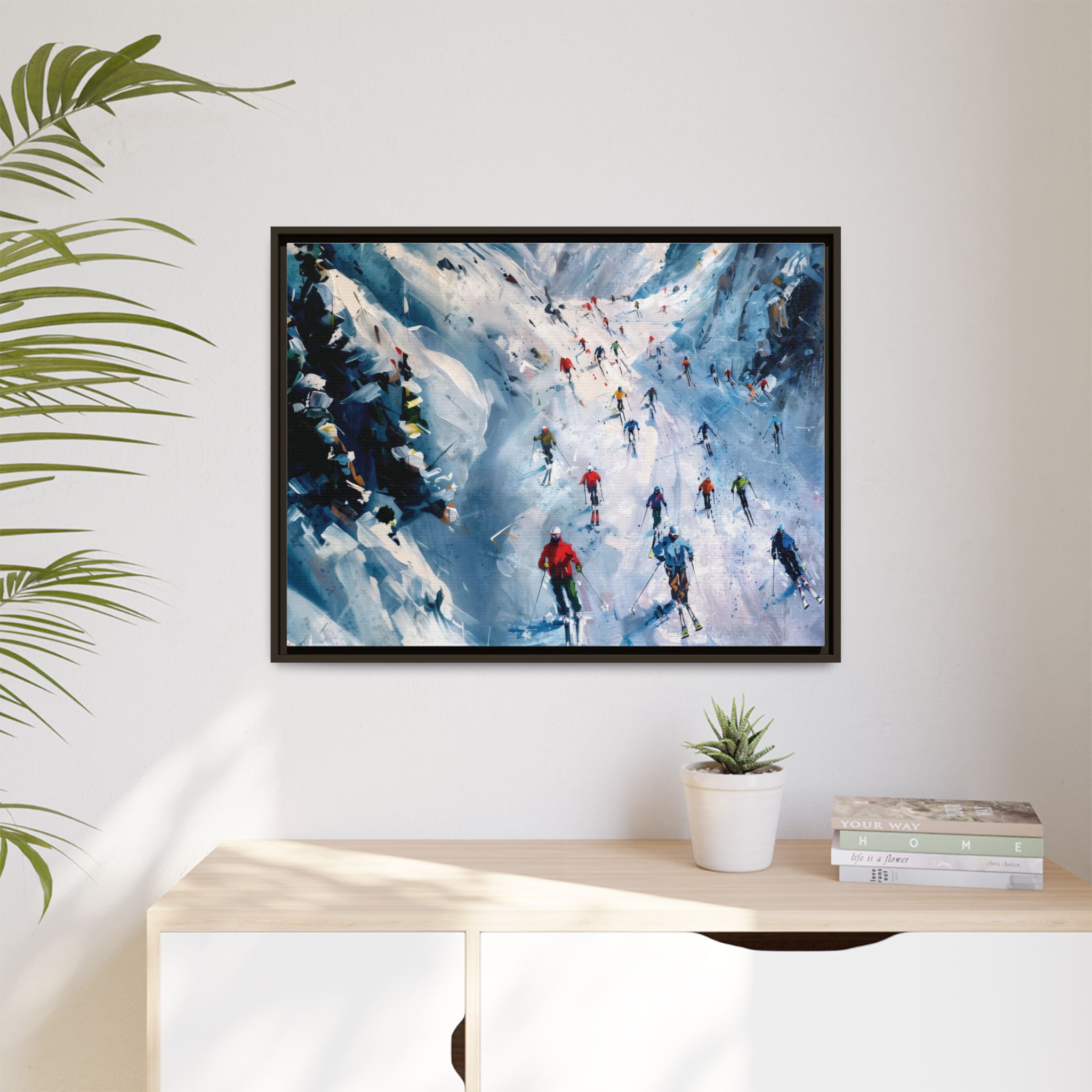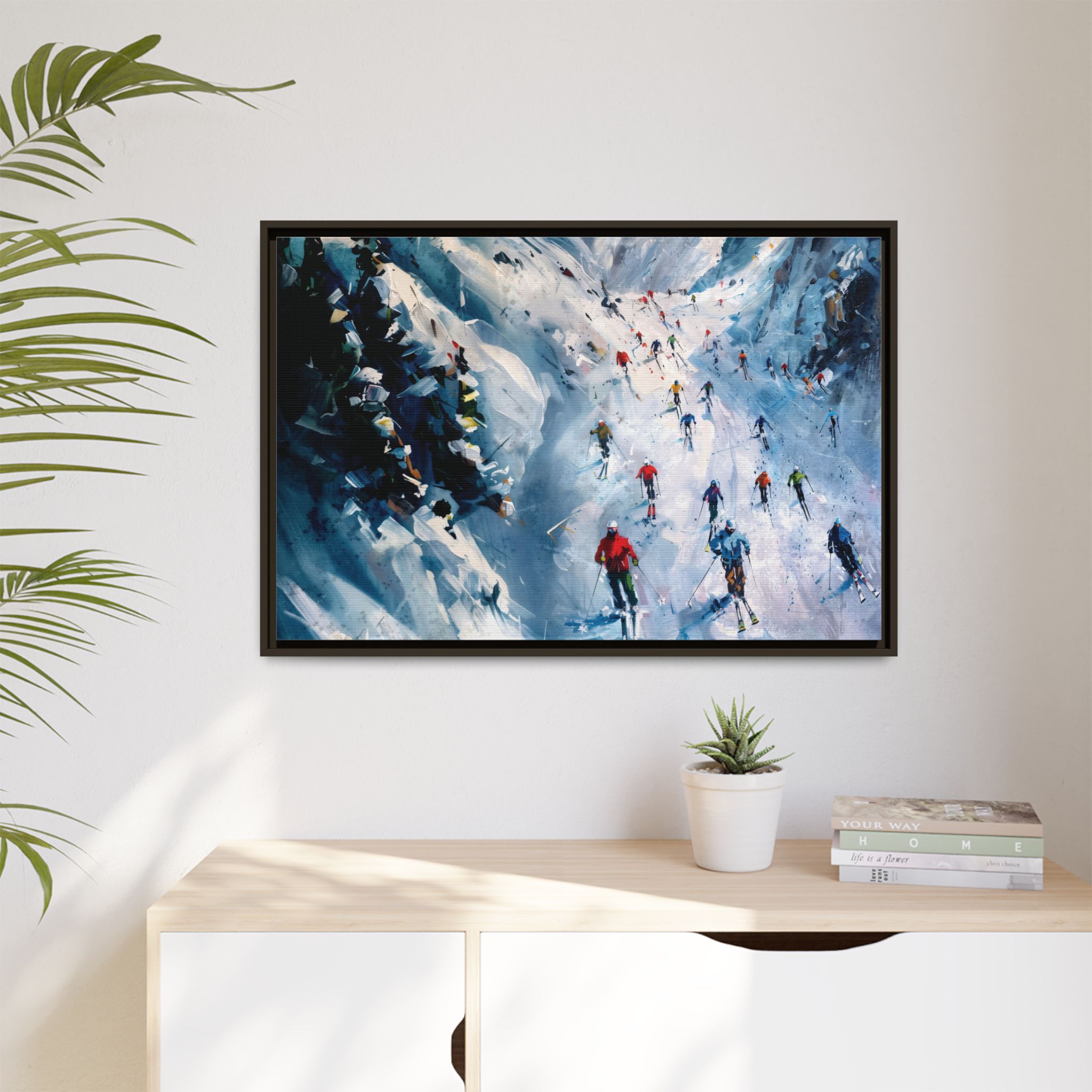 An easygoing oil style artwork of skiers in the fading afternoon sun as they head back down the slopes to have a drink. This ones for Stephan and Pepa !