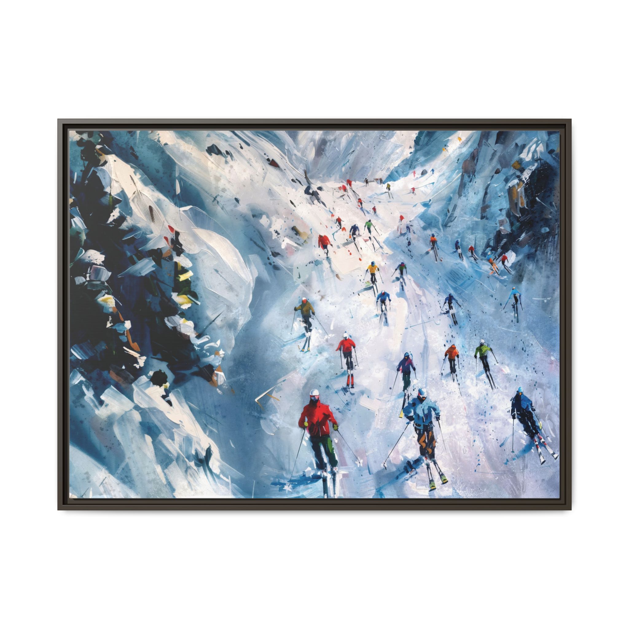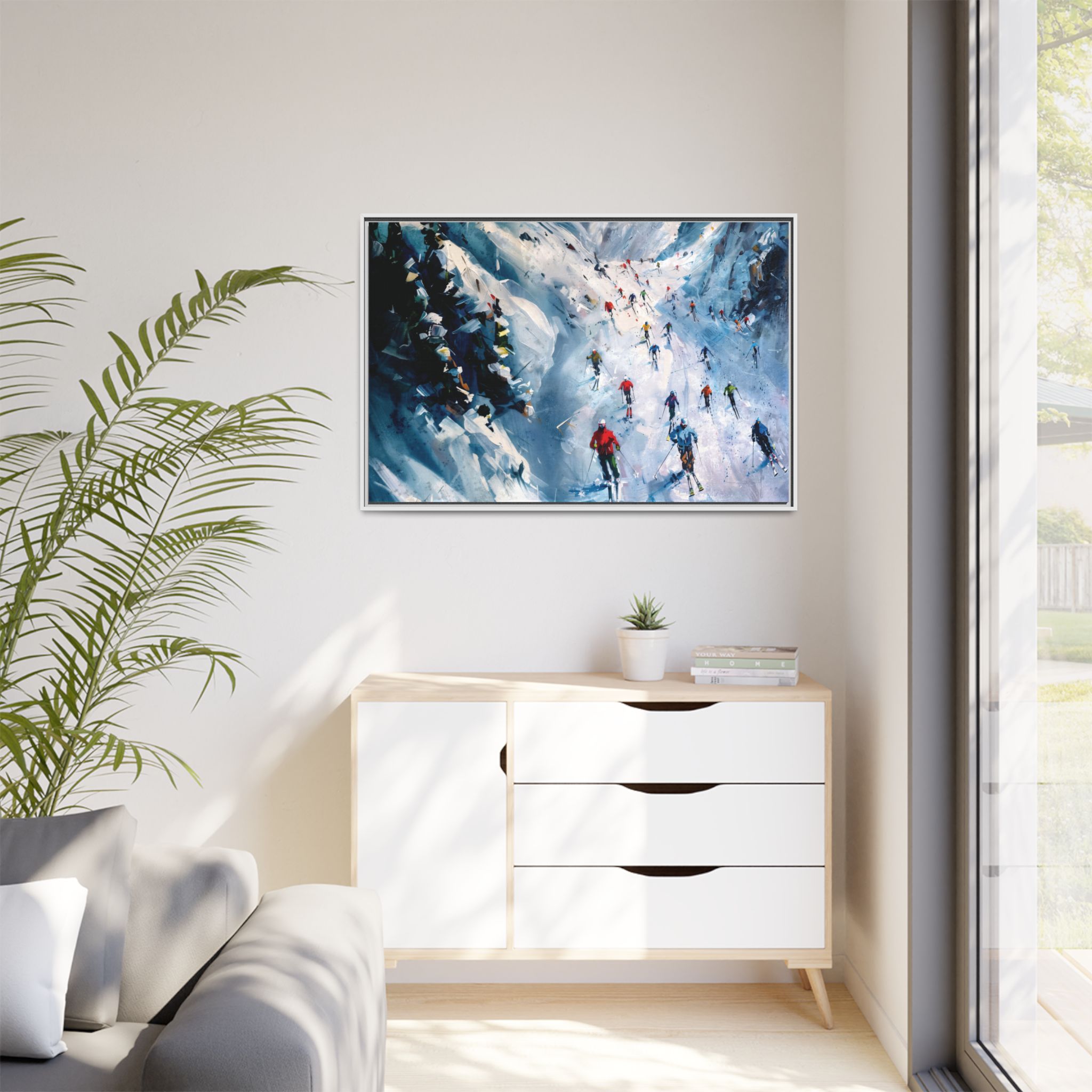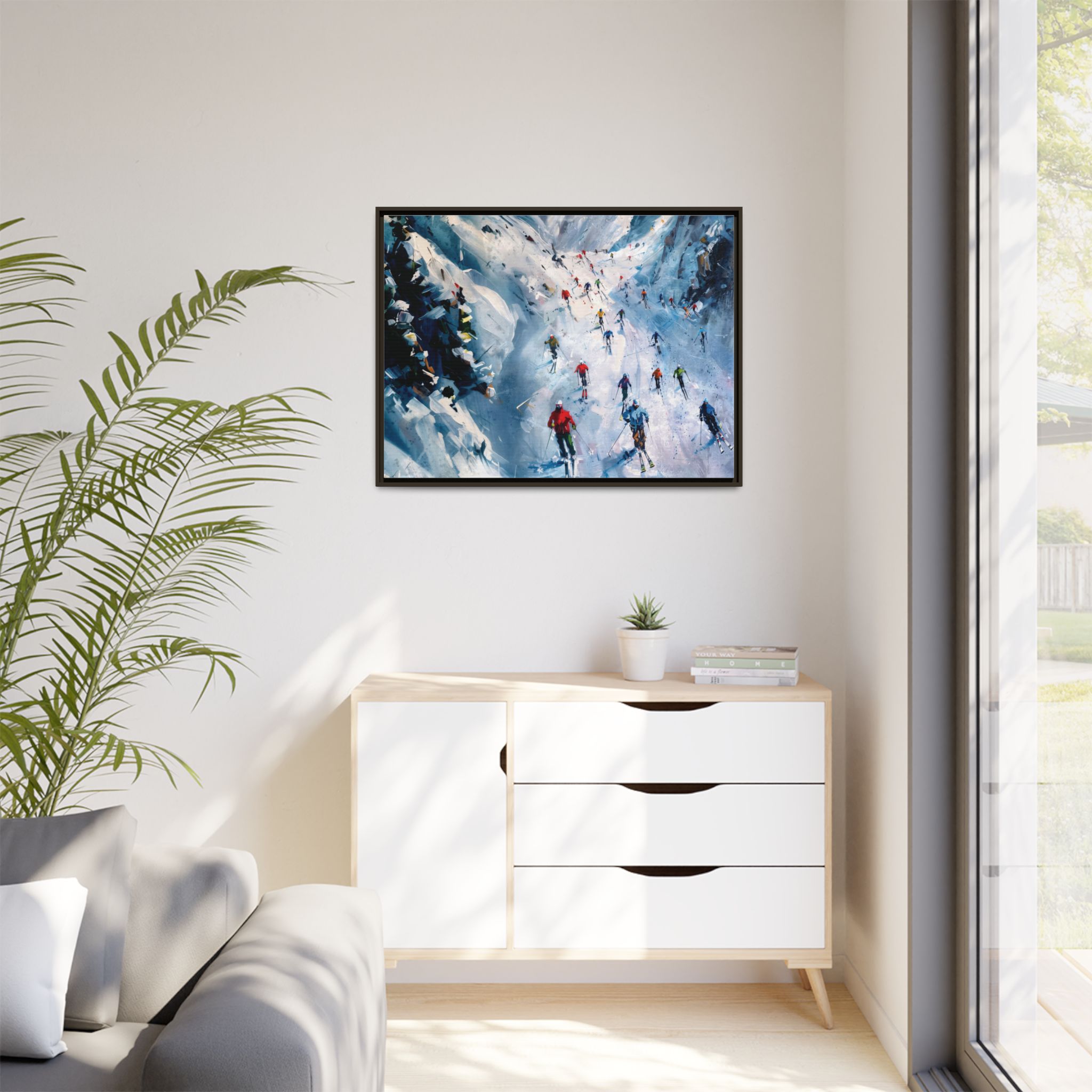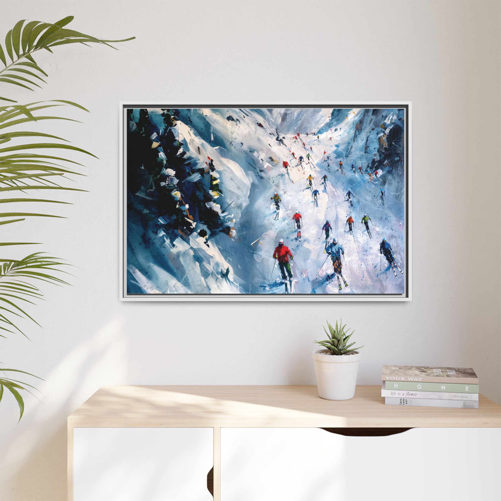 An easygoing oil style artwork of skiers in the fading afternoon sun as they head back down the slopes to have a drink. This ones for Stephan and Pepa !