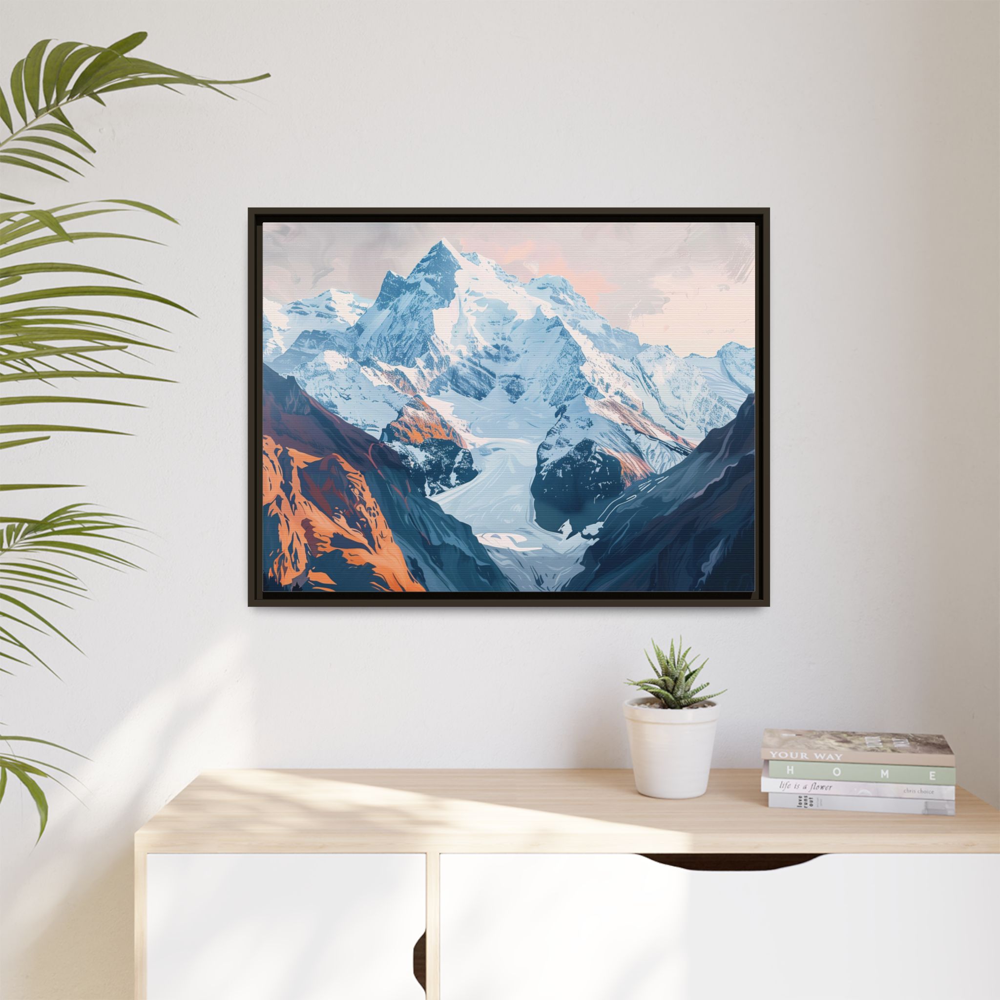 This snowy mountain canvas painting in the style of impressionism brings a serene and calming vibe to any space. Perfect for nature lovers and those who appreciate art, this canvas would make a great addition to a cozy living room or home office. Ideal for winter decor, ski lodges, and mountain-themed rooms.
