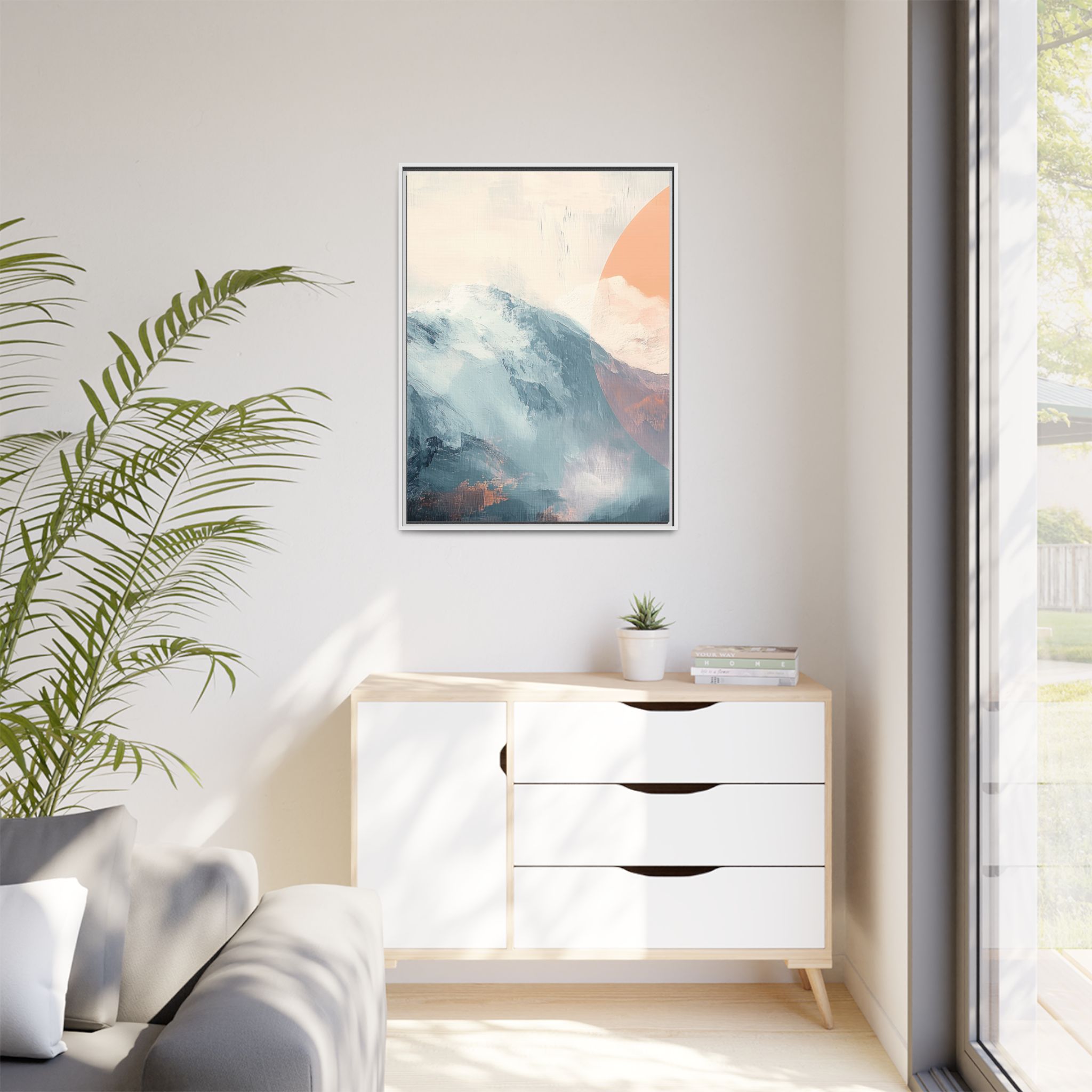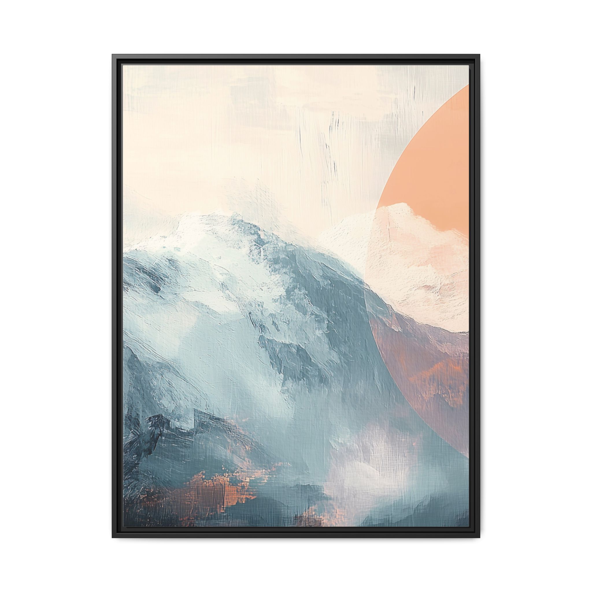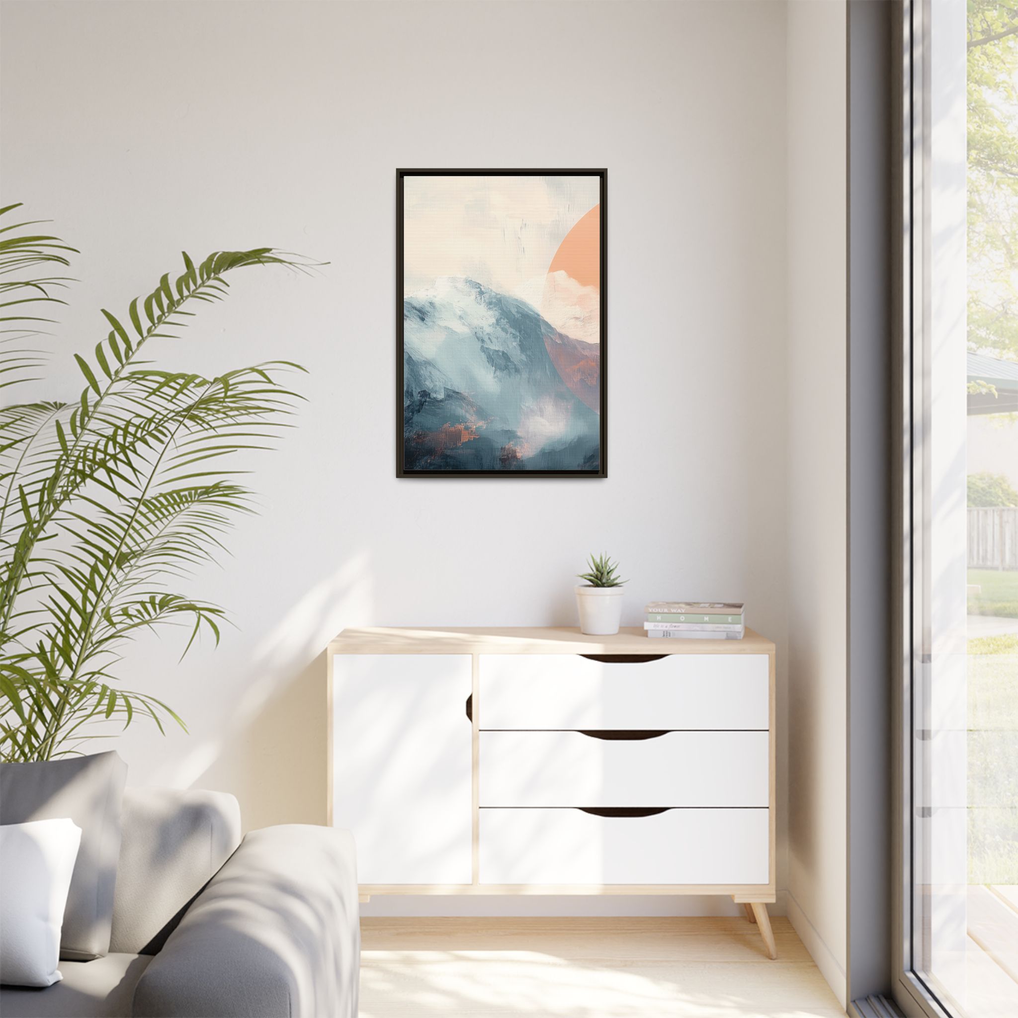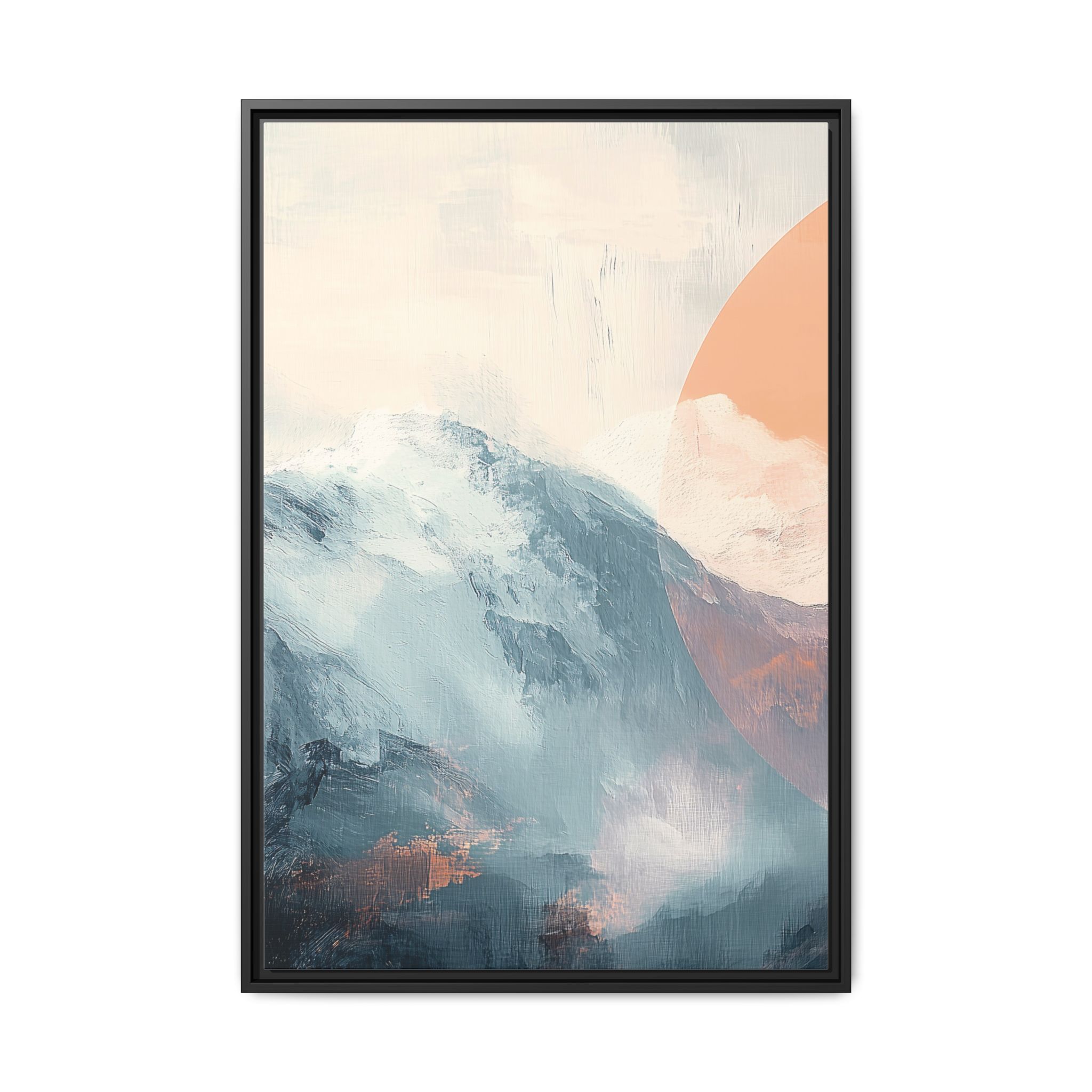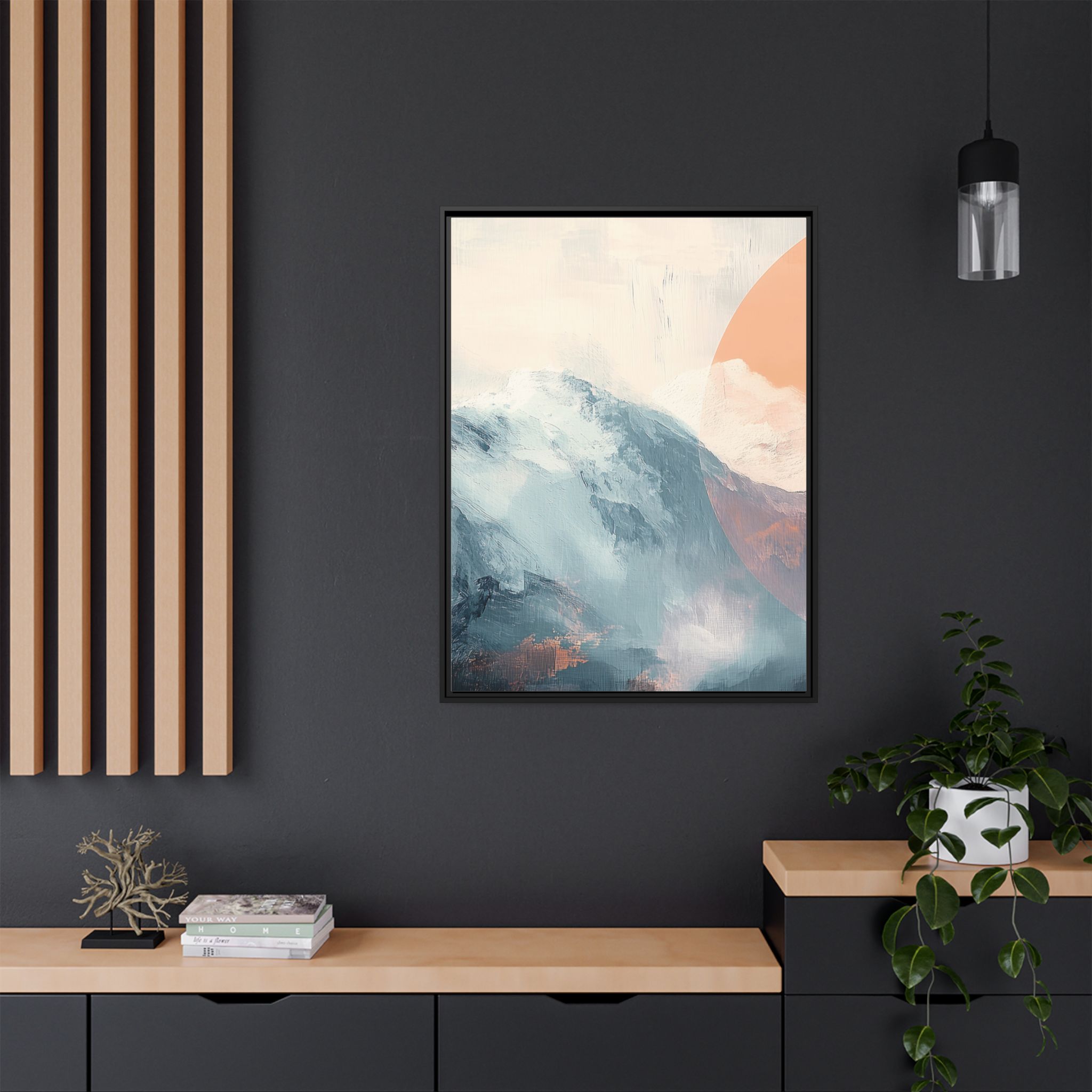 Custom digitally printed artwork on a quality canvas. .Every print in a black pinewood frame will look sleek and beautiful in any interior. The artwork will be printed on the cotton-polyester canvas with a special proprietary coating to make sure it stays vibrant for ages. Environmentally-conscious – it’s made from sustainably sourced materials (Forest Stewardship Council certified) and custom printed on demand no warehouse stocks and no waste. Choose between the designer specified sizes. The sawtooth hanging hardware is already attached.