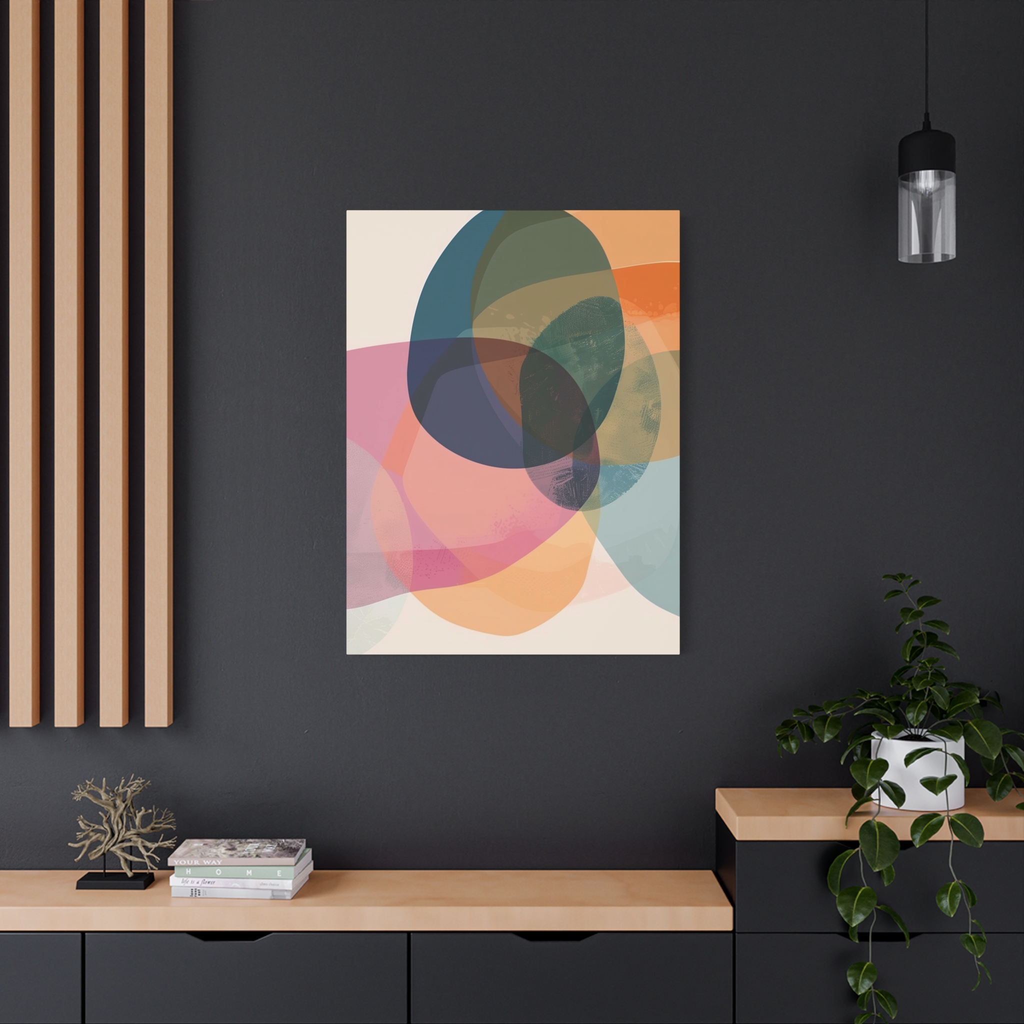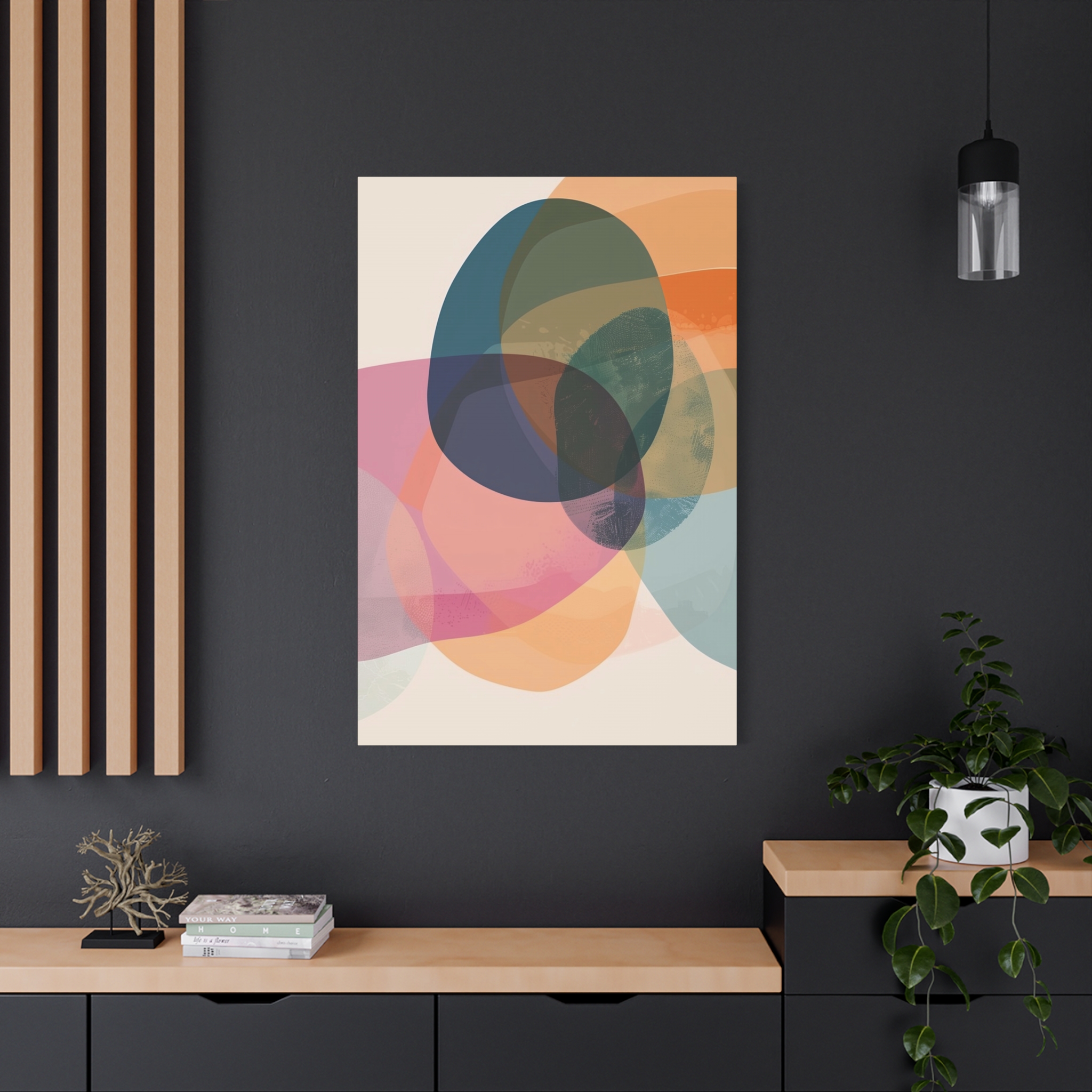 Custom digitally printed artwork on a quality canvas. Each matte canvas comes with back hanging already included for convenient placement. The frame is made with profile radiata pine that is ethically sourced from renewable forests.