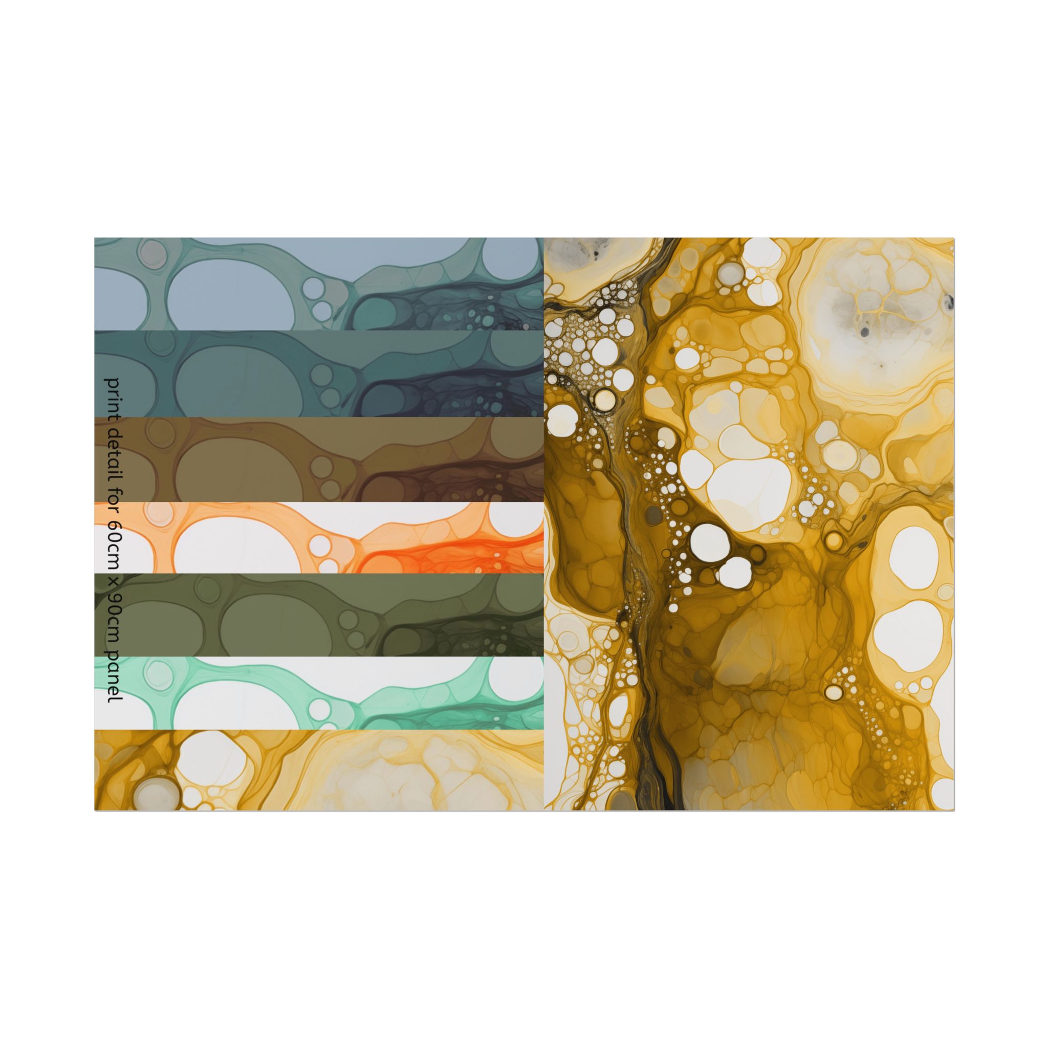 This fluid painting has flowing veins that build a spectacular array of bubbles and veins. Very detailed with washes and fades keep the work always looking fresh and interesting, it is rendered in a simulated aquarelle watercolour style to give it a hand finished artisan effect.It comes in a variety of colours and tones from high energy golds and orange to calming blues and earthly tones.