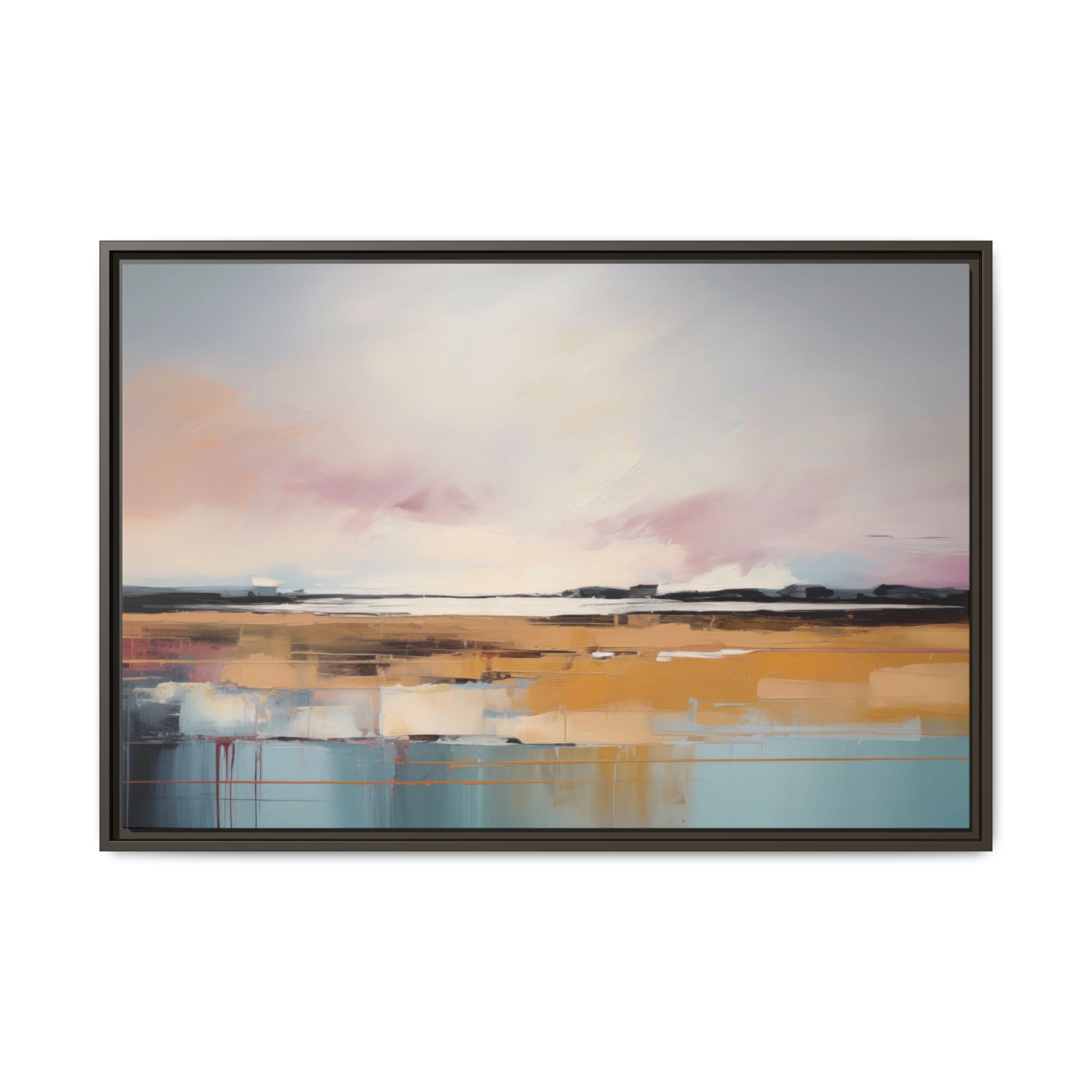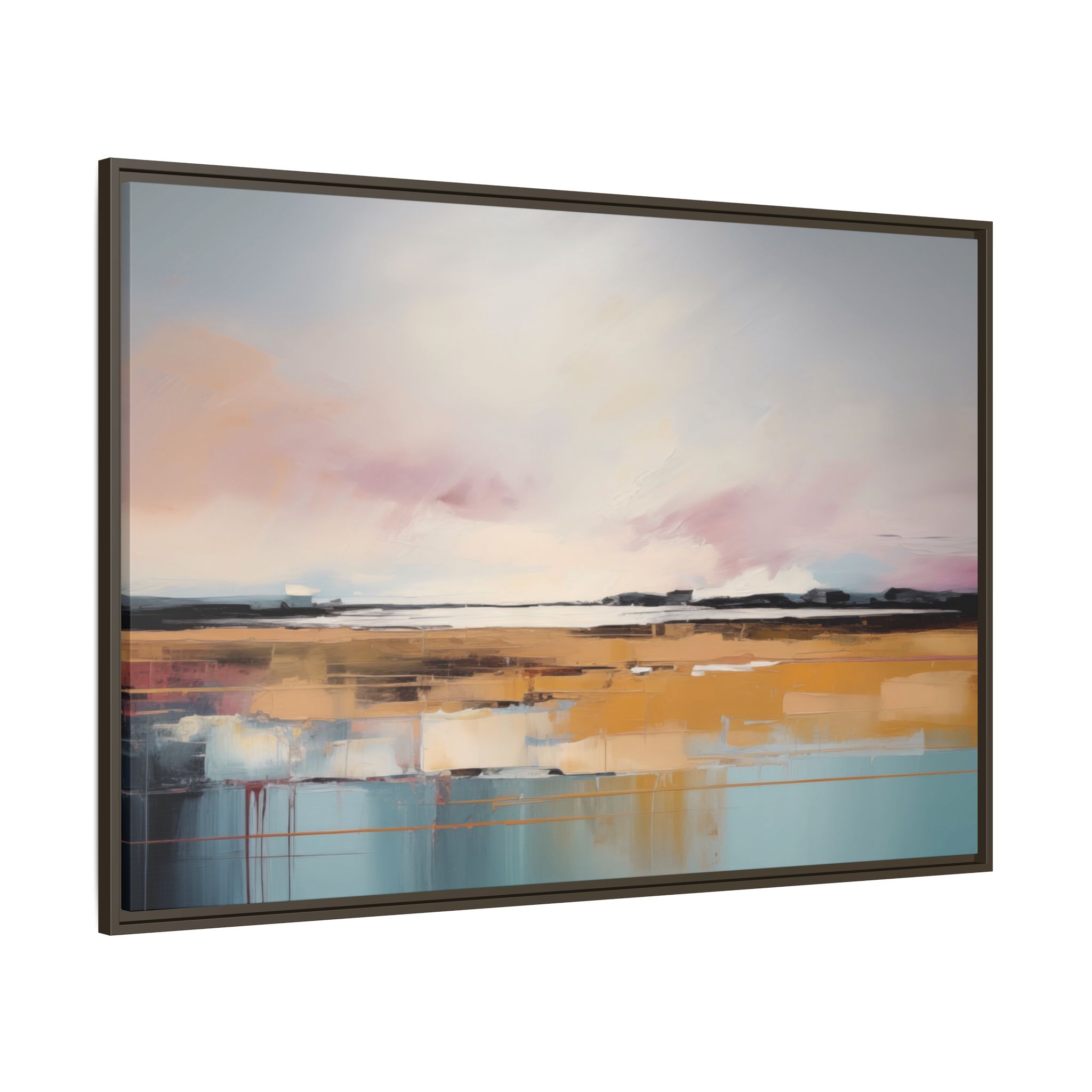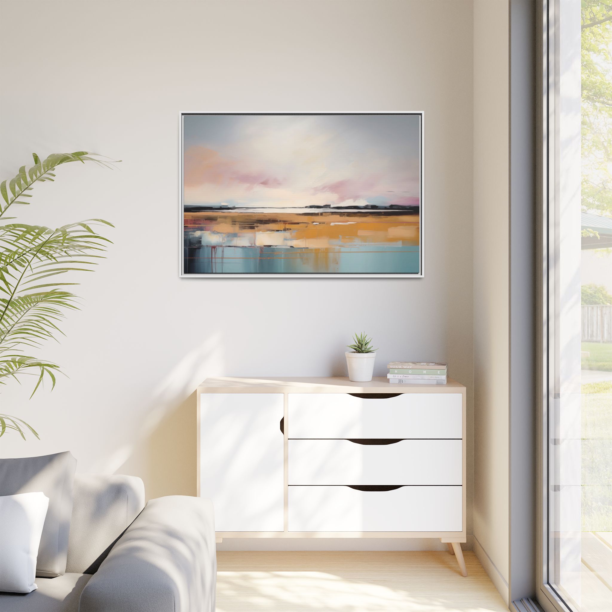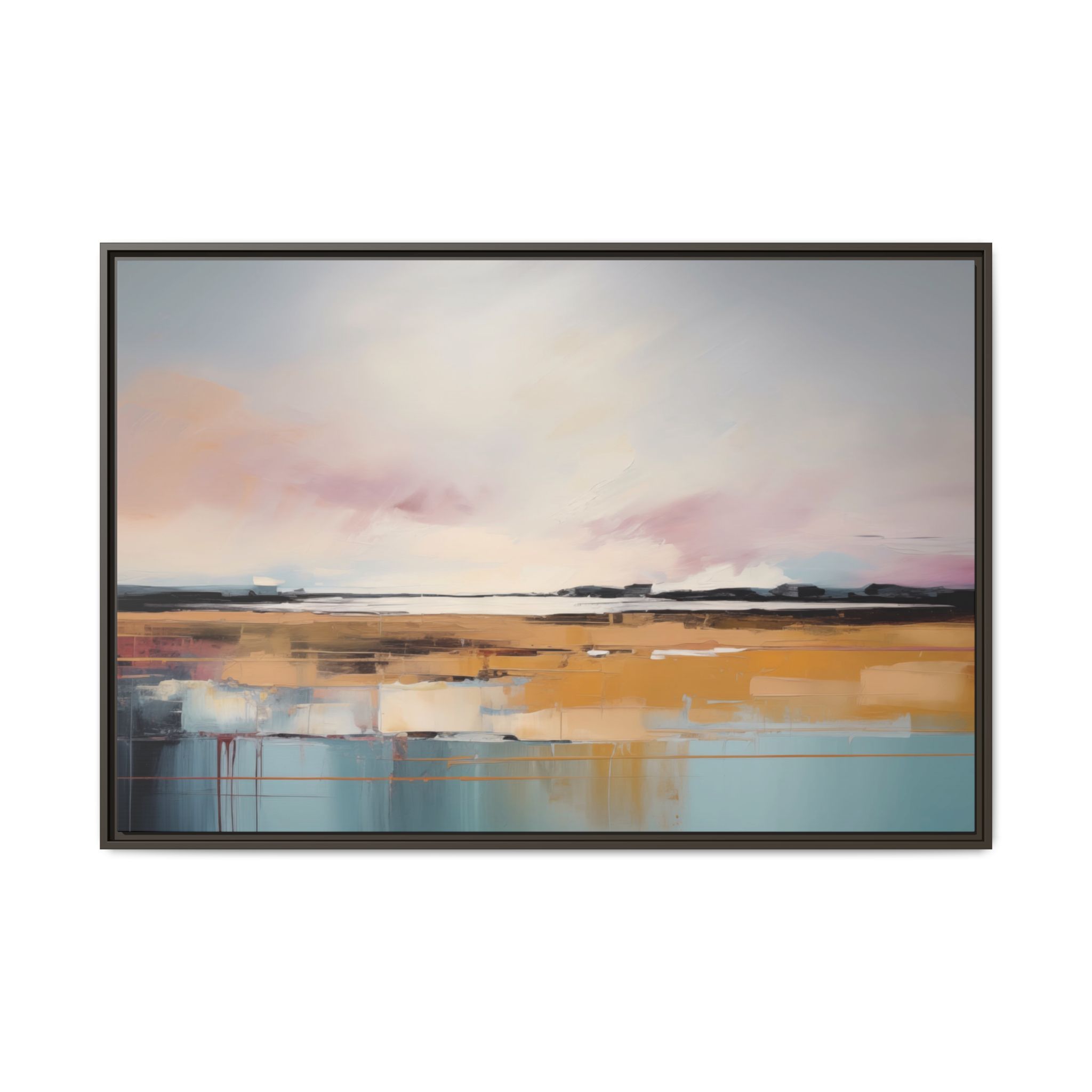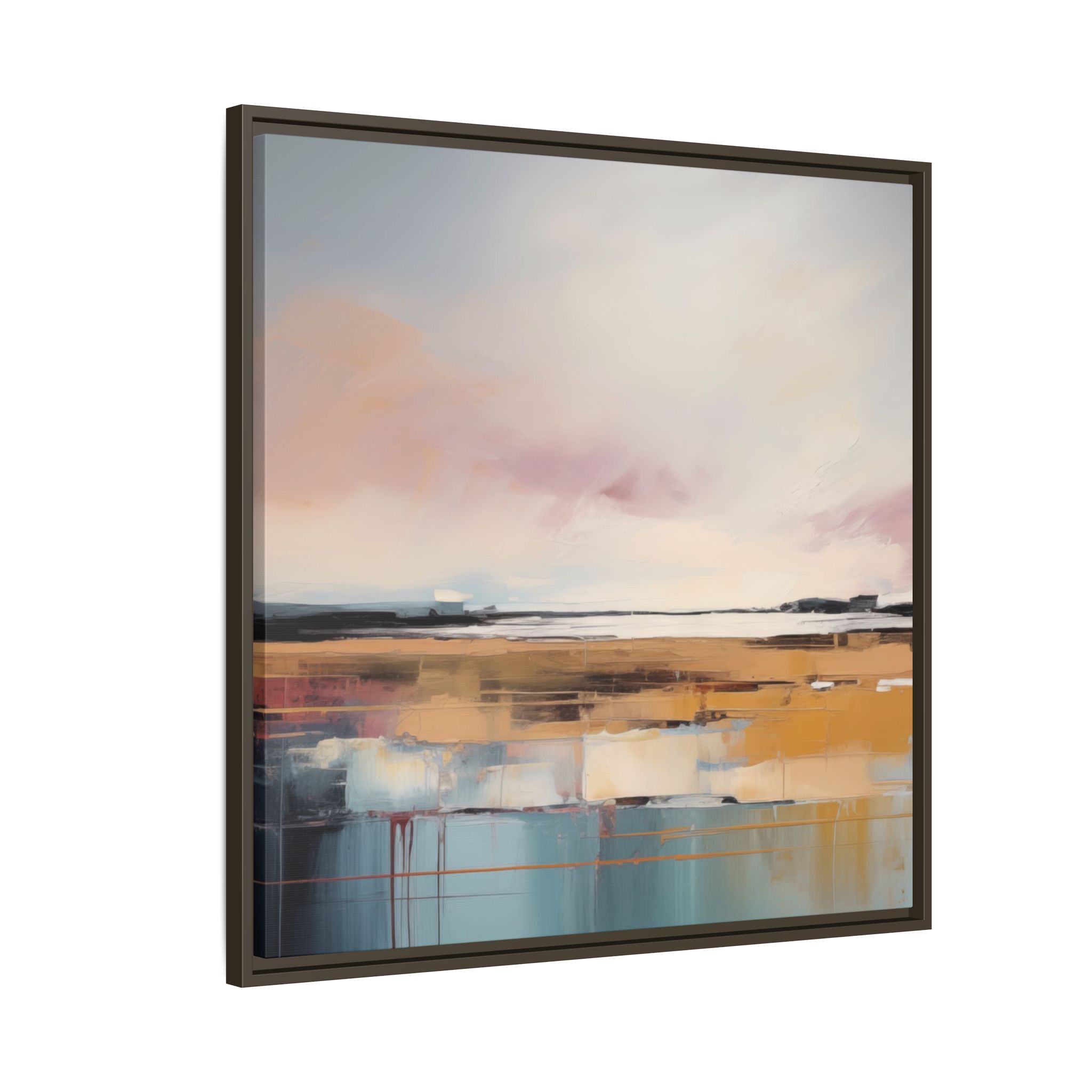 A minimalist art canvas featuring shapes and lines in a palette of pink, grey, navy blue, and white, creating a serene and modern abstract vibe. Perfect for adding a touch of sophistication to any room, this canvas is relevant for home decor enthusiasts, art lovers, and those looking to elevate their space. Ideal for gifting during birthdays, housewarmings, or as a special treat for yourself.