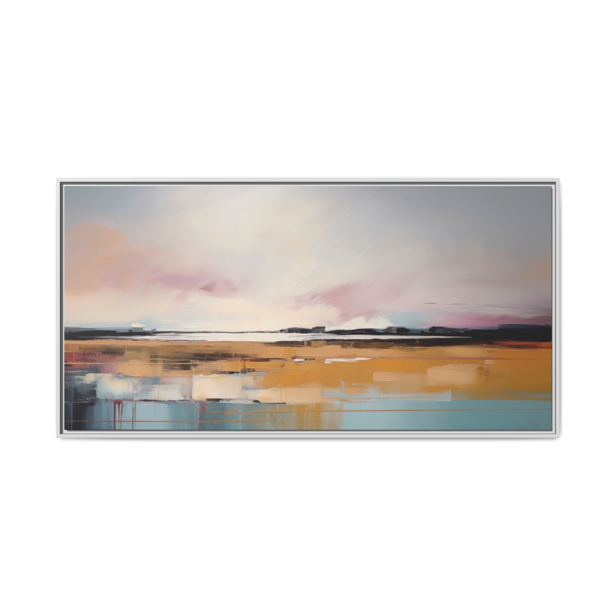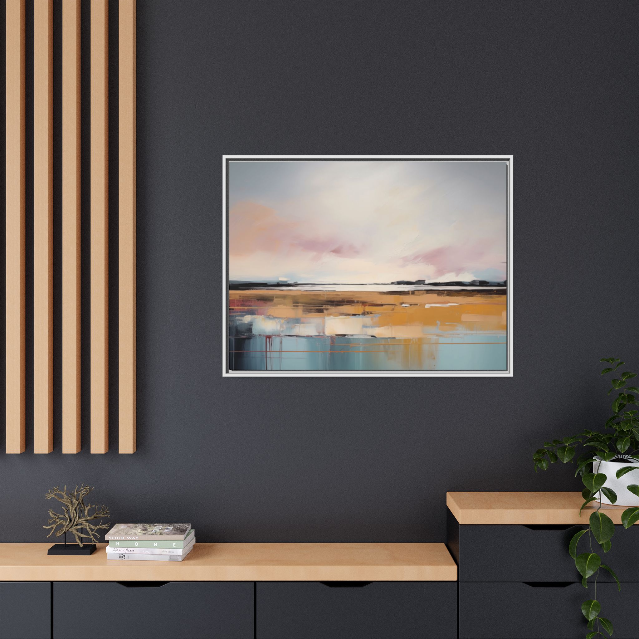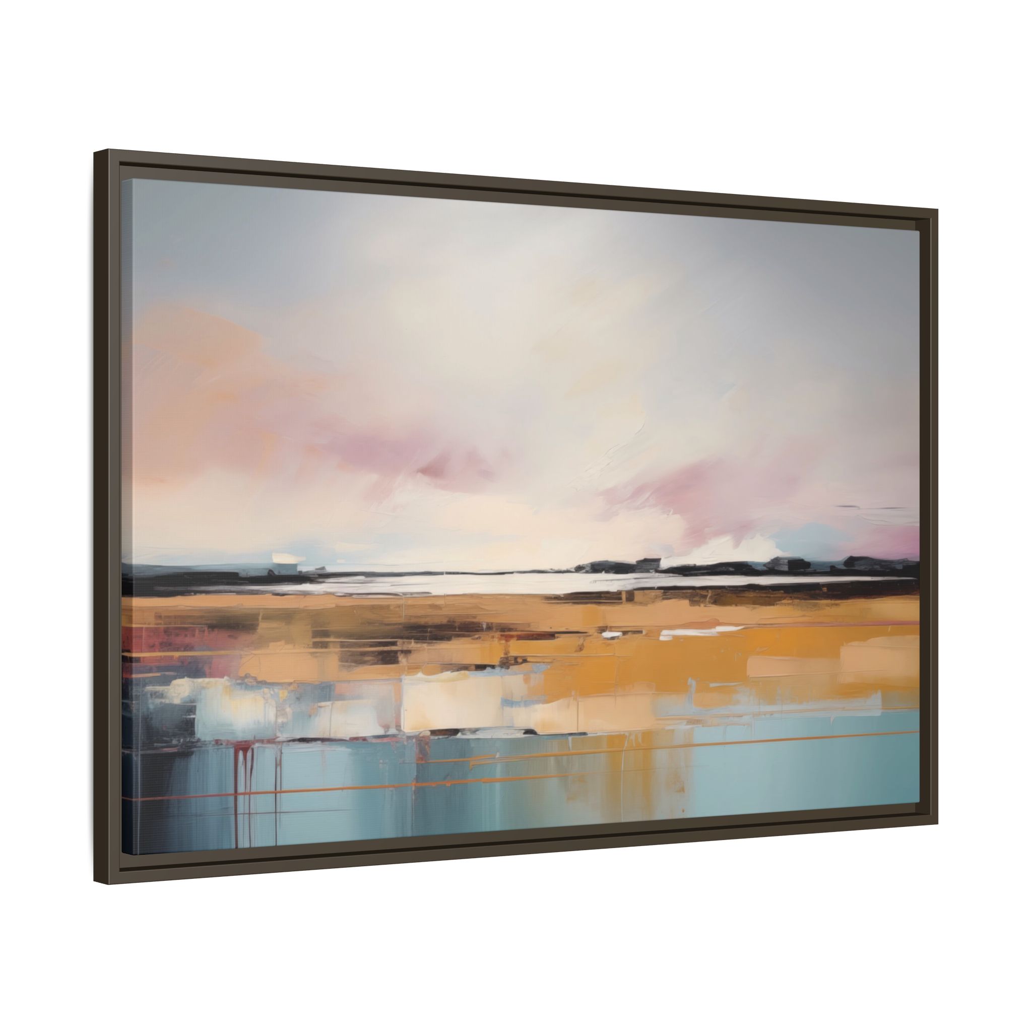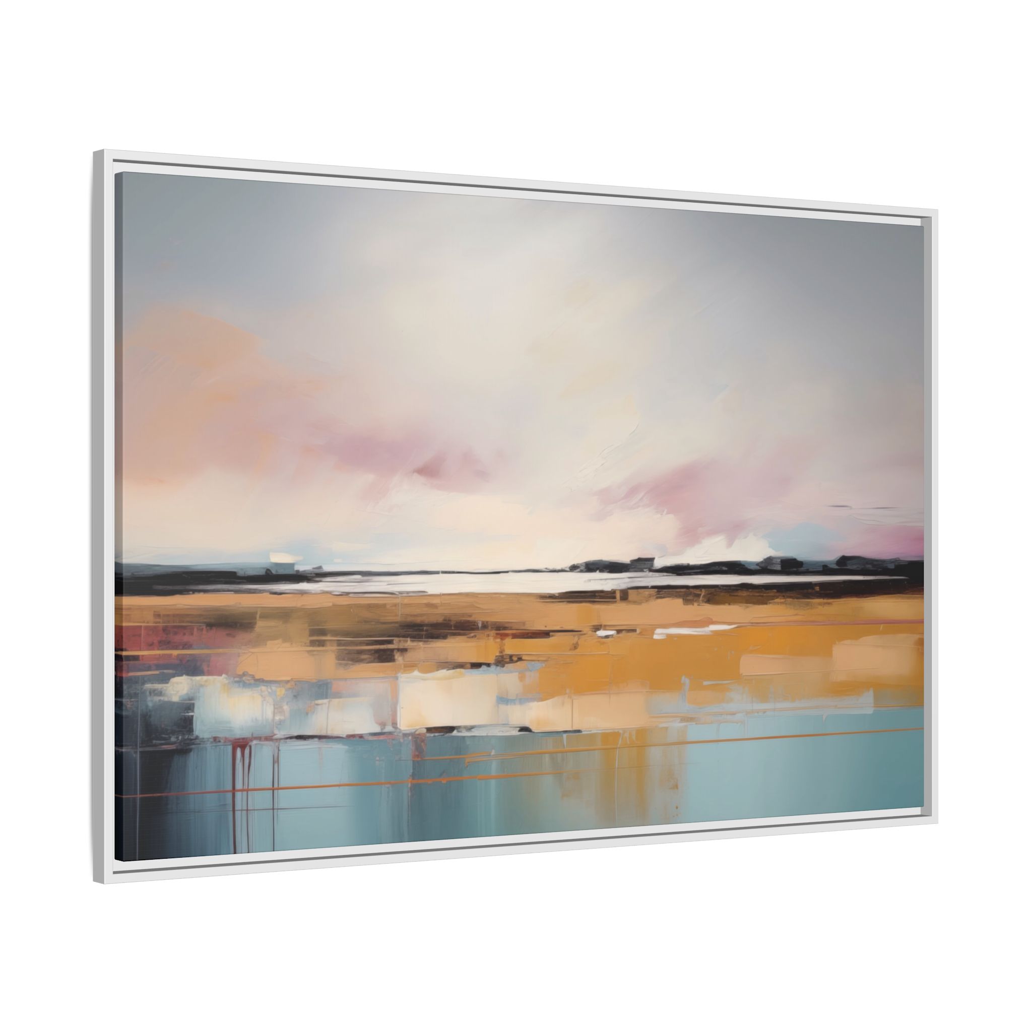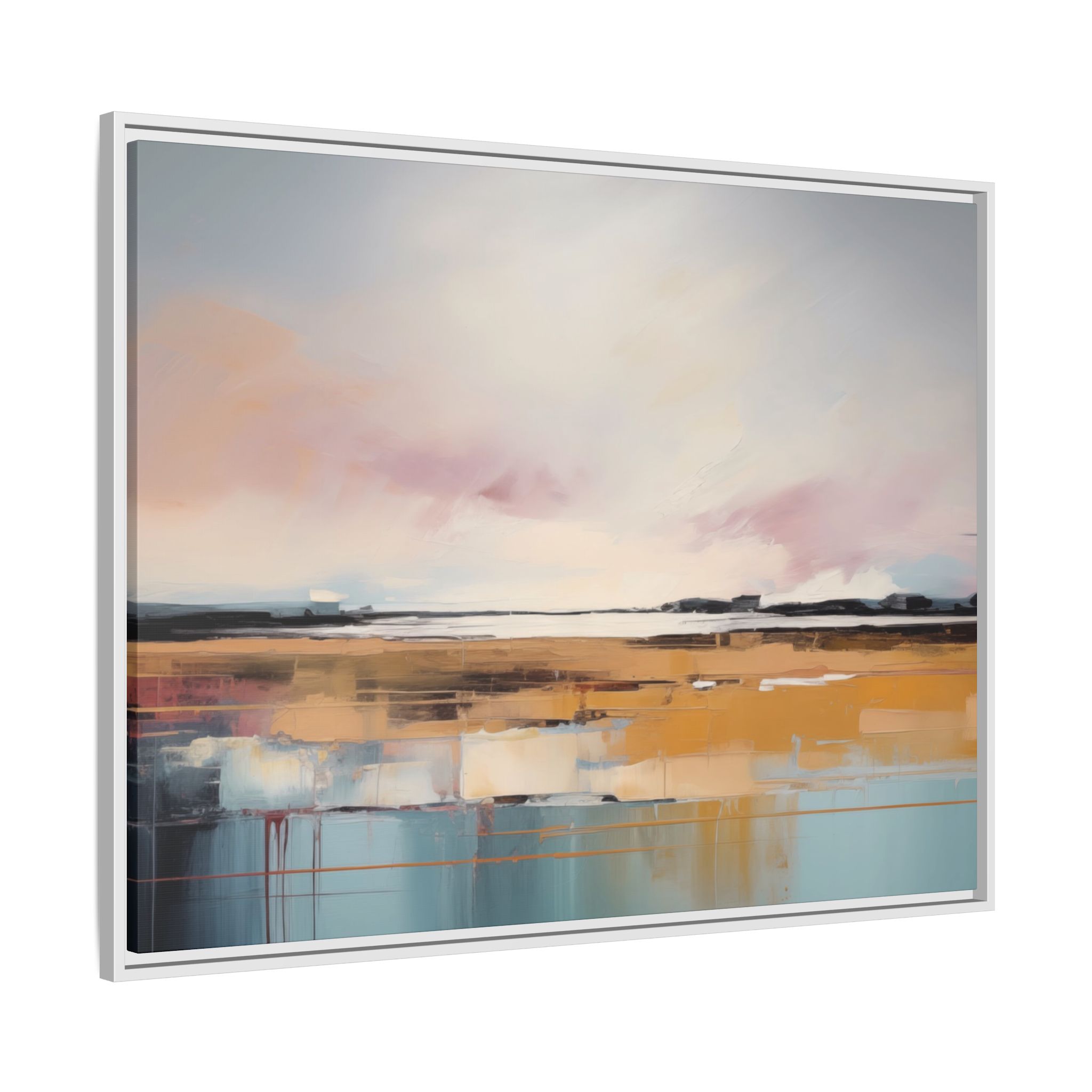 A minimalist art canvas featuring shapes and lines in a palette of pink, grey, navy blue, and white, creating a serene and modern abstract vibe. Perfect for adding a touch of sophistication to any room, this canvas is relevant for home decor enthusiasts, art lovers, and those looking to elevate their space. Ideal for gifting during birthdays, housewarmings, or as a special treat for yourself.