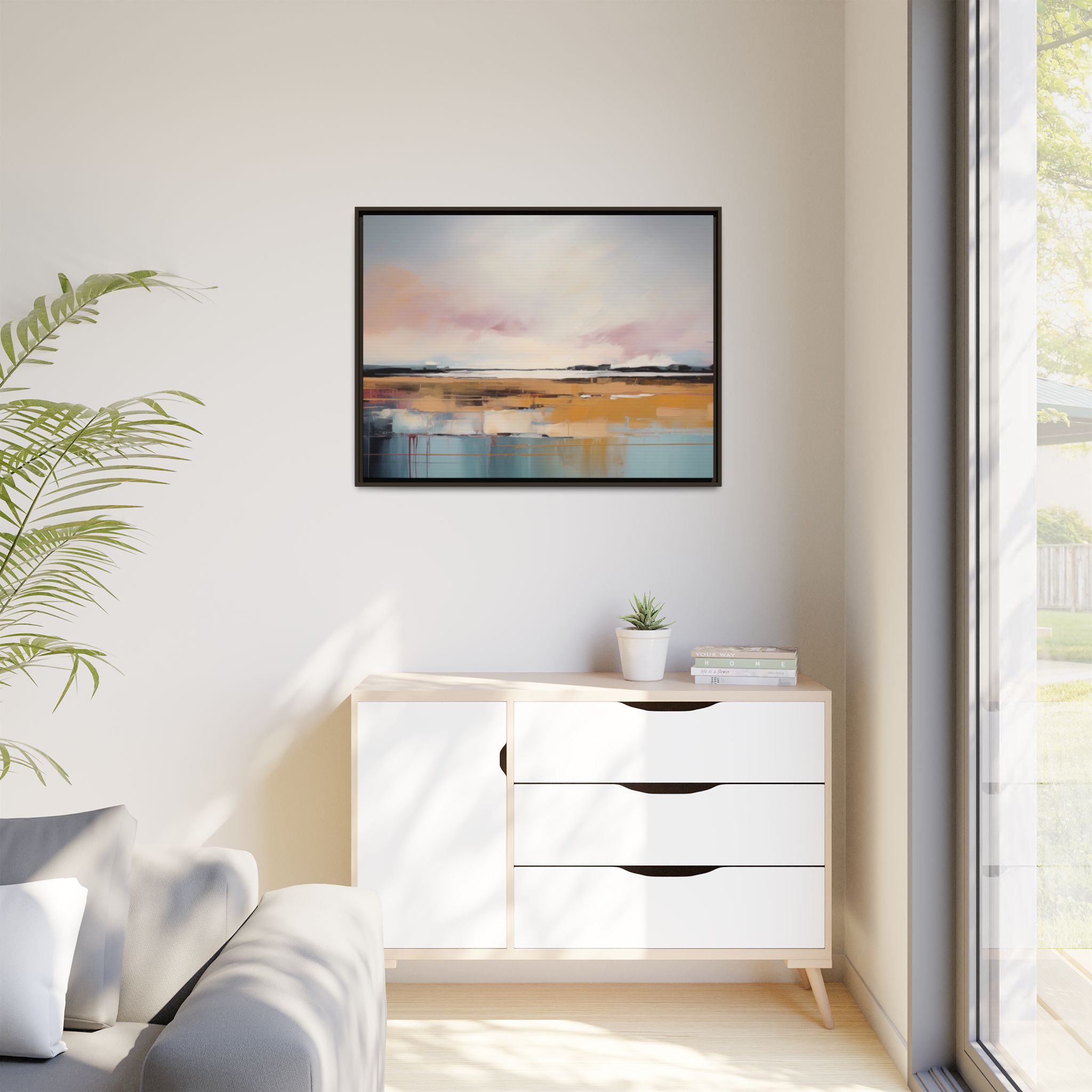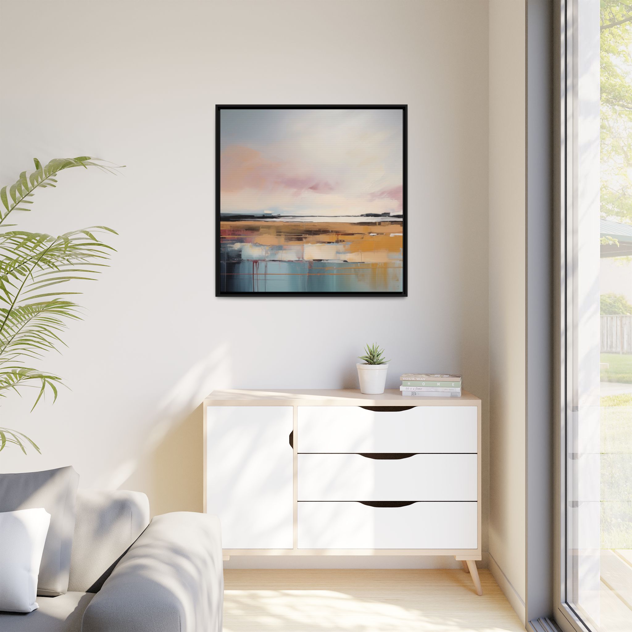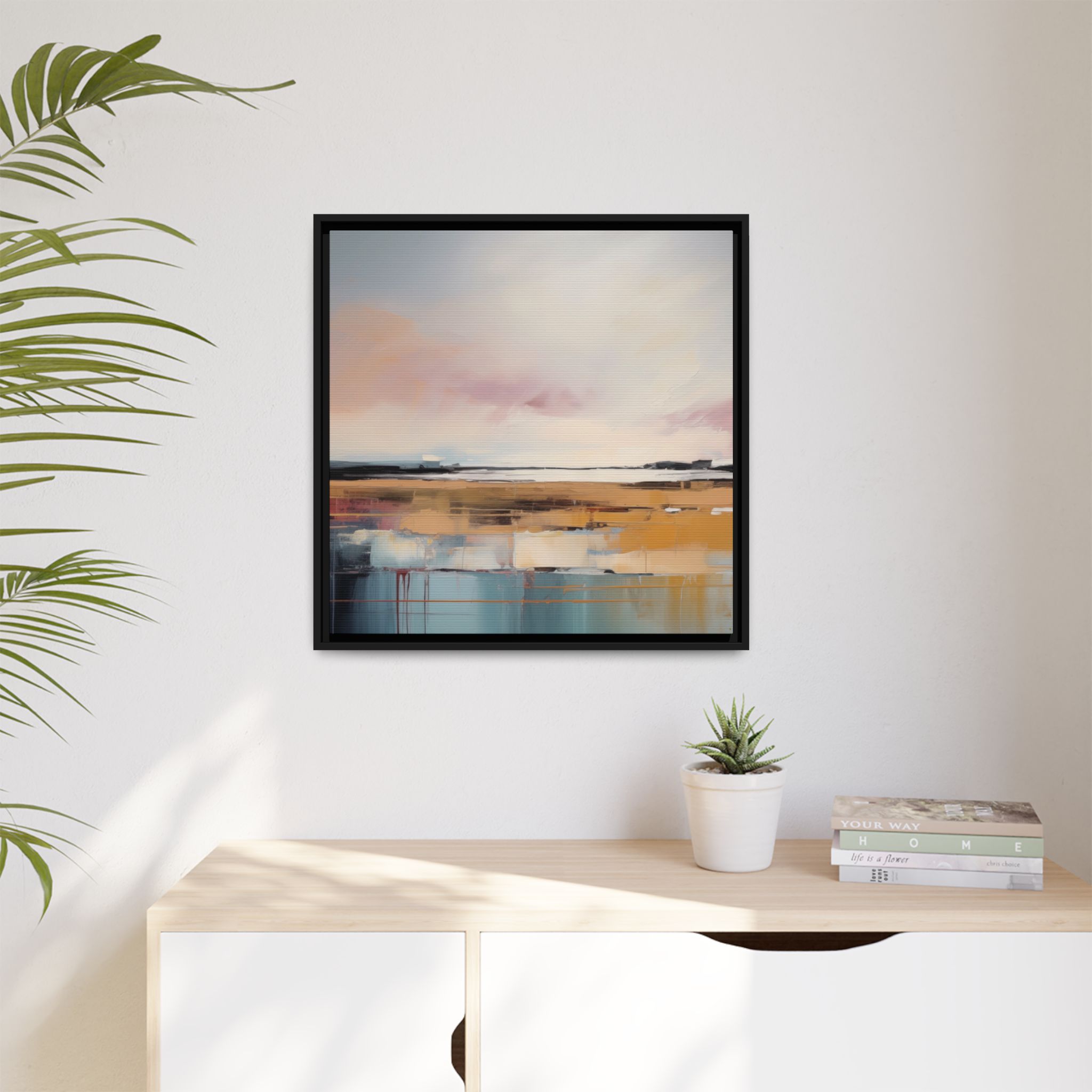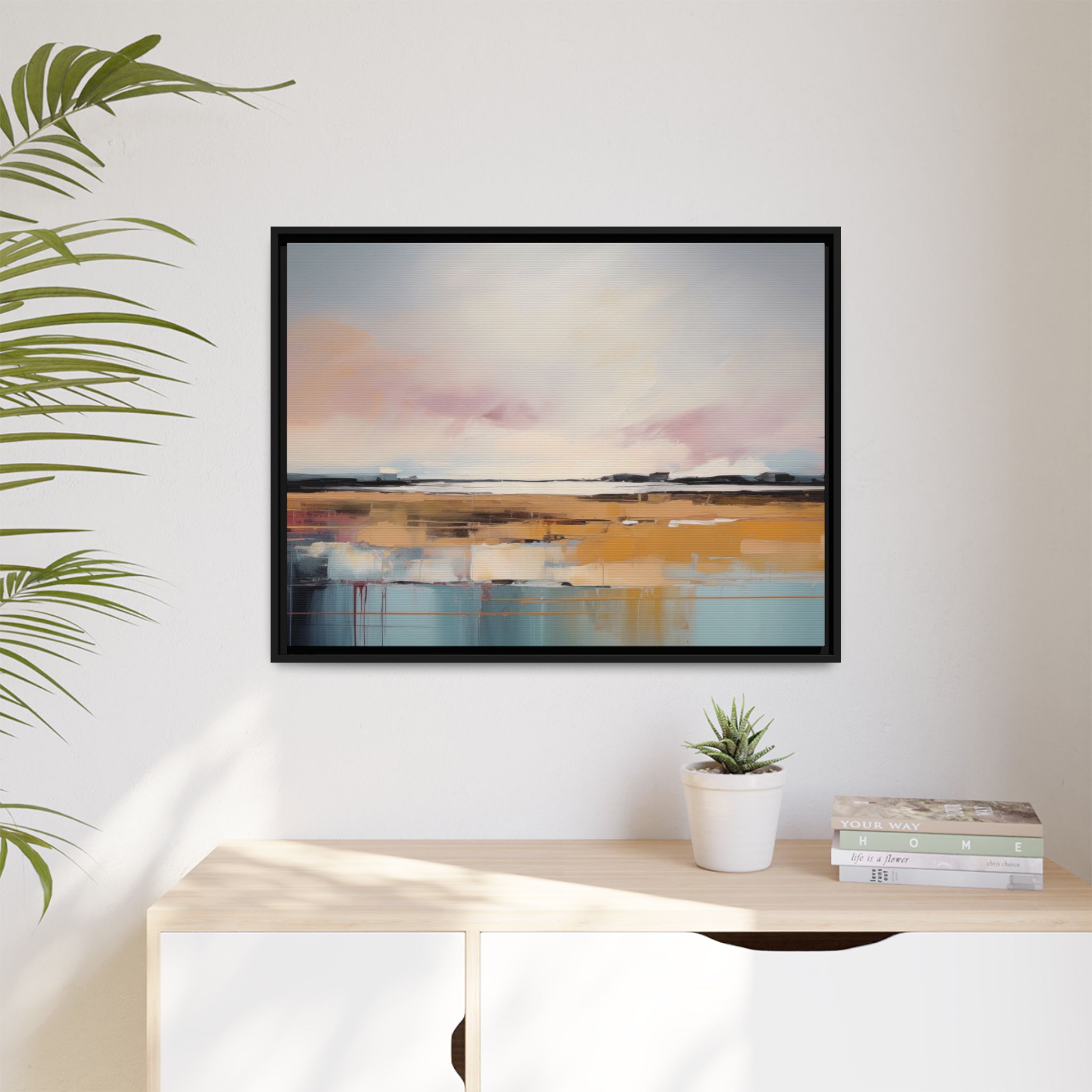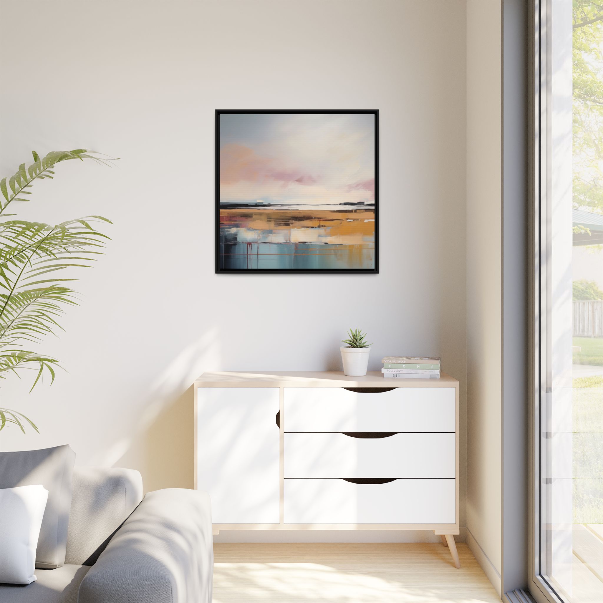 Custom digitally printed artwork on a quality canvas. .Every print in a black pinewood frame will look sleek and beautiful in any interior. The artwork will be printed on the cotton-polyester canvas with a special proprietary coating to make sure it stays vibrant for ages. Environmentally-conscious – it’s made from sustainably sourced materials (Forest Stewardship Council certified) and custom printed on demand no warehouse stocks and no waste. Choose between the designer specified sizes. The sawtooth hanging hardware is already attached.