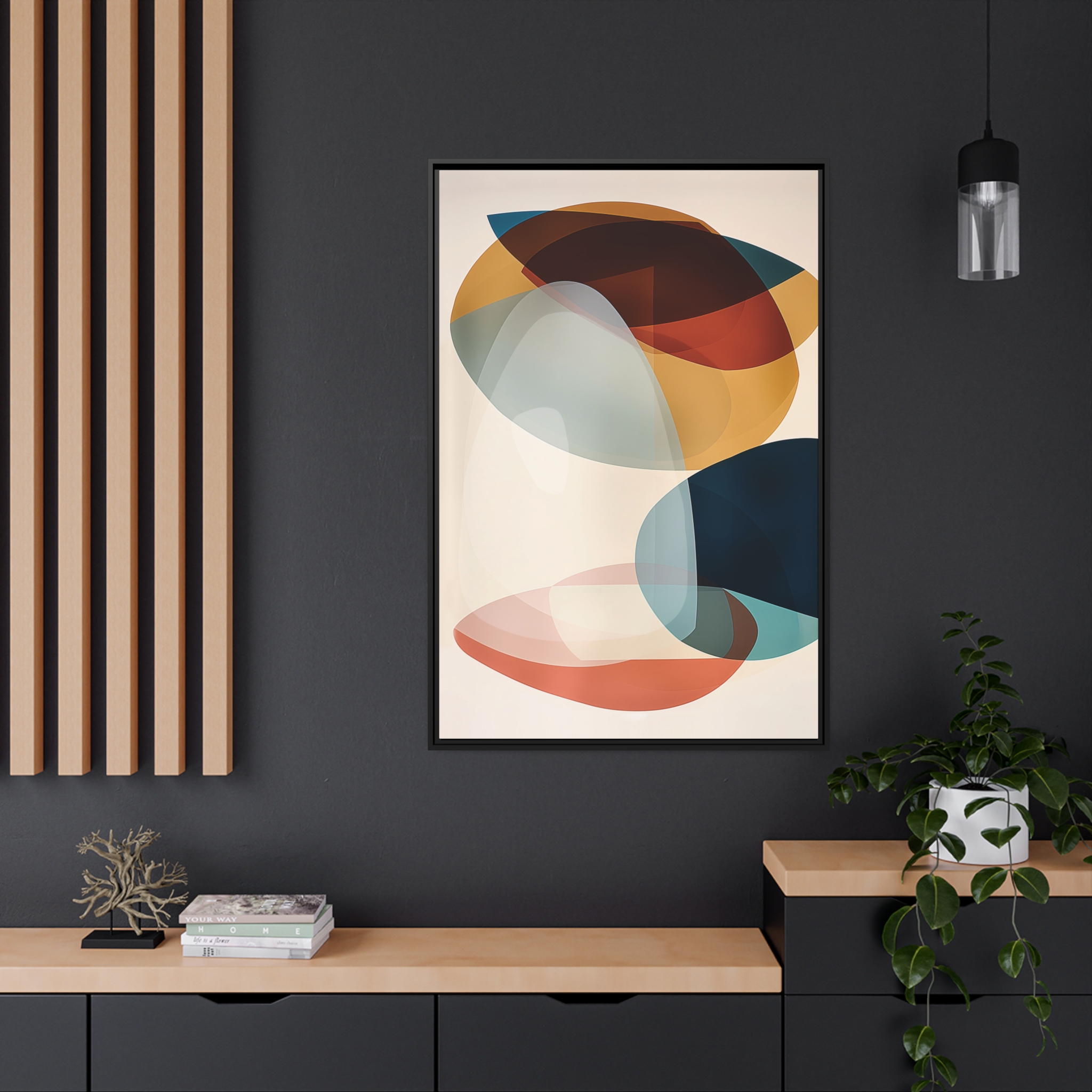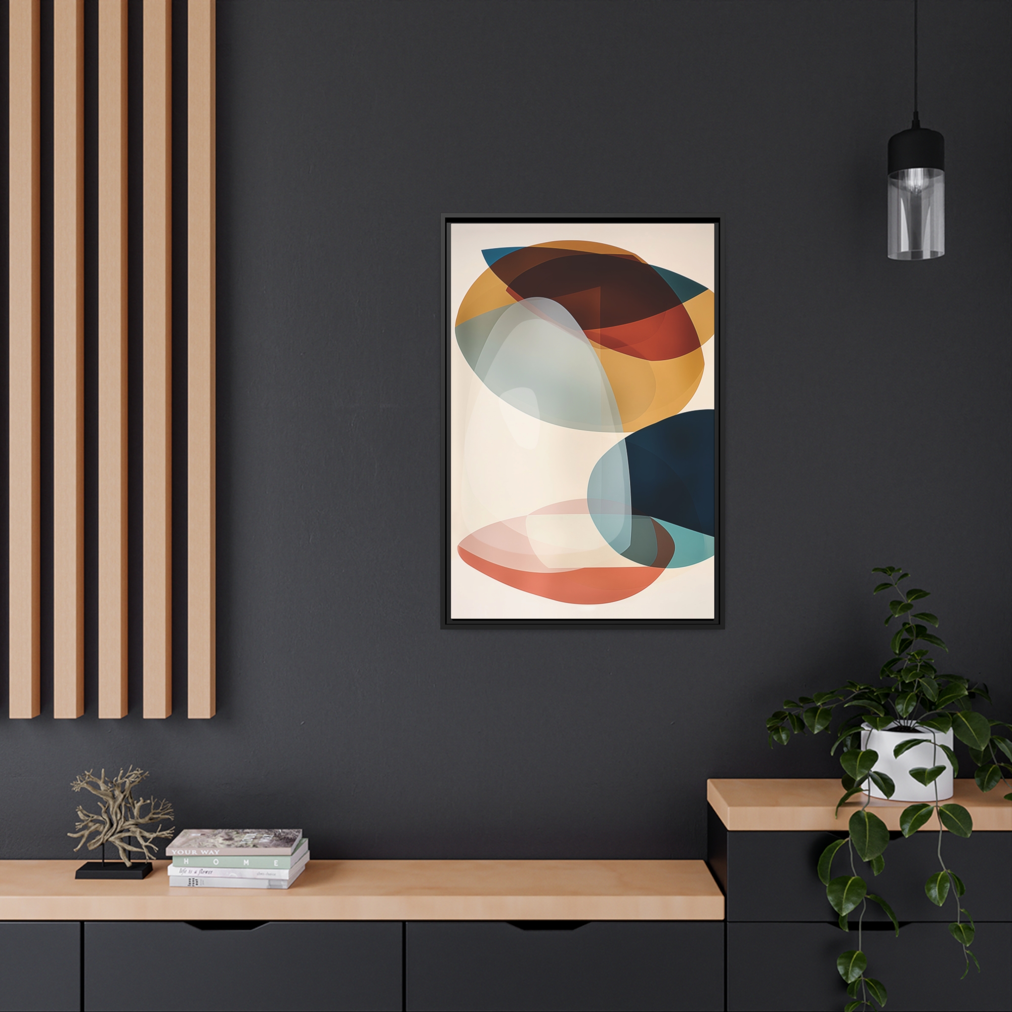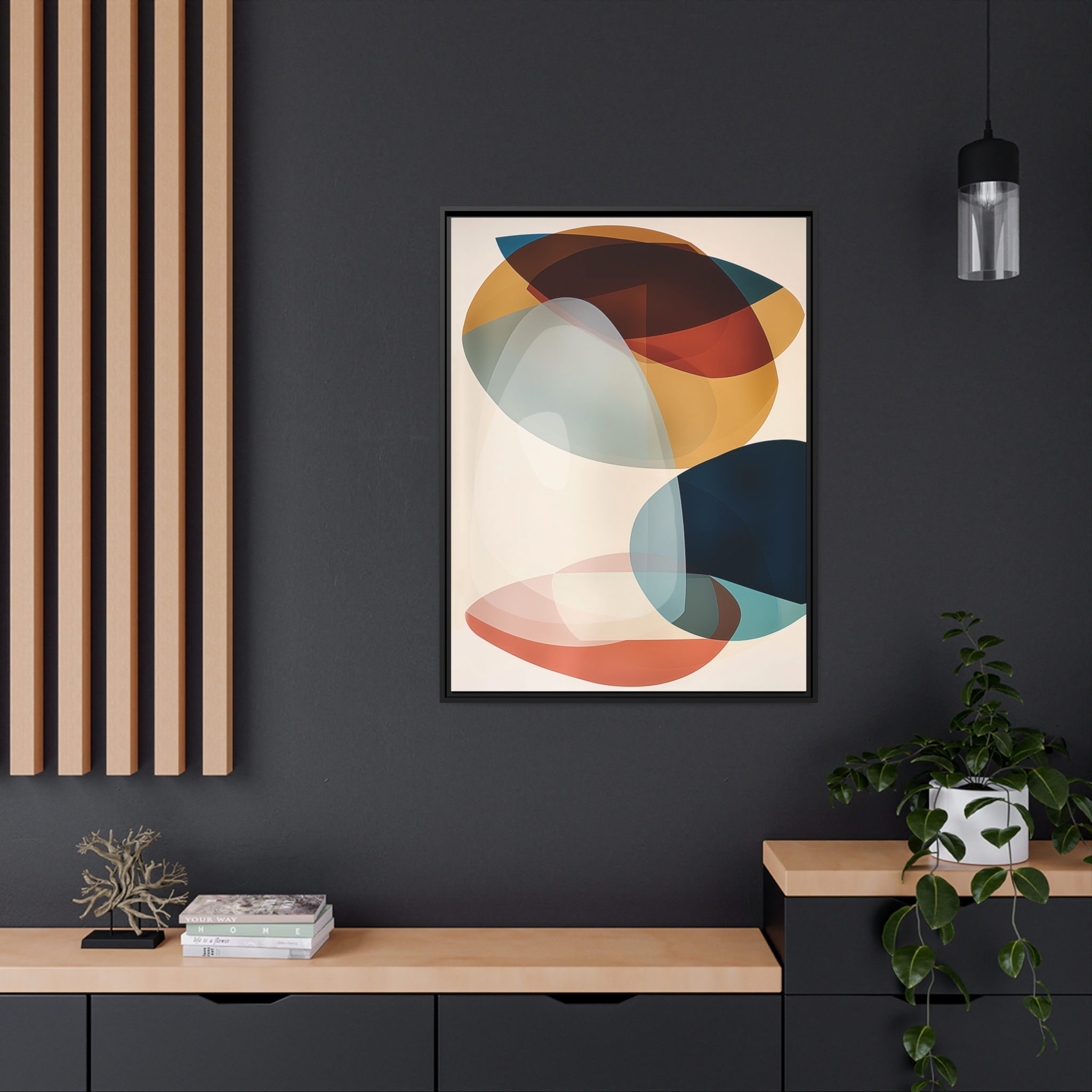 Custom digitally printed artwork on a quality canvas. .Every print in a black pinewood frame will look sleek and beautiful in any interior. The artwork will be printed on the cotton-polyester canvas with a special proprietary coating to make sure it stays vibrant for ages. Environmentally-conscious – it’s made from sustainably sourced materials (Forest Stewardship Council certified) and custom printed on demand no warehouse stocks and no waste. Choose between the designer specified sizes. The sawtooth hanging hardware is already attached.