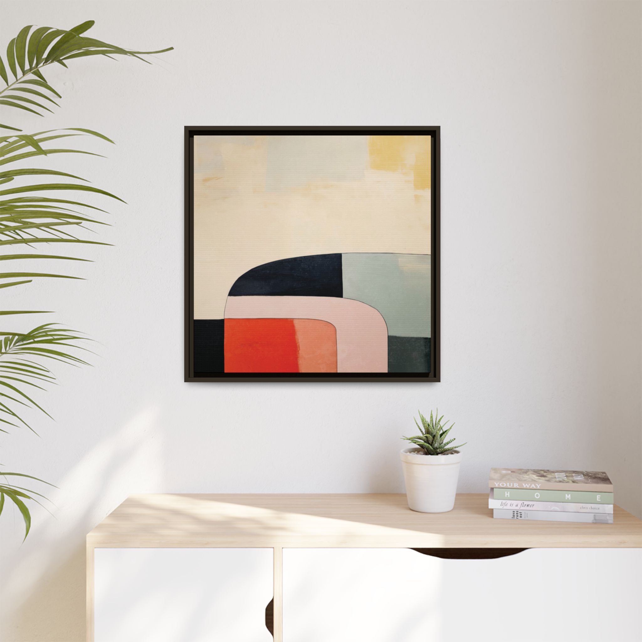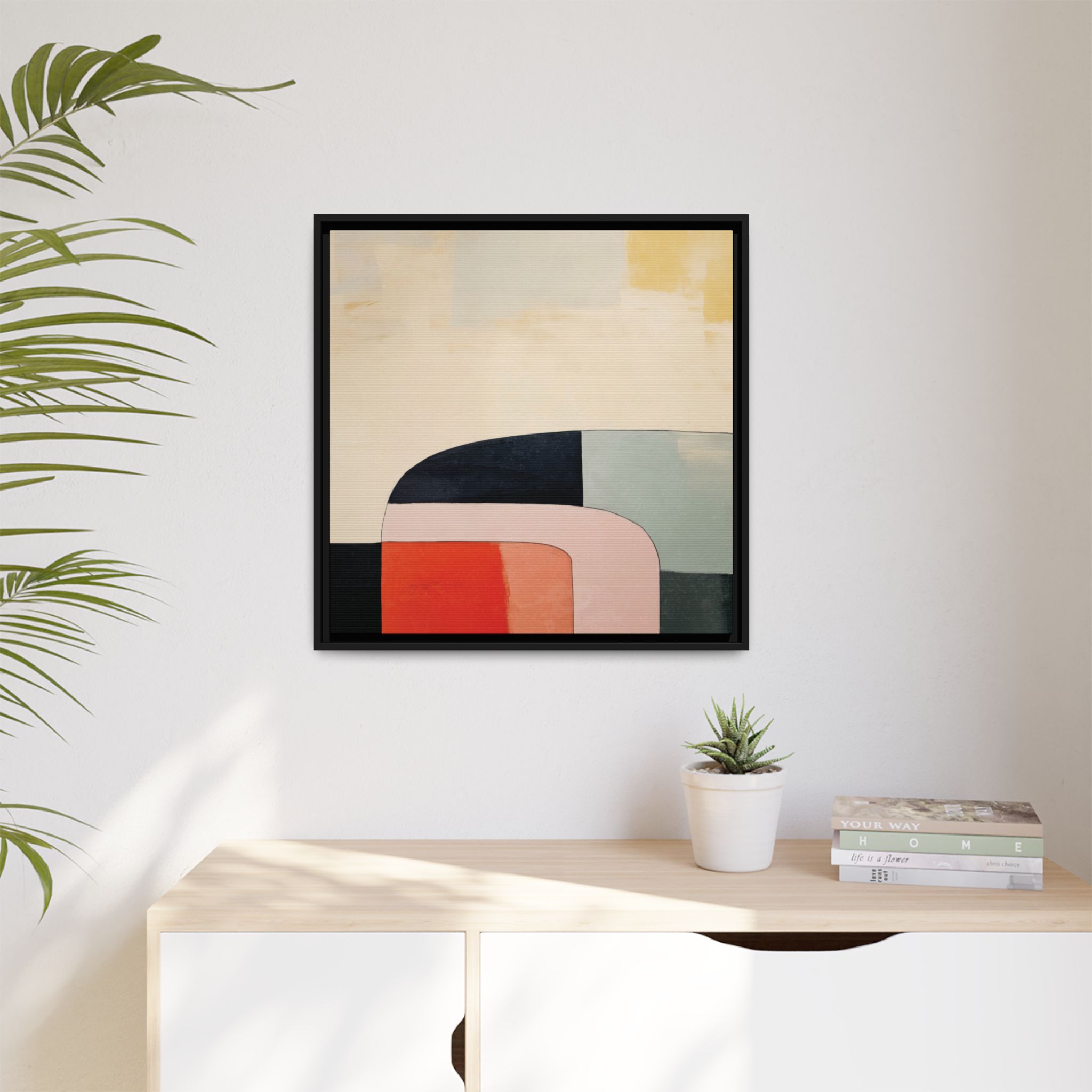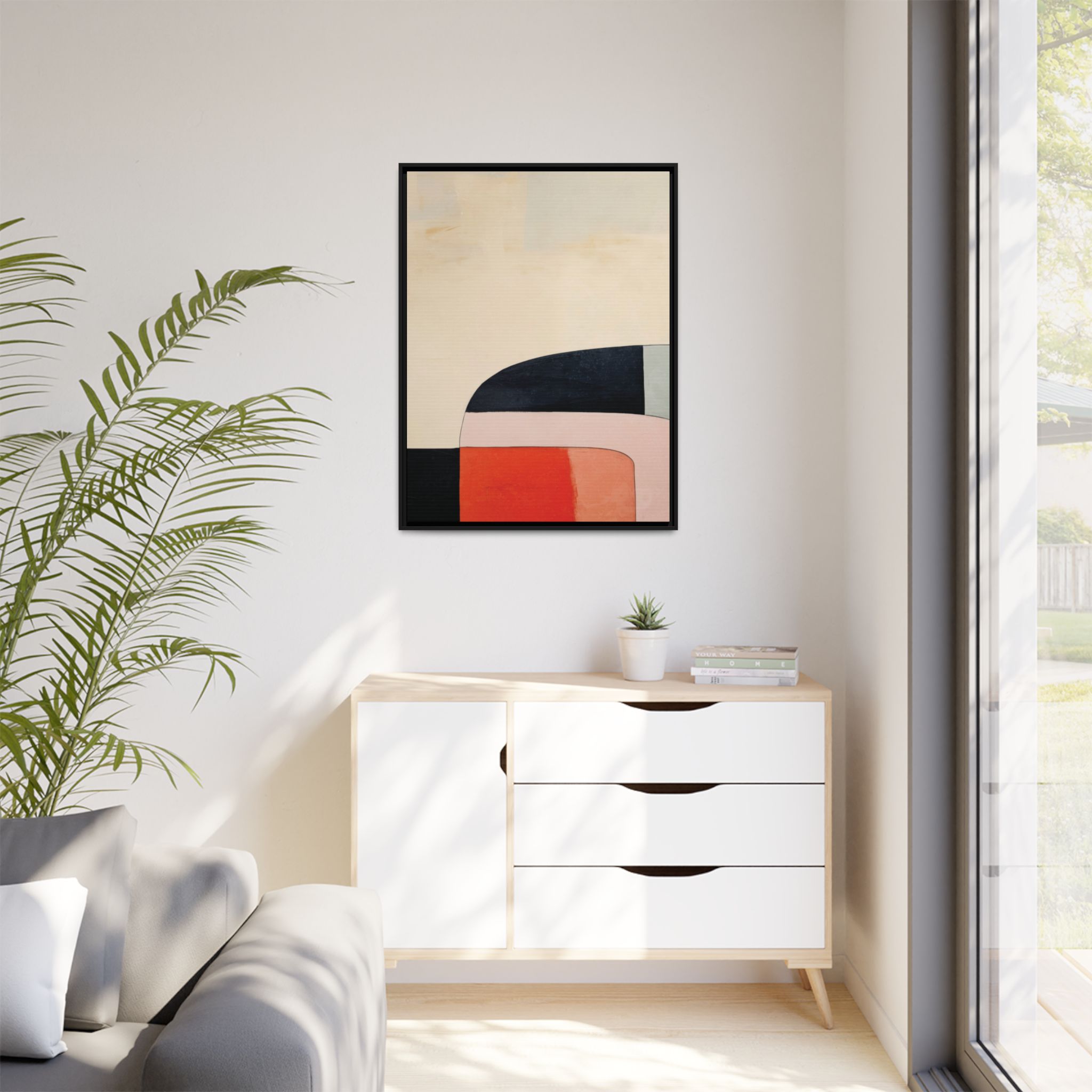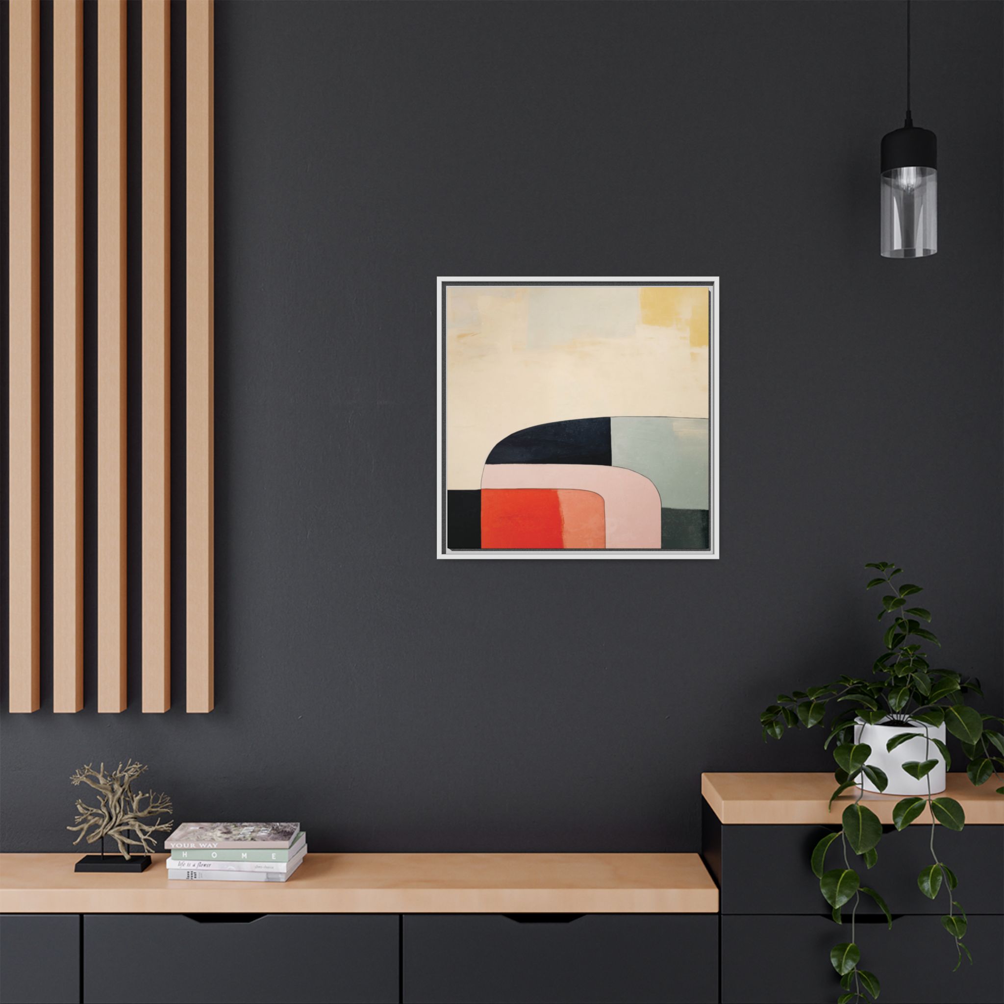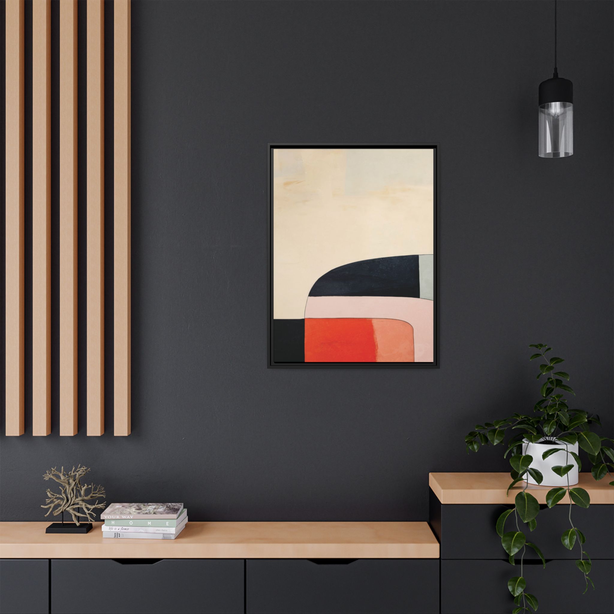 Custom digitally printed artwork on a quality canvas. .Every print in a black pinewood frame will look sleek and beautiful in any interior. The artwork will be printed on the cotton-polyester canvas with a special proprietary coating to make sure it stays vibrant for ages. Environmentally-conscious – it’s made from sustainably sourced materials (Forest Stewardship Council certified) and custom printed on demand no warehouse stocks and no waste. Choose between the designer specified sizes. The sawtooth hanging hardware is already attached.