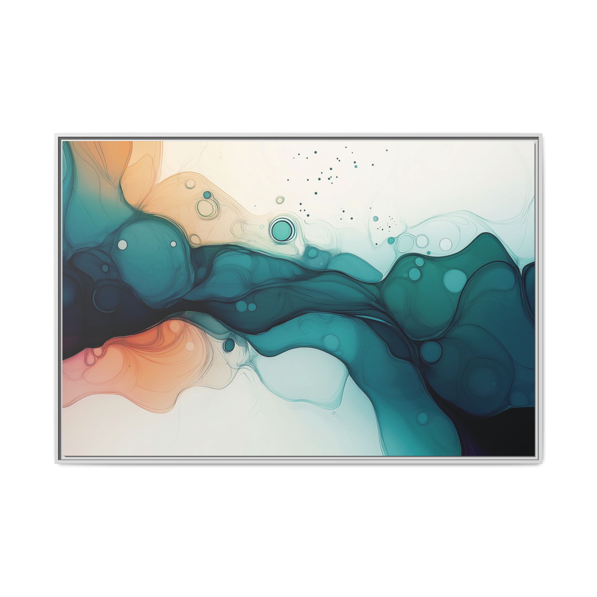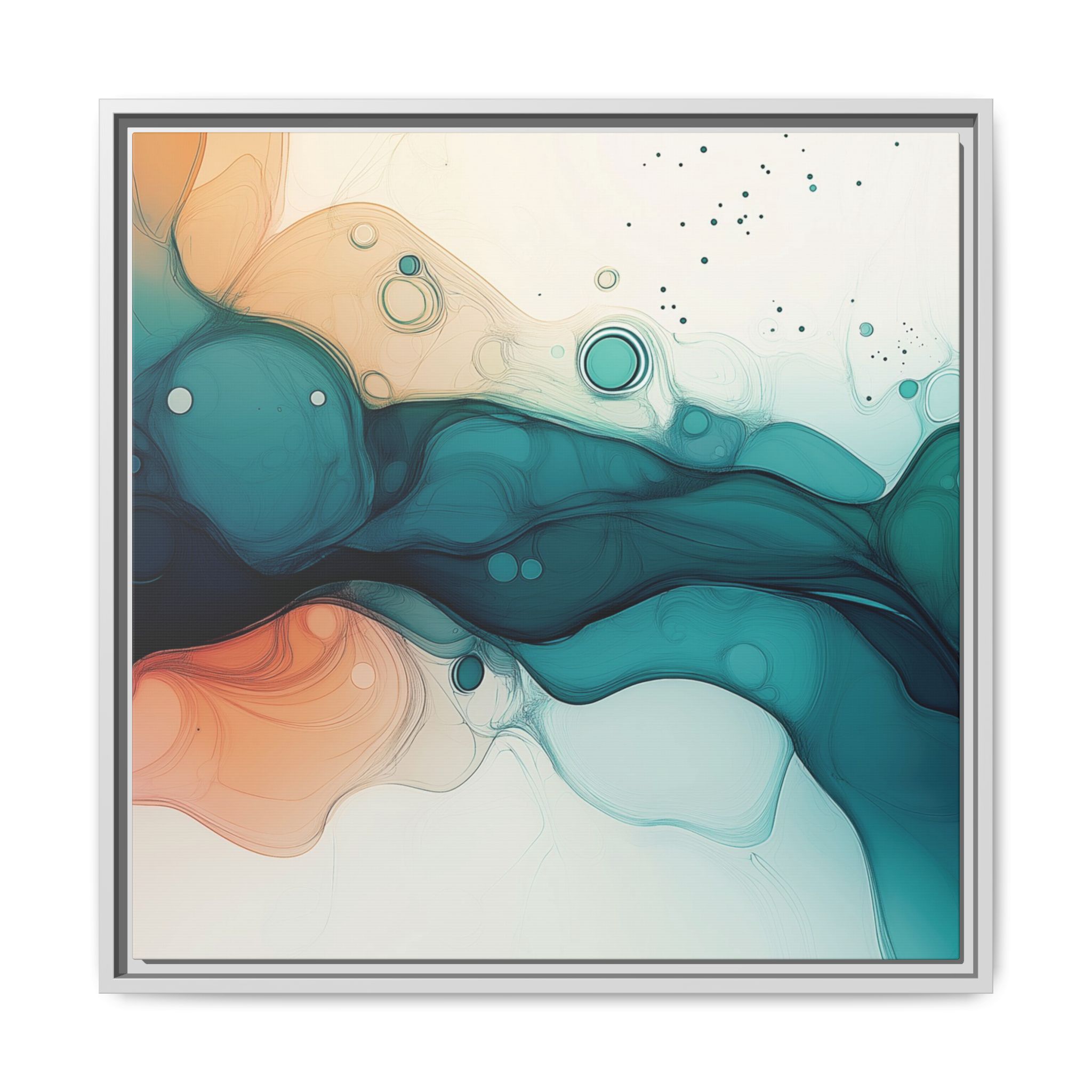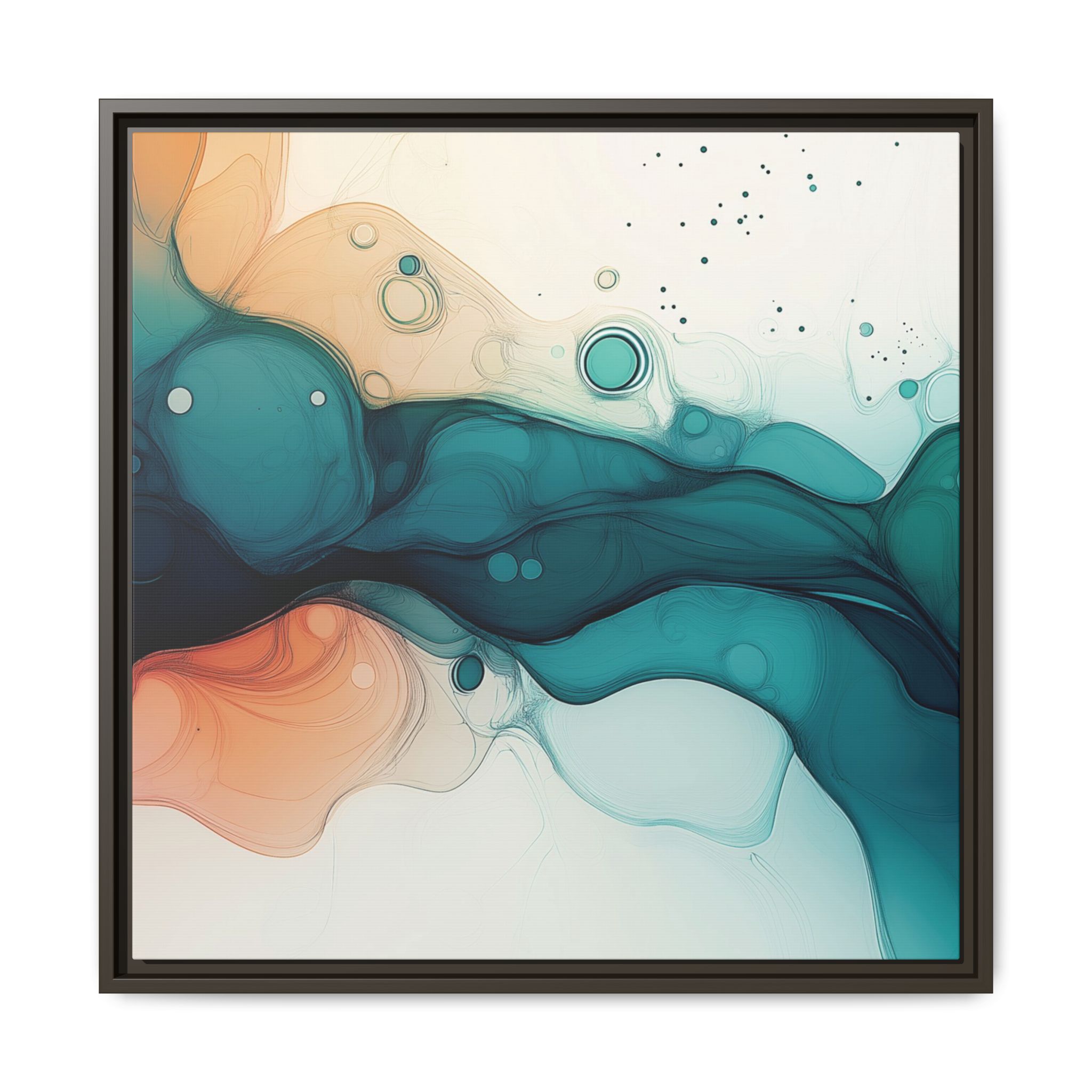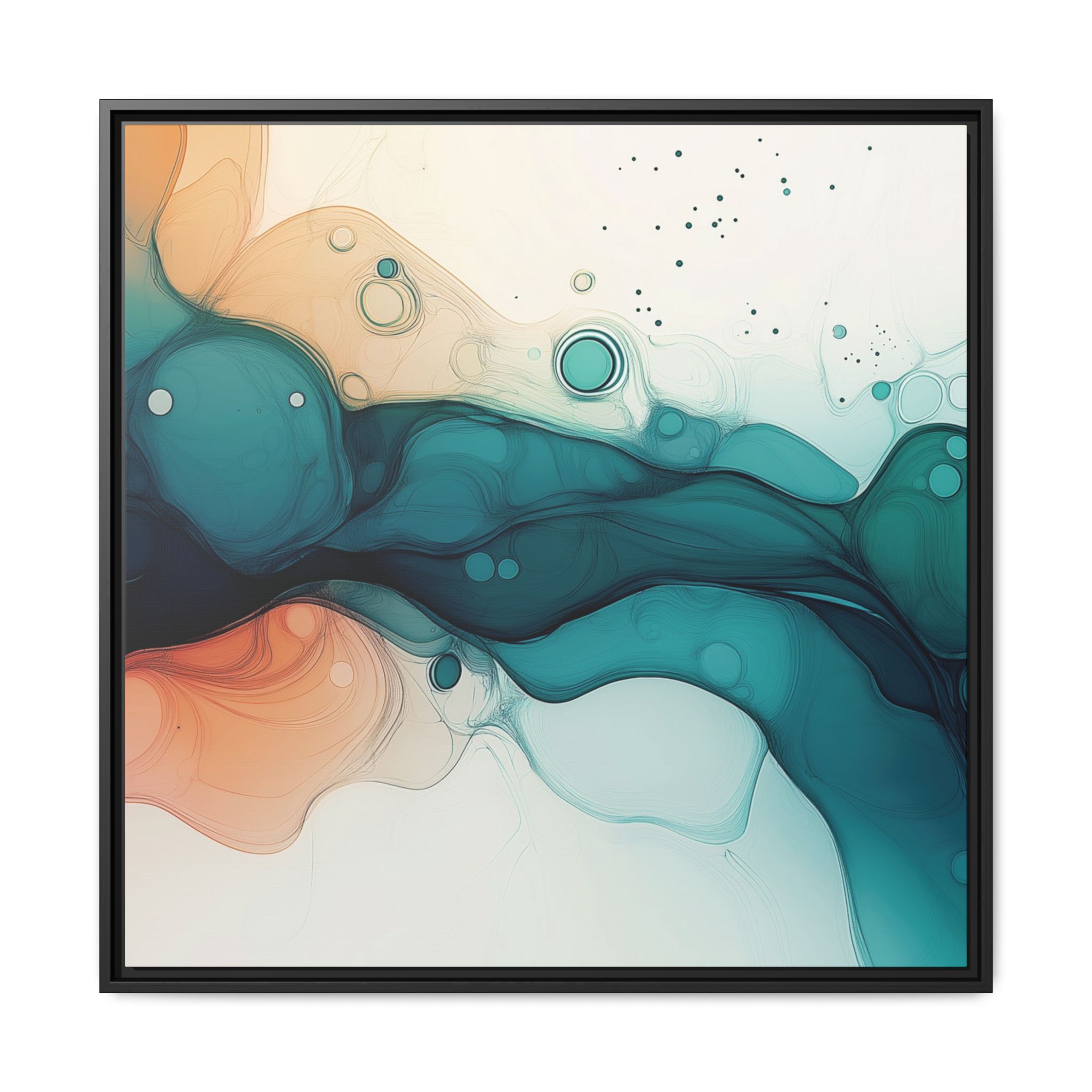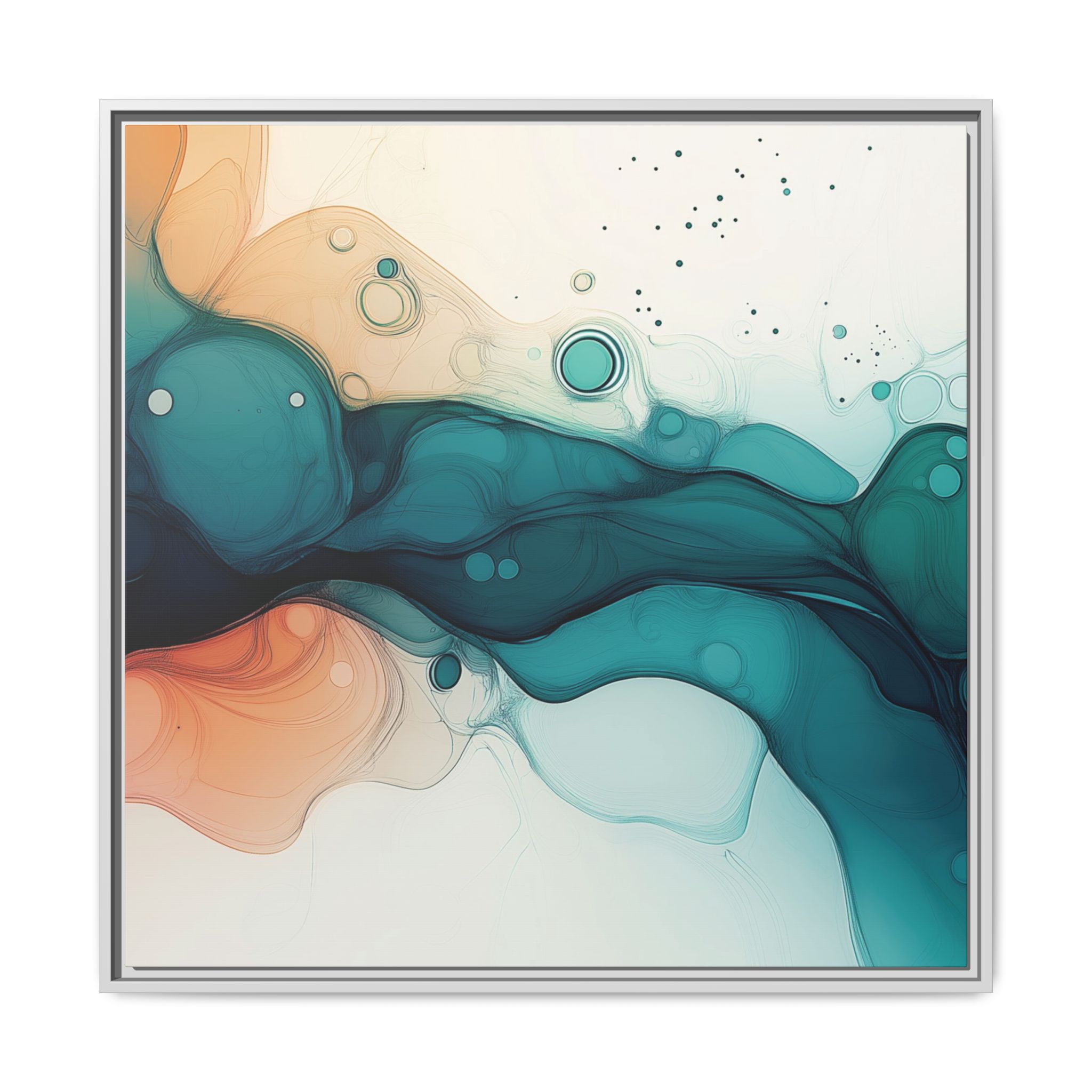 Bring a tranquil and ethereal vibe to your space with this vibrant fluid art canvas print in teal and orange colors. Perfect for art lovers looking to add a unique touch to their home decor. Ideal for gift-giving during birthdays, housewarmings, or as a thoughtful gesture for art enthusiasts.