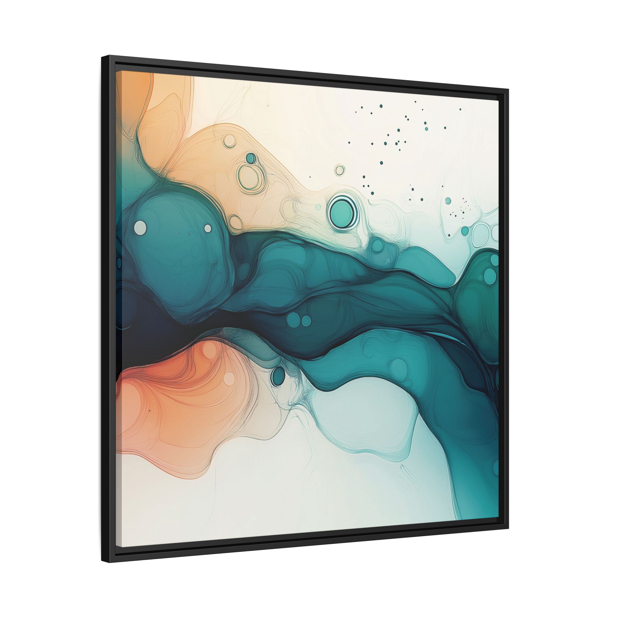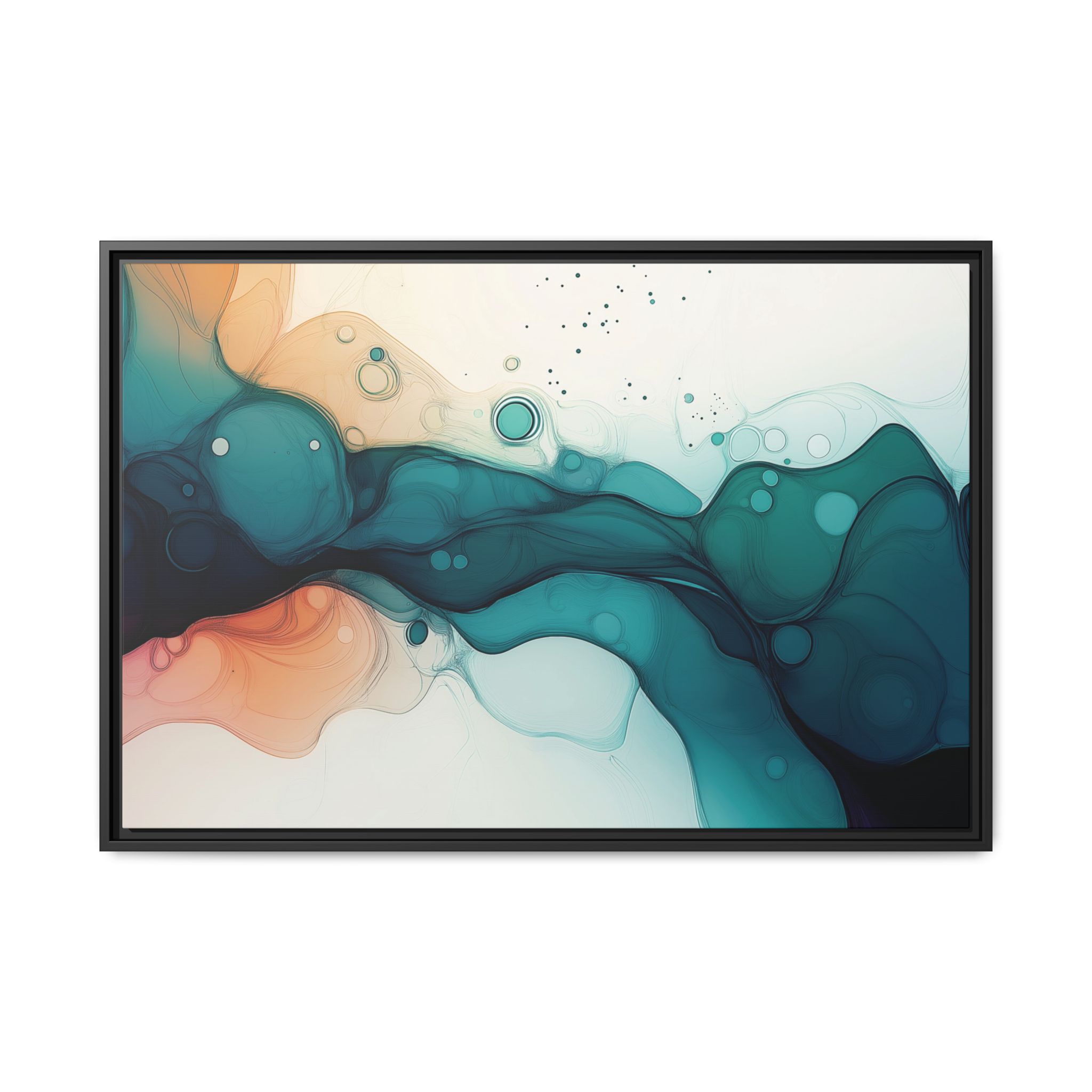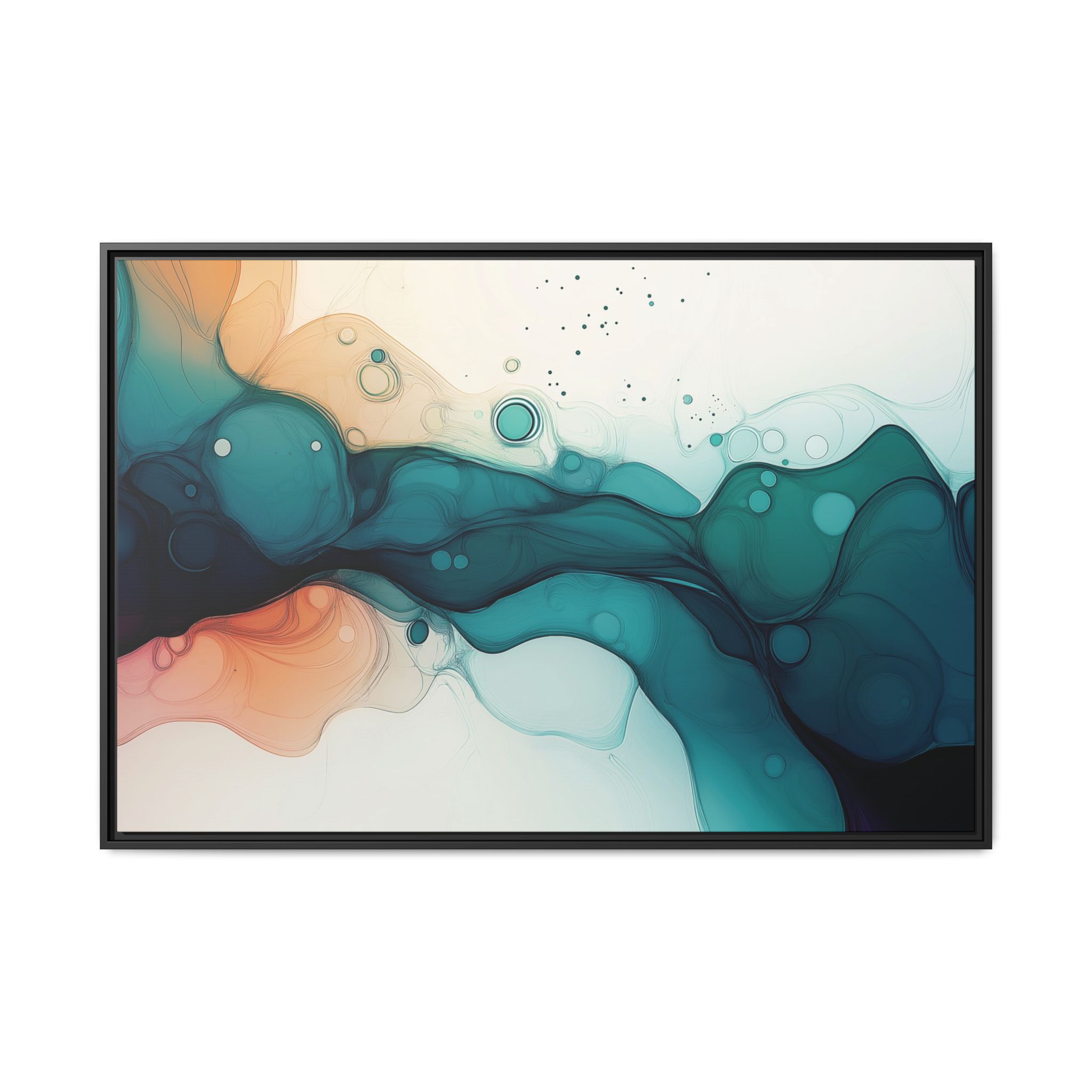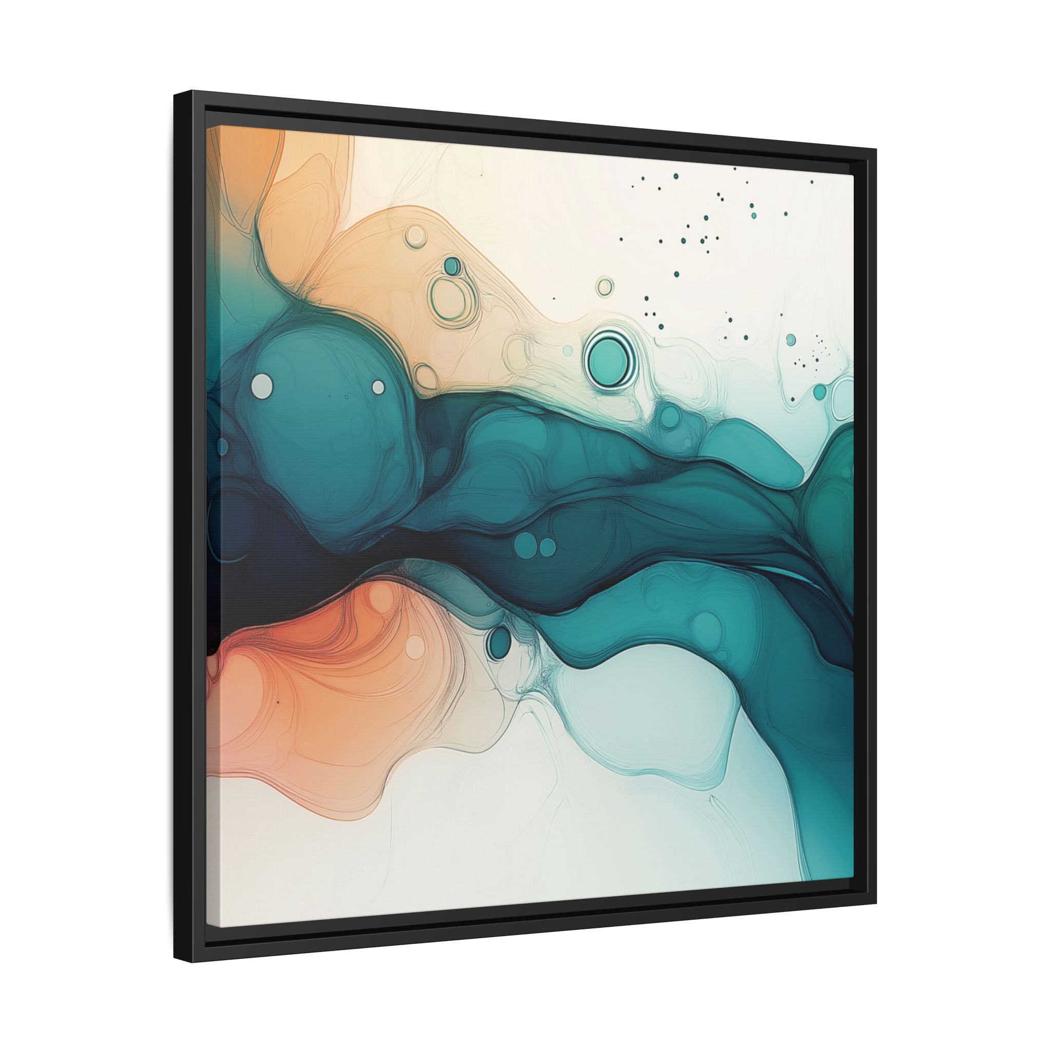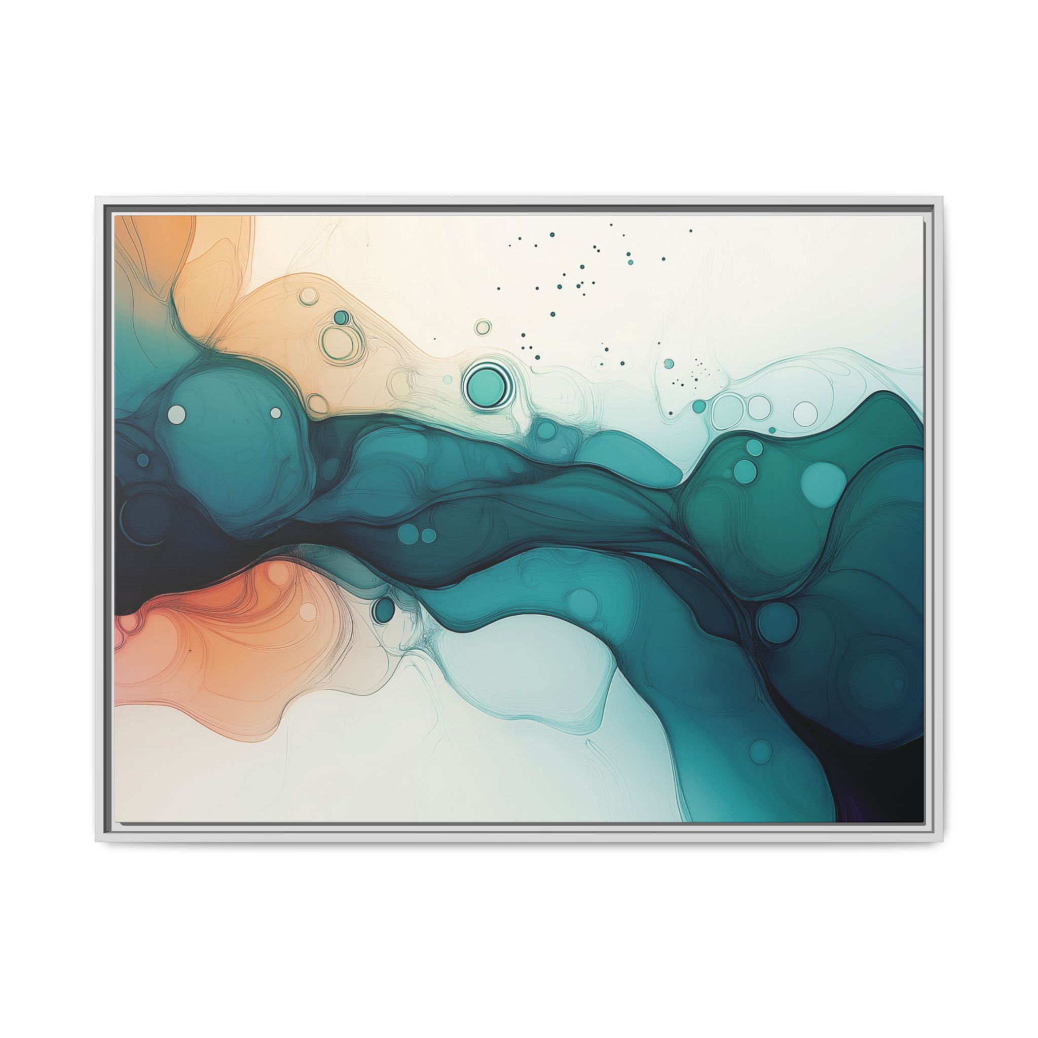 Bring a tranquil and ethereal vibe to your space with this vibrant fluid art canvas print in teal and orange colors. Perfect for art lovers looking to add a unique touch to their home decor. Ideal for gift-giving during birthdays, housewarmings, or as a thoughtful gesture for art enthusiasts.