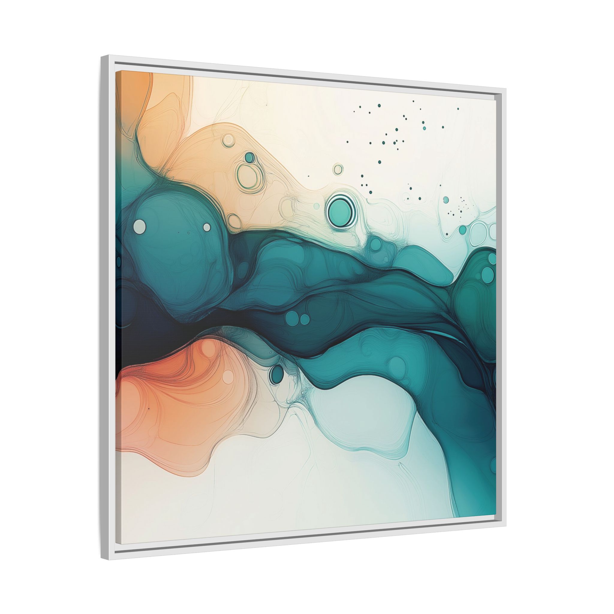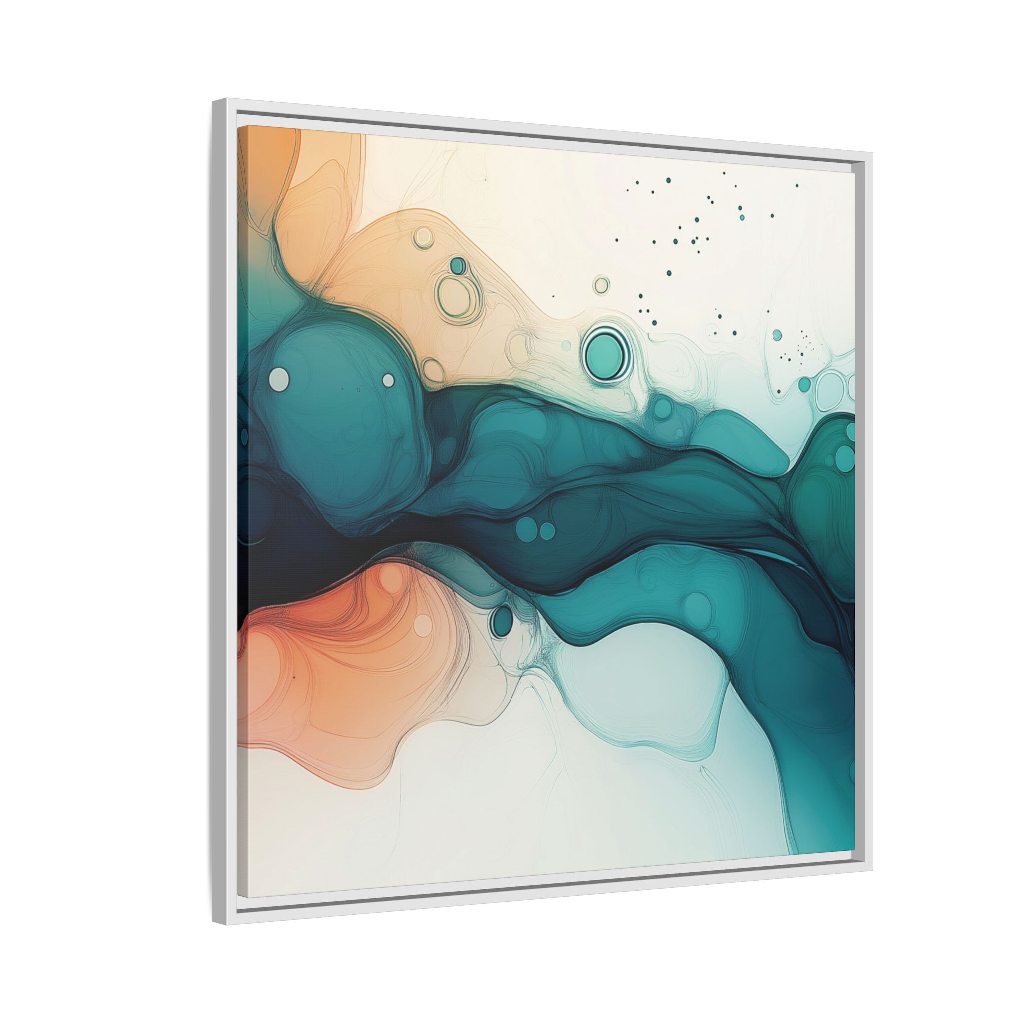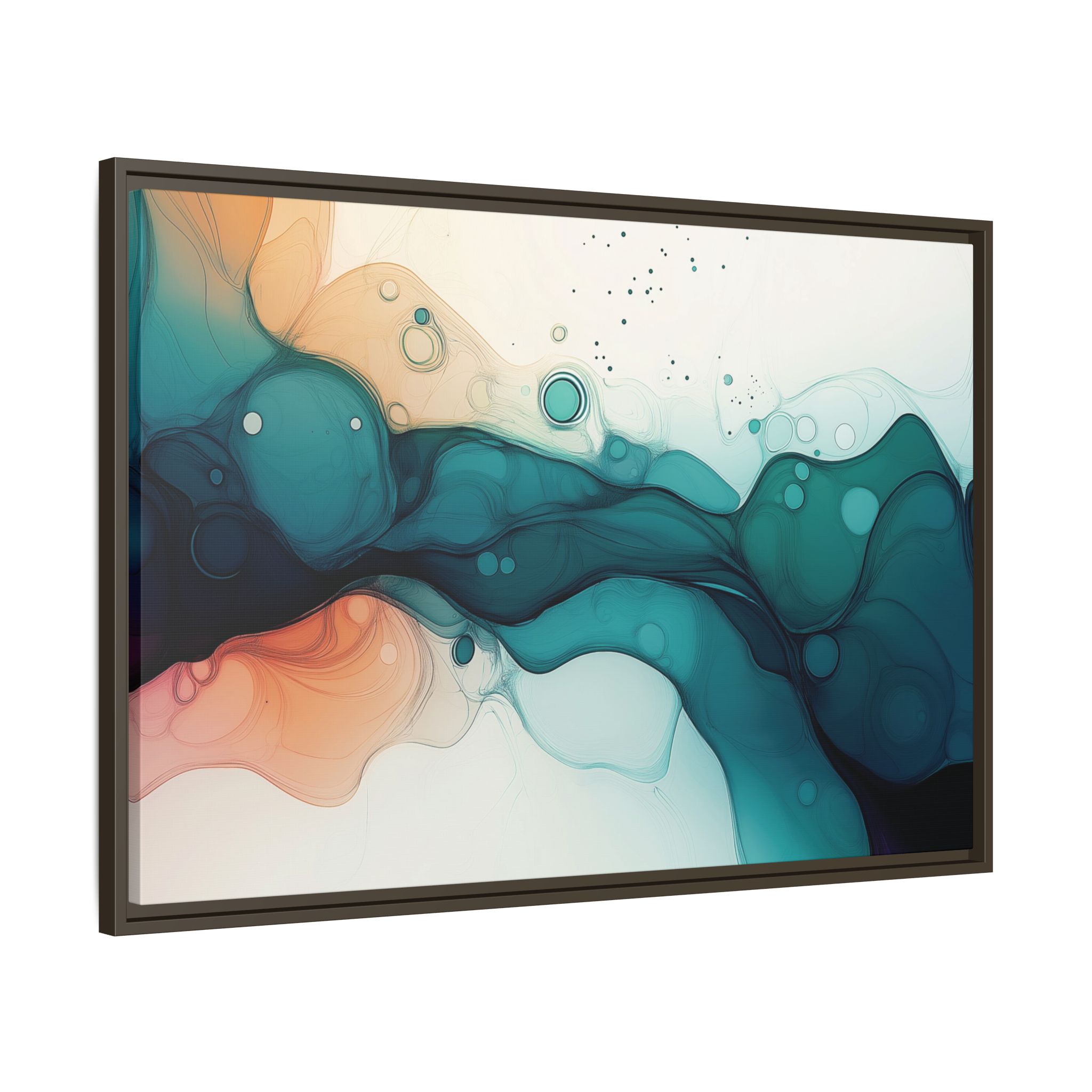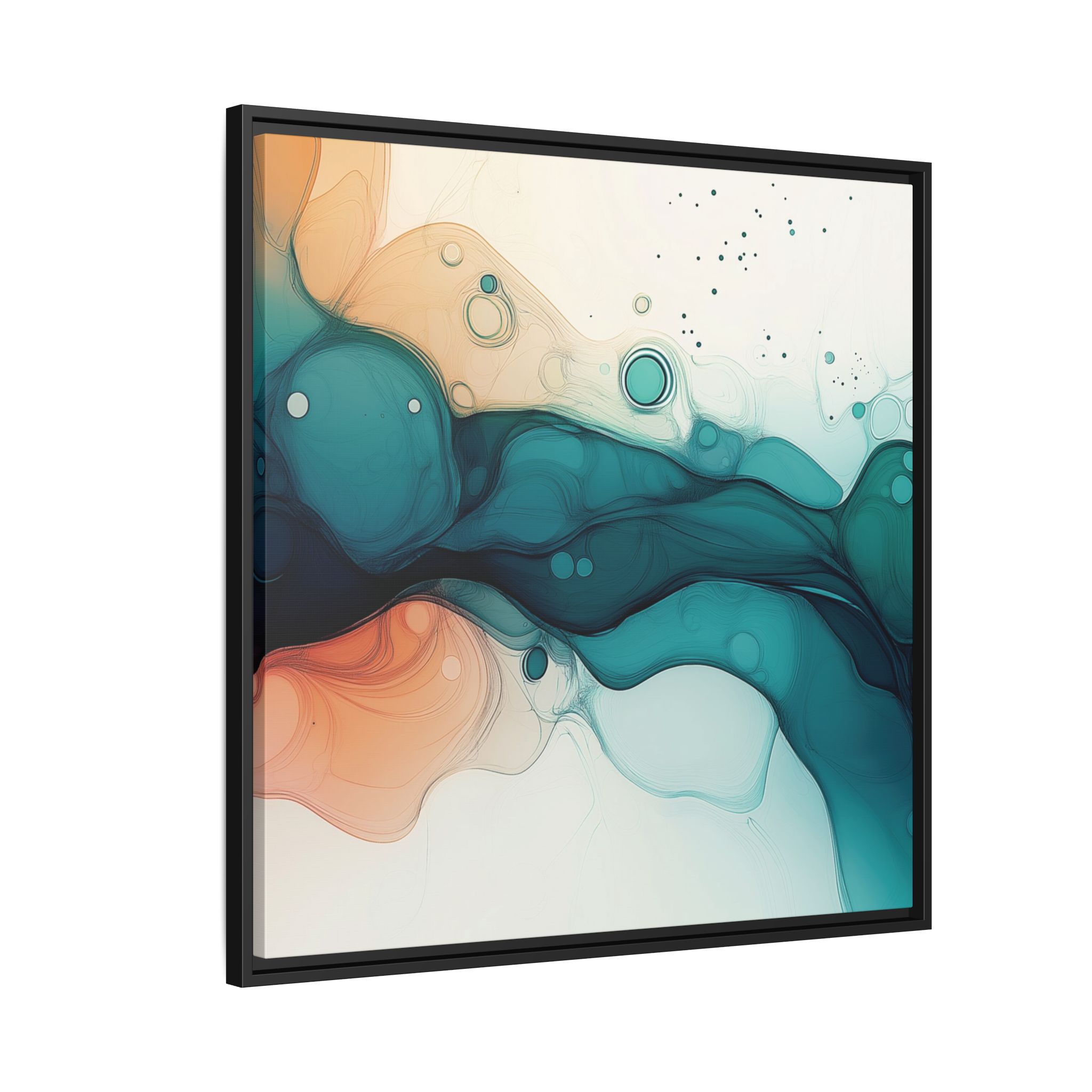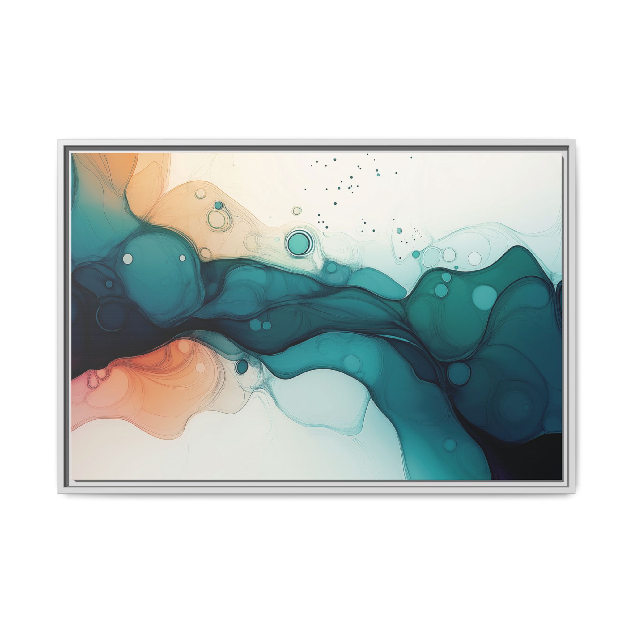 Bring a tranquil and ethereal vibe to your space with this vibrant fluid art canvas print in teal and orange colors. Perfect for art lovers looking to add a unique touch to their home decor. Ideal for gift-giving during birthdays, housewarmings, or as a thoughtful gesture for art enthusiasts.