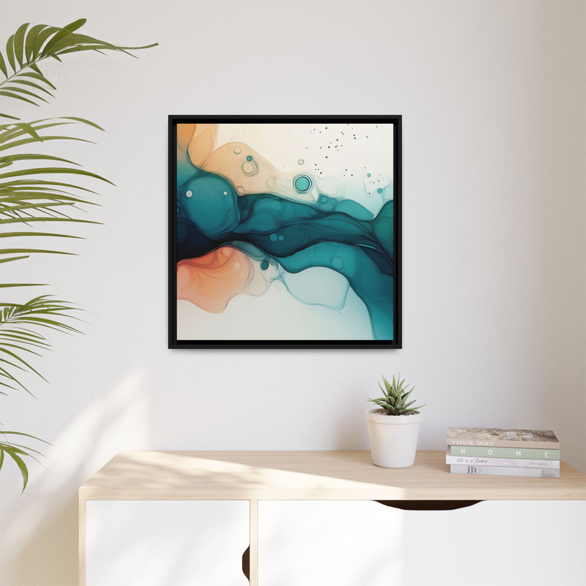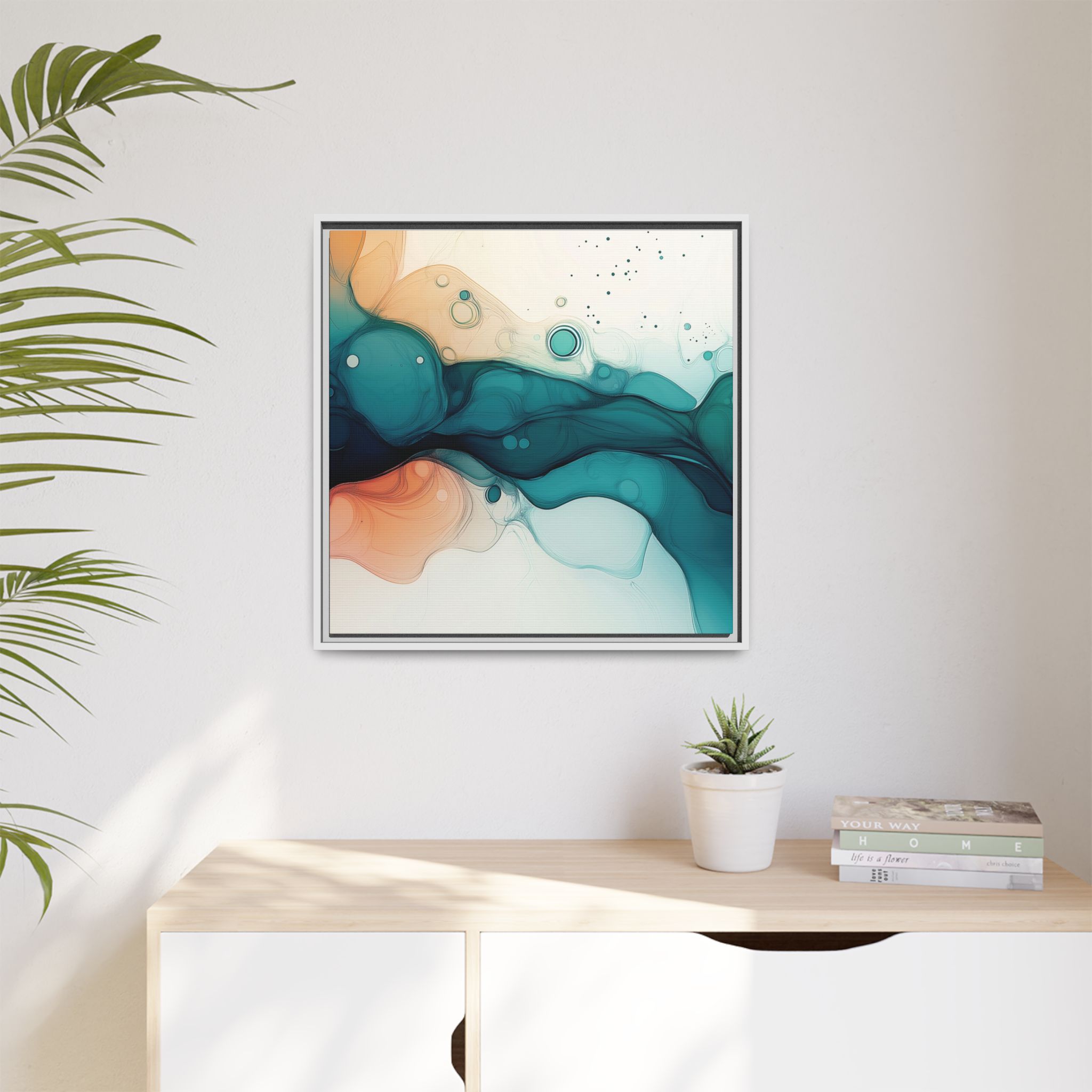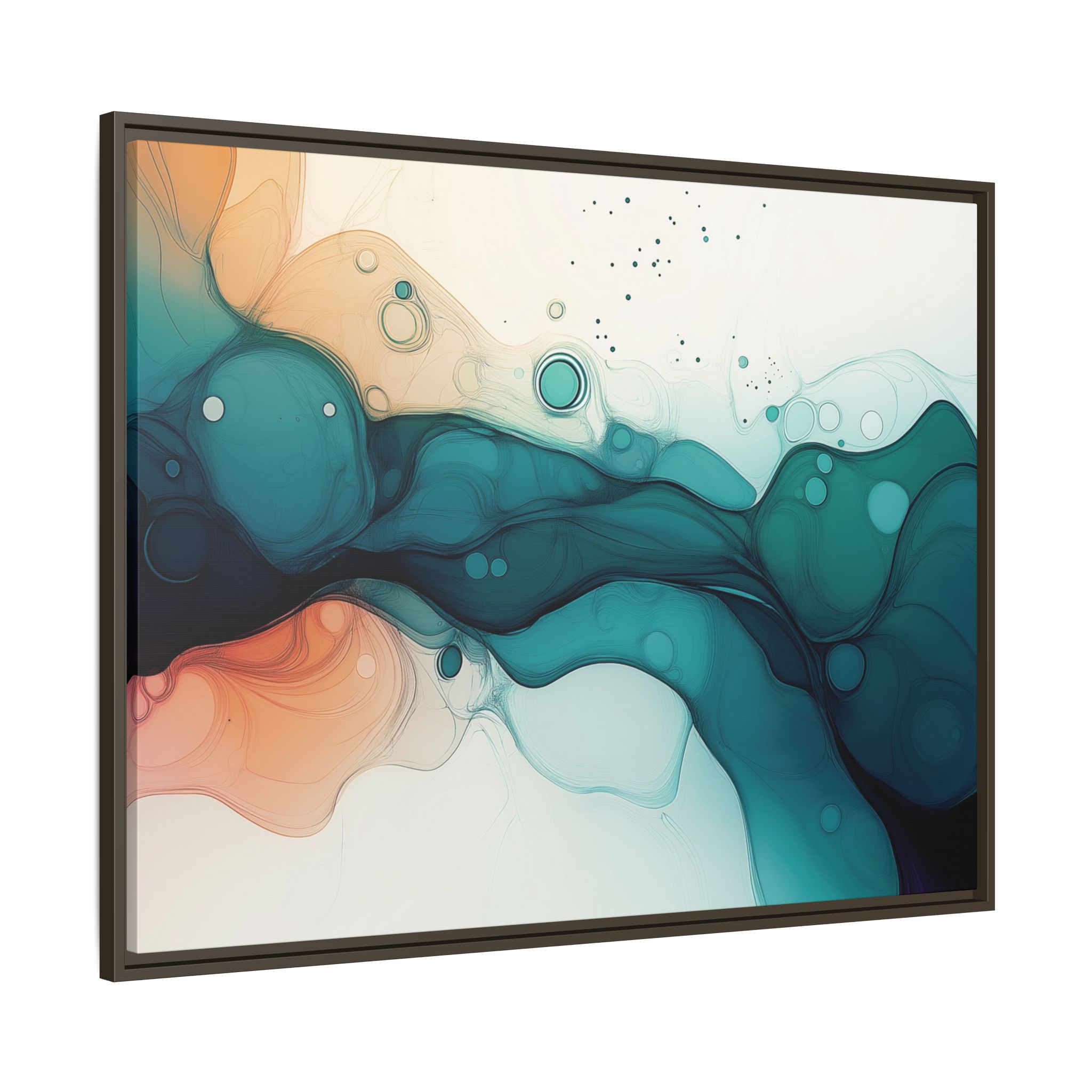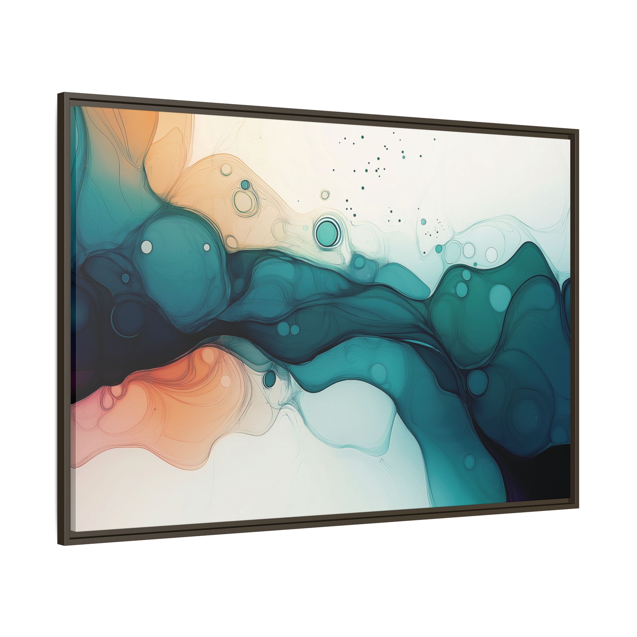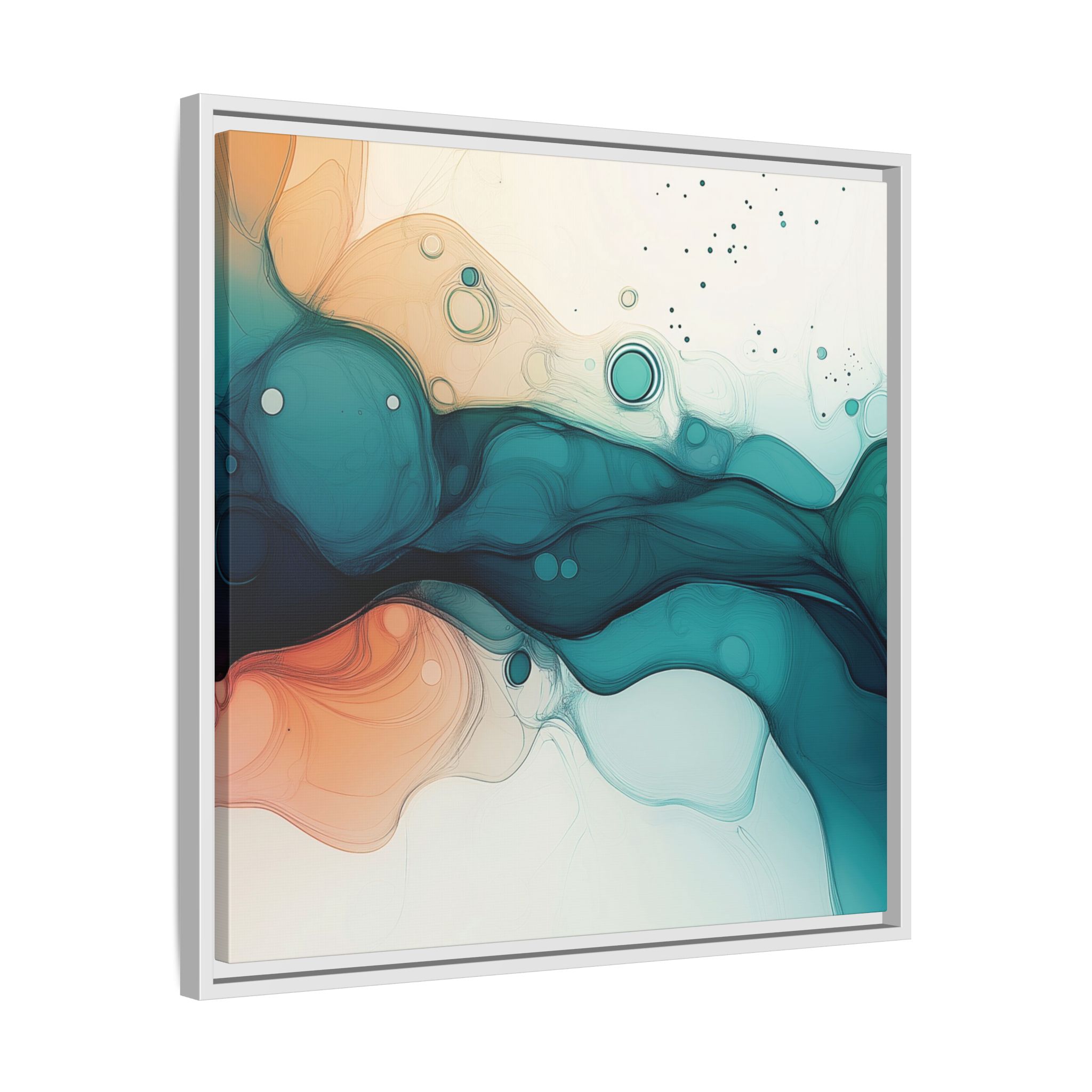 Bring a tranquil and ethereal vibe to your space with this vibrant fluid art canvas print in teal and orange colors. Perfect for art lovers looking to add a unique touch to their home decor. Ideal for gift-giving during birthdays, housewarmings, or as a thoughtful gesture for art enthusiasts.