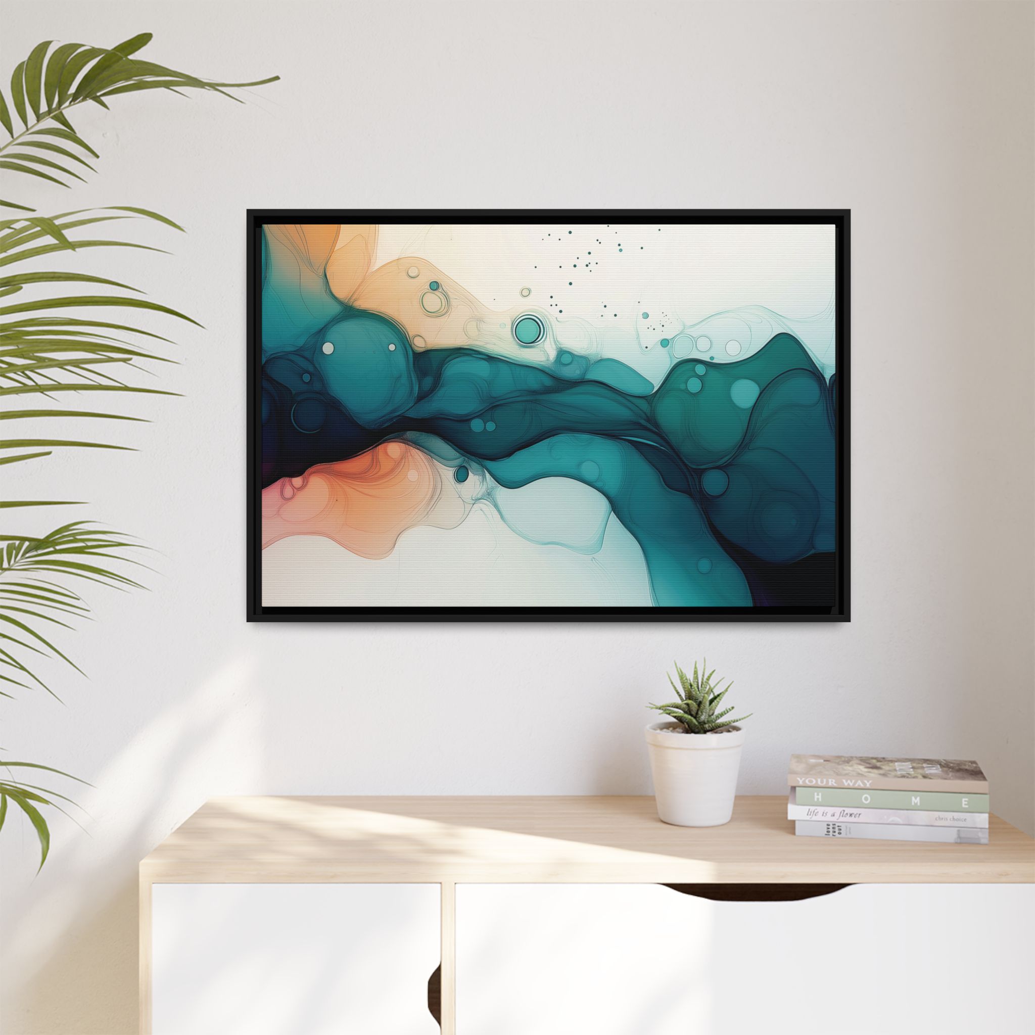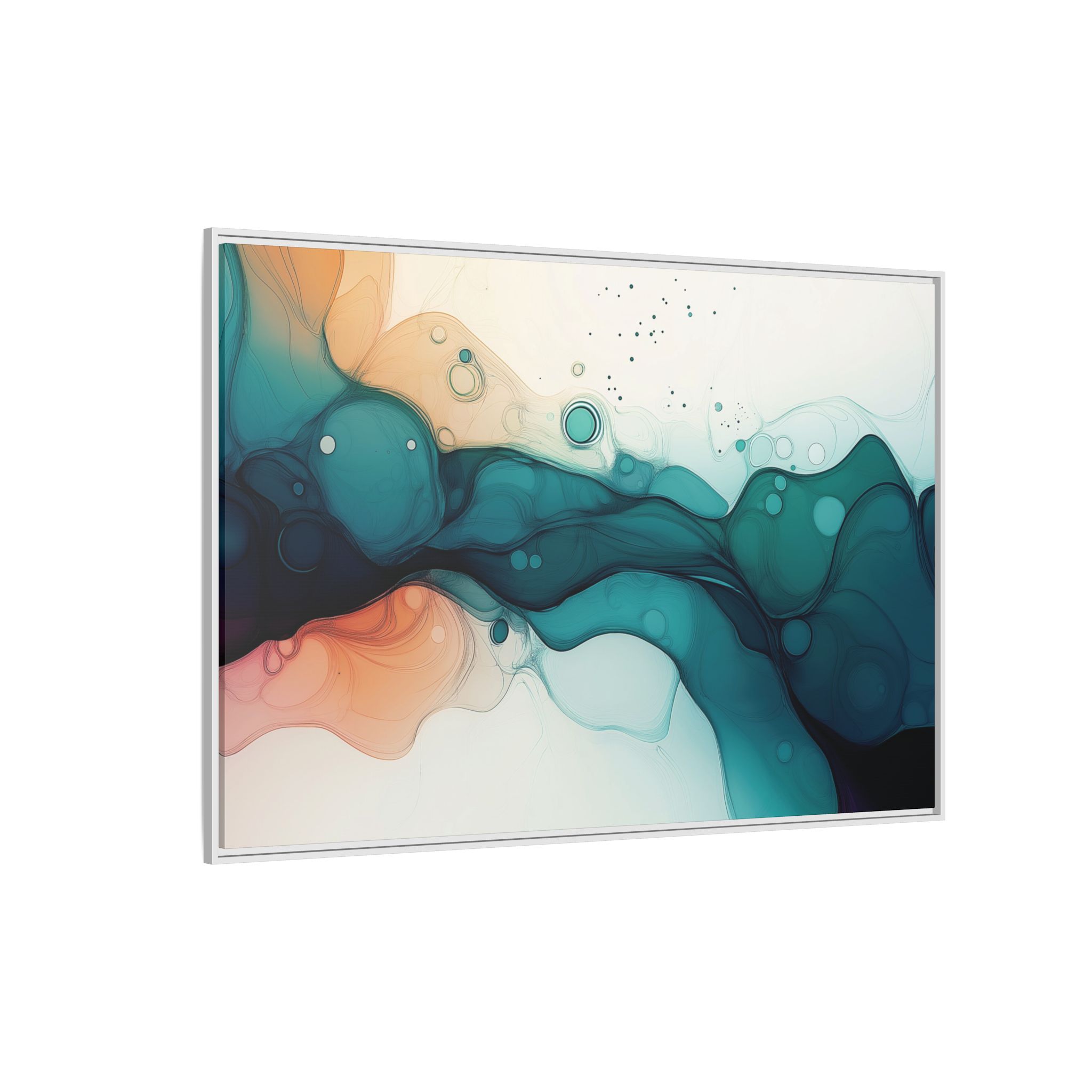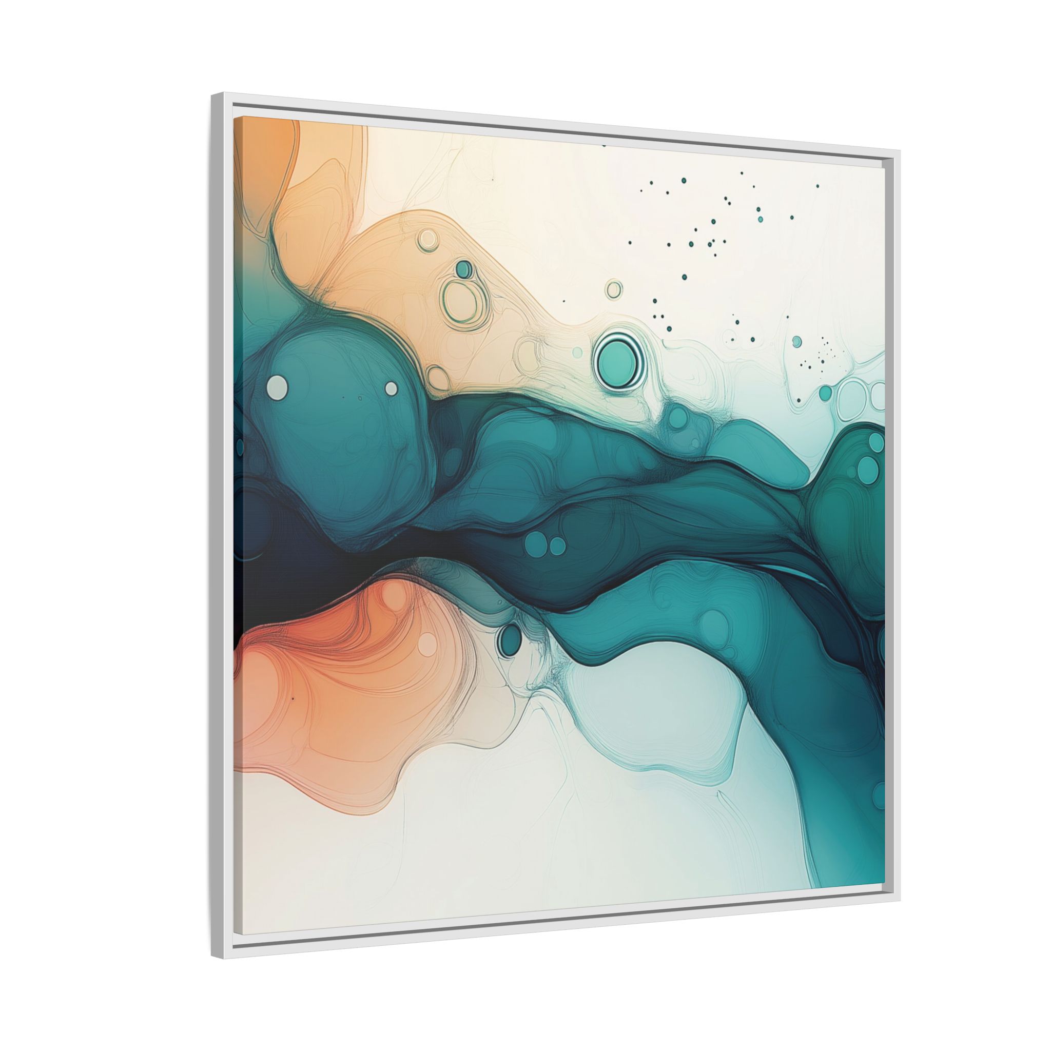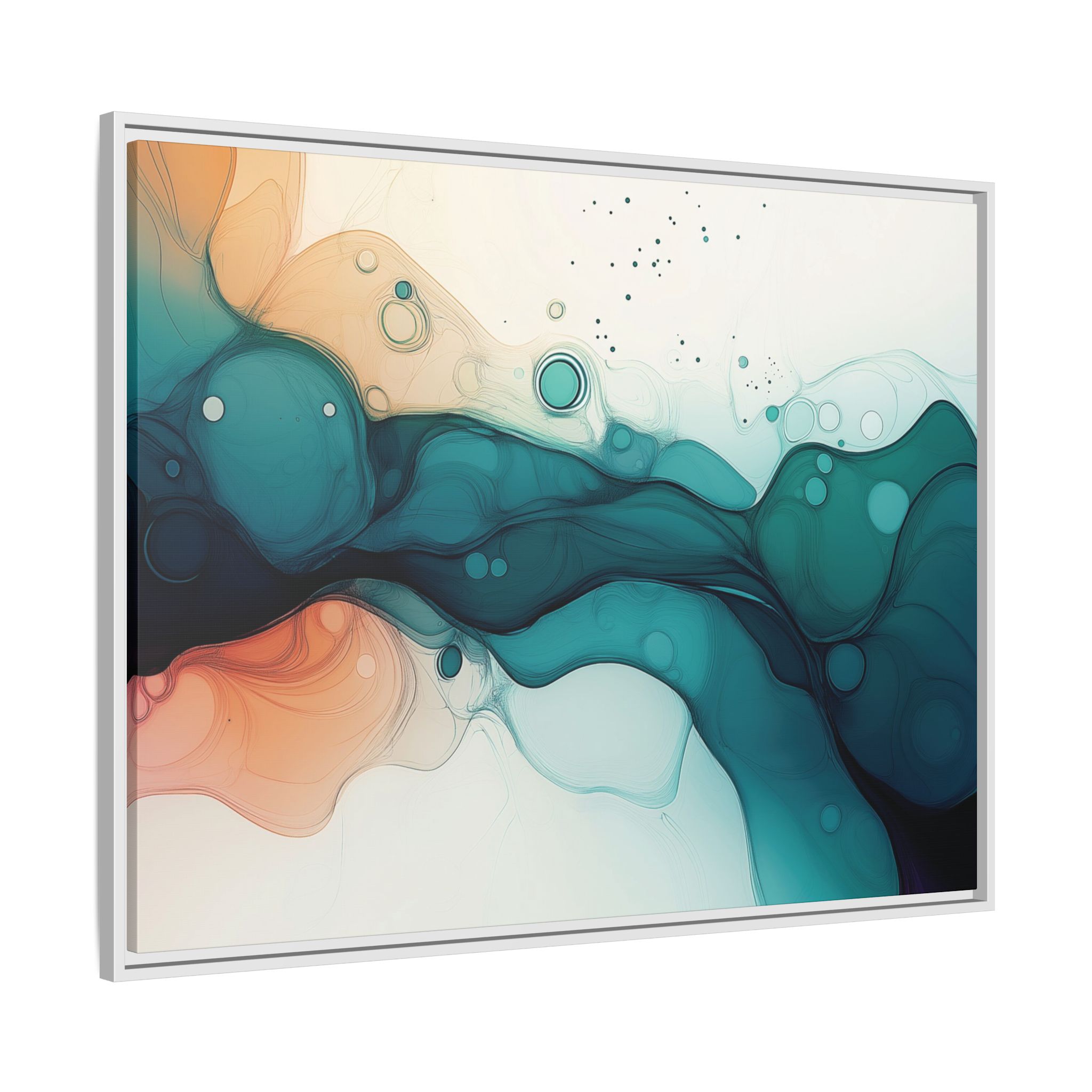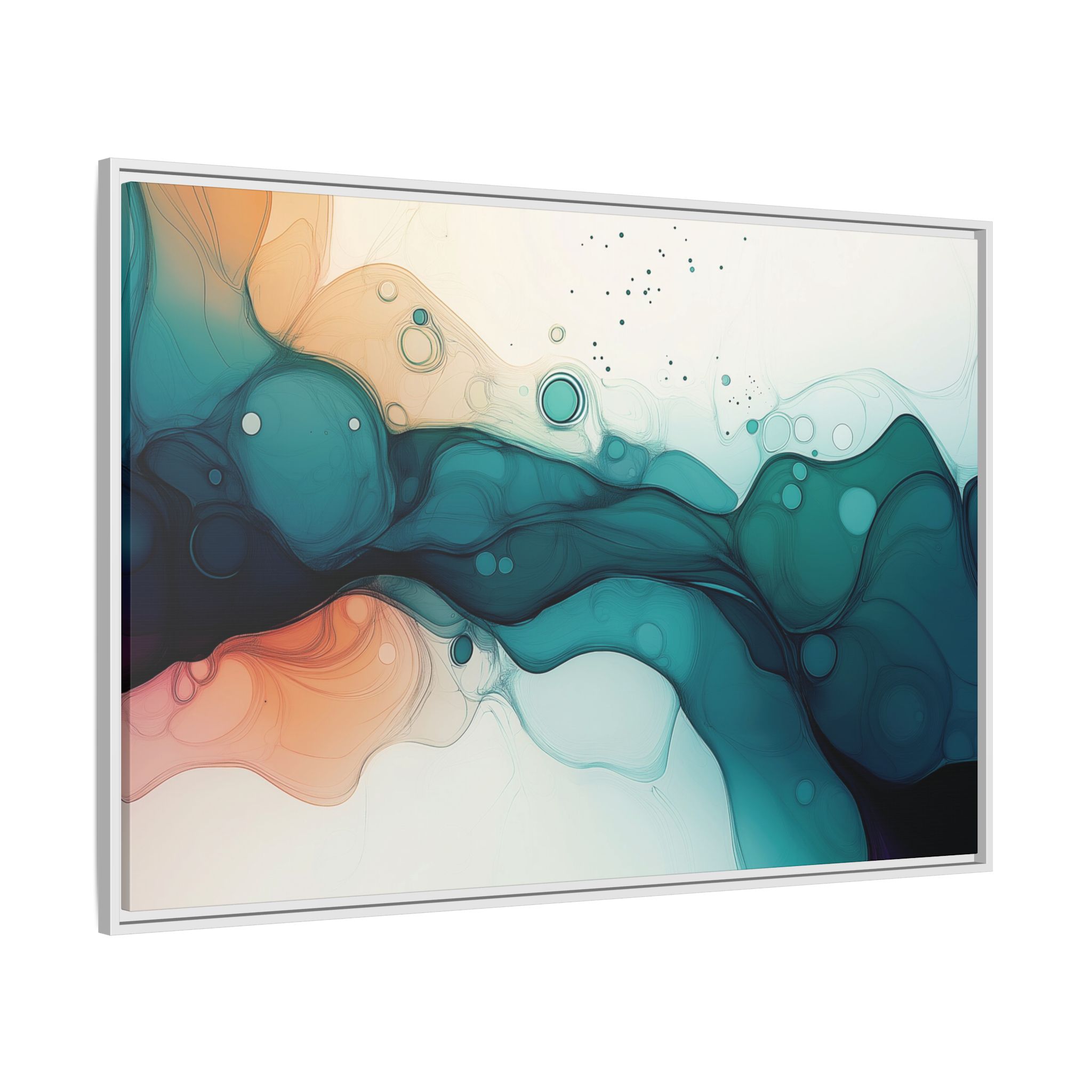 Bring a tranquil and ethereal vibe to your space with this vibrant fluid art canvas print in teal and orange colors. Perfect for art lovers looking to add a unique touch to their home decor. Ideal for gift-giving during birthdays, housewarmings, or as a thoughtful gesture for art enthusiasts.
