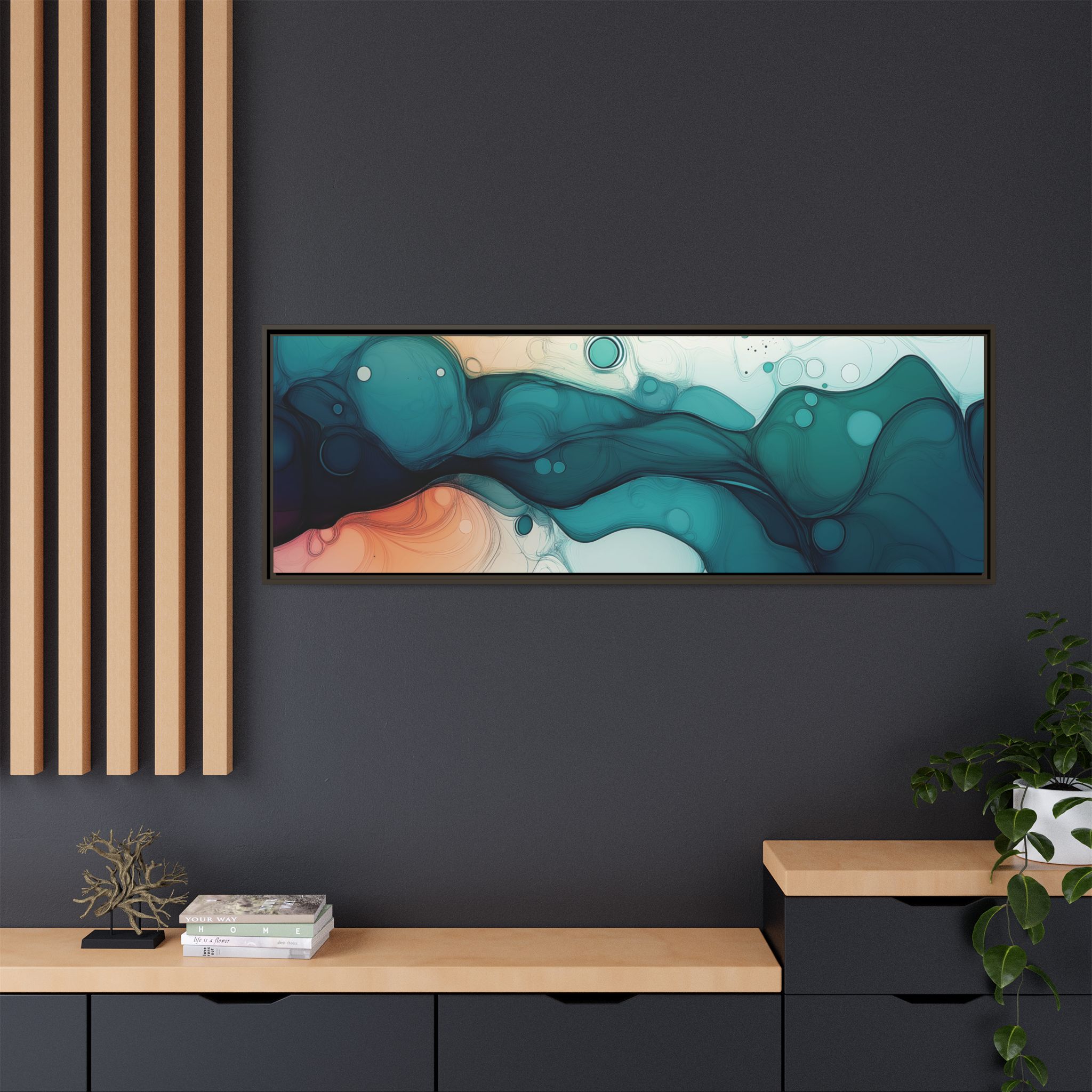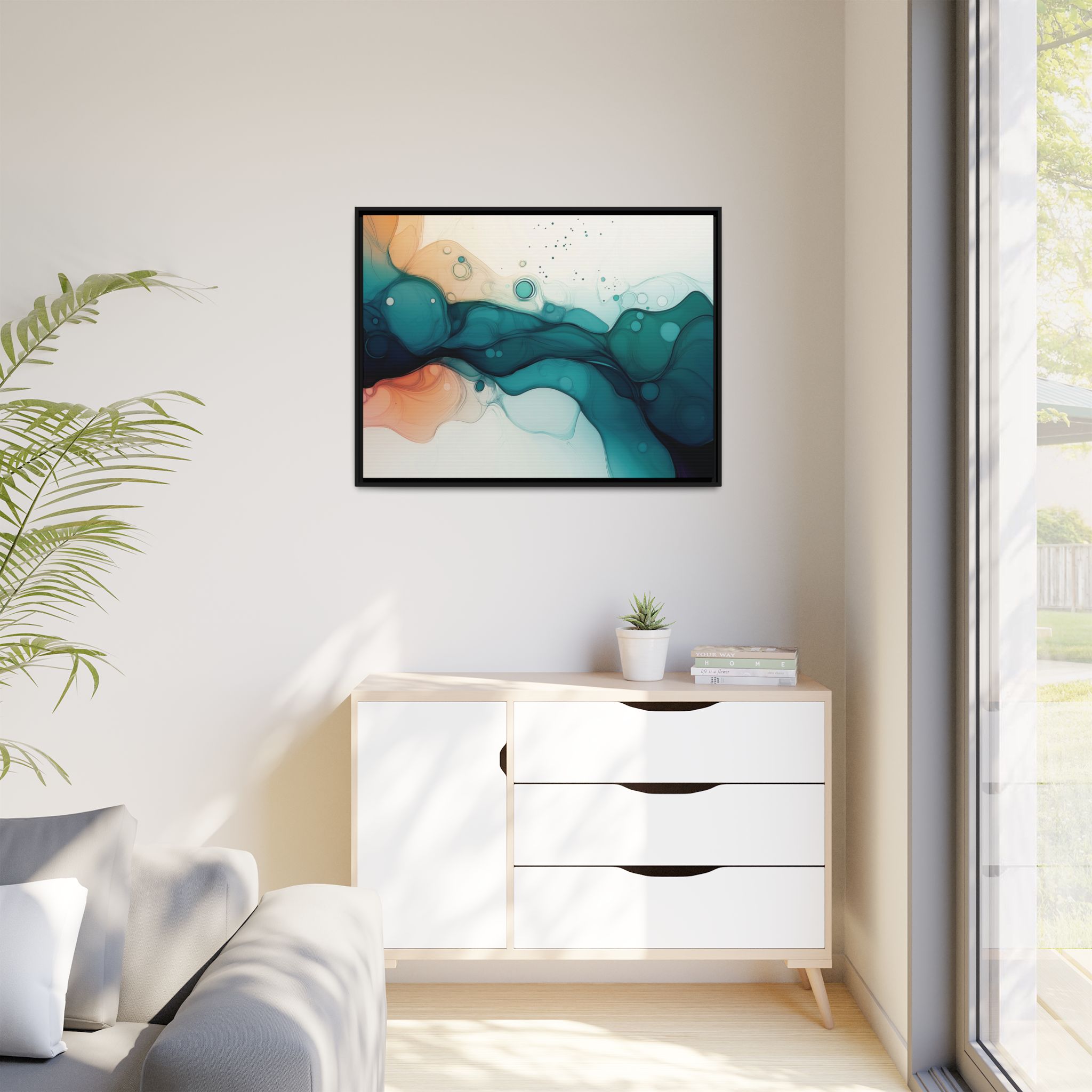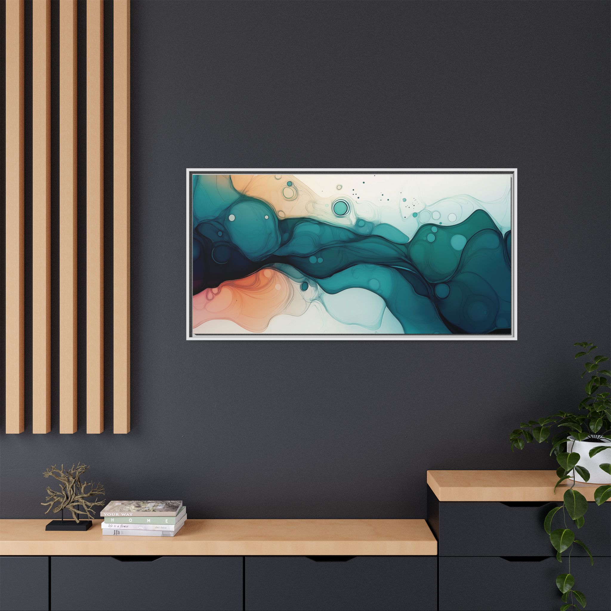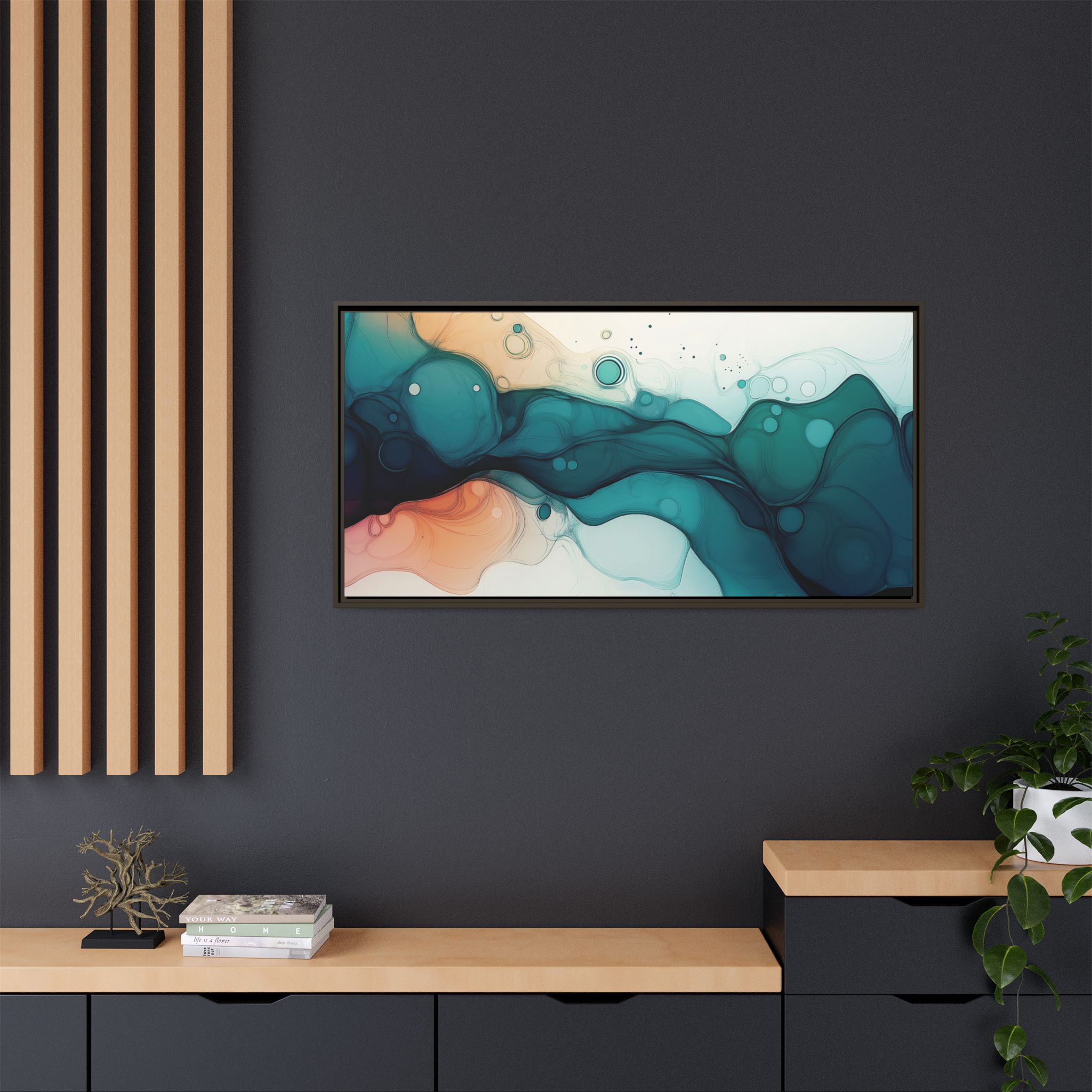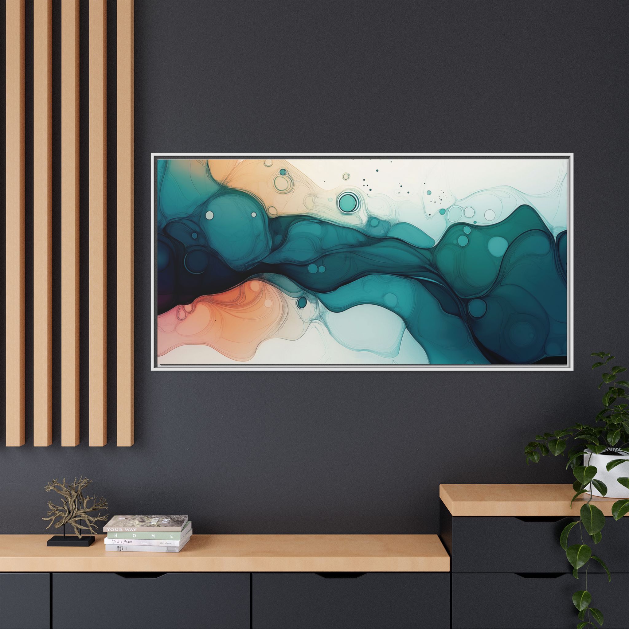 Bring a tranquil and ethereal vibe to your space with this vibrant fluid art canvas print in teal and orange colors. Perfect for art lovers looking to add a unique touch to their home decor. Ideal for gift-giving during birthdays, housewarmings, or as a thoughtful gesture for art enthusiasts.