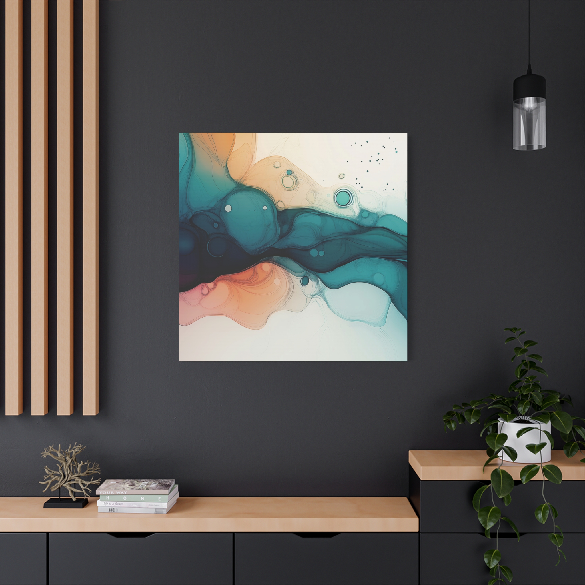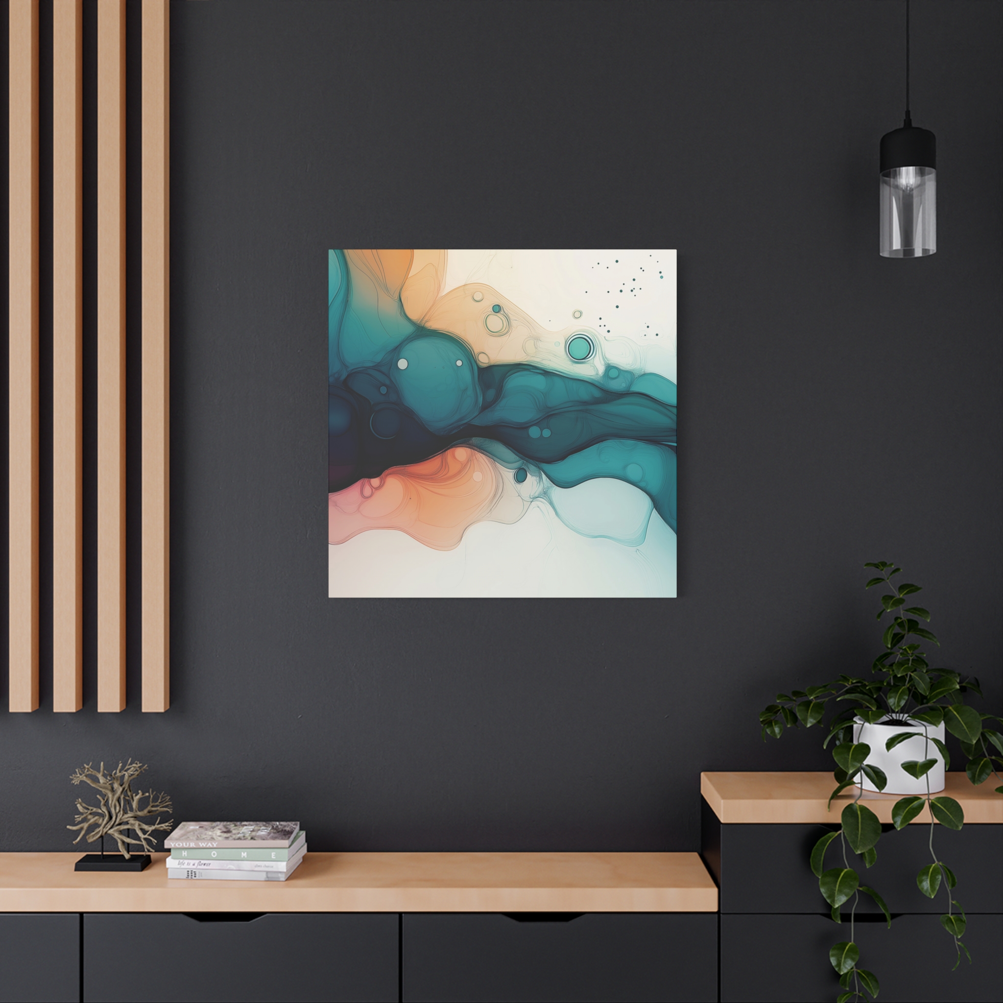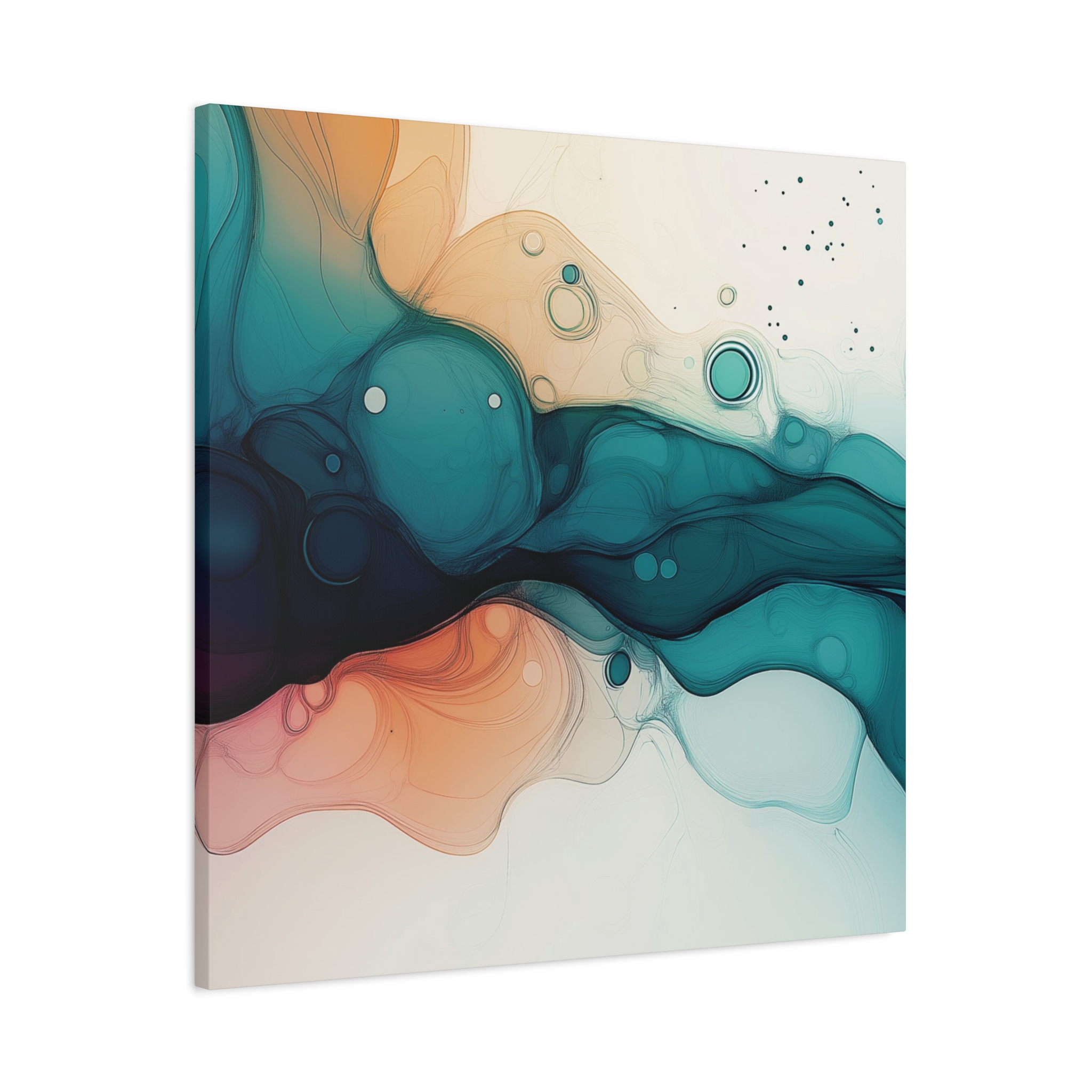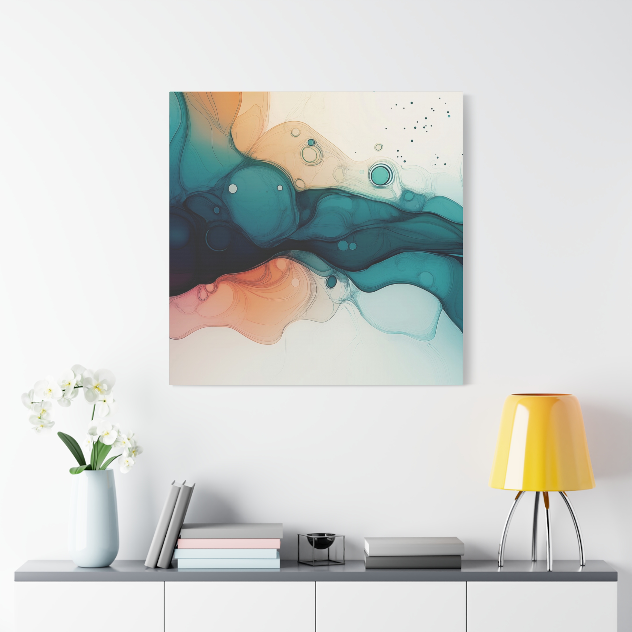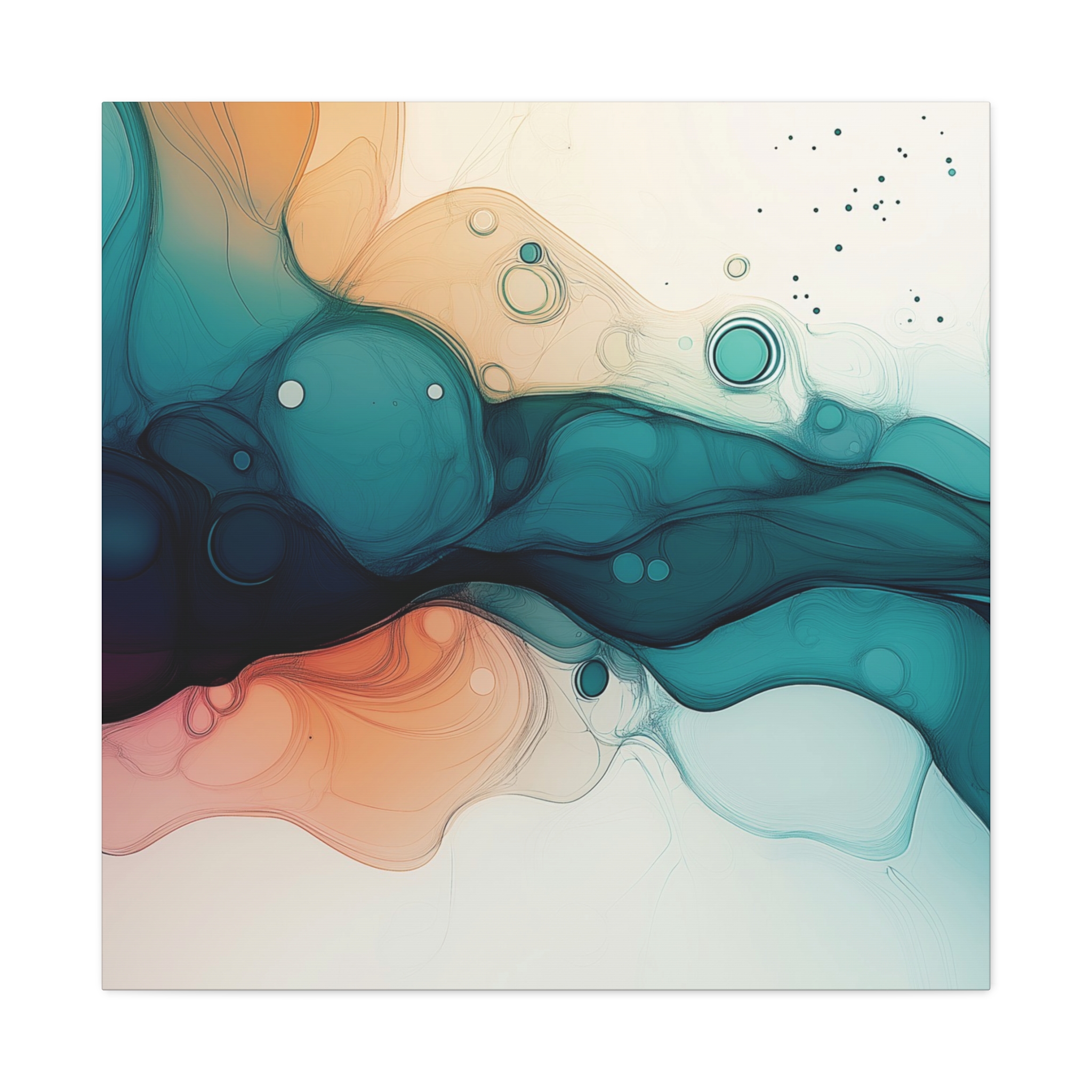 Bring a tranquil and ethereal vibe to your space with this vibrant fluid art canvas print in teal and orange colors. Perfect for art lovers looking to add a unique touch to their home decor. Ideal for gift-giving during birthdays, housewarmings, or as a thoughtful gesture for art enthusiasts.