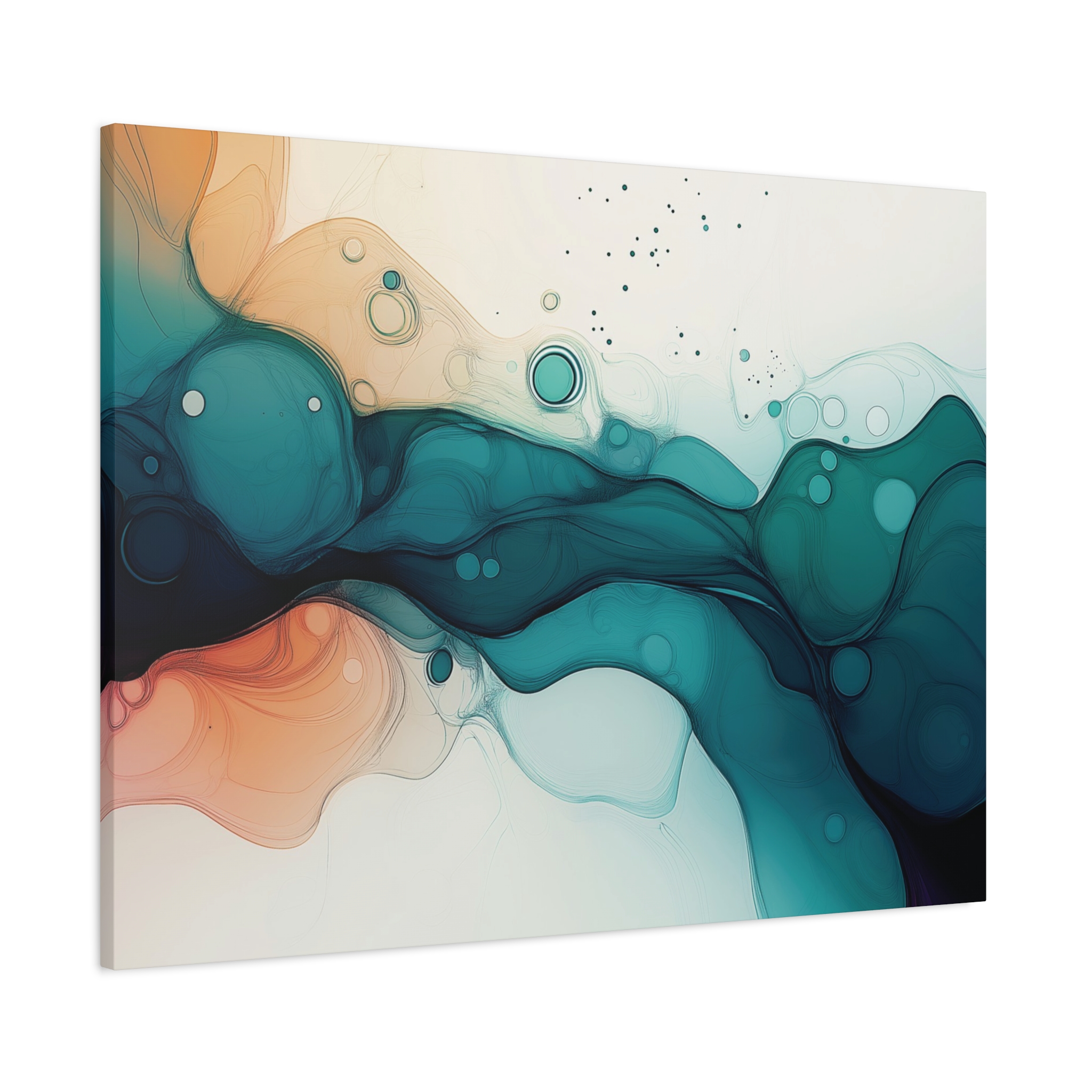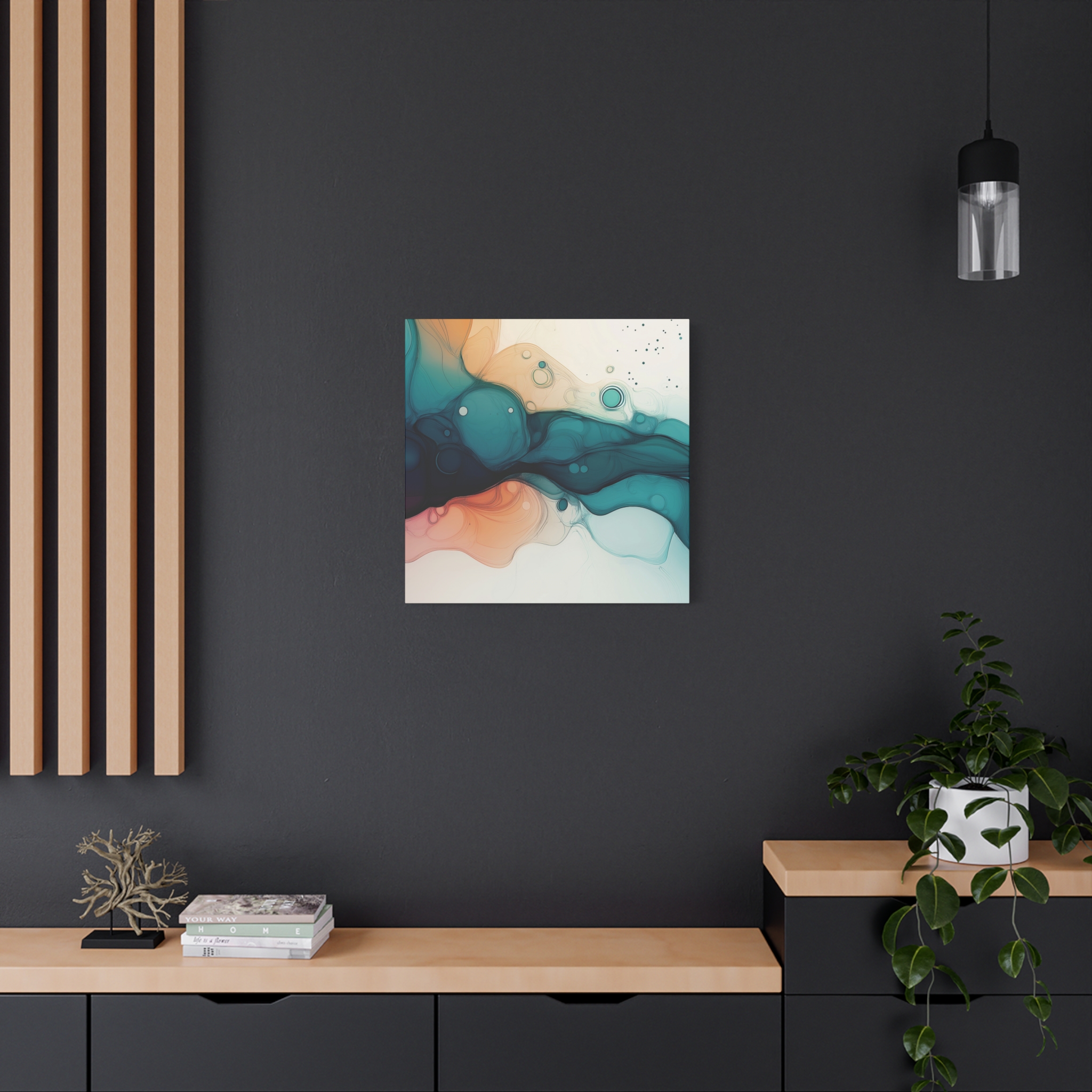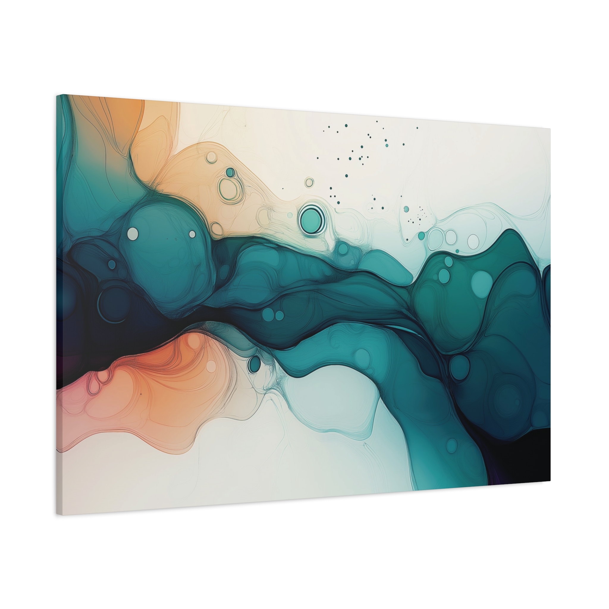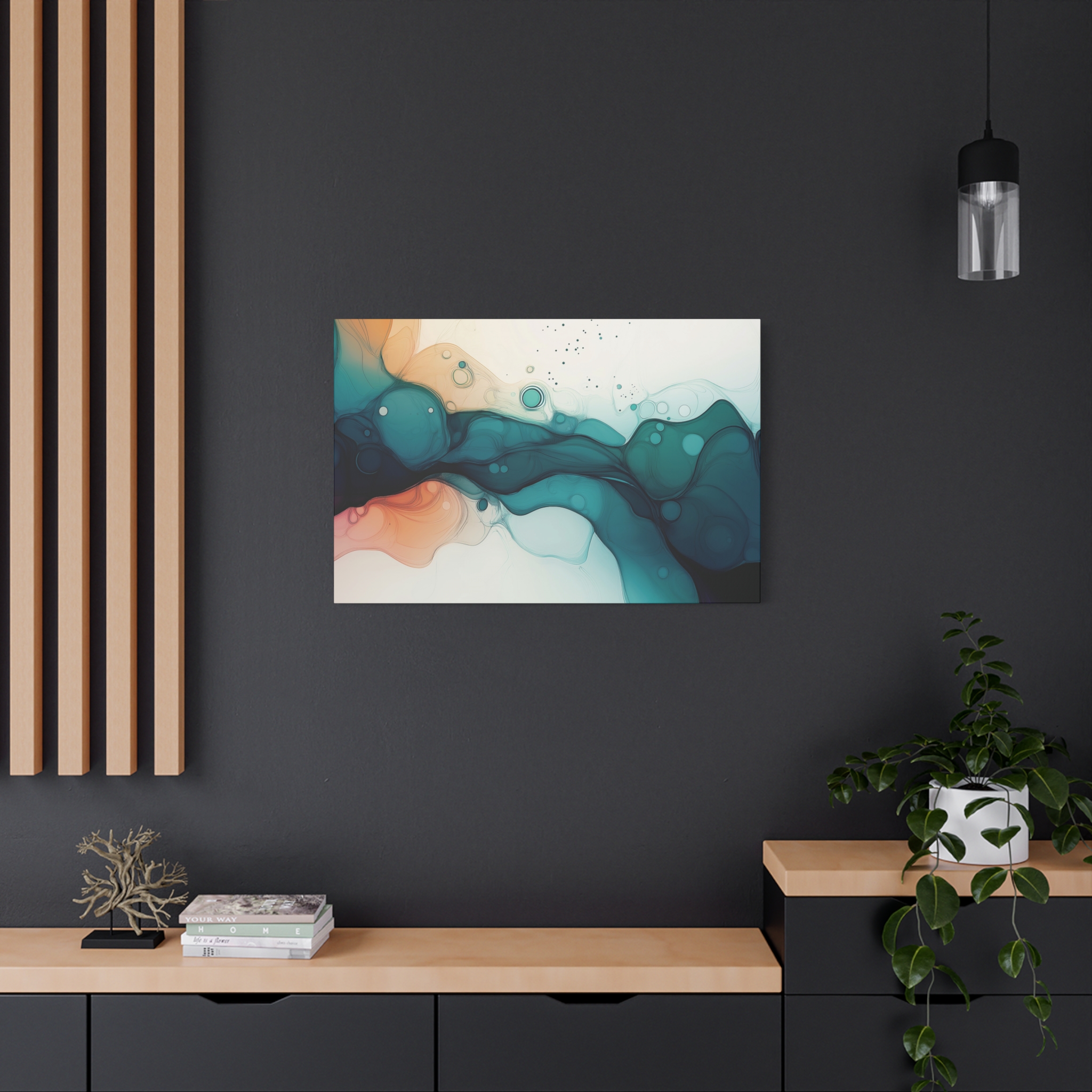 Bring a tranquil and ethereal vibe to your space with this vibrant fluid art canvas print in teal and orange colors. Perfect for art lovers looking to add a unique touch to their home decor. Ideal for gift-giving during birthdays, housewarmings, or as a thoughtful gesture for art enthusiasts.