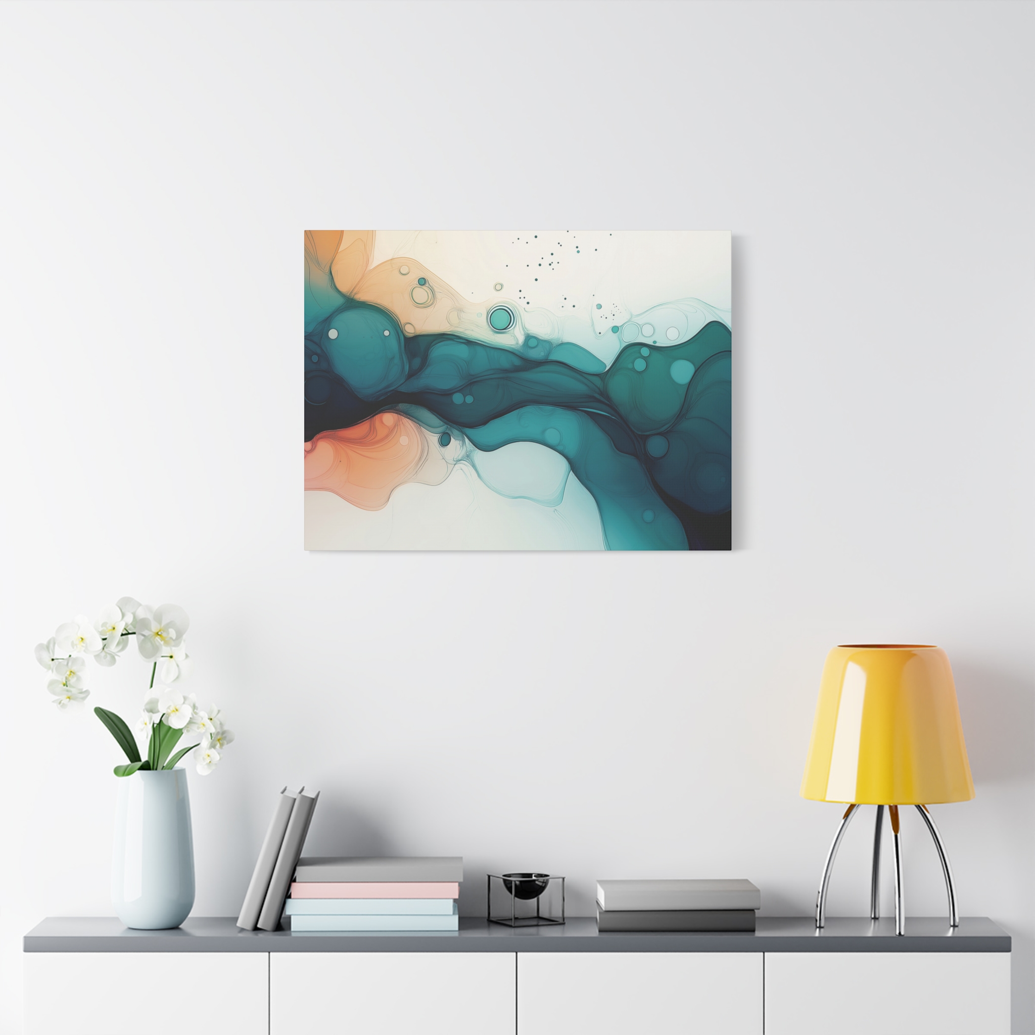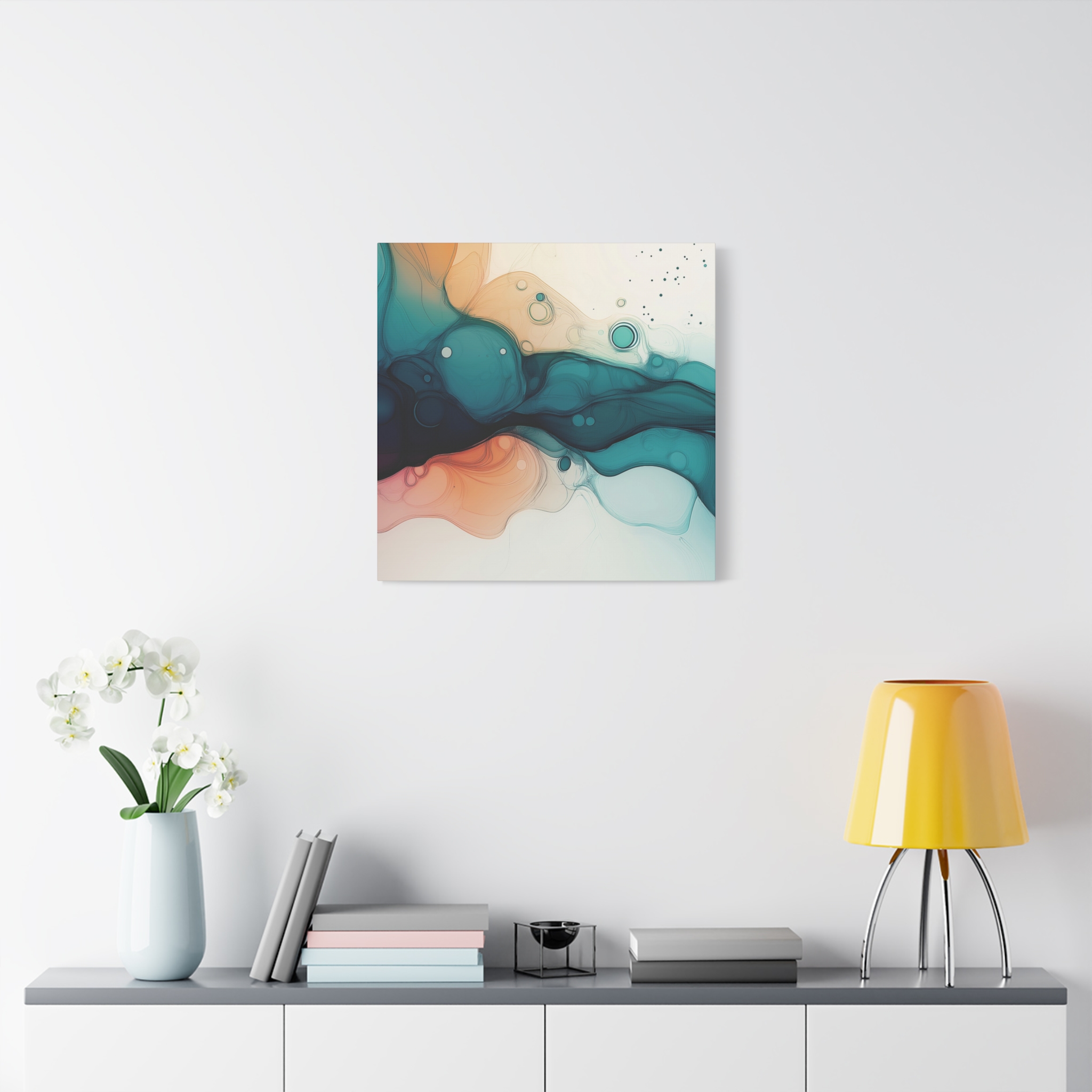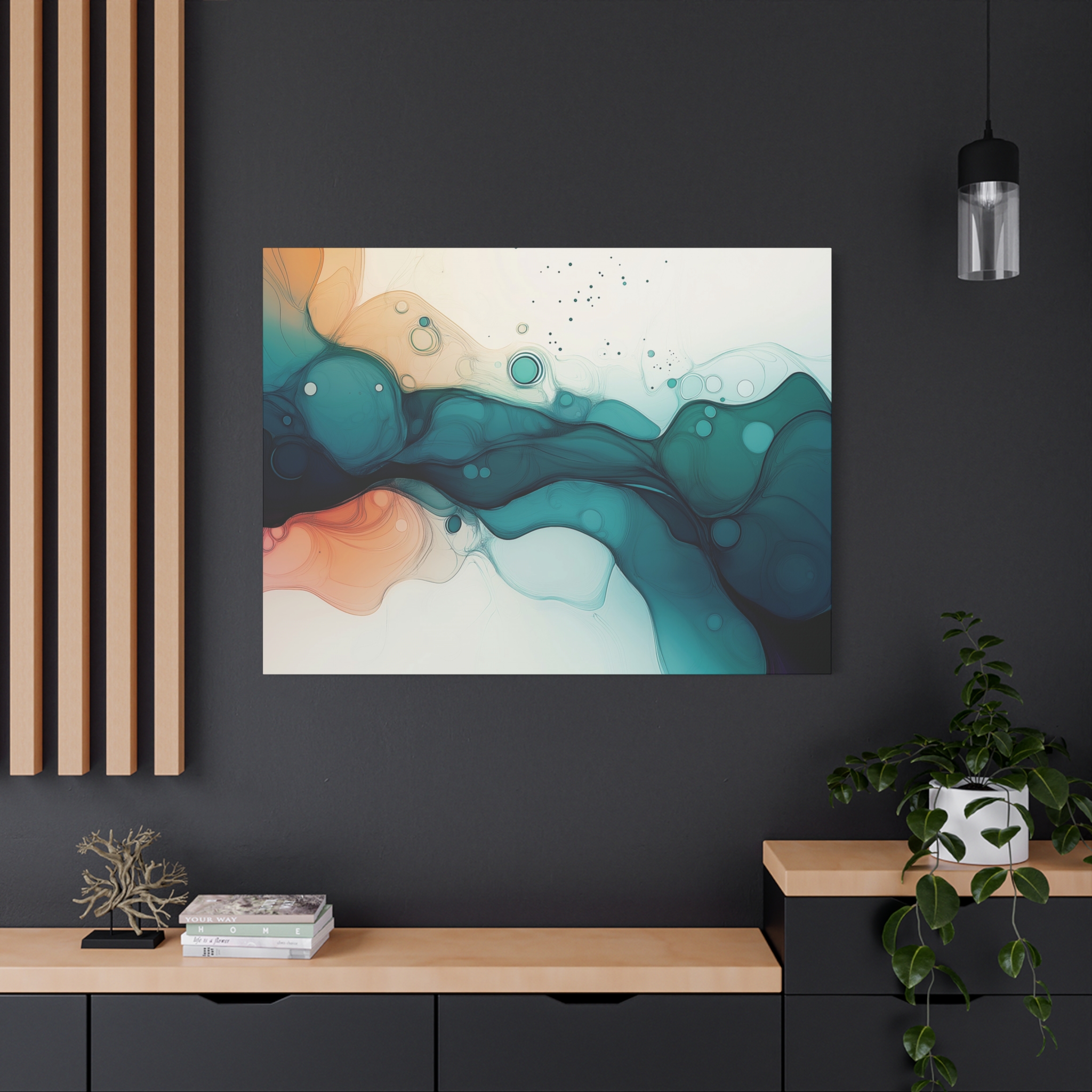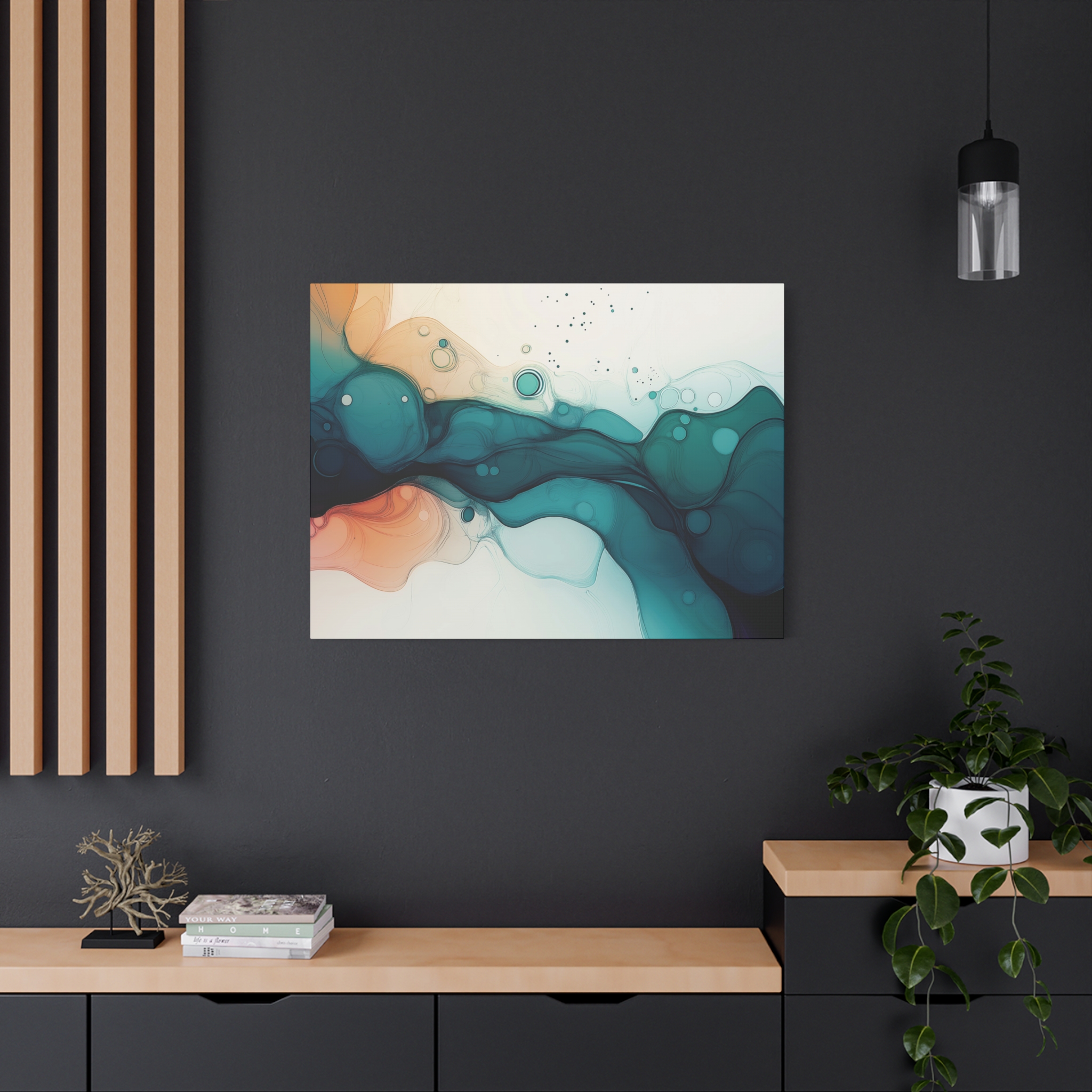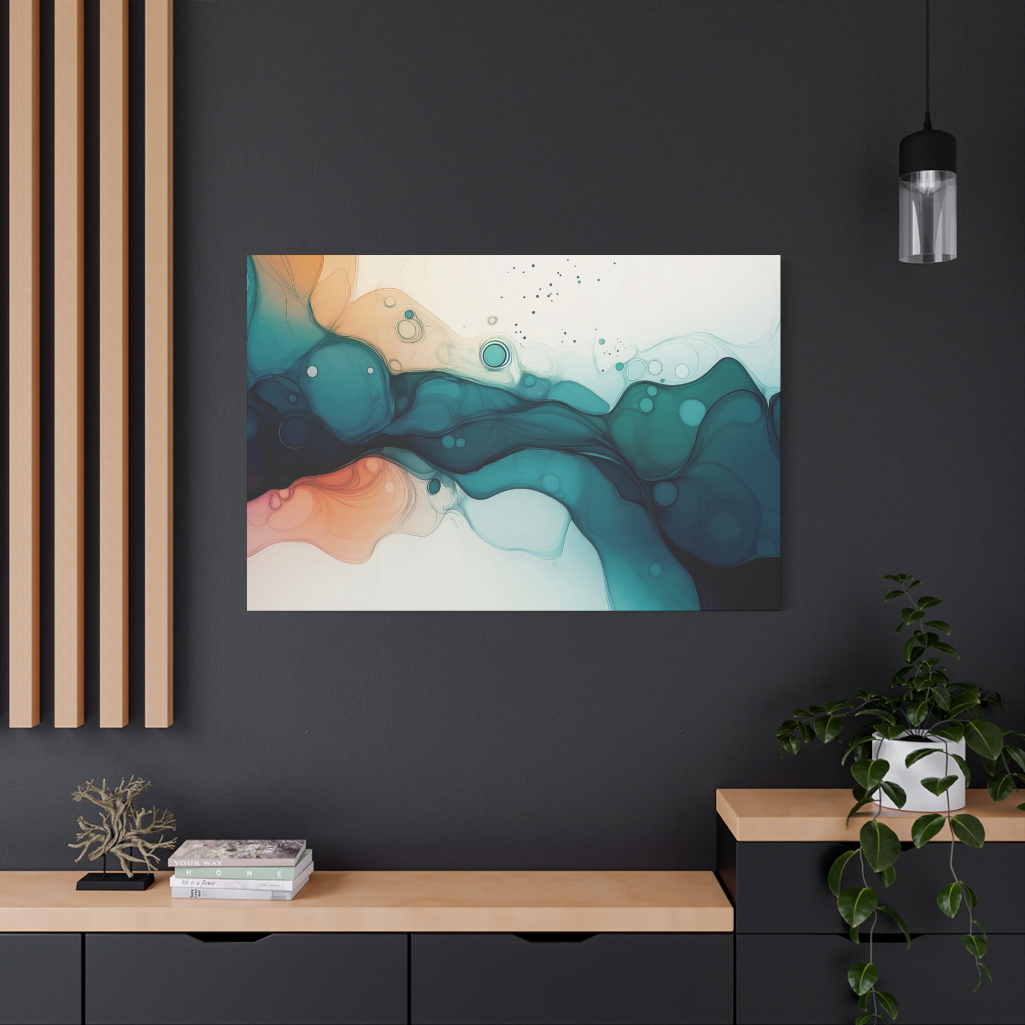 Bring a tranquil and ethereal vibe to your space with this vibrant fluid art canvas print in teal and orange colors. Perfect for art lovers looking to add a unique touch to their home decor. Ideal for gift-giving during birthdays, housewarmings, or as a thoughtful gesture for art enthusiasts.
