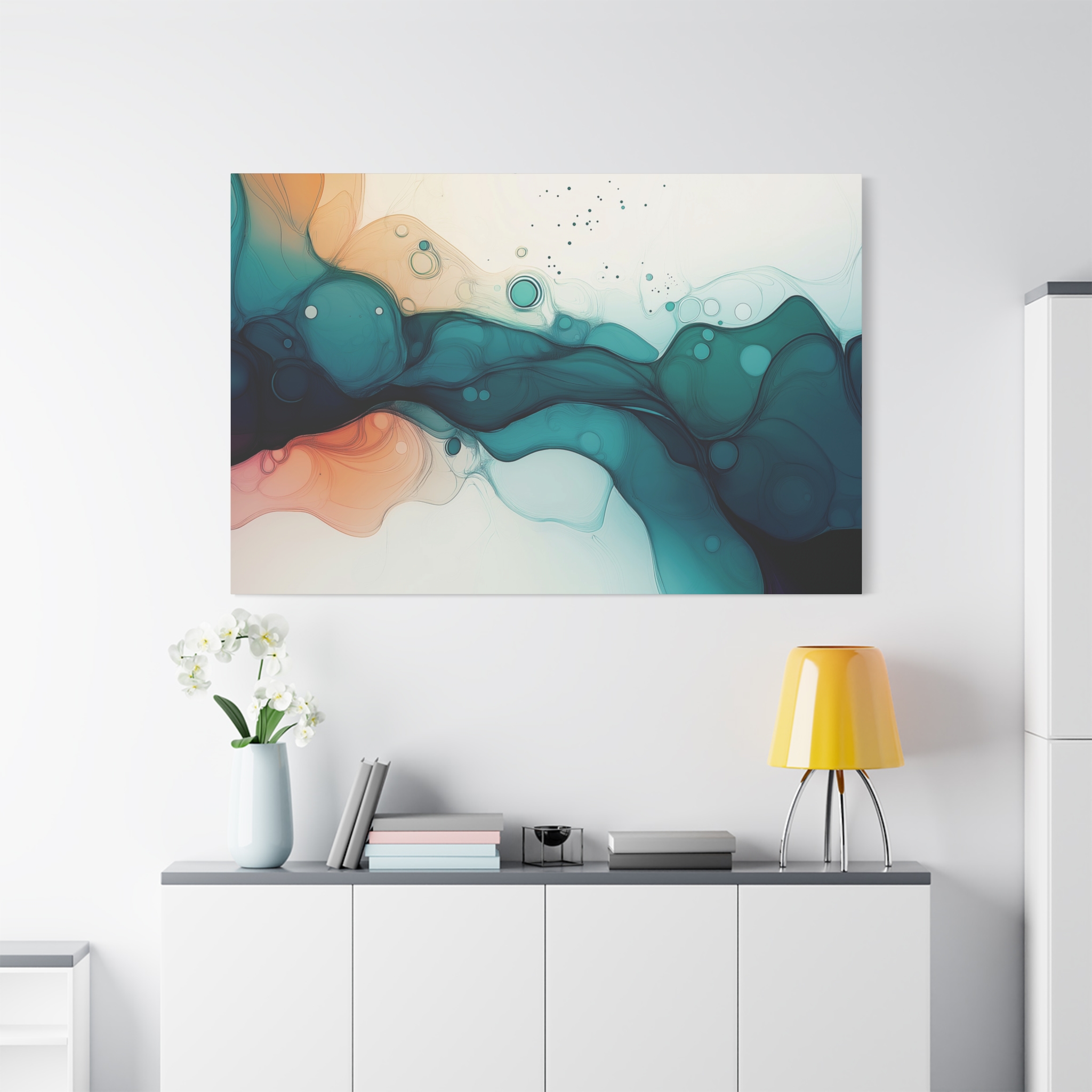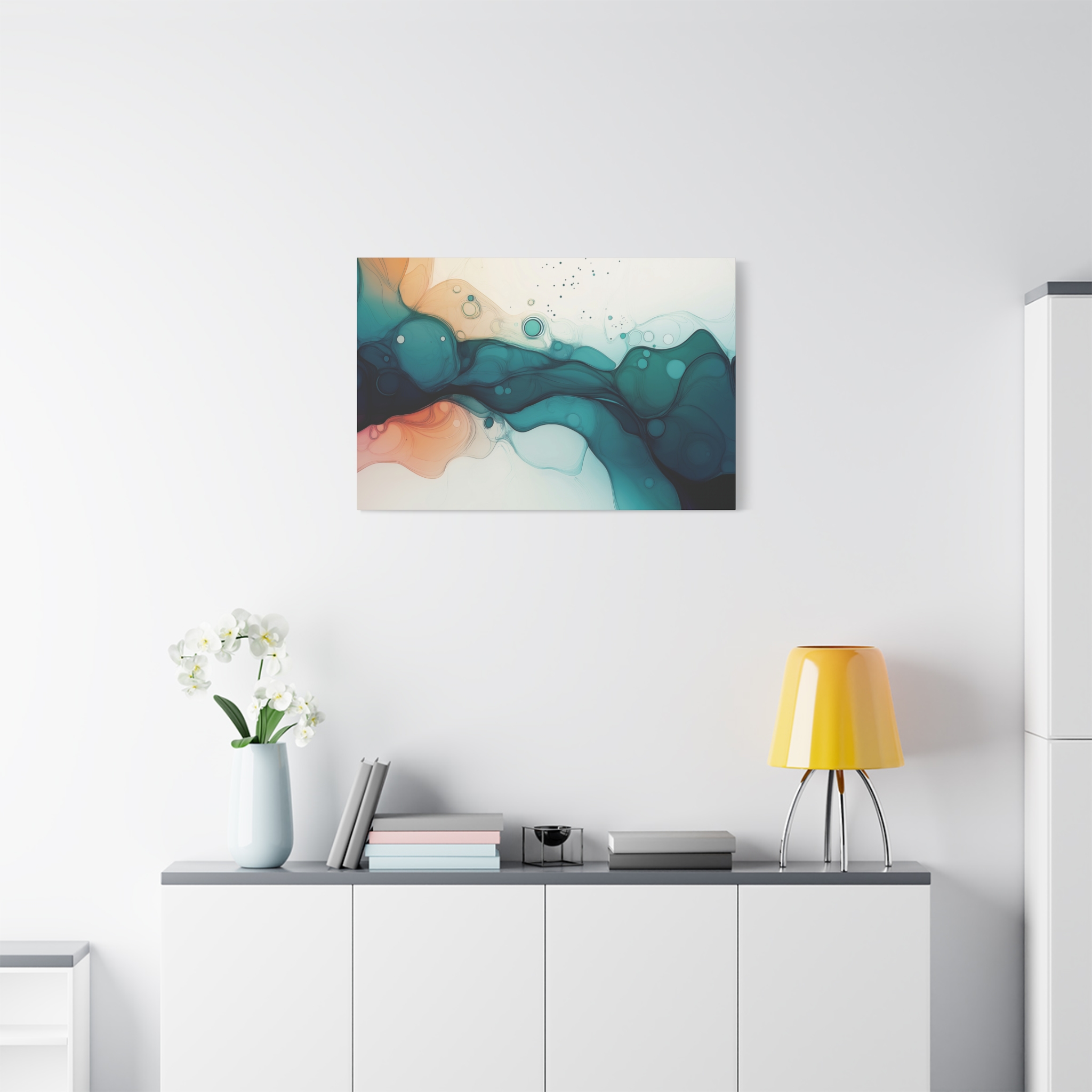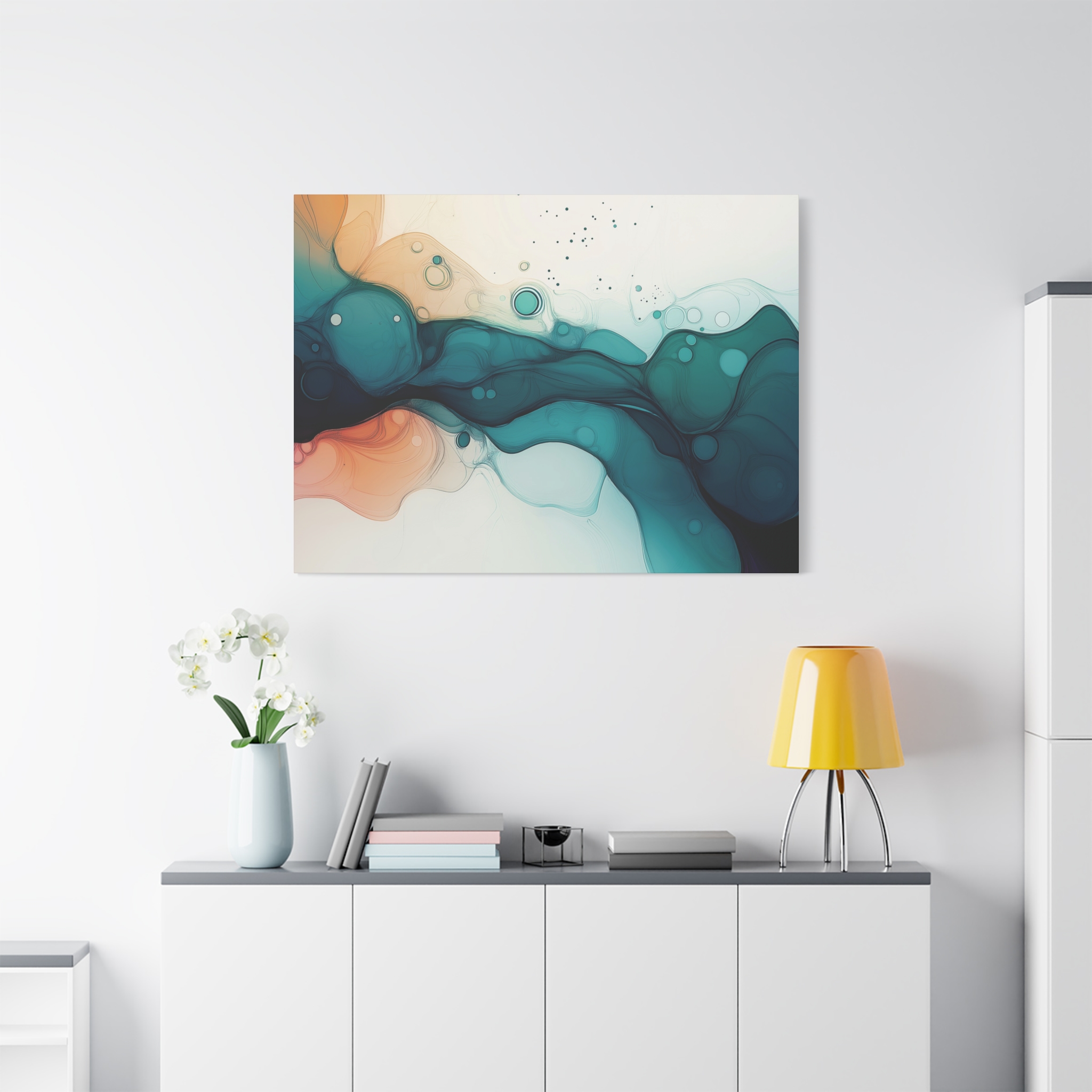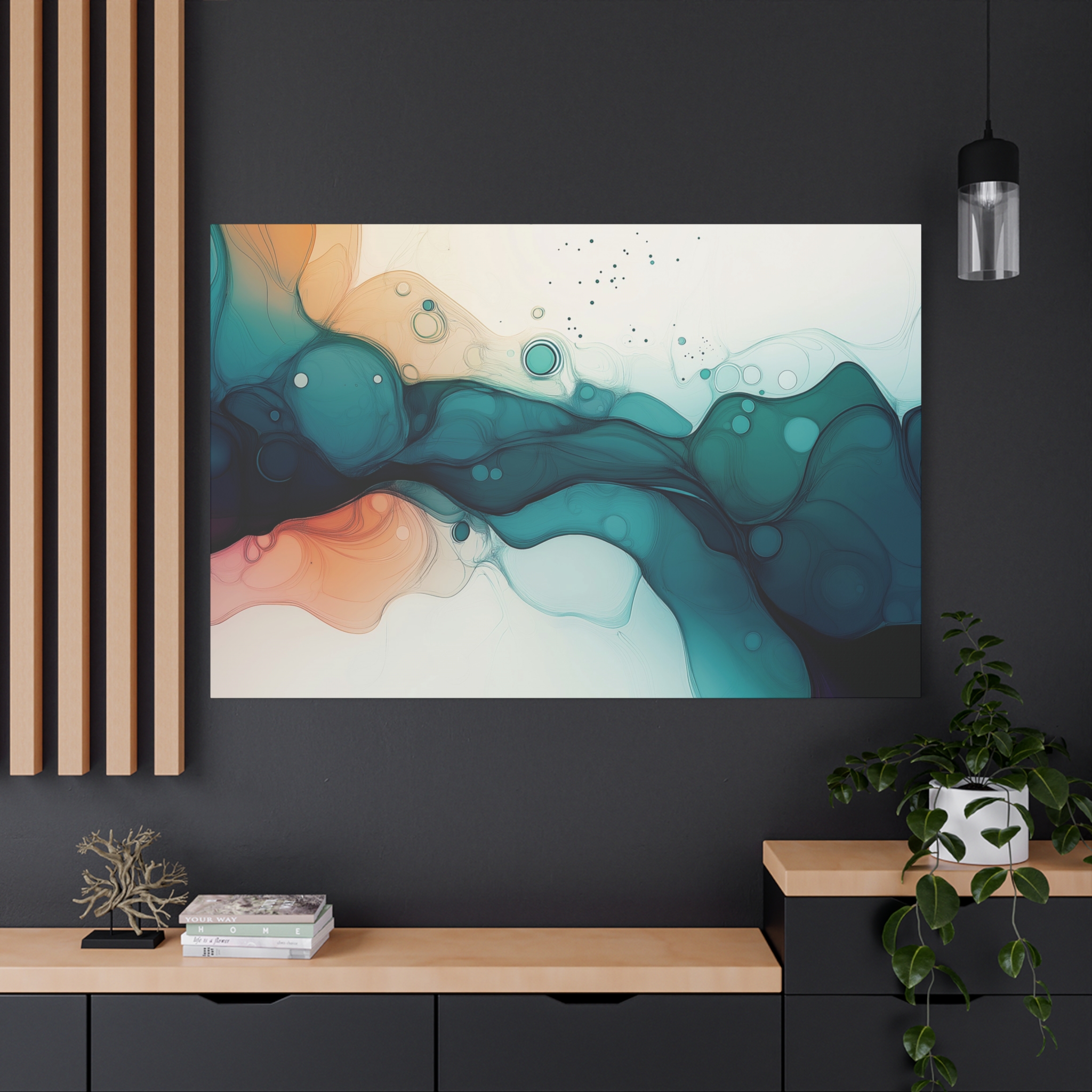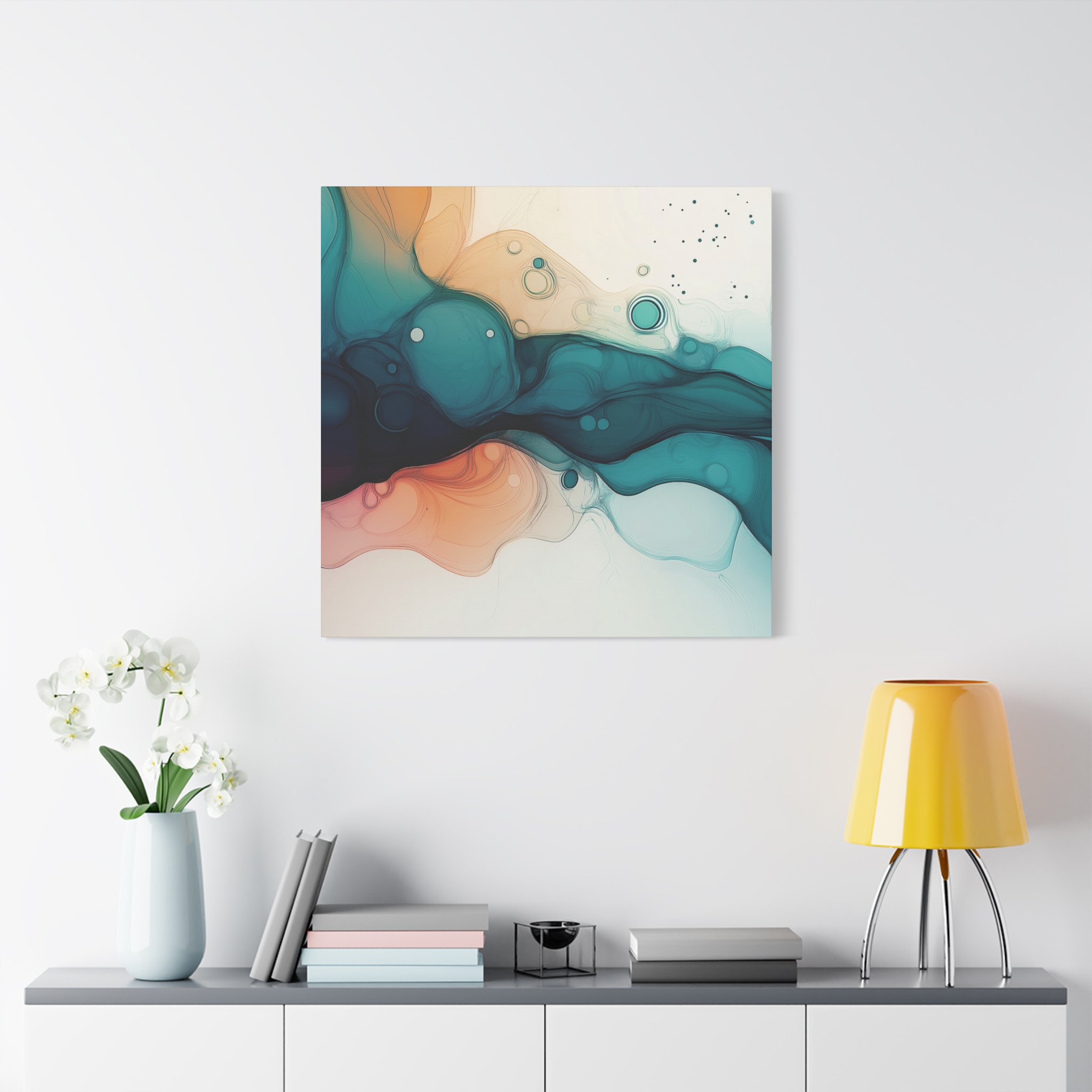 Bring a tranquil and ethereal vibe to your space with this vibrant fluid art canvas print in teal and orange colors. Perfect for art lovers looking to add a unique touch to their home decor. Ideal for gift-giving during birthdays, housewarmings, or as a thoughtful gesture for art enthusiasts.