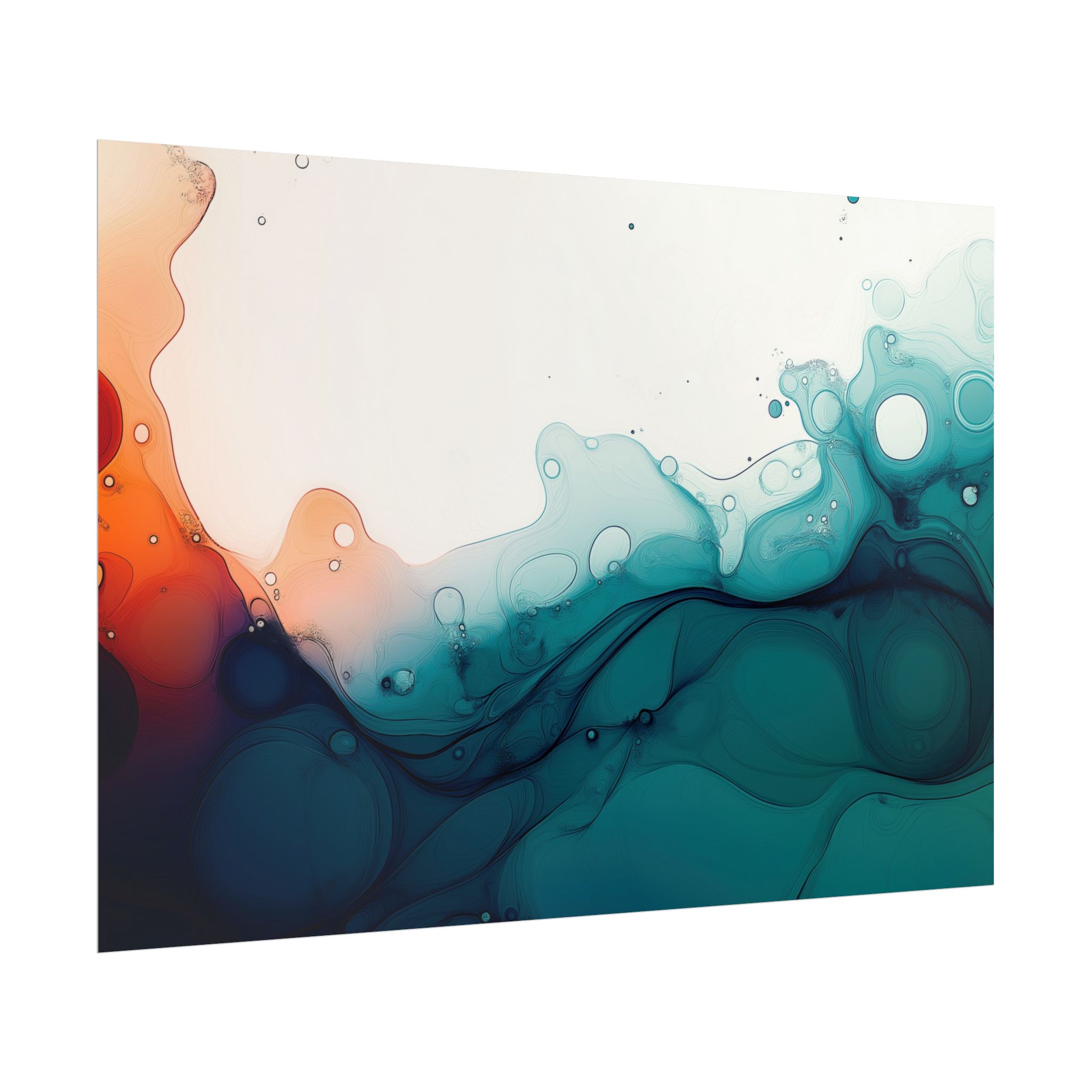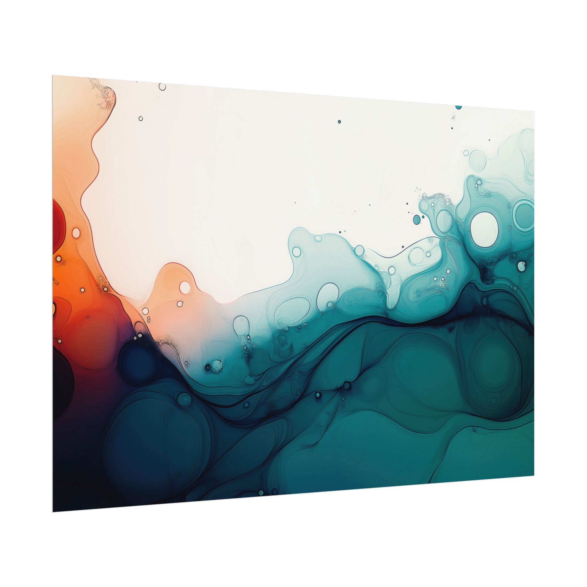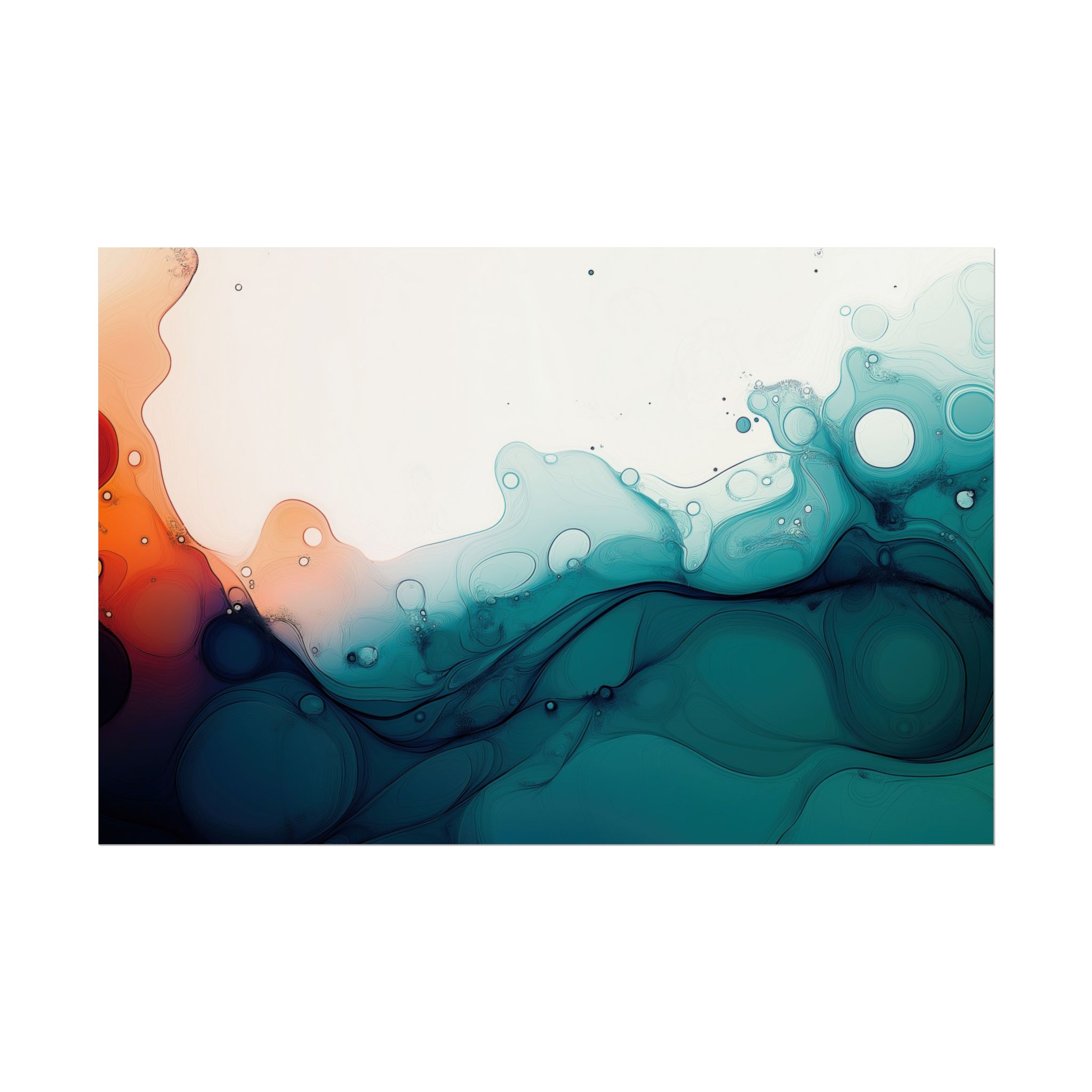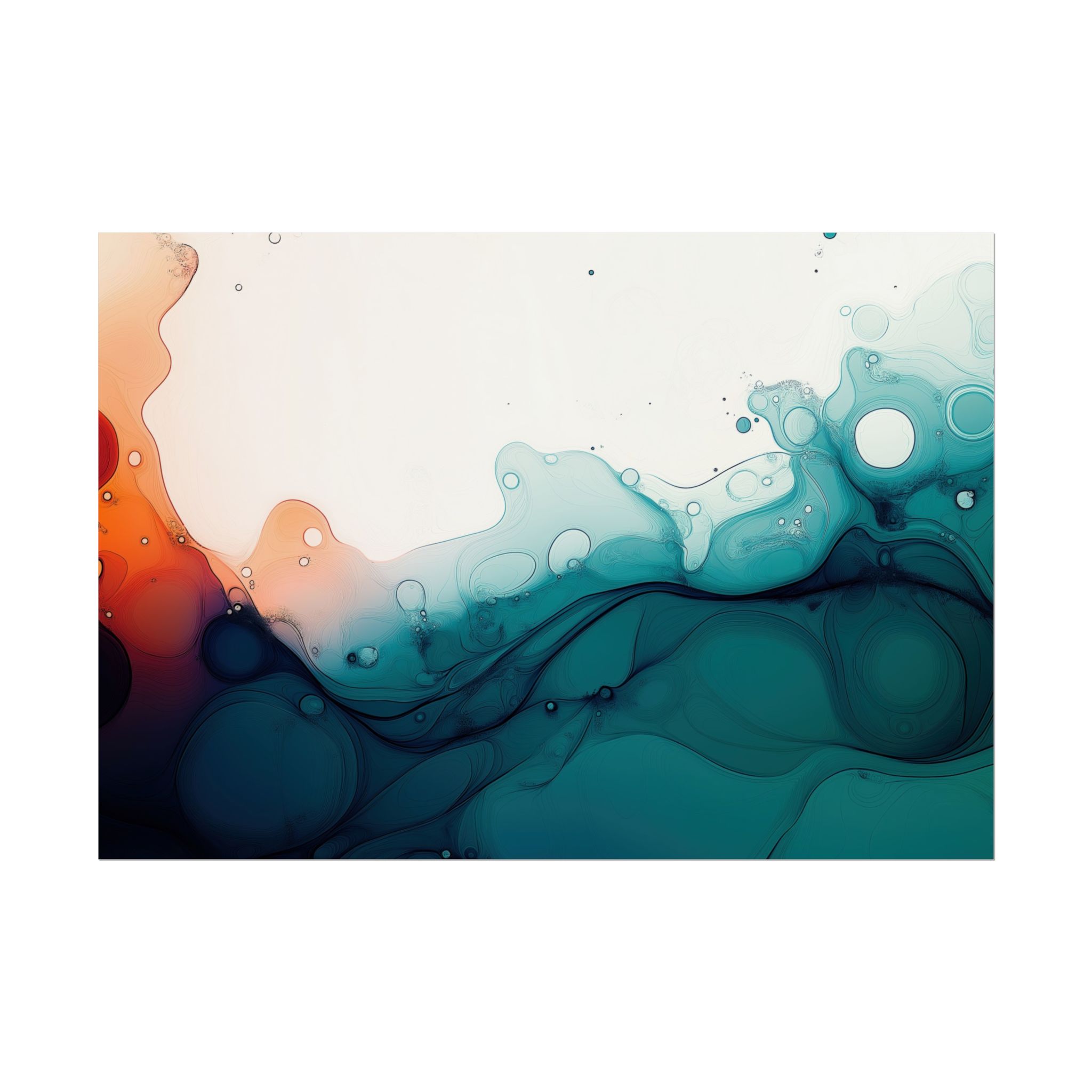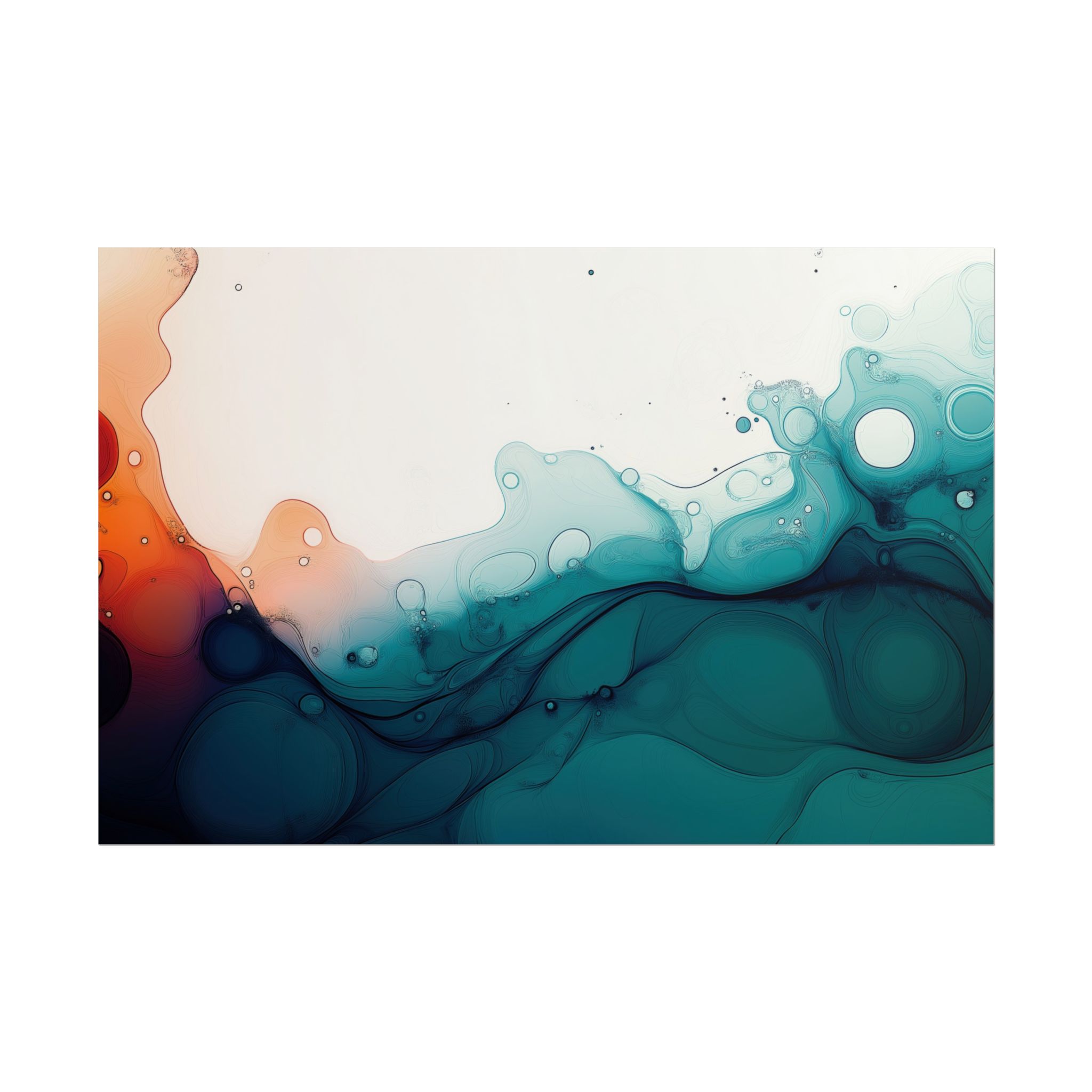 Bring a tranquil and ethereal vibe to your space with this vibrant fluid art print in teal and orange colors. Perfect for art lovers looking to add a unique touch to their home decor. Ideal for gift-giving during birthdays, housewarmings, or as a thoughtful gesture for art enthusiasts.