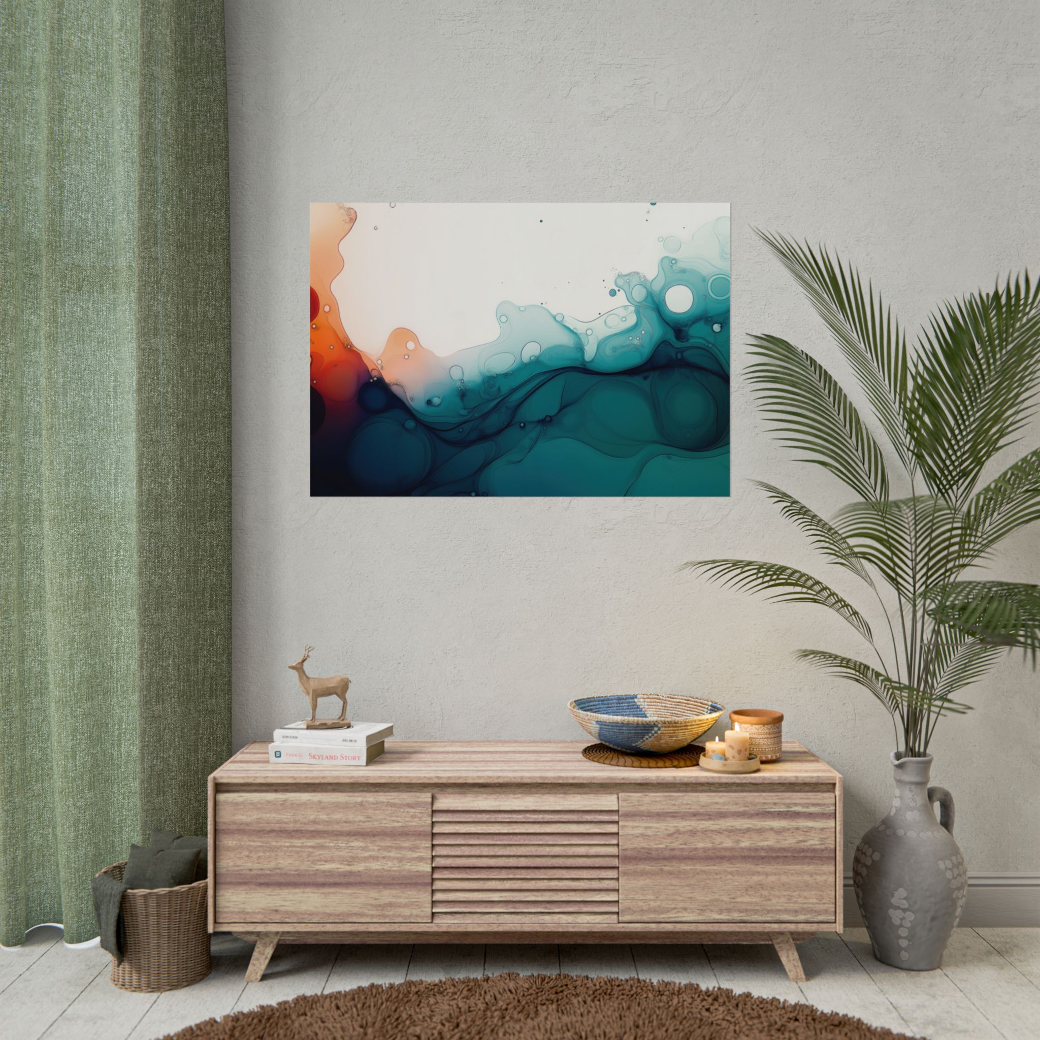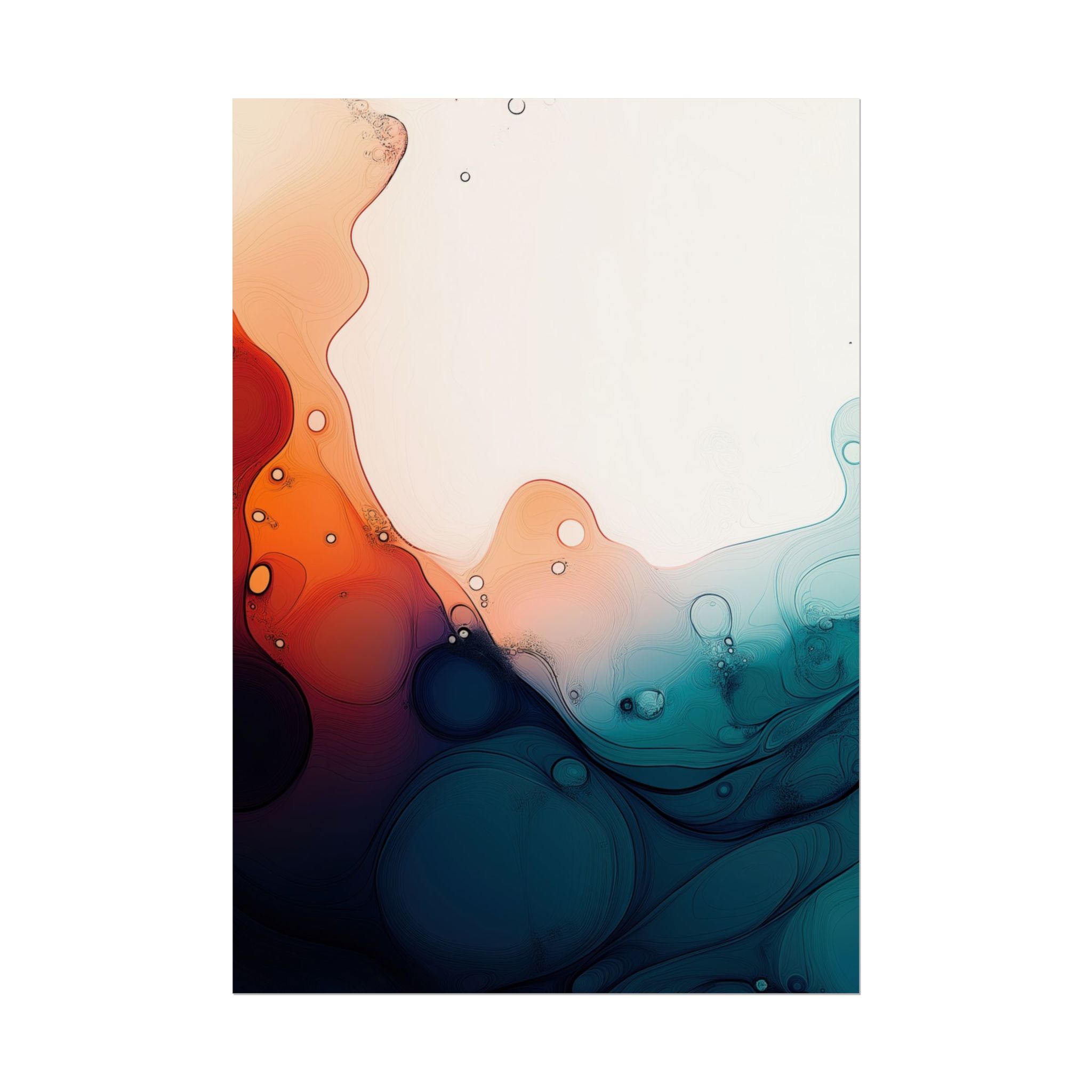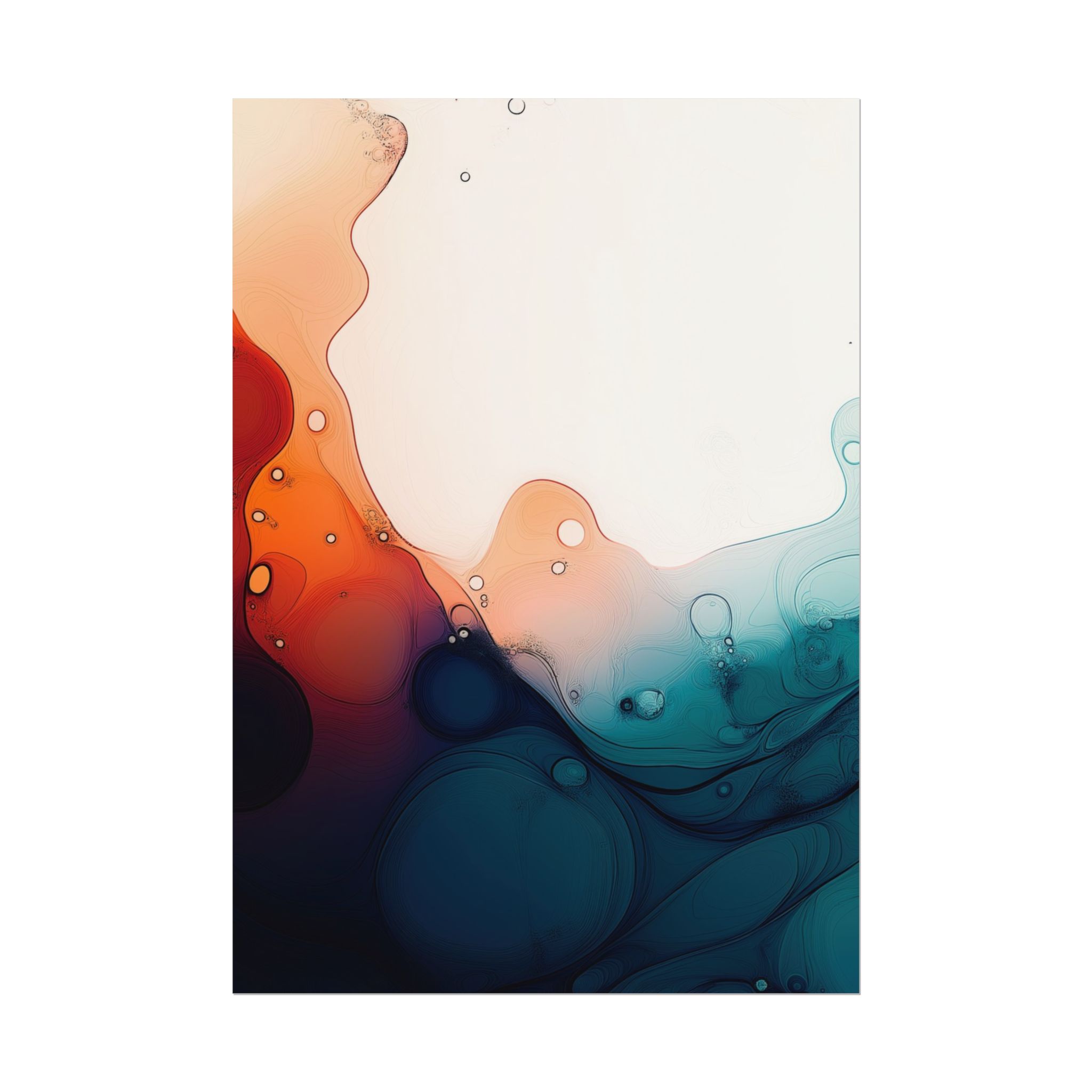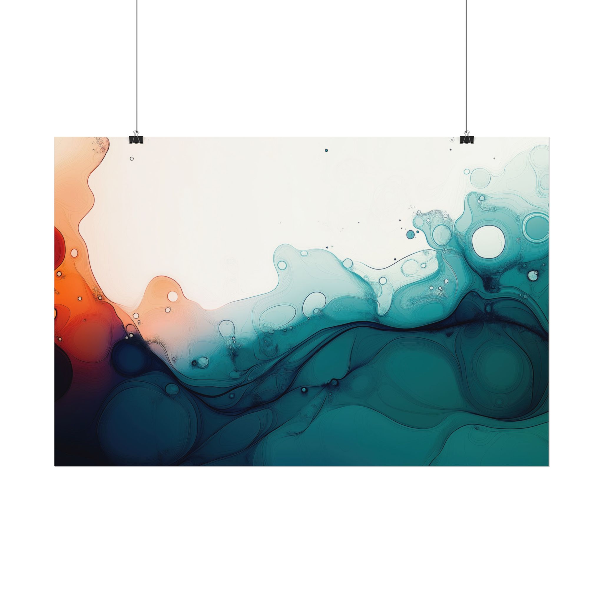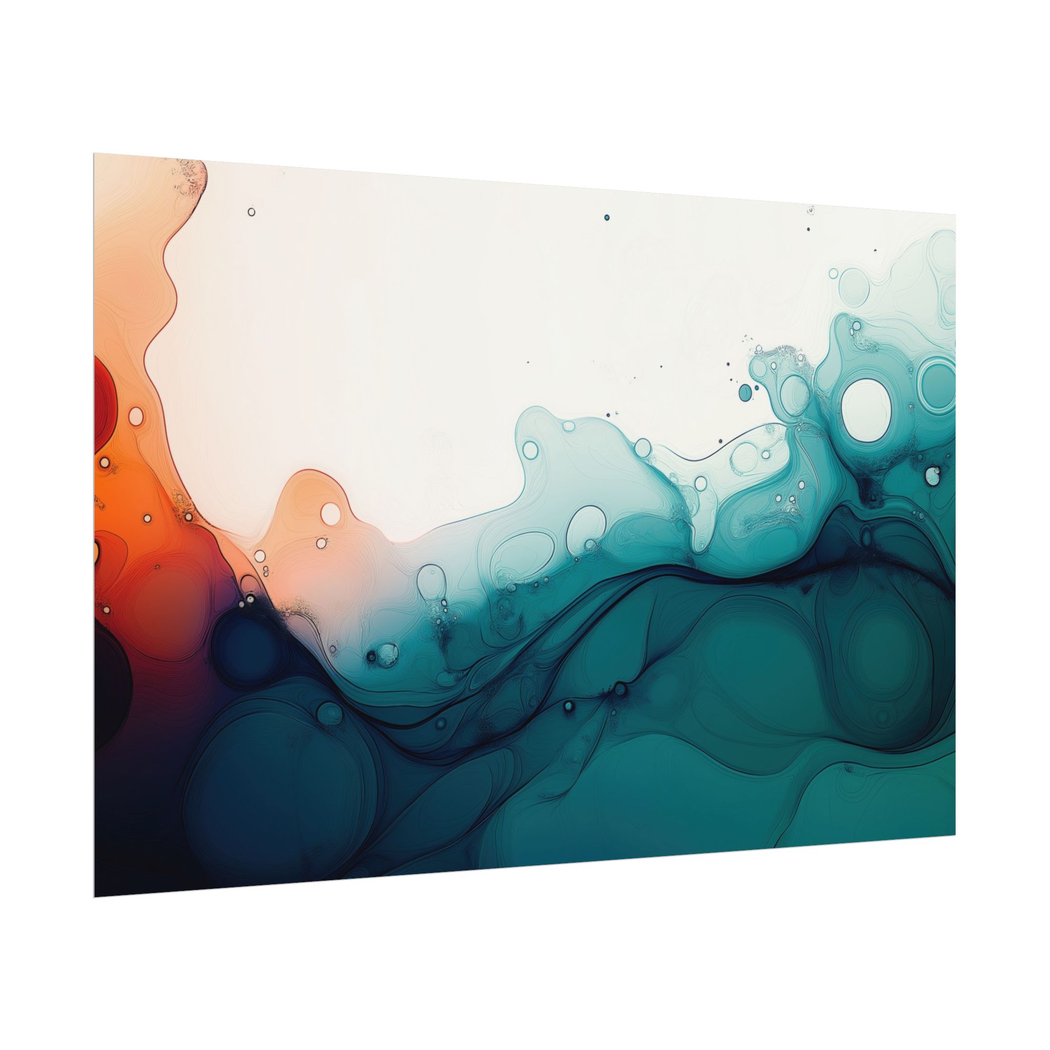 Bring a tranquil and ethereal vibe to your space with this vibrant fluid art print in teal and orange colors. Perfect for art lovers looking to add a unique touch to their home decor. Ideal for gift-giving during birthdays, housewarmings, or as a thoughtful gesture for art enthusiasts.