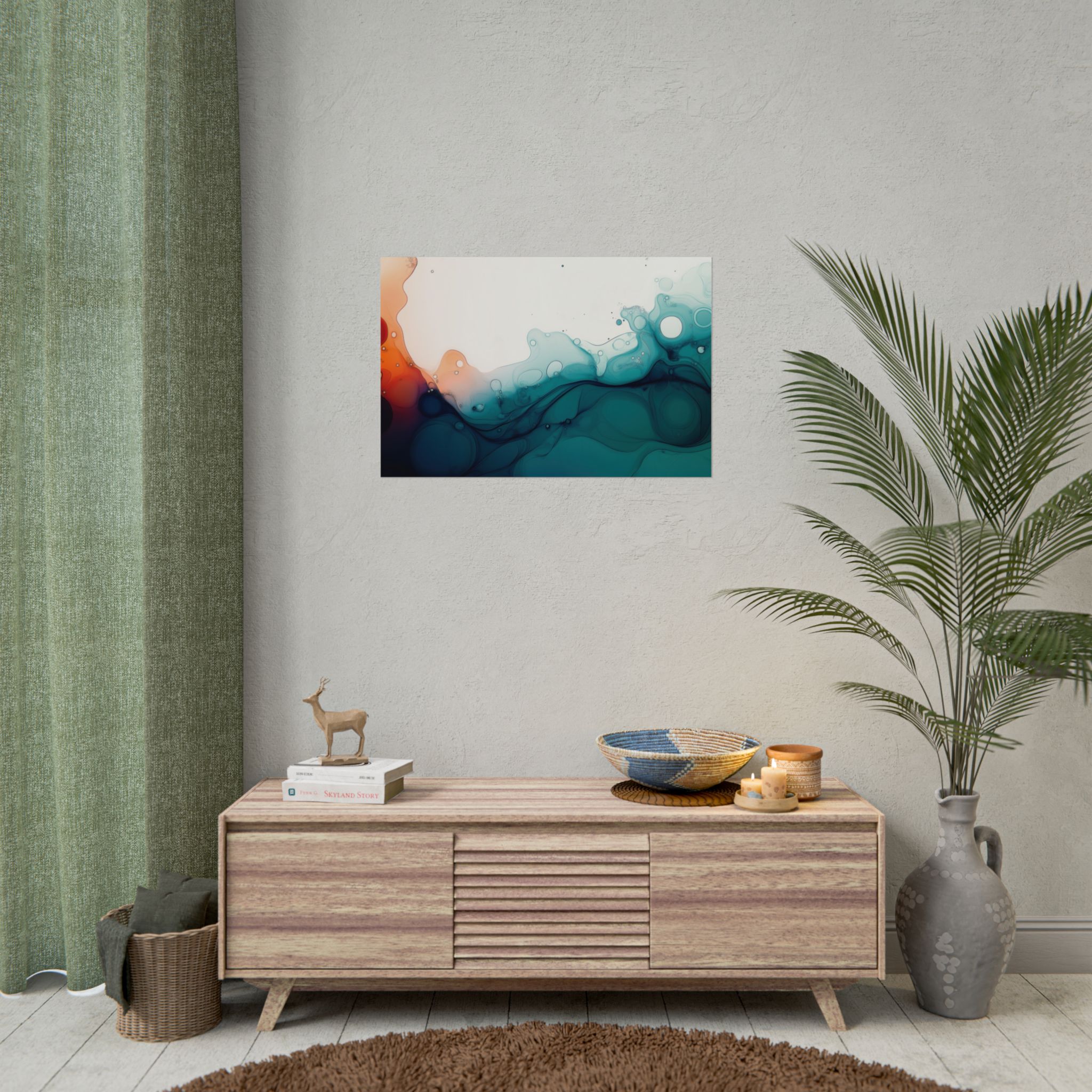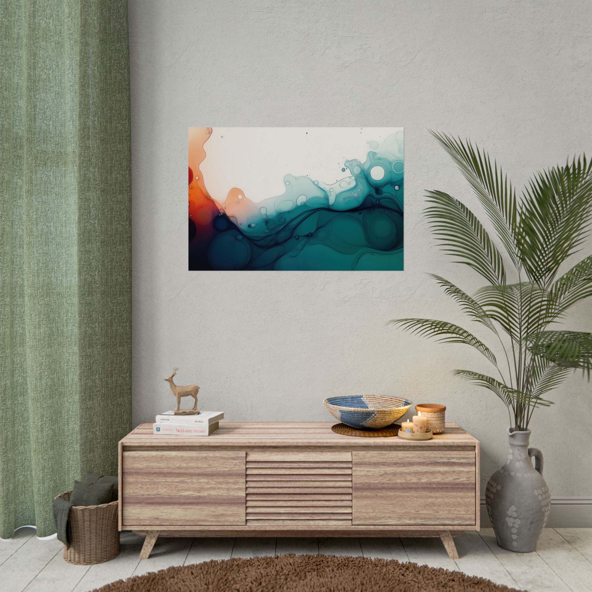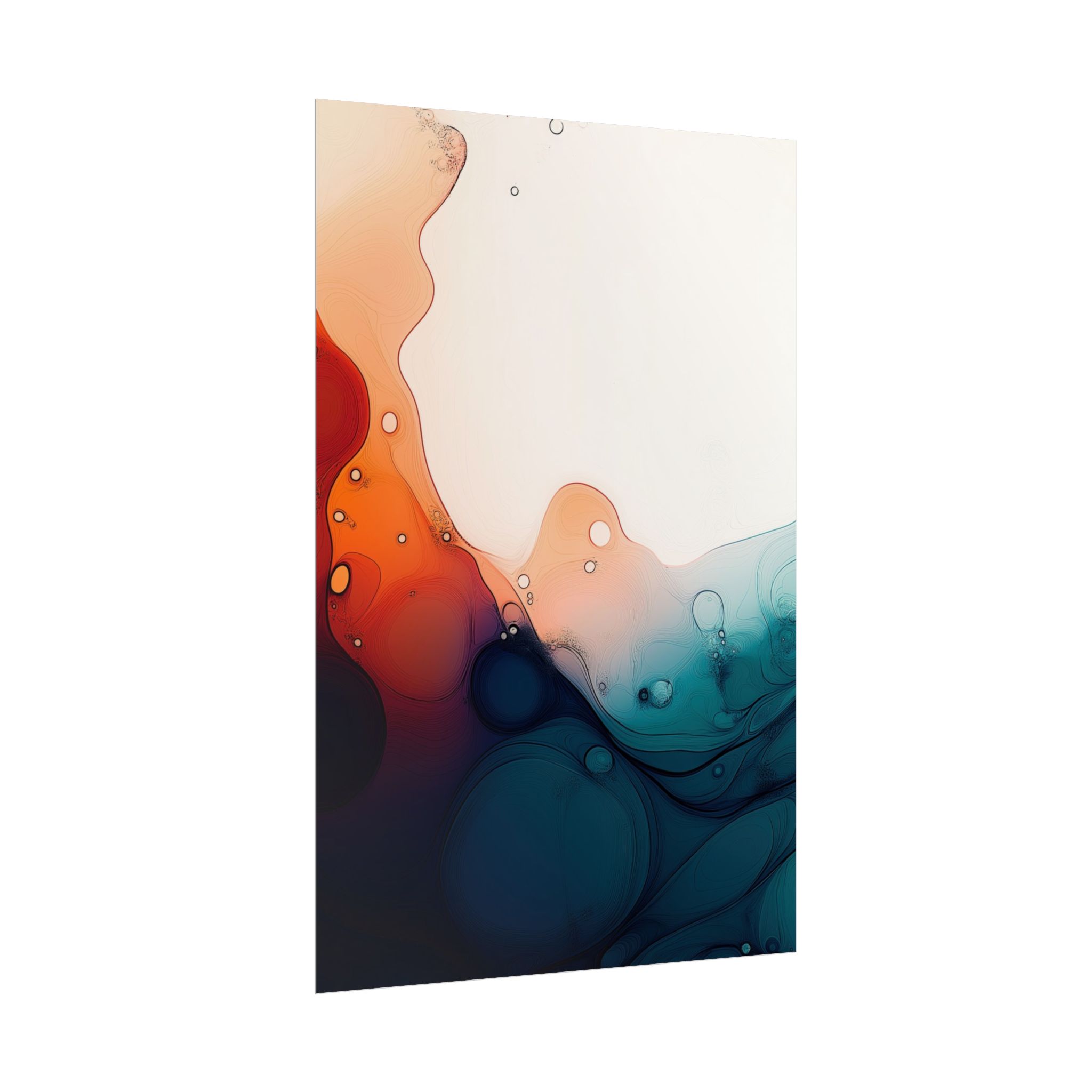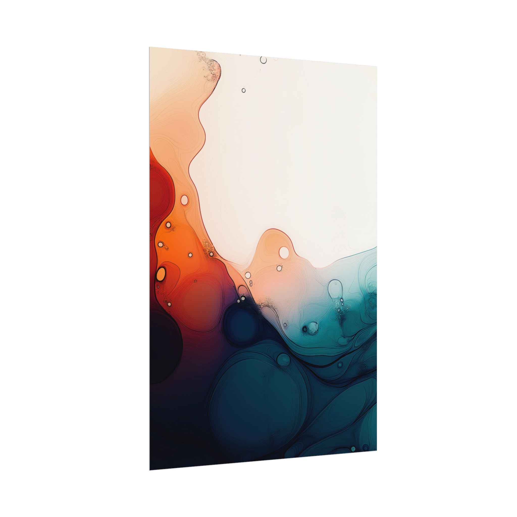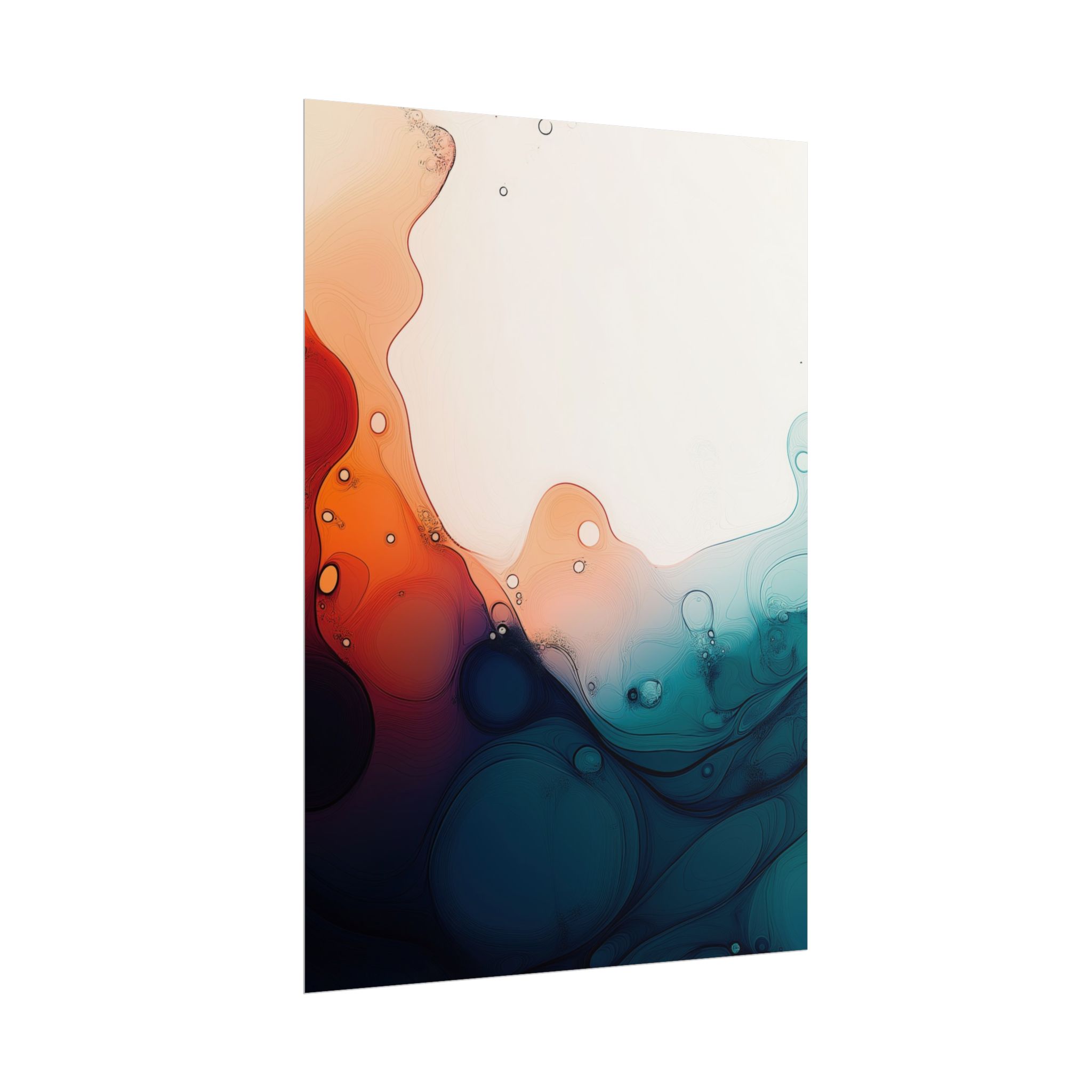 Bring a tranquil and ethereal vibe to your space with this vibrant fluid art print in teal and orange colors. Perfect for art lovers looking to add a unique touch to their home decor. Ideal for gift-giving during birthdays, housewarmings, or as a thoughtful gesture for art enthusiasts.