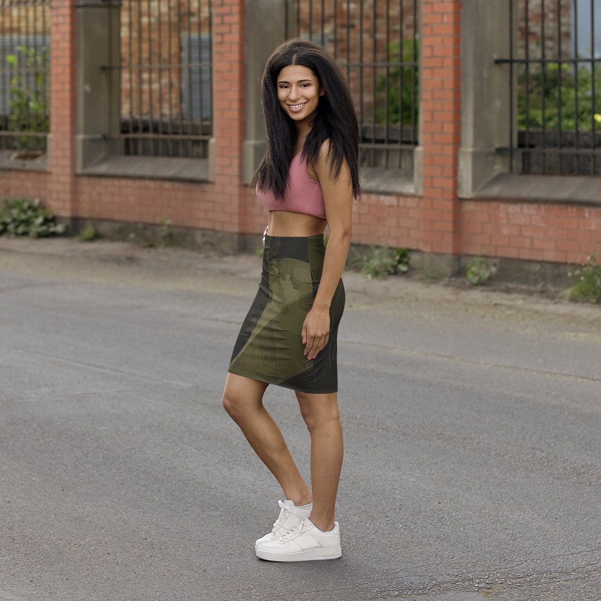 The custom pencil skirt is ideal for unbroken printing. It is made of 88% polyester and 12% spandex. This blend gives the garment a four-way stretch which allows the fabric to stretch both width- and length-wise. The garment has a slight tapering along the outer thigh to provide that signature straightened appearance. Your designs are printed all over the skirt, making for endless customizing avenues.