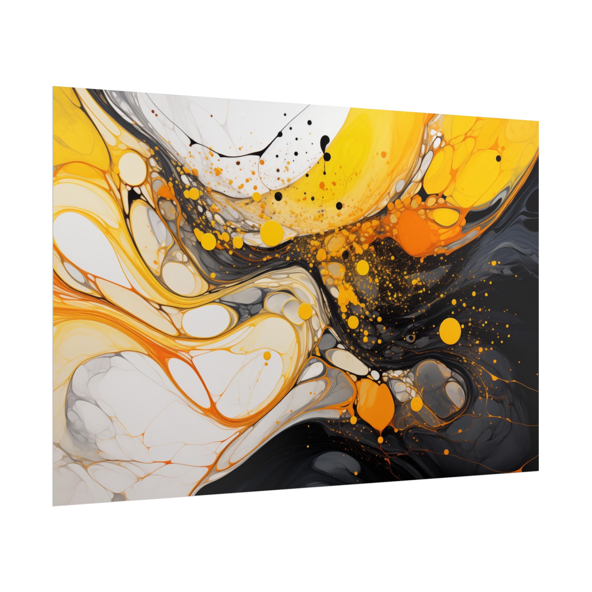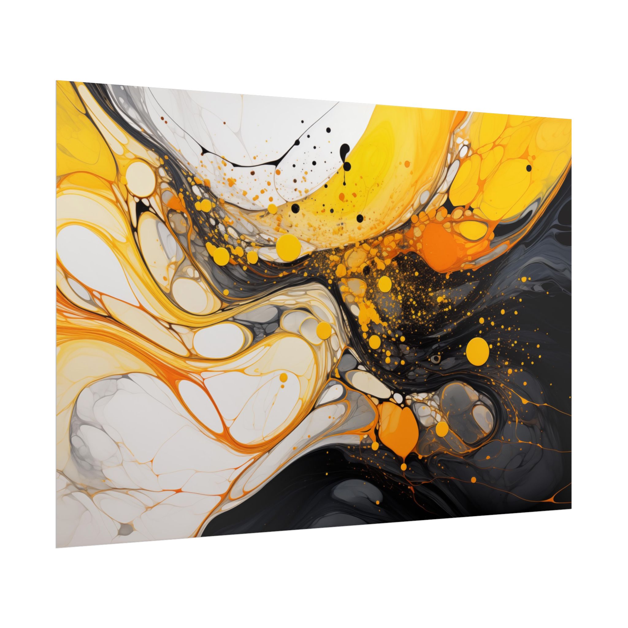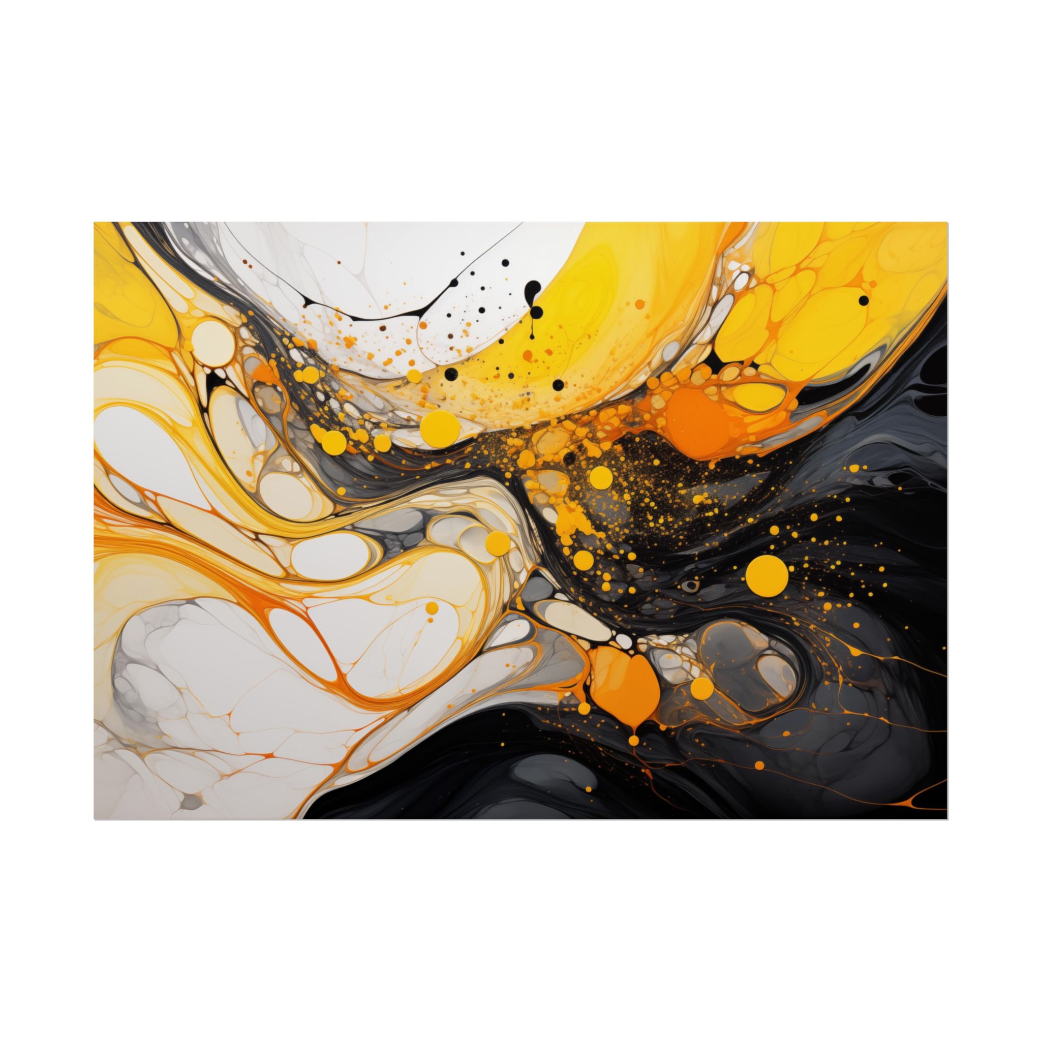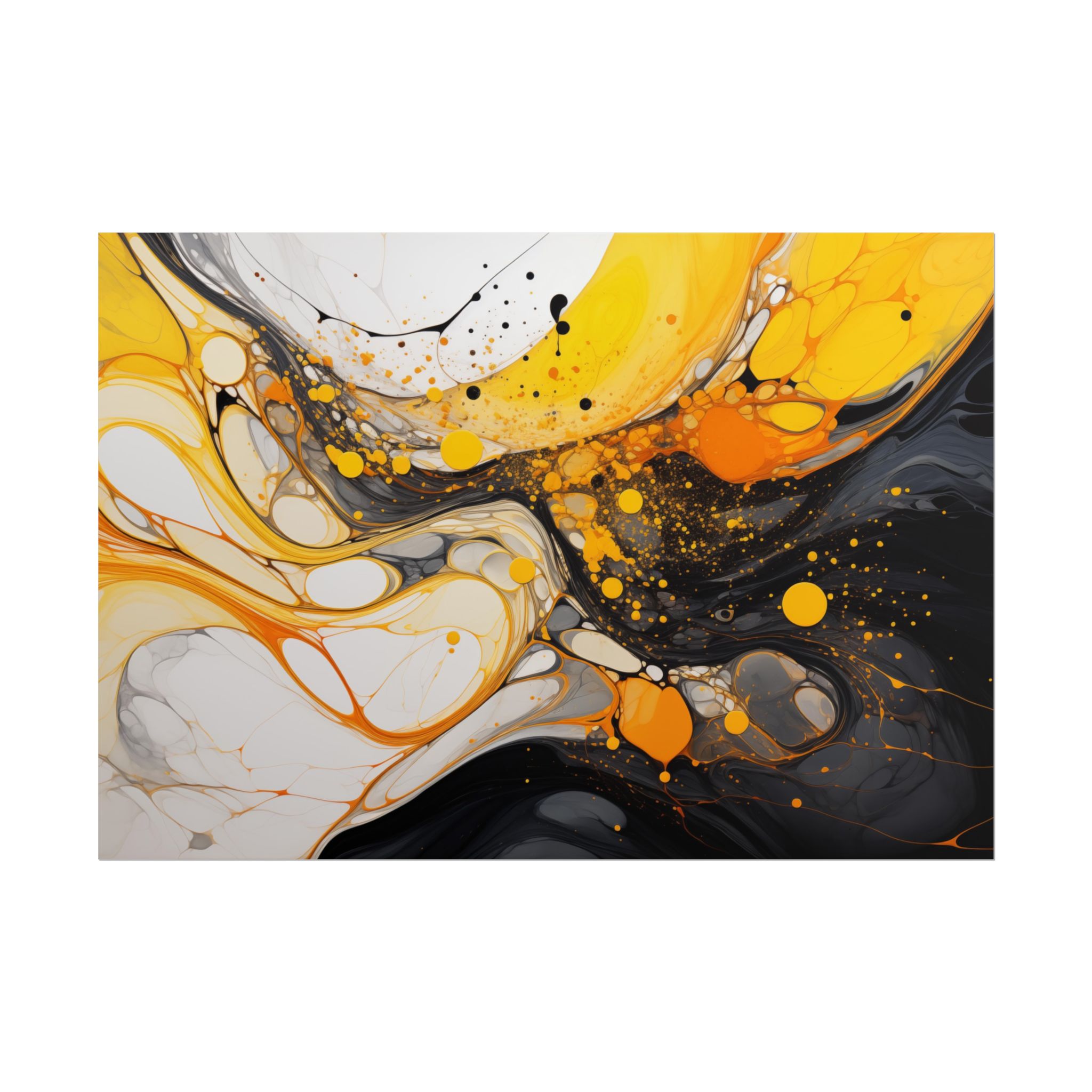 Elevate your space with this black, white, and yellow abstract art print featuring flowing liquid shapes and splashes of color. The intricate patterns and textures give depth and dimension, perfect for adding an artistic touch to any room. Ideal for art enthusiasts and home decor lovers, this canvas is a great addition to celebrations like birthdays, housewarmings, or art appreciation events.