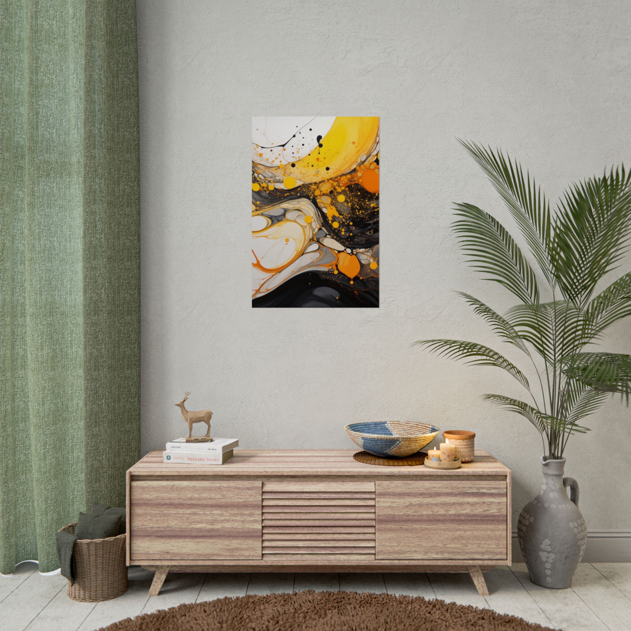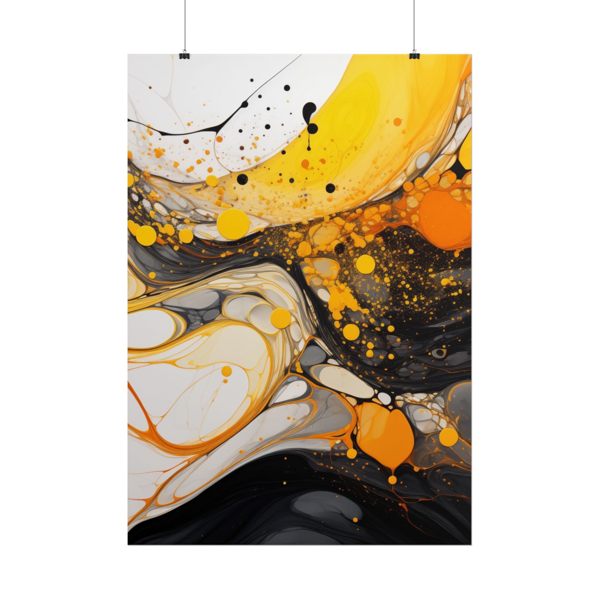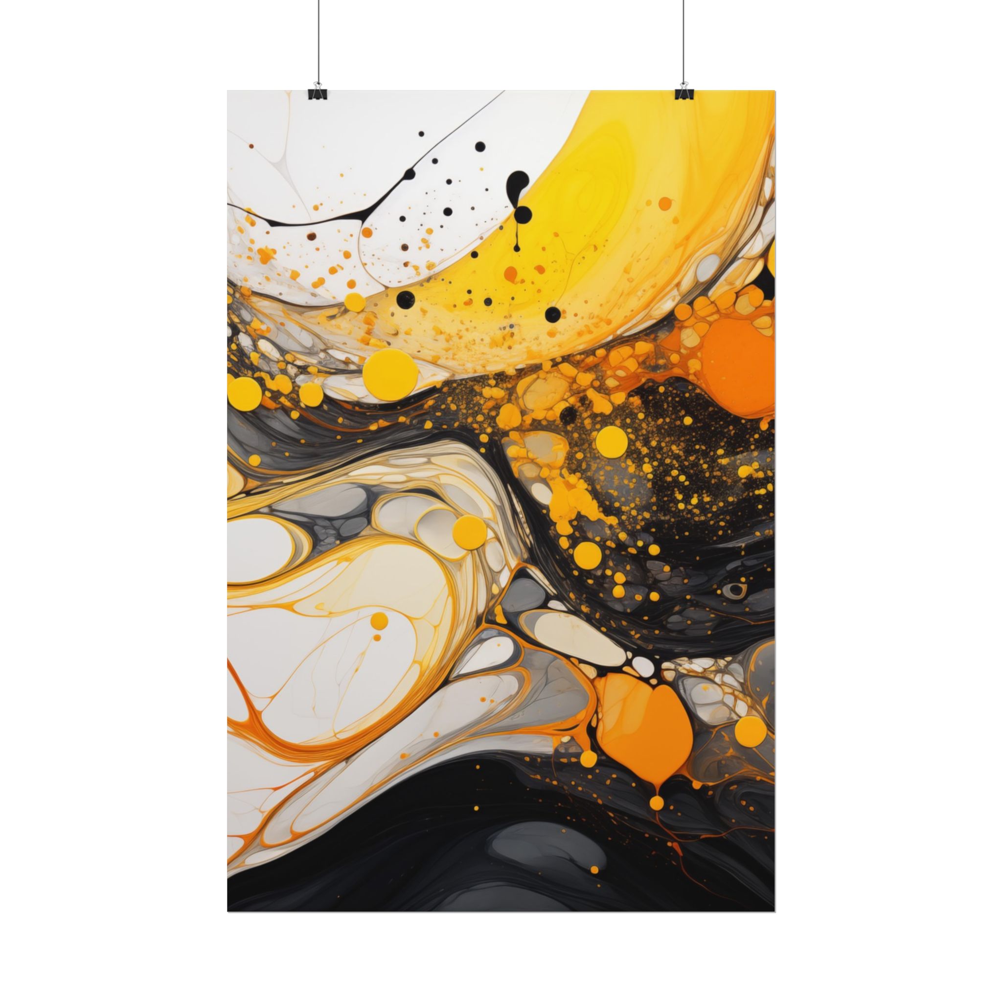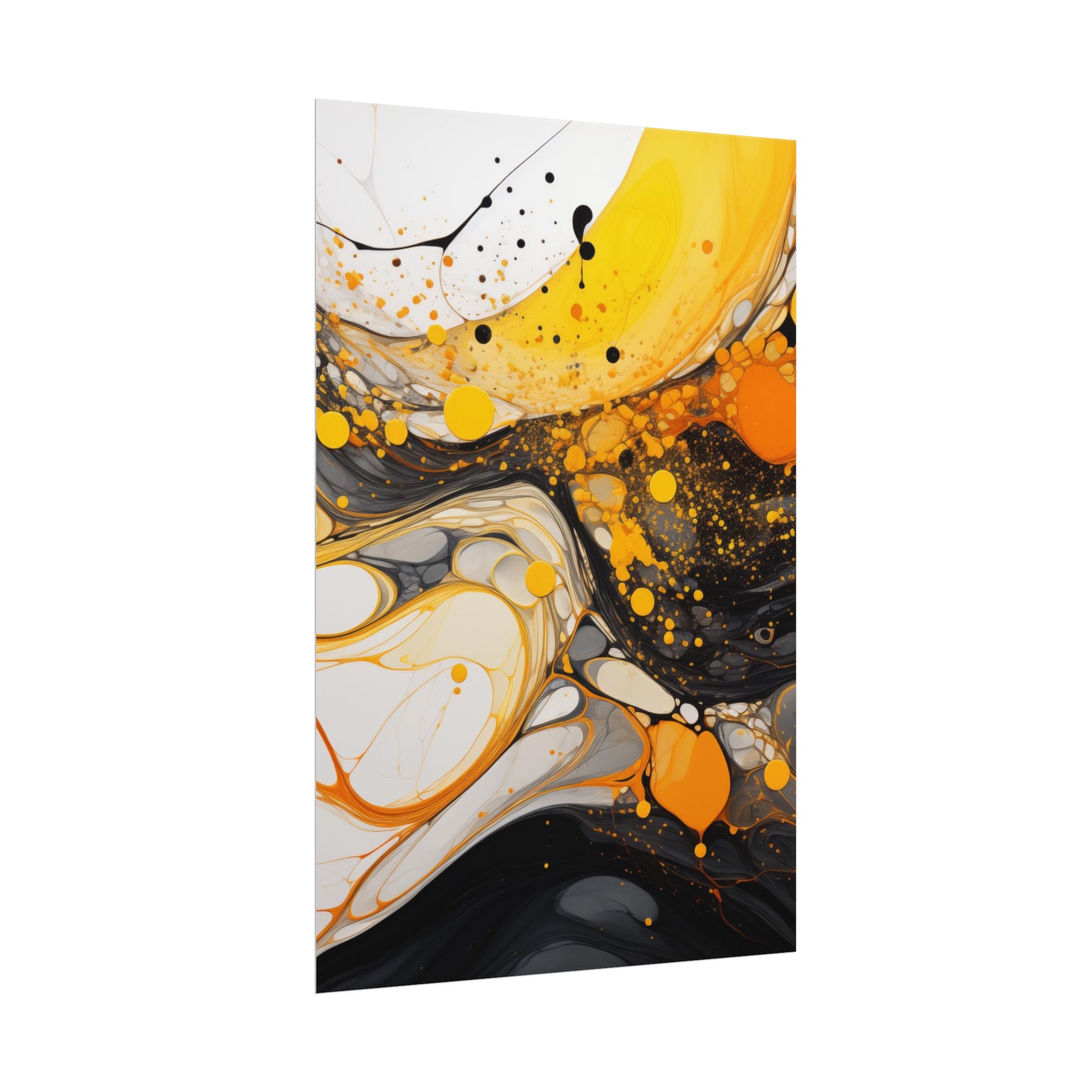 Elevate your space with this black, white, and yellow abstract art print featuring flowing liquid shapes and splashes of color. The intricate patterns and textures give depth and dimension, perfect for adding an artistic touch to any room. Ideal for art enthusiasts and home decor lovers, this canvas is a great addition to celebrations like birthdays, housewarmings, or art appreciation events.